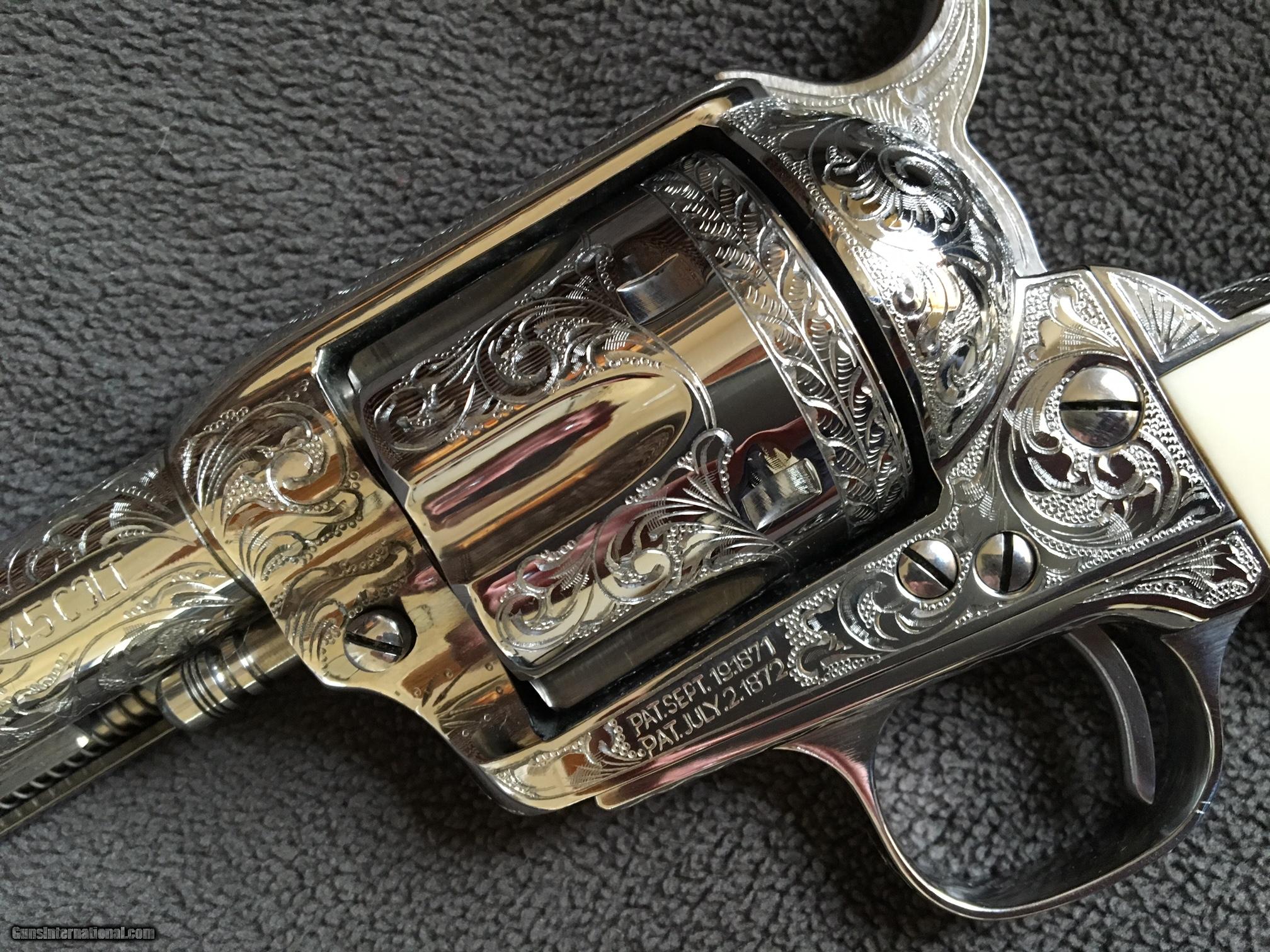 Engraved stainless Cimarron.45 SAA with ivory (new)