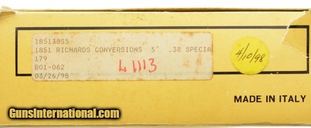 Excellent Boxed 1851 Richards Conversion 38 Spl 5 Inch Barrel
