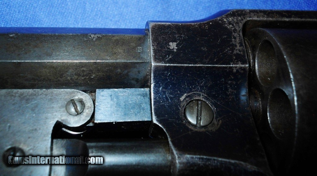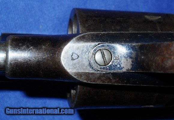 Description: ANTIQUE ROGERS & SPENCER .44 CALIBER CIVIL WAR ERA PERCUSSION REVOLVER WITH VARIOUS PARTS HAVING "B" & "H" MILITARY INSPECTORS MARKS. METAL RETAINS A GOOD ABOUNT OF ORIGINAL BRIGHT BLUE FINISH MIXING WITH BROWNISH PATINA & SOME SPOTS OF PINPRICK PITTING, ESPECIALLY ON LEFT SIDE OF BARREL. DARKENED CASE COLORS STILL SHOW ON LOADING LEVER & HAMMER. RATES NRA VERY GOOD TO FINE OVERALL. BETER IN HAND THAN PICTURES SHOW. ACTION IS CRISP WITH VERY GOOD CYLINDER LOCKUP BUT NEEDS A HAND SPRING. NIPPLES & CHAMBERS ARE CLEAR. SHIPS DIRECT TO BUYER ANYWHERE THAT'S OK. ESTATE SAYS SELL ! RELISTIC OFFERS CONSIDERED. $25.00 S&H USPS PRIORITY INSURED FOR $500.00 ADDITIONAL INSURANCE IF WANTED AT POSTAL RATES. SEE OTHER ESTATE ANTIQUES LISTINGS FOR MORE GOOD ITEMS FROM OLD TIME COLLECTIONS AT SENSIBLE PRICES. SOLD Antique: Yes Manufacturer: ROGERS,SPENCER Co. WILLOW DALE, NY Model: ARMY Caliber Info: .44 Bore: FINE BRIGHT Chambers: CLEAR Condition: VERY GOOD AS PICTURED Metal Condition: ORIGINAL Wood Condition: VERY GOOD Bore Condition: STRONG RIFLING Barrels: 7 1/2 Action: NEEDS CYLINDER HAND Finish: ORIGINAL AGED Manufacture Date: 1865 |