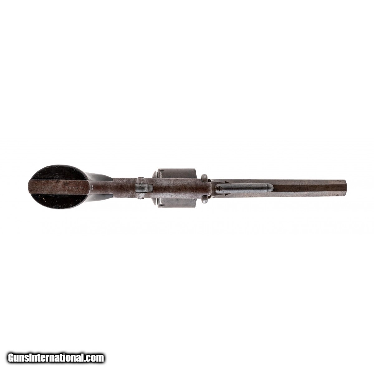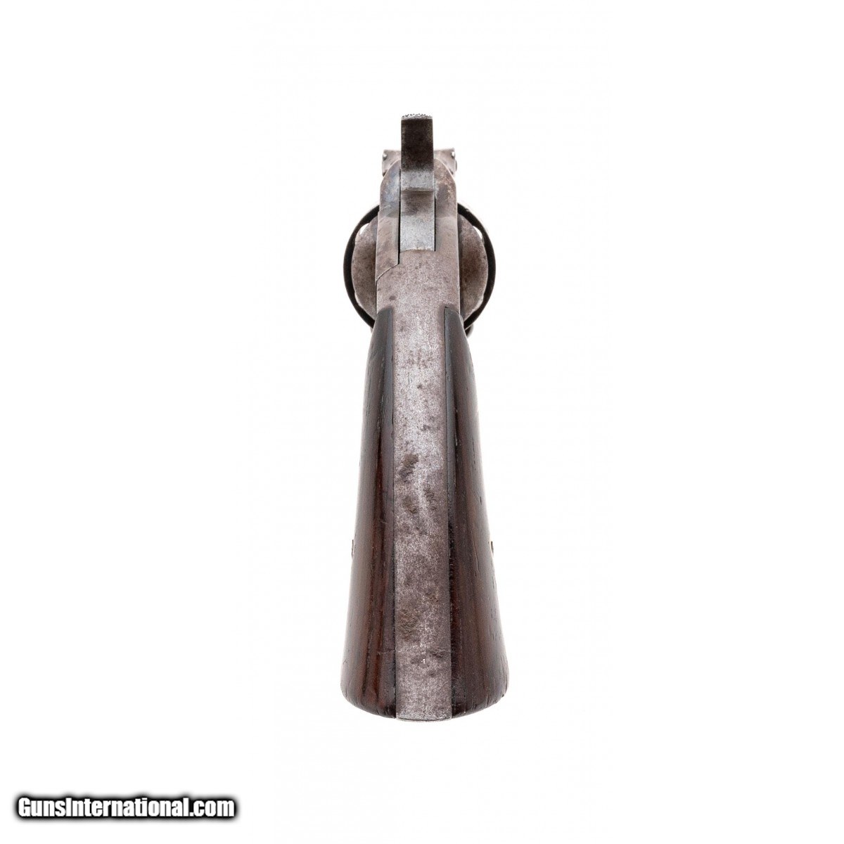 Description: " Serial No. 2506, circa 1861, .32RF, 5"" octagonal barrel. Early 2 pin Civil War Era No.2 Army. Metal is a grey/brown patina with small traces of blue in protected areas. Bore has light surface oxidation visible in the grooves, rifling remains very strong. Barrel address and cylinder patent dates are present and legible. Two piece rosewood grips are very good with expected light handling wear. Action indexes and function correctly. Consignment SOLD Antique: Yes |