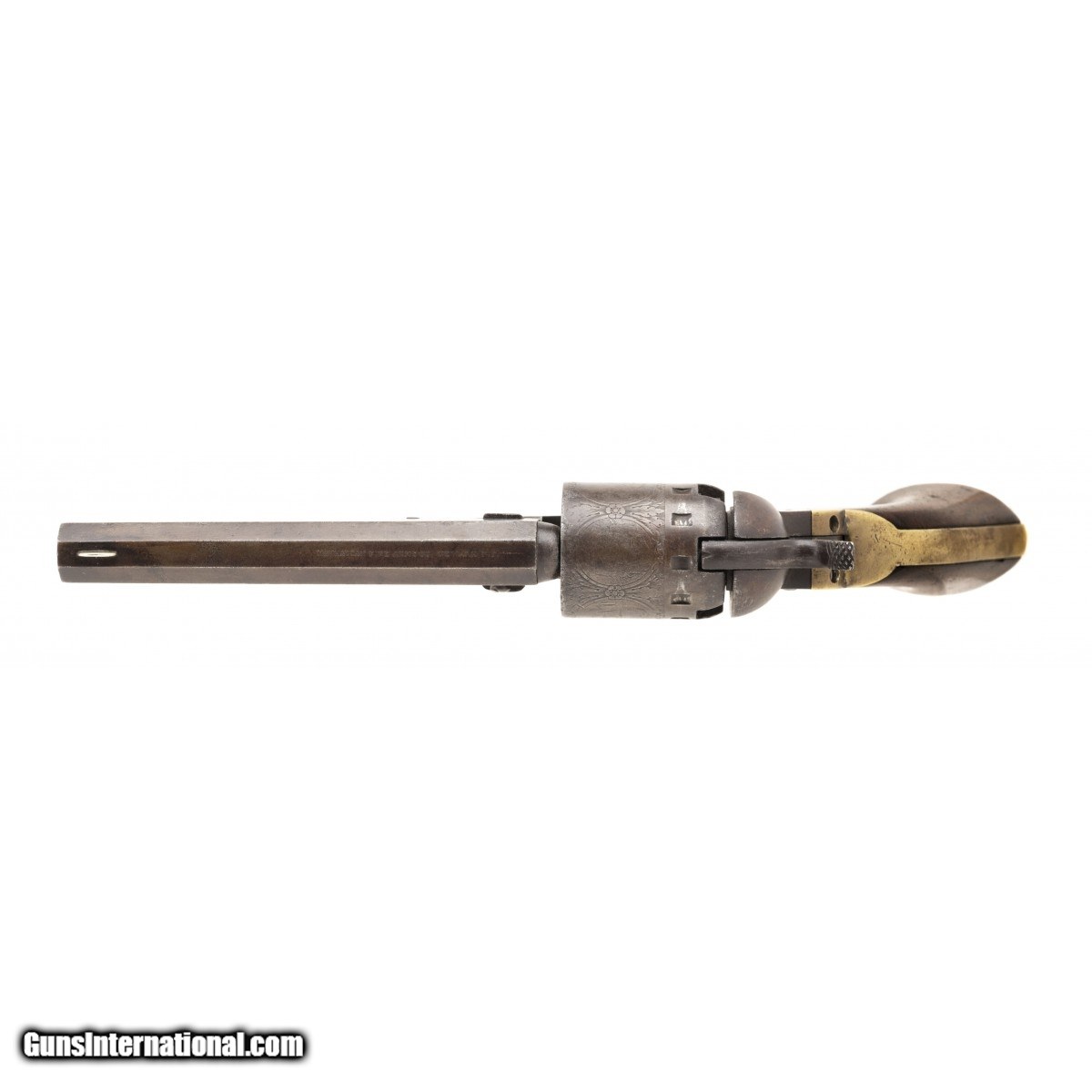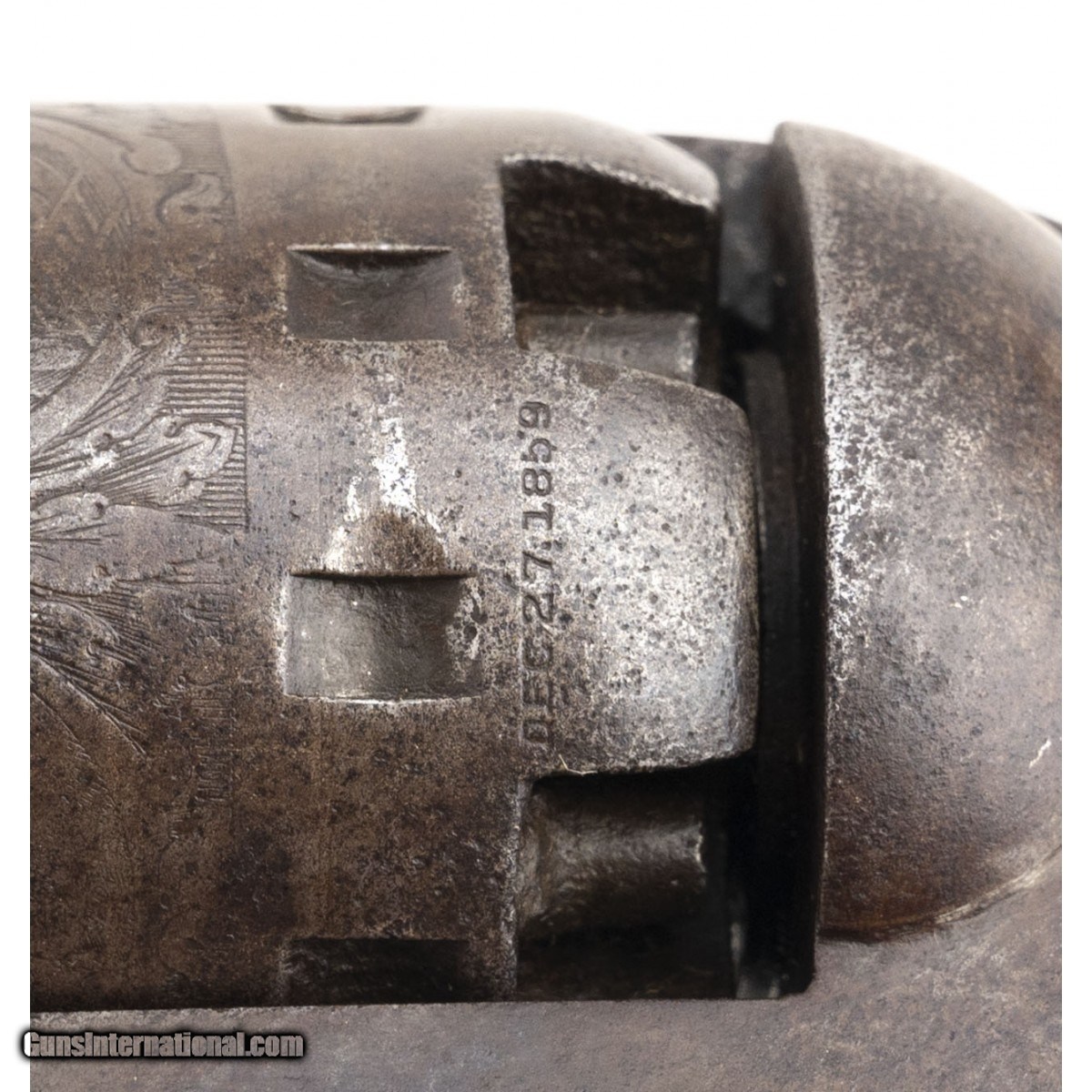 Civil War era single-action percussion revolver with 5"" octagonal barrel. Made from 1859-1868. The cylinder shows five scenes that have show some holster wear. The bore is very good with strong rifling. The nipples are very good with none mashed. The serials are matching. The grips are very good plus and have most of their varnish. The brass parts have light patina. In its day Manhattan Firearms was a competitor of Colt. Overall this is a very good plus example.