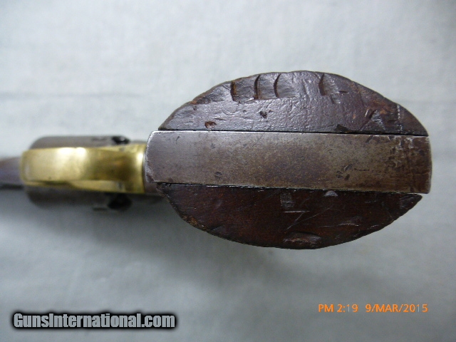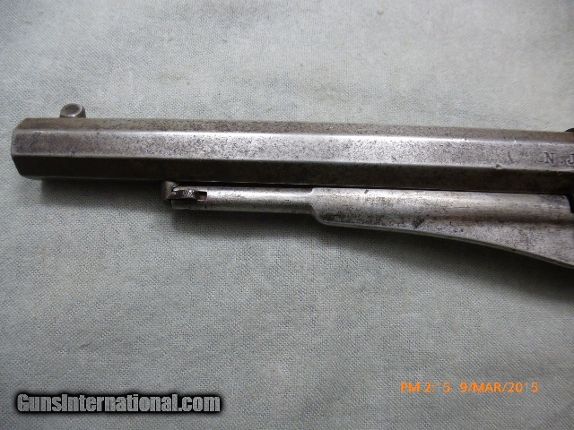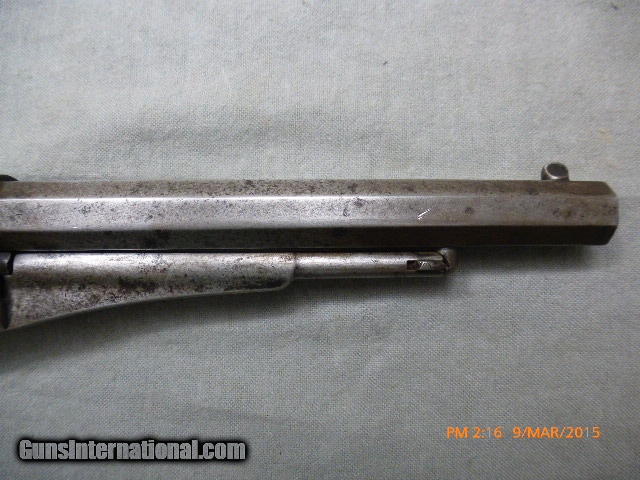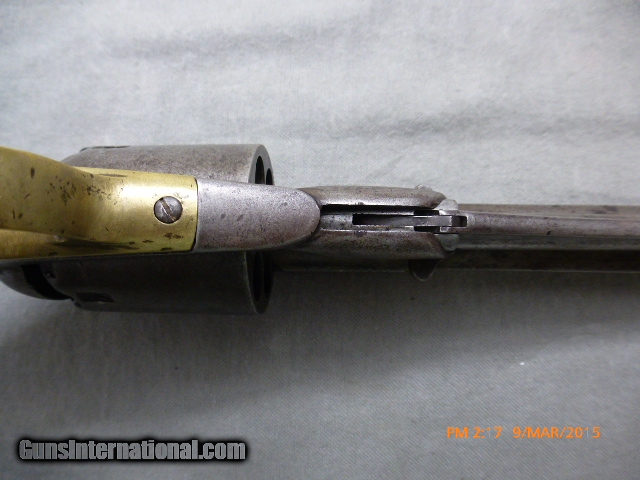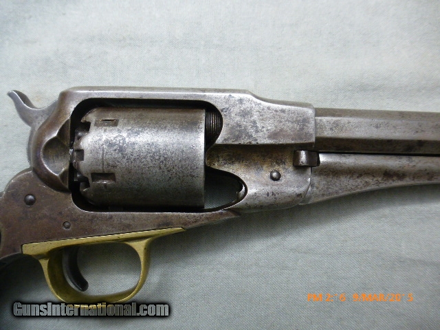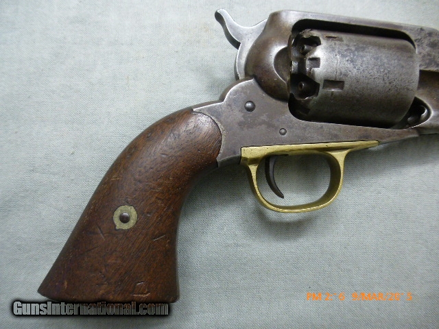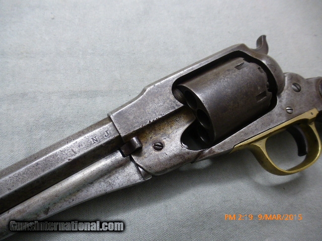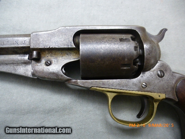 Description: 15-21 Remington New Model Army Civil War Revolver 15-21 Remington New Model Army Civil War Revolver, 44 cal., 6-shot 8” Bbl. Ser #71385 on frame and barrel, Standard Markings, “Patented Sept 14, 1858/E Remington & Sons Ilion New York, USA/New Model”, has N.J. for New Jersey stamped on the barrel next to the frame, these were issued to militias the State of New Jersey organized during the civil war. The bore is shiny and has 95% of rifling, and a very little bit of corrosion; cylinder chambers are clean. Action works well and locks up tight when cocked. Metal is very clean, with the markings on barrel a little worn. Original grips are fine. This gun would be perfect for someone who wants to shoot an original antique with most of the rifling or wants a civil war gun with a New Jersey connection. Overall a nice fine condition original antique Civil War Era Remington Army, issued to New Jersey suitable for collector/shooter. (15-21) $1,500.00 I take Visa/Mastercard, add 3%. Allow two weeks for all checks, whether bank, personal or certified to clear. It is also possible to wire funds to my account for instant credit for a $20.00 wire charge. 3 day- no questions asked return period for refund of price paid for gun. Call or email with any questions or for more pictures. Guns are antique and should not be fired without examination by gunsmith. $40 shipping for long guns, $30 for hand guns to lower 48 states, about $50 to most European countries and $70 to Australia for antique handguns. We can generally get insurance if you want through shipper but coverage is limited. Notify me if you want it. You can send 20% down- balance in 90 days for installment payment plan. No refunds on installment plans. I have shipped to Norway (long gun w/fragile stock) see feedback, England (Winchester1876, Rem Dbl. Derr.), Northern Ireland, France, Australia and Sweden. Email if you are not U.S. for estimated shipping costs, payment methods, etc. I am always buying and trading for antique and collectible guns, Indian items, rare ammo, etc. Email what you have got for sale or trade. SOLD Antique: Yes |