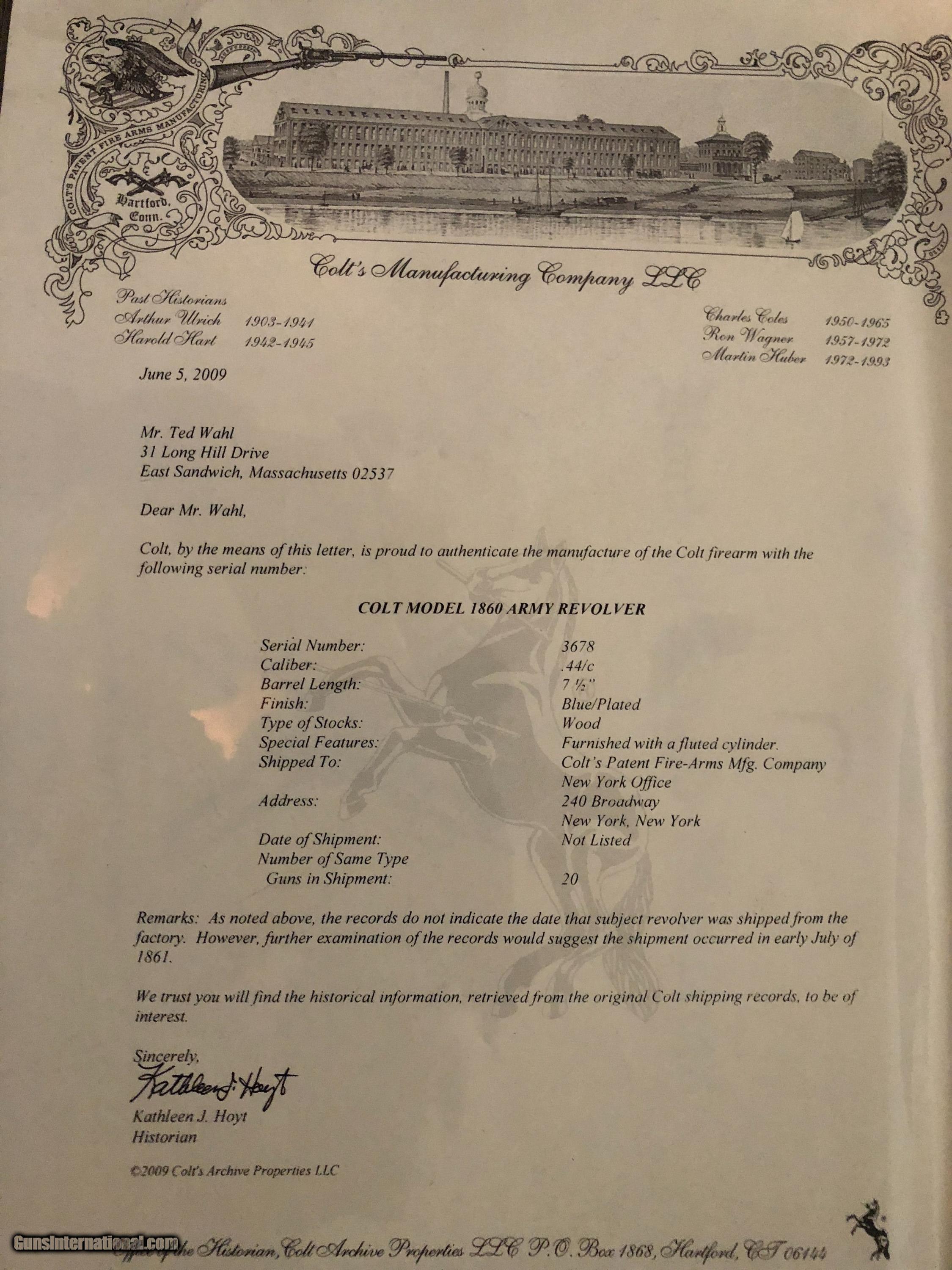 1860 Colt Fluted Army with Factory Letter and some blue in flutes.