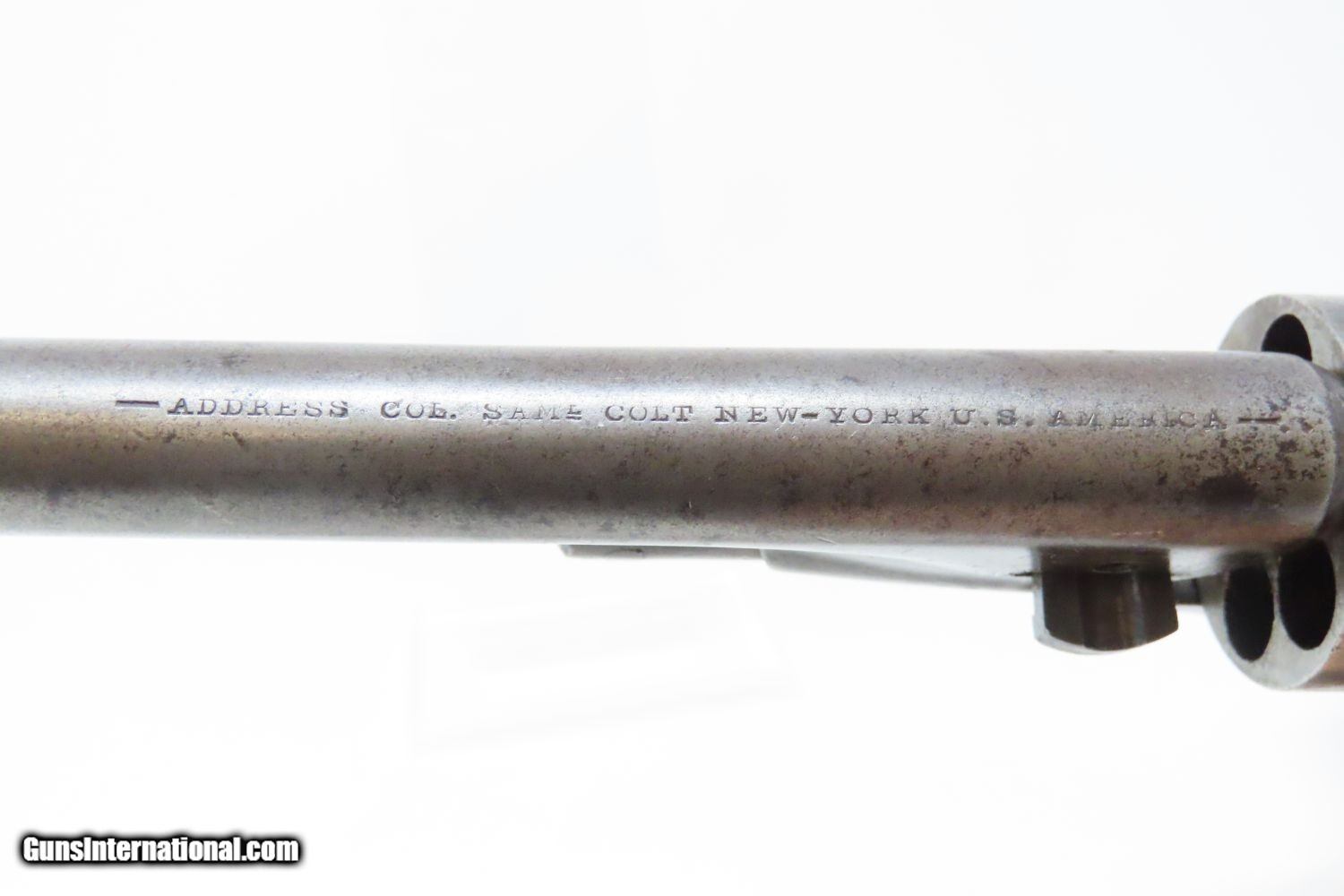 Description: 1861 Antique CIVIL WAR COLT Model 1860 ARMY .44 Caliber Percussion REVOLVER 4-Screw Civil War Production Here we present an antique Colt U.S. Model 1860 Army Percussion Revolver, made in 1861 in Hartford, Connecticut. The 1860 Army was the single most used pistol of the American Civil War. Over 200,000 were made from 1860 to 1873, and 156,000 of those were made by the end of the war in 1865. These were excellent sidearms for officers, cavalry, infantry, and artillery troops. The 1860 Army was Samuel Colt’s finest achievement to that point, having finally developed a large caliber revolver that weighed about 2 lbs. 10 oz. to the famous Dragoon’s 4 lbs. 4 oz., and was adopted en masse by the U.S. government with huge contracts. The revolver was well balanced in hand and had a long enough barrel to be effective when utilized as a carbine with the attachable shoulder stock. This revolver represented unprecedented firepower from a handgun in the field at the time and was especially suited to Cavalry. The Confederacy, lacking in manufacturing capabilities though they were, managed to produce limited numbers of copies, and battlefield pickups of the 1860 Army were highly coveted. The 1860 Army went on to serve the U.S. military even after the Civil War and into the Indian Wars, until production of Colt’s 1873 Single Action Army created new waves in the revolver market, and again achieved great success in the military and commercial markets. The overall condition is good. Strong action. Good bore. The grip is in good shape with an expected amount of wear. This gun has two set of numbers: the cylinder, barrel, and frame are numbered 24596, while the trigger guard and grip frame are numbered 12610. The wedge is an unnumbered replacement, and the wedge screw is absent. The wedge is tight and there is no movement between barrel and frame. A very affordable example of an early 4-screw 1860 Army by Colt! Own the original! This is a legitimate antique and not a reproduction. Barrel is 8 inches. Caliber: .44 Percussion Overall condition as seen in photos. Very Fast. Very Safe. FREE SHIPPING WORLDWIDE. Delivered directly to your door by express mail! Guaranteed AUTHENTIC & Includes CERTIFICATE OF AUTHENTICITY. ancestryguns $2665 #210821 SOLD Antique: Yes |