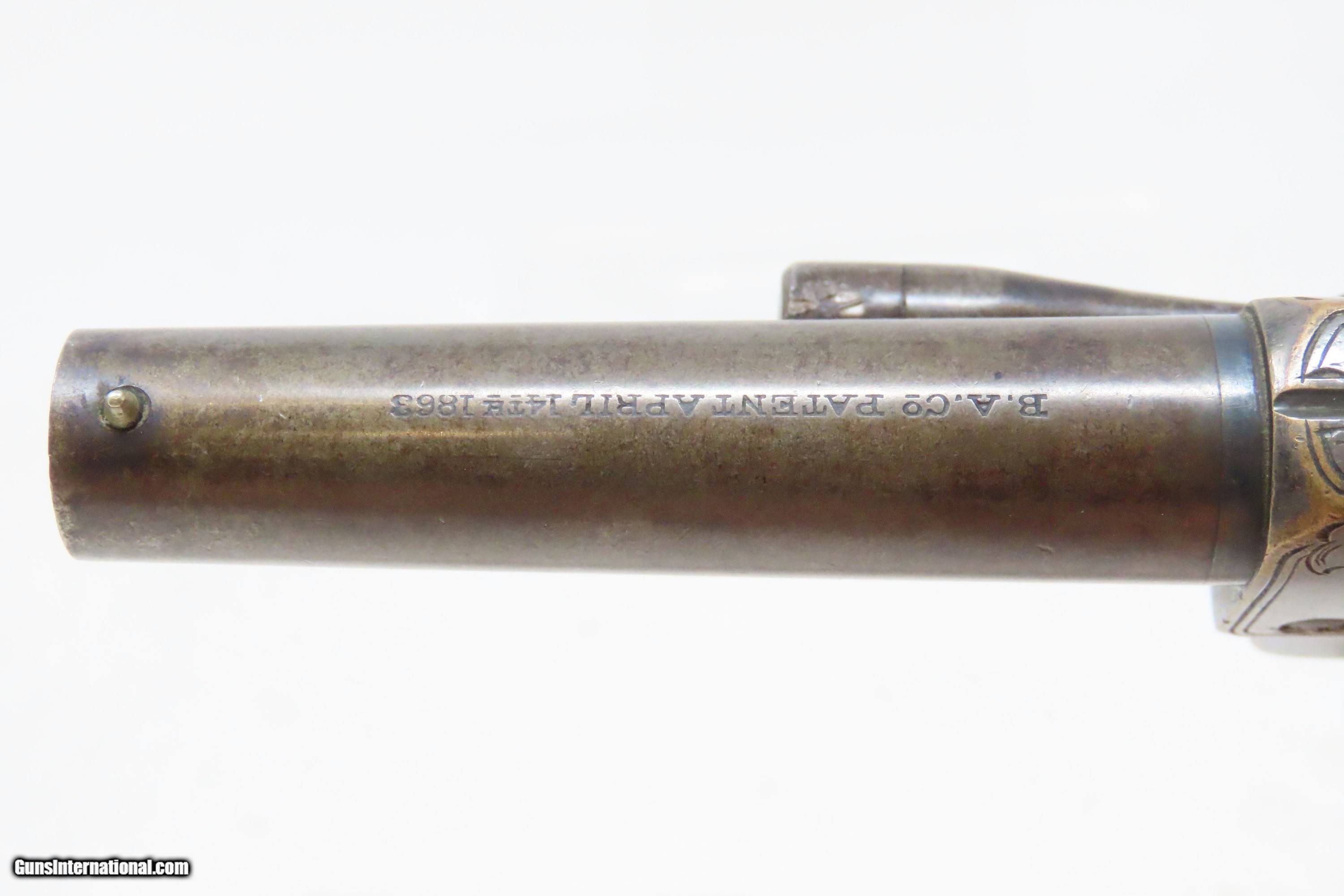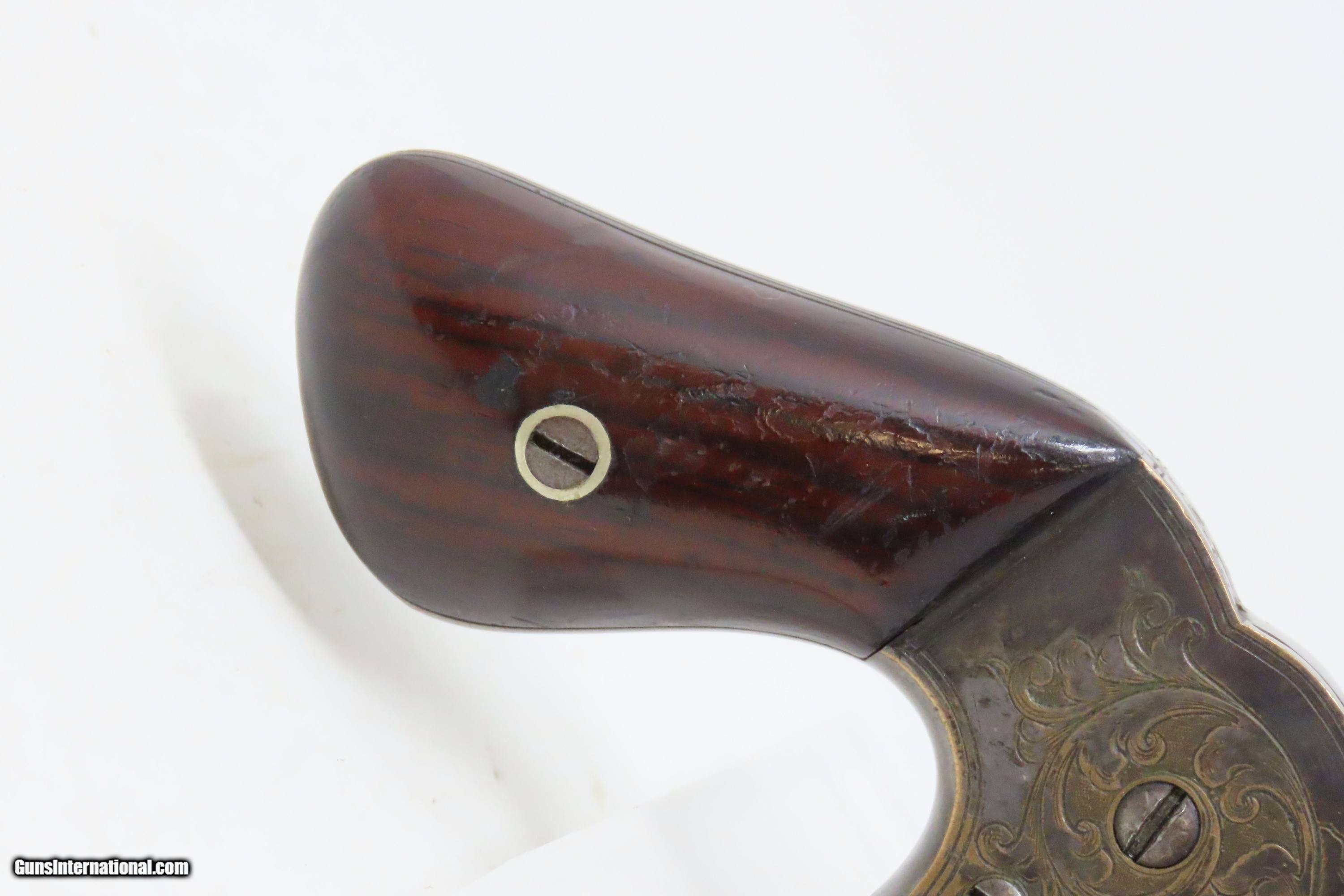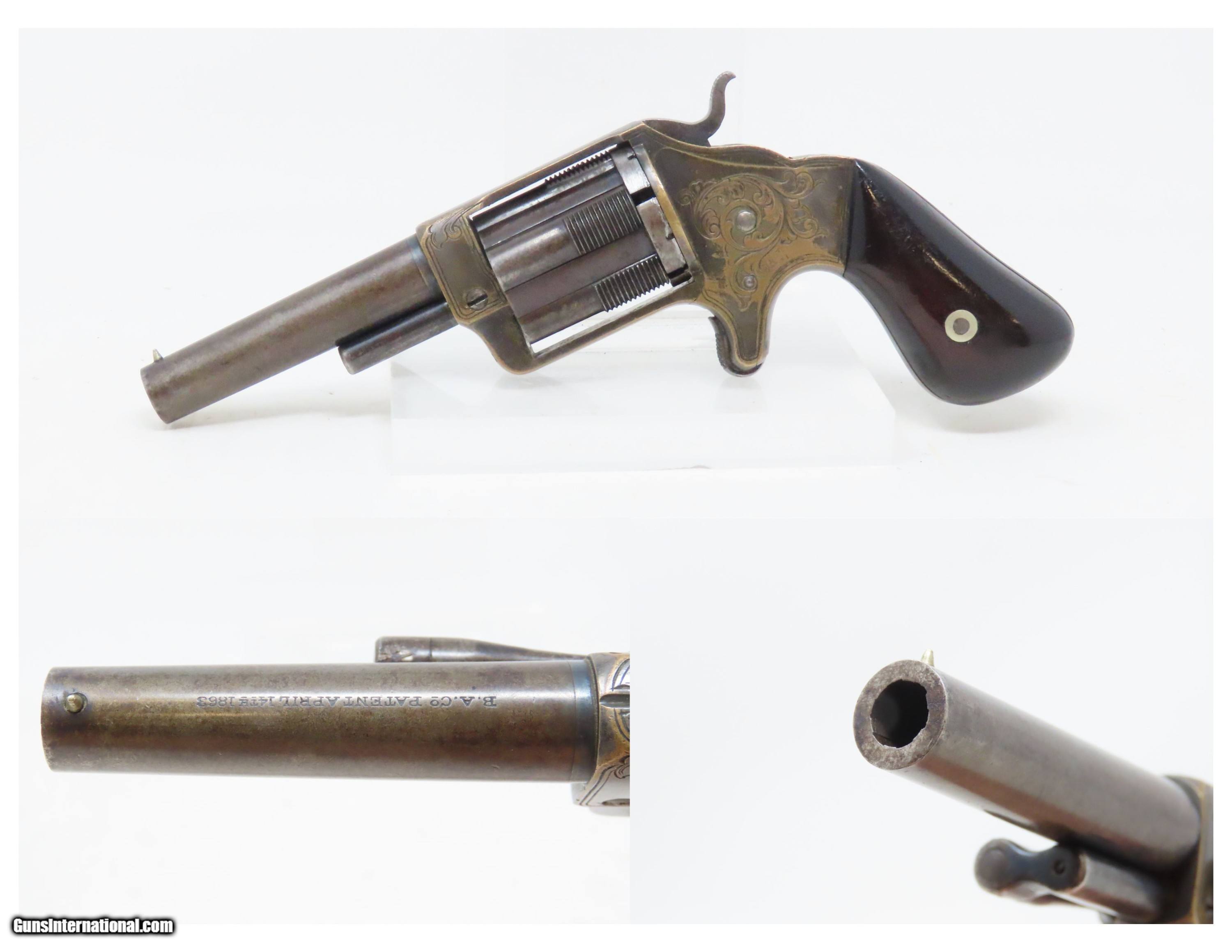 Description: 1863 CIVIL WAR Antique BROOKLYN Firearms SLOCUM Separate Chambers Revolver With Rollin White By-Passing Sliding Chambers Here we present an antique Brooklyn Arms Co. Slocum Patent Pocket Revolver, made circa 1863-64 in Brooklyn, New York. Only about 10,000 were produced. Firearms technology was rapidly advancing in the 19th Century with Colt introducing his revolver, and Smith & Wesson introducing the “bored through” cylinder that allowed revolvers to be used with metallic cartridges. This development was the intellectual property of an inventor by the name of Rollin White, a former Colt employee who took his idea to Samuel Colt himself, and was fired for his efforts. White found a buyer for his patent in Horace Smith and Daniel Wesson, giving their new company an enormous advantage for the next 12 years. However, with the Civil War in full fury and arms supply and manufacturing what it was, many different inventors, mechanics and manufacturers popped up to take advantage of the need for arms. Many makers of revolvers attempted to design and manufacture their own concept, but ended up violating the Rollin White Patent, for which Smith & Wesson and Rollin White aggressively sued. Other companies came up with creative solutions to navigate around the patent and some succeeded. This is one of those success stories, at least in the sense that a functional revolver was created to use metallic rimfire ammunition without violating the patent. Each chamber slides in its channel. Though this relatively small pocket revolver was no official armament of the Civil War, like so many others, plenty of them were carried into battle by soldiers who purchased them privately. This revolver features nice factory scroll engraving. The top of the barrel reads “B.A. CO. PATENT APRIL 14 1863”. The overall condition is fine. Original blue and silver finish have been preserved. The action is strong, but one cylinder does not properly lock up. Bright, rifled bore. Sharp markings. Both grips are in very good shape with less than average handling wear. Here is a very unique Civil War-era revolver, one that survived the scrutiny of the Rollin White Patent! Own the original! This is a legitimate antique and not a reproduction. Barrel is 3 inches. Caliber: .32 Rimfire Overall condition as seen in photos. Very Fast. Very Safe. FREE SHIPPING WORLDWIDE. Delivered directly to your door by express mail! Guaranteed AUTHENTIC & Includes CERTIFICATE OF AUTHENTICITY. ancestryguns $1800 #233649 SOLD Antique: Yes |