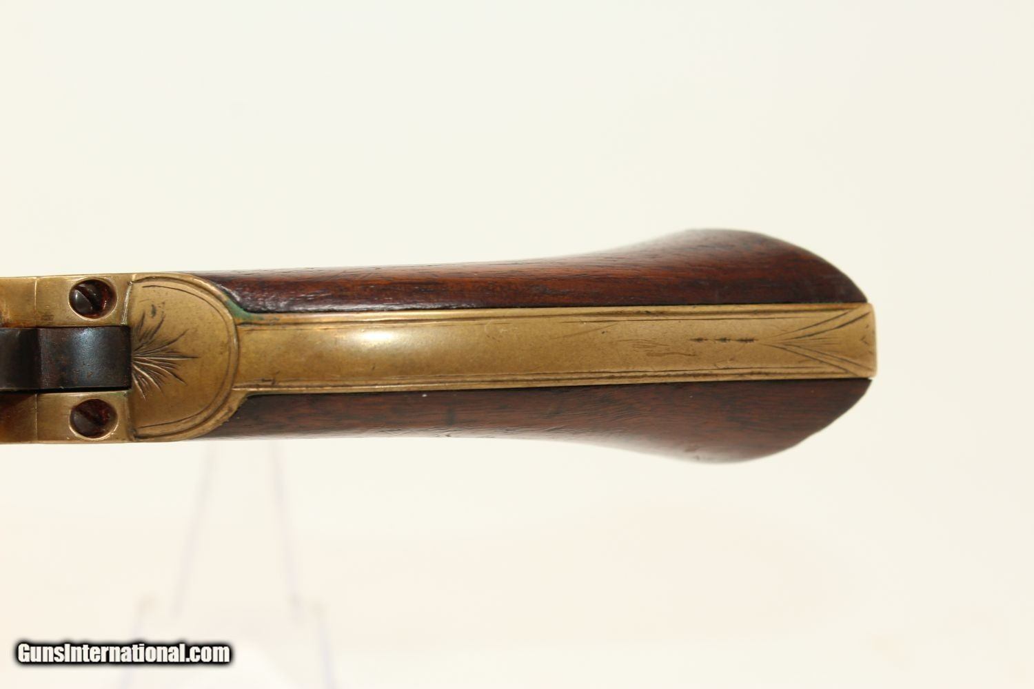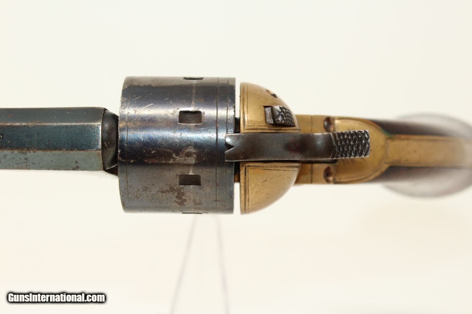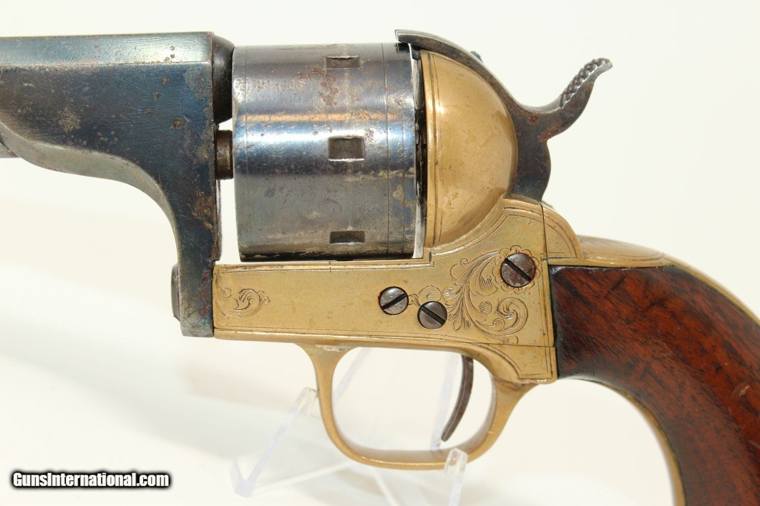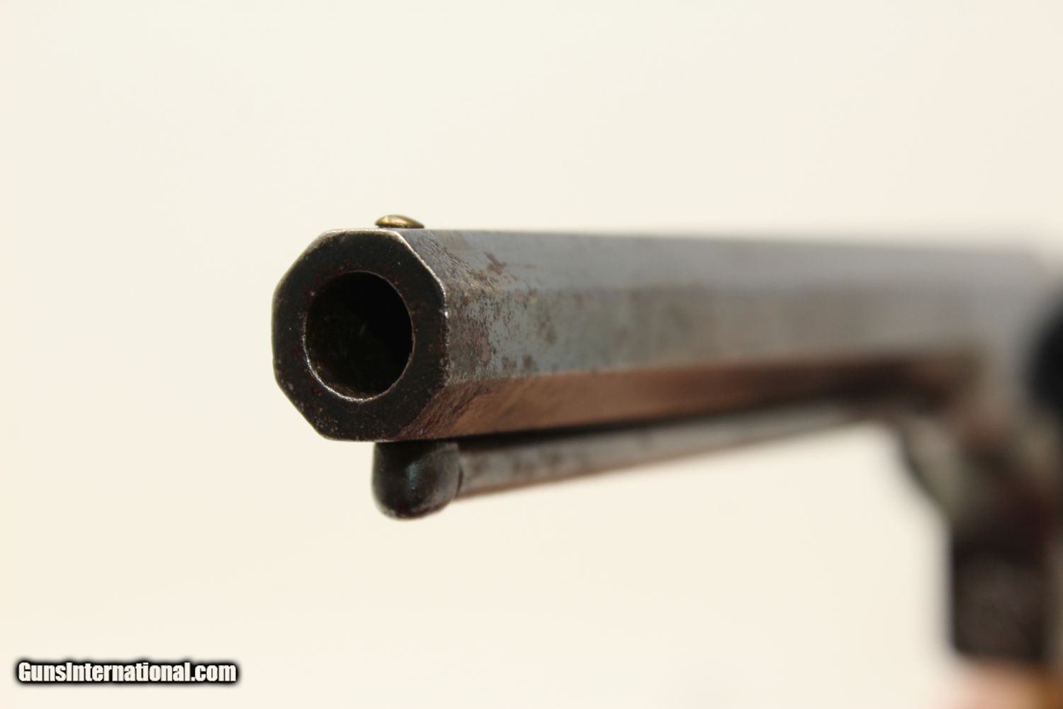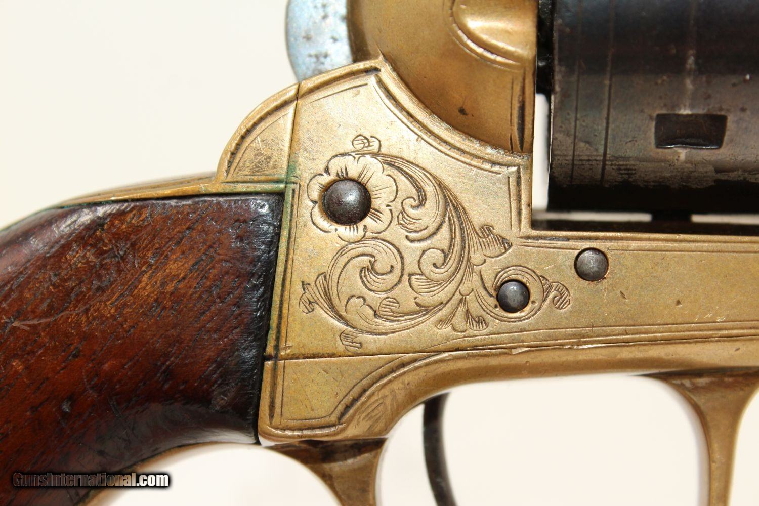 Description: 4CIVIL WAR Engraved MOORE’S PATENT Belt Revolver Scarce & Very Collectible Civil War Revolver Here we present an antique Engraved Moore’s Patent Firearms Co. Single Action Belt Revolver. These revolvers were made in Brooklyn, New York from 1861-1863 and number less than 8,000 in total. In this era, many companies infringed on the Rollin White patent. They were promptly sued. Others tried and succeeded in finding ways around the patent to make metallic cartridge revolvers while the Rollin White Patent was still in effect. Daniel Moore, the designer of this revolver was one who did both. He designed a cartridge revolver that was the first “swing-out” cylinder revolver, but blatantly infringed on S&W’s patent. He was sued and lost. The other significance of this pistol is that many of these are known to have been purchased by Union officers and enlisted men for use during the American Civil War. Mechanically, this revolver utilizes a push-button release that allows the barrel and cylinder to cant to the right for loading and unloading. The cylinder is chambered for 7 shots of .32 rimfire and is fully bored through, violating the Smith & Wesson owned Rollin White Patent. The pistol also features full factory engraving on the brass frame, which is quite handsome. This pistol is in nice condition! The overall condition is very good. The blue finish was re-done long ago and 85% remains. The markings are clear. The grips are in nice shape. The bore is in very good condition. The action is excellent. Own the original! This is a legitimate antique and not a reproduction. Barrel is 6 inches. Caliber: .32 Rimfire Overall condition as seen in photos. Very Fast. Very Safe. FREE SHIPPING WORLDWIDE. Delivered directly to your door by express mail! Guaranteed AUTHENTIC & Includes CERTIFICATE OF AUTHENTICITY. ancestryguns $1350 #190696 SOLD Antique: Yes |