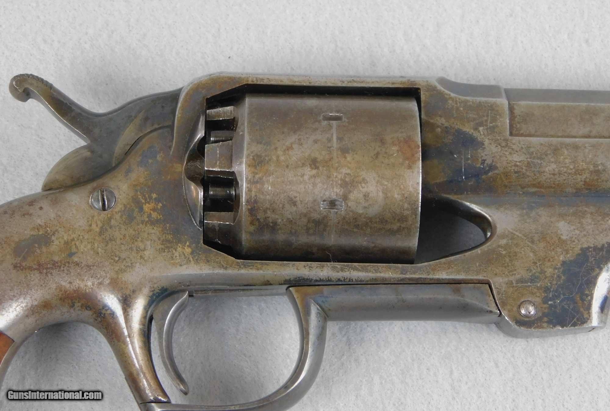 Description: This is single action percussion 44 caliber 6 shot revolver. It #7 and is stamped on both of the grips, cylinder arbor, cylinder, trigger lever rammer and left frame grip. All of the numbers are matching. Flayderman’s Guide to Antique American Firearms says about 700 were produced in 1861.It is recorded that the U.S. Government purchased 536 of them in 1861. This is not martially marked and it is unknown if any were ever so marked. The mechanical function is very crisp and tight. The bore is excellent, bright and shiny, like new. It is very fine condition overall with over 35% original finish remaining. The grips retain over 85% original finish. It is believed that the large 44 caliber Army size revolvers were issued to the 2nd and 3rd regiments of Michigan cavalry during the Civil War. I would consider trades for pre 1899 ANTIQUE PISTOLS and rifles on any of my items.. WHAT DO YOU HAVE TO TRADE? Ask about our 30-90 day lay-away program. We accept Bank Check, Money order, Personal checks or wire transfer. SOLD Antique: Yes |