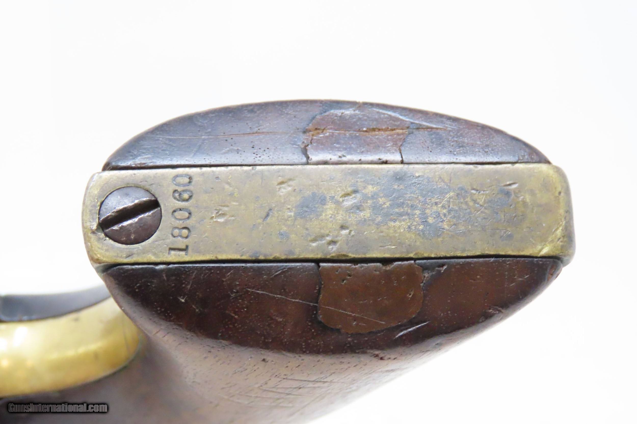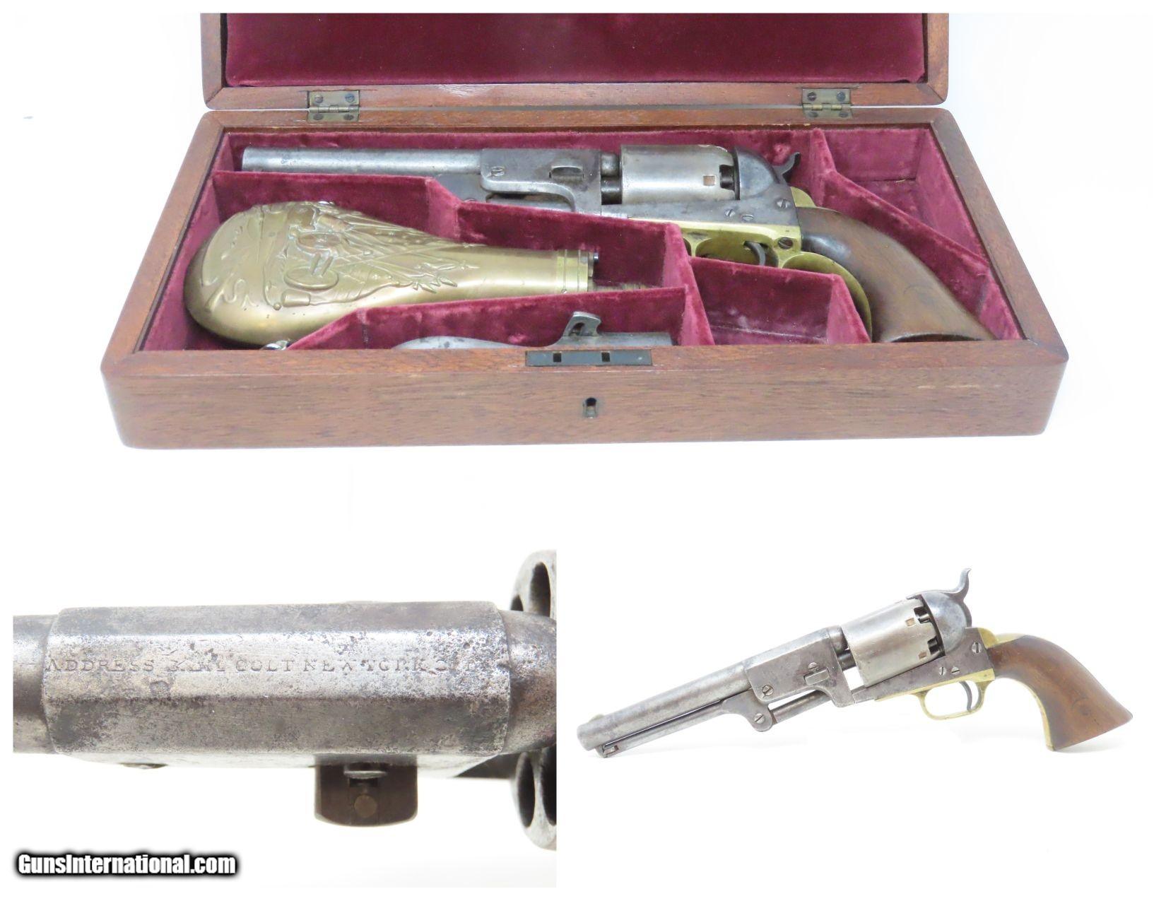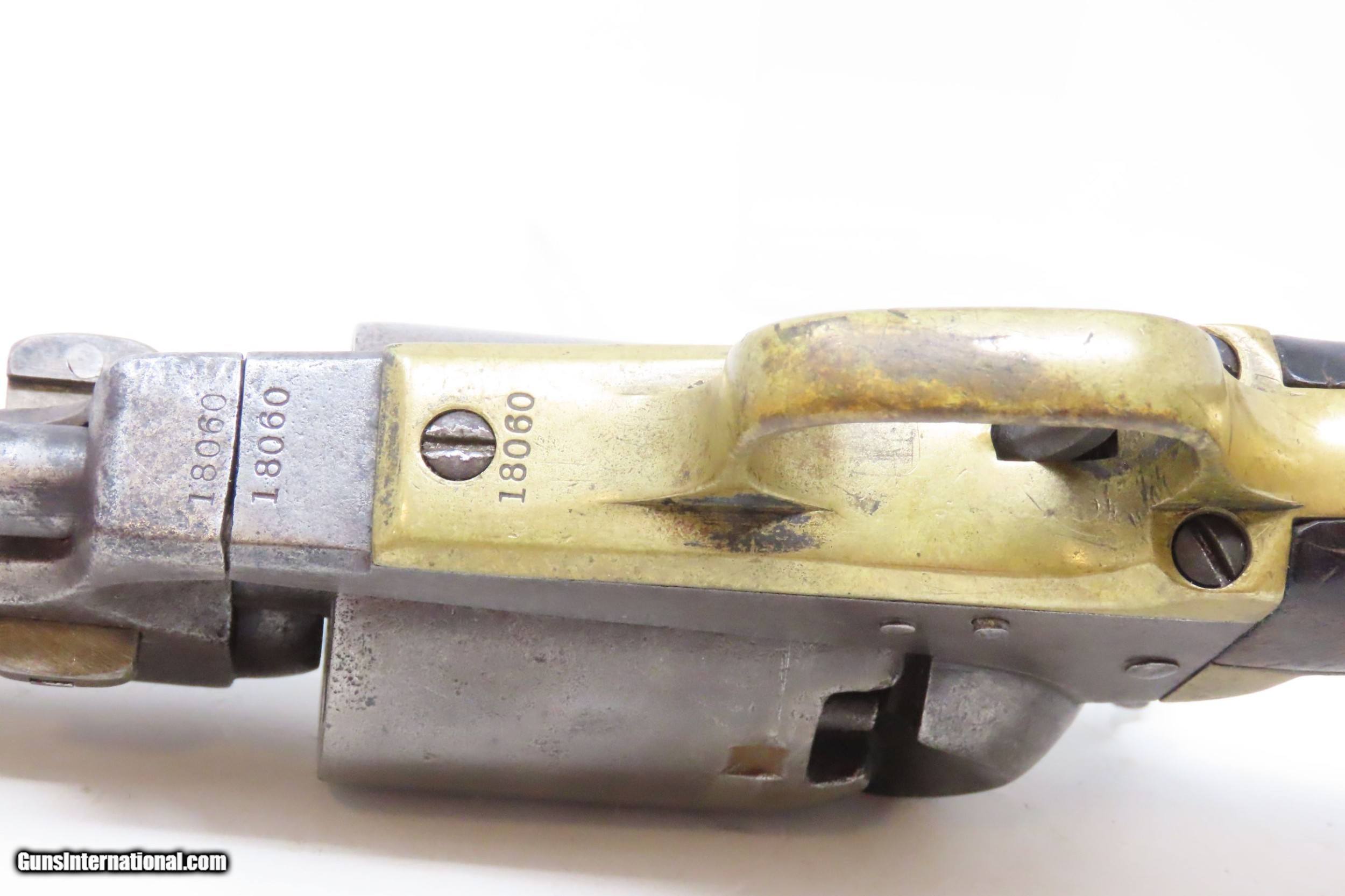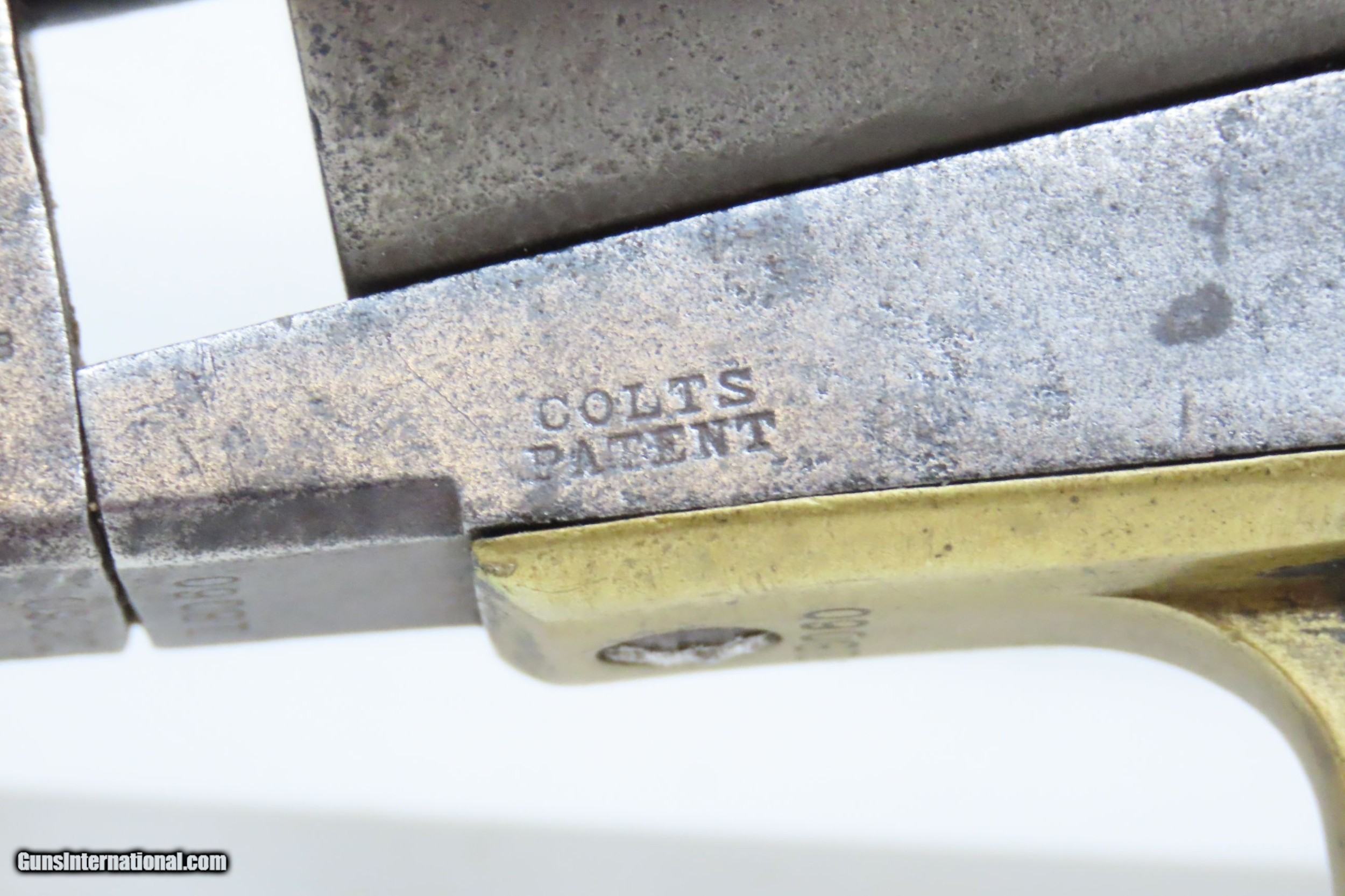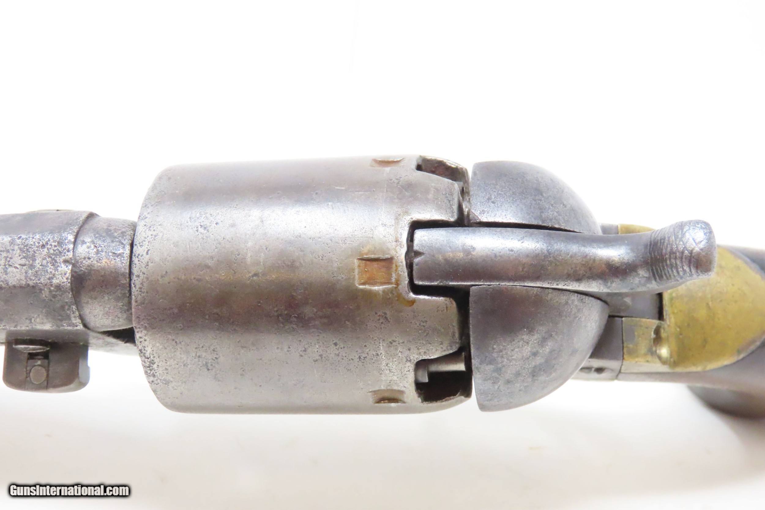 Description: Antique CIVIL WAR Era 3rd Model U.S. COLT DRAGOON .44 Cal. PERC. Revolver One of 10,500; 1855 mfg. with CASE and ACCESSORIES Here we present an antique U.S. Colt 3rd Model Dragoon Revolver, manufactured in 1859 in Hartford, Connecticut. Only 10,500 of this model were produced. The Third Model was first offered in 1851 and continued production through 1861, for a total of 10,500. The revolver is in .44 caliber, weighs 4 pounds and 2 ounces and has a part round and part octagonal barrel. The main difference between a Second and Third Model Dragoon is the change from a square-back trigger-guard to a rounded version. The barrel and cylinder were blued with casehardened frame, hammer and loading lever. The revolver was furnished with one-piece walnut grips which were varnished for the commercial market and oil-stained for the military contracts. Colt’s Dragoons experienced some of the harshest conditions the mid-19th century had to offer, and it is amazing that any survived, in any condition. This revolver was designed for use by horse-mounted rifleman, and it is so much pistol that you will want a horse to carry it for you because of its significant weight. This one would have seen use during the American Civil War. This is a great opportunity to add one of Samuel Colt’s most recognized inventions to your collection, a Civil War era Colt Dragoon! The overall condition is good. The action functions. The cylinder intermittently locks up. The bore is in good shape for its age. You can see in the bottom of the grip there was once a hole on either side of the frame that would have been equipped with a lanyard. The included accoutrements and case are in nice shape. Own the original! This is a legitimate antique and not a reproduction. Barrel is 7-1/2 inches. Caliber: .44 Percussion Overall condition as seen in photos. Very Fast. Very Safe. FREE SHIPPING WORLDWIDE. Delivered directly to your door by express mail! Guaranteed AUTHENTIC & Includes CERTIFICATE OF AUTHENTICITY. ancestryguns $7565 #217401 SOLD Antique: Yes |