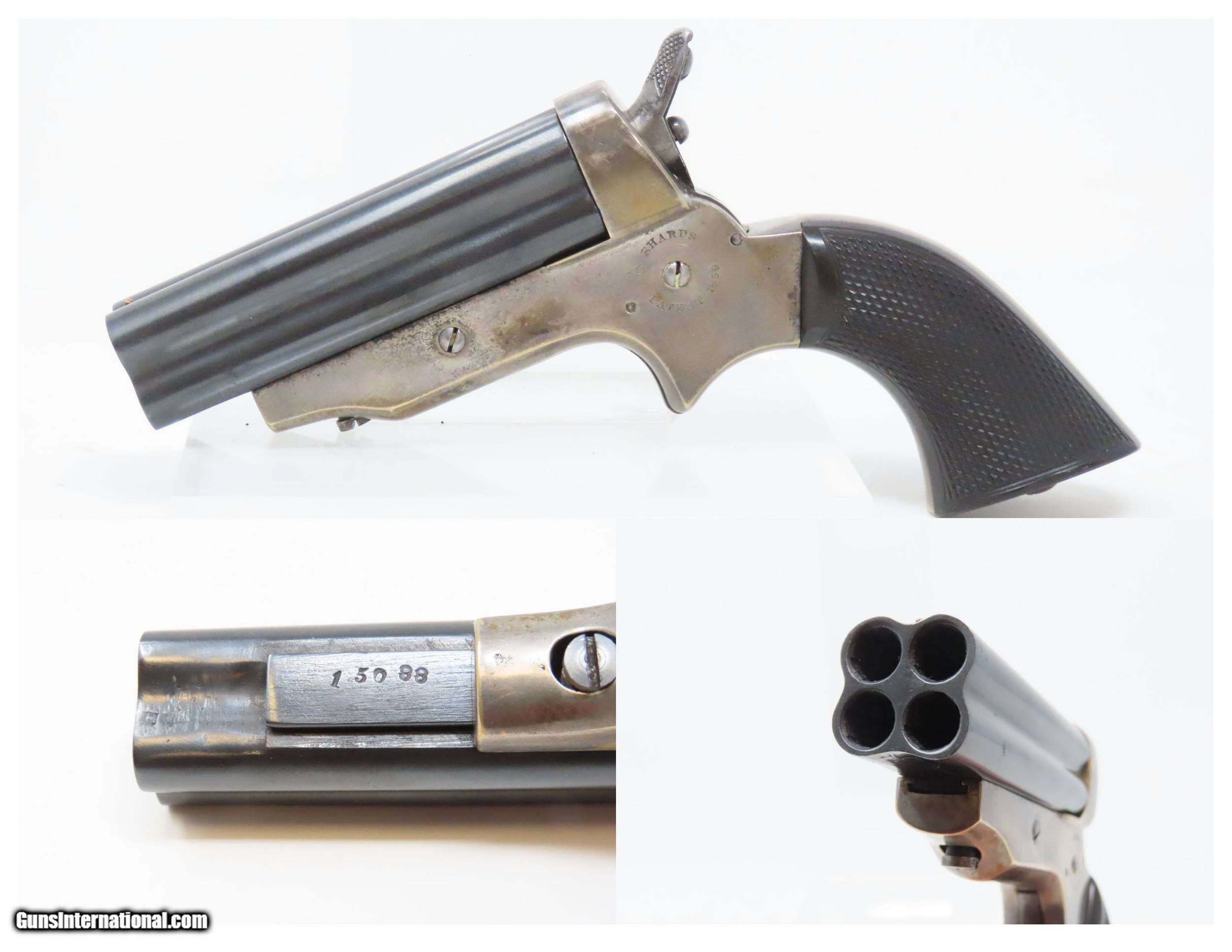 Antique CIVIL WAR Era C. SHARPS Model 2 .30 Cal. Rimfire PEPPERBOX Revolver 4 Shot WILD WEST Self Defense Pocket Gun
