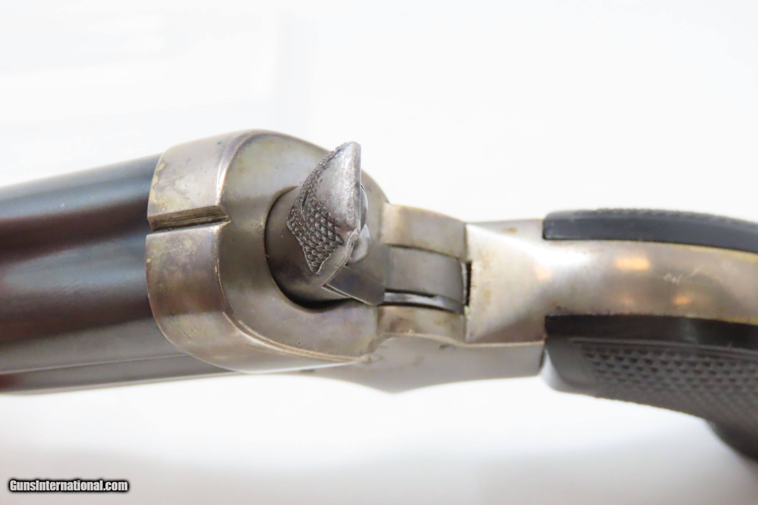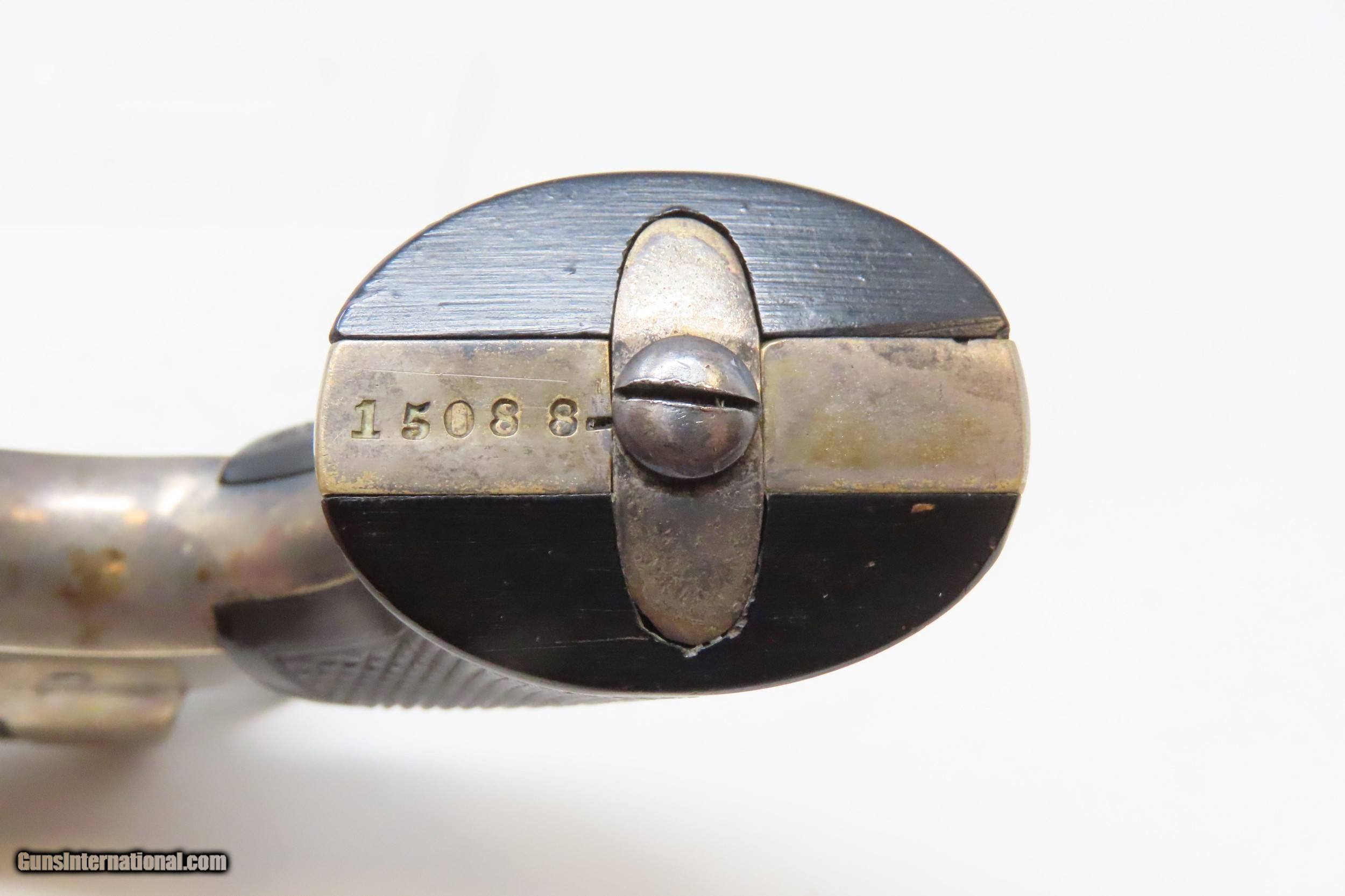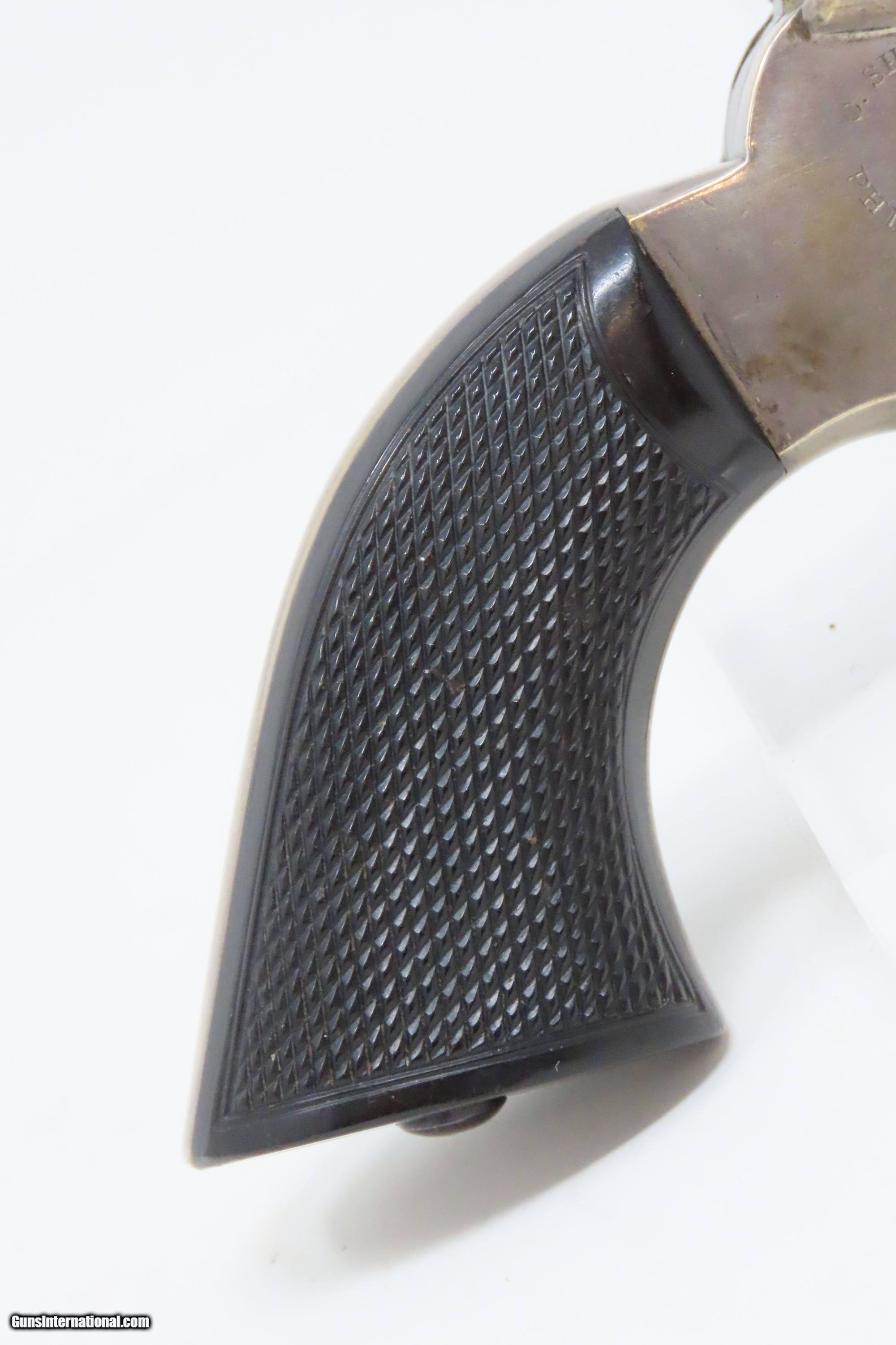 Description: Antique CIVIL WAR Era C. SHARPS Model 2 .30 Cal. Rimfire PEPPERBOX Revolver 4 Shot WILD WEST Self Defense Pocket Gun Here we present an antique Sharps Model 2 Pepperbox Revolver in .30 Rimfire, made circa 1861 with a production run from 1859 to 1862 in Philadelphia, Pennsylvania. Christian Sharps invented his famously namesake large bore, breech-loading rifle in 1848, after practicing gun-making under John Hall at Harpers Ferry Armory. Over the decade and half that Sharps produced his little pistols, some 156,000+ would be manufactured in four basic types. They were the Model 1 in .22 Rimfire with about 89,000 produced, the Model 2 in .30 Rimfire with about 37,000 produced, the Model 3 made by Sharps & Hankins in .32 Rimfire Short with about 15,000 produced and the Model 4, which was the “Bird’s Head” grip in .32 Rimfire Short and Long with another 15,000 produced. In 1859, he premiered another unique design in the 4-barreled pepperbox pistol with a unique revolving firing pin, made for 19th Century concealed carry. In 1862, William Hankins joined the firm and the company became “Sharps & Hankins”. The 3rd Model pistol, which debuted in 1862, differed from the earlier models that began three years earlier. They were larger, .32 caliber as compared to .22 caliber, and had iron frames. When the partnership was dissolved in 1867, production of this model was stopped entirely. The 4th Model, or “birdshead” model was the last Sharps pepperbox produced. Production ceased with the death of Christian Sharps in 1874. This multi-shot design was able to utilize the new rimfire ammunition like Smith & Wesson, without infringing on Smith & Wesson’s Rollin White Patent for bored through chambers on a revolver’s cylinder. This gave Sharps a leg up in the market since everyone else either had to produce single shot pistols, come up with an alternate ammunition and weapon design, or just stick with percussion until the patent expired. They made very nice, easy to use and compact firearms for 19th century conceal and carry. The overall condition is fine. Very nicely refinished with blue and silver plate. The action is excellent and strong. The bores are shiny bright with great rifling. Grips are solid. A fantastic specimen! Own the original! This is a legitimate antique and not a reproduction. Barrel is 3 inches. Caliber: .30 Rimfire Overall condition as seen in photos. Very Fast. Very Safe. FREE SHIPPING WORLDWIDE. Delivered directly to your door by express mail! Guaranteed AUTHENTIC & Includes CERTIFICATE OF AUTHENTICITY. ancestryguns $1650 #227976 SOLD Antique: Yes |