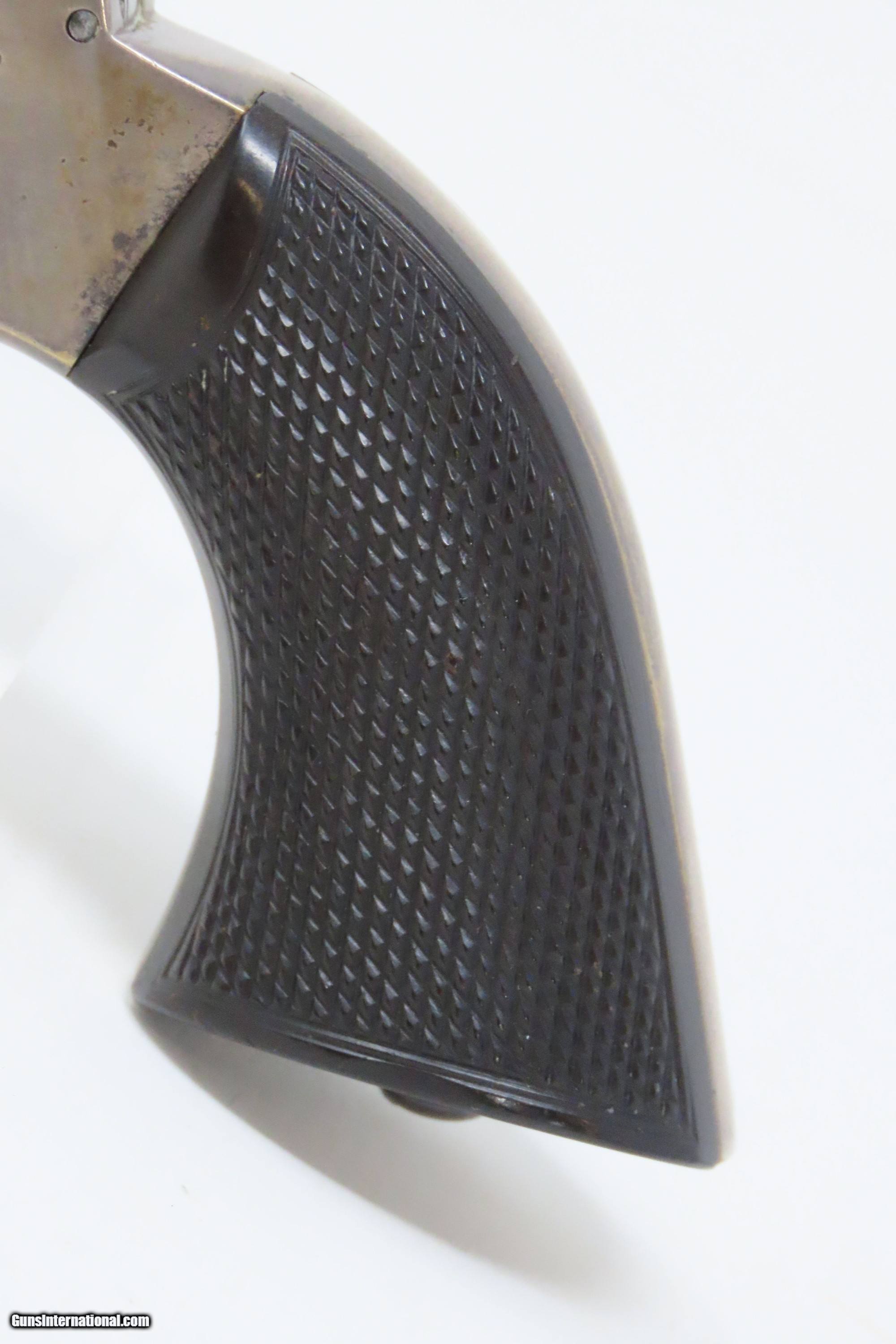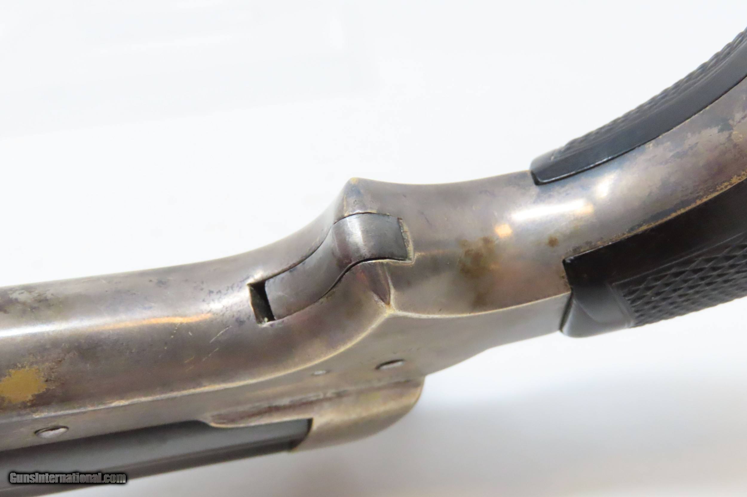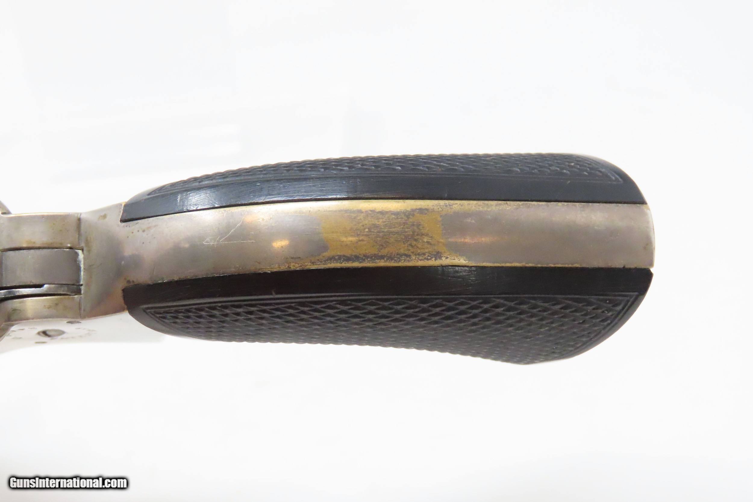 Description: Antique CIVIL WAR Era C. SHARPS Model 2 .30 Cal. Rimfire PEPPERBOX Revolver 4 Shot WILD WEST Self Defense Pocket Gun Here we present an antique Sharps Model 2 Pepperbox Revolver in .30 Rimfire, made circa 1861 with a production run from 1859 to 1862 in Philadelphia, Pennsylvania. Christian Sharps invented his famously namesake large bore, breech-loading rifle in 1848, after practicing gun-making under John Hall at Harpers Ferry Armory. Over the decade and half that Sharps produced his little pistols, some 156,000+ would be manufactured in four basic types. They were the Model 1 in .22 Rimfire with about 89,000 produced, the Model 2 in .30 Rimfire with about 37,000 produced, the Model 3 made by Sharps & Hankins in .32 Rimfire Short with about 15,000 produced and the Model 4, which was the “Bird’s Head” grip in .32 Rimfire Short and Long with another 15,000 produced. In 1859, he premiered another unique design in the 4-barreled pepperbox pistol with a unique revolving firing pin, made for 19th Century concealed carry. In 1862, William Hankins joined the firm and the company became “Sharps & Hankins”. The 3rd Model pistol, which debuted in 1862, differed from the earlier models that began three years earlier. They were larger, .32 caliber as compared to .22 caliber, and had iron frames. When the partnership was dissolved in 1867, production of this model was stopped entirely. The 4th Model, or “birdshead” model was the last Sharps pepperbox produced. Production ceased with the death of Christian Sharps in 1874. This multi-shot design was able to utilize the new rimfire ammunition like Smith & Wesson, without infringing on Smith & Wesson’s Rollin White Patent for bored through chambers on a revolver’s cylinder. This gave Sharps a leg up in the market since everyone else either had to produce single shot pistols, come up with an alternate ammunition and weapon design, or just stick with percussion until the patent expired. They made very nice, easy to use and compact firearms for 19th century conceal and carry. The overall condition is fine. Very nicely refinished with blue and silver plate. The action is excellent and strong. The bores are shiny bright with great rifling. Grips are solid. A fantastic specimen! Own the original! This is a legitimate antique and not a reproduction. Barrel is 3 inches. Caliber: .30 Rimfire Overall condition as seen in photos. Very Fast. Very Safe. FREE SHIPPING WORLDWIDE. Delivered directly to your door by express mail! Guaranteed AUTHENTIC & Includes CERTIFICATE OF AUTHENTICITY. ancestryguns $1650 #227976 SOLD Antique: Yes |