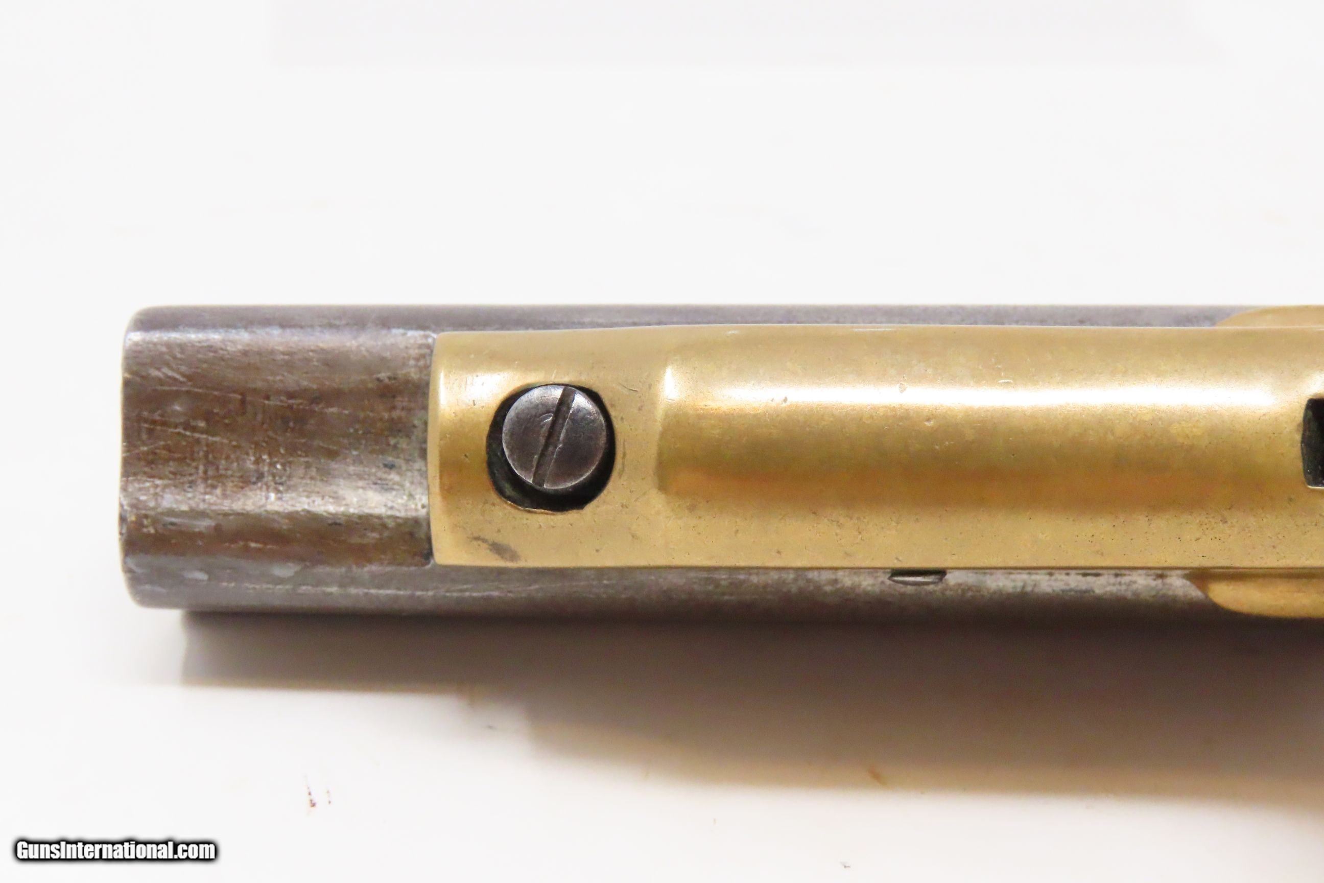 Description: Antique CIVIL WAR/WILD WEST Era C. SHARPS Model 2 .30 RF PEPPERBOX Revolver 4-Shot FRONTIER Self Defense Pocket Gun Here we present an antique Sharps Model 2 Pepperbox Revolver in .30 Rimfire, with a production run from 1859 to 1874 in Philadelphia, Pennsylvania. Christian Sharps invented his famously namesake large bore, breech-loading rifle in 1848, after practicing gun-making under John Hall at Harpers Ferry Armory. Over the decade and half that Sharps produced his little pistols, some 156,000+ would be manufactured in four basic types. They were the Model 1 in .22 Rimfire with about 89,000 produced, the Model 2 in .30 Rimfire with about 37,000 produced, the Model 3 made by Sharps & Hankins in .32 Rimfire Short with about 15,000 produced and the Model 4, which was the “Bird’s Head” grip in .32 Rimfire Short and Long with another 15,000 produced. In 1859, he premiered another unique design in the 4-barreled pepperbox pistol with a unique revolving firing pin, made for 19th Century concealed carry. In 1862, William Hankins joined the firm and the company became “Sharps & Hankins”. The 3rd Model pistol, which debuted in 1862, differed from the earlier models that began three years earlier. They were larger, .32 caliber as compared to .22 caliber, and had iron frames. When the partnership was dissolved in 1867, production of this model was stopped entirely. The 4th Model, or “birdshead” model was the last Sharps pepperbox produced. Production ceased with the death of Christian Sharps in 1874. This repeating design was able to utilize the new rimfire ammunition like Smith & Wesson, without infringing on Smith & Wesson’s Rollin White Patent for bored through chambers on a revolver’s cylinder. This gave Sharps a leg up in the market since everyone else either had to produce single shot pistols, come up with an alternate ammunition and weapon design, or just stick with percussion until the patent expired. They made very nice, easy to use and compact firearms for 19th century conceal and carry. The overall condition is good. Strong action all around, as the firing pin rotates to all positions. The bores are in good shape with a light shimmer and visible rifling. Markings are worn, but legible. Numbers match. . Both grips are in great shape with a smooth finish and only light handling wear. Own the original! This is a legitimate antique and not a reproduction. Barrel is 3 inches. Caliber: .30 Rimfire Overall condition as seen in photos. Very Fast. Very Safe. FREE SHIPPING WORLDWIDE. Delivered directly to your door by express mail! Guaranteed AUTHENTIC & Includes CERTIFICATE OF AUTHENTICITY. ancestryguns $1350 #233287 SOLD Antique: Yes |