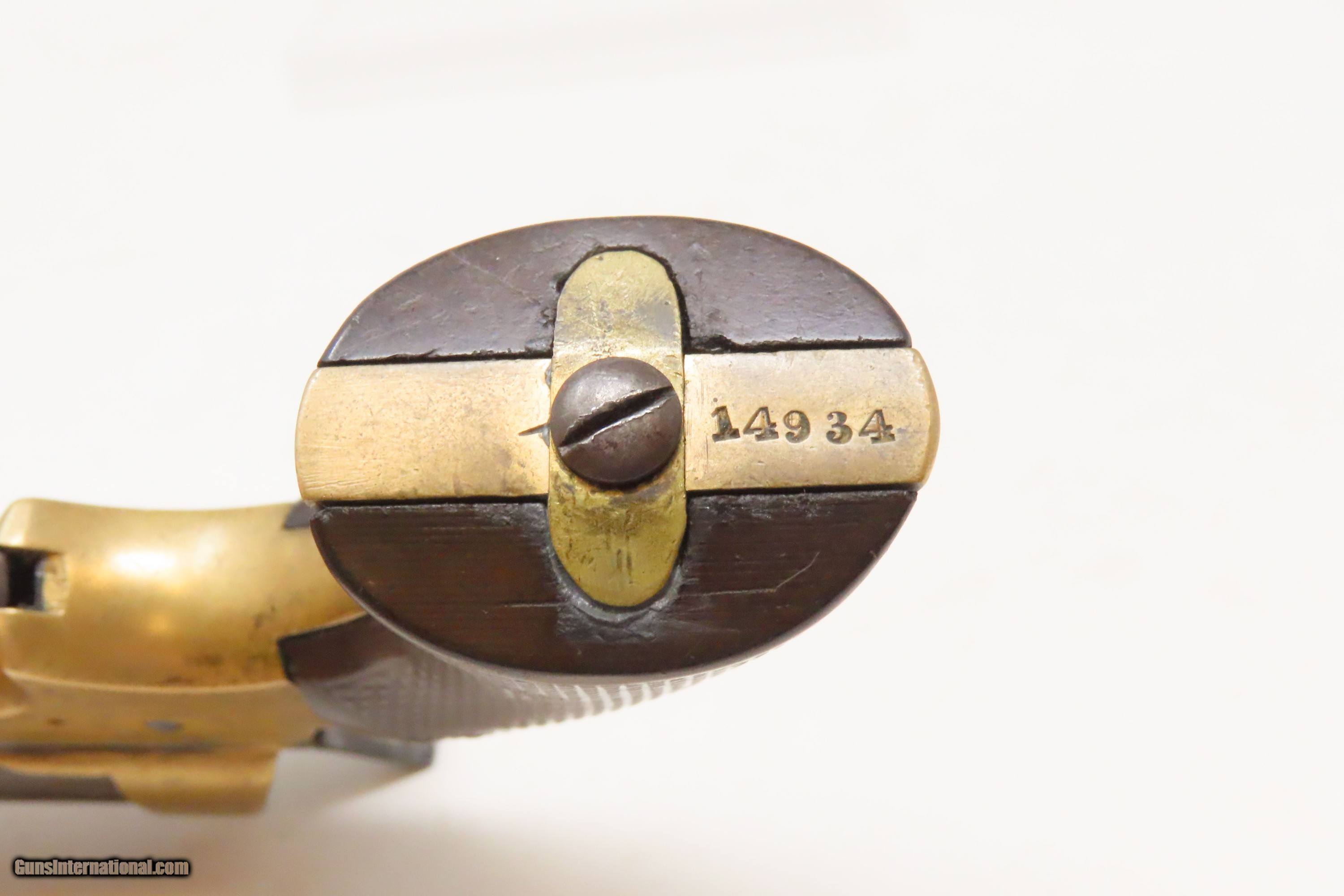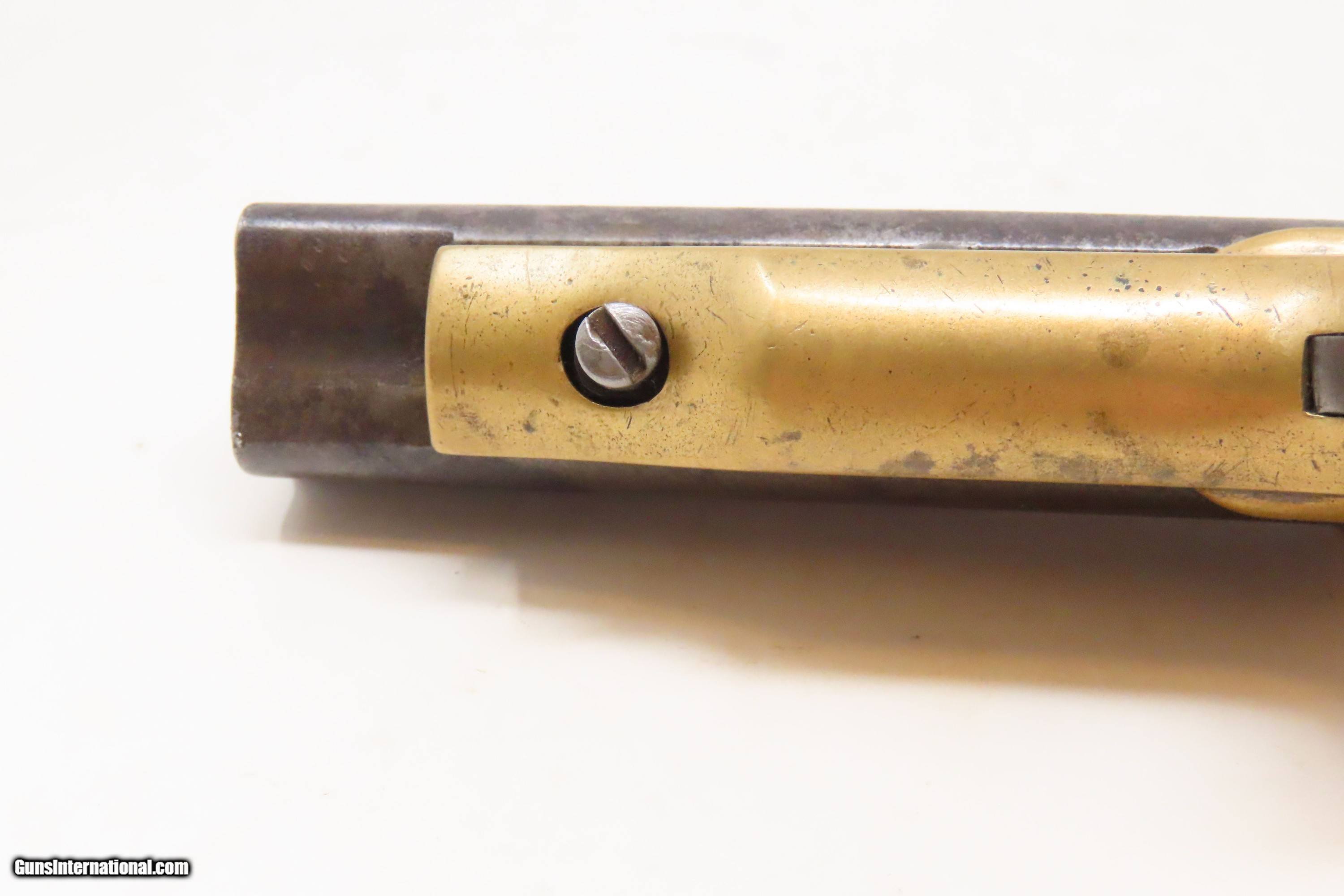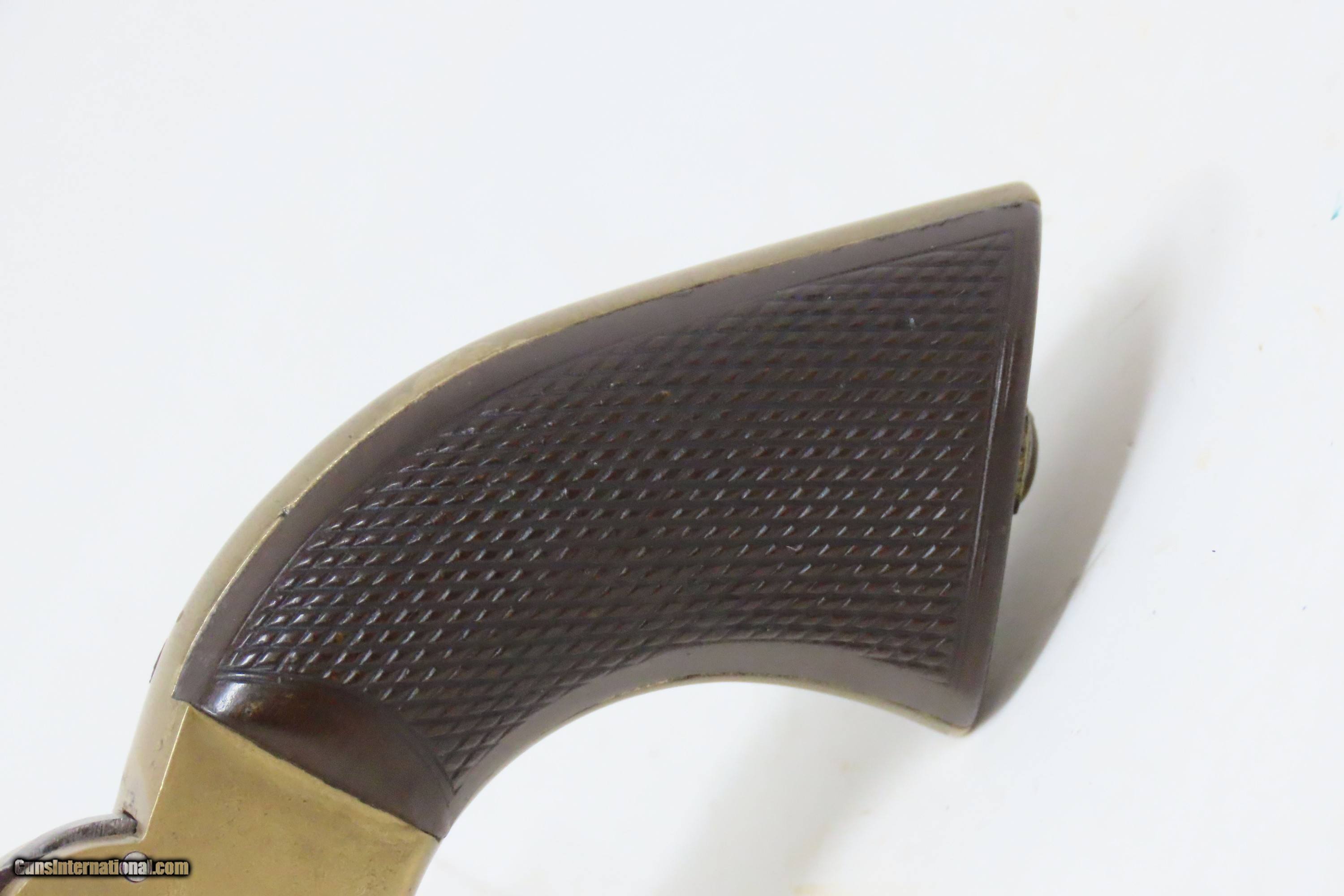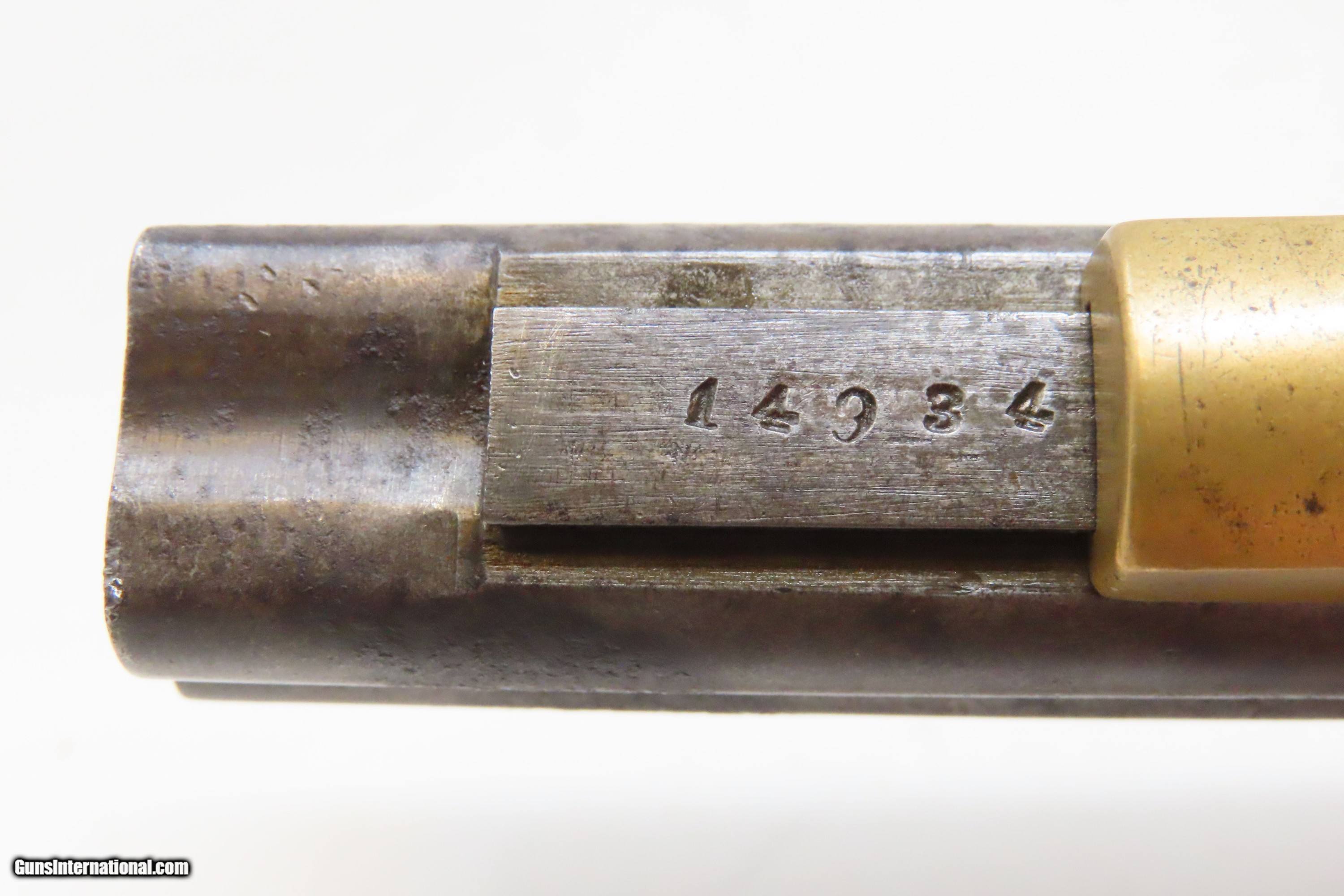 Description: Antique CIVIL WAR/WILD WEST Era C. SHARPS Model 2 .30 RF PEPPERBOX Revolver 4-Shot FRONTIER Self Defense Pocket Gun Here we present an antique Sharps Model 2 Pepperbox Revolver in .30 Rimfire, with a production run from 1859 to 1874 in Philadelphia, Pennsylvania. Christian Sharps invented his famously namesake large bore, breech-loading rifle in 1848, after practicing gun-making under John Hall at Harpers Ferry Armory. Over the decade and half that Sharps produced his little pistols, some 156,000+ would be manufactured in four basic types. They were the Model 1 in .22 Rimfire with about 89,000 produced, the Model 2 in .30 Rimfire with about 37,000 produced, the Model 3 made by Sharps & Hankins in .32 Rimfire Short with about 15,000 produced and the Model 4, which was the “Bird’s Head” grip in .32 Rimfire Short and Long with another 15,000 produced. In 1859, he premiered another unique design in the 4-barreled pepperbox pistol with a unique revolving firing pin, made for 19th Century concealed carry. In 1862, William Hankins joined the firm and the company became “Sharps & Hankins”. The 3rd Model pistol, which debuted in 1862, differed from the earlier models that began three years earlier. They were larger, .32 caliber as compared to .22 caliber, and had iron frames. When the partnership was dissolved in 1867, production of this model was stopped entirely. The 4th Model, or “birdshead” model was the last Sharps pepperbox produced. Production ceased with the death of Christian Sharps in 1874. The overall condition is good. Strong action. The firing pin rotates to all four positions. Bright, rifled bores. Solid grips. Numbers match. Markings are legible throughout. Own the original! This is a legitimate antique and not a reproduction. Barrel is 3 inches. Caliber: .30 Rimfire Overall condition as seen in photos. Very Fast. Very Safe. FREE SHIPPING WORLDWIDE. Delivered directly to your door by express mail! Guaranteed AUTHENTIC & Includes CERTIFICATE OF AUTHENTICITY. ancestryguns $1350 #233855 SOLD Antique: Yes |