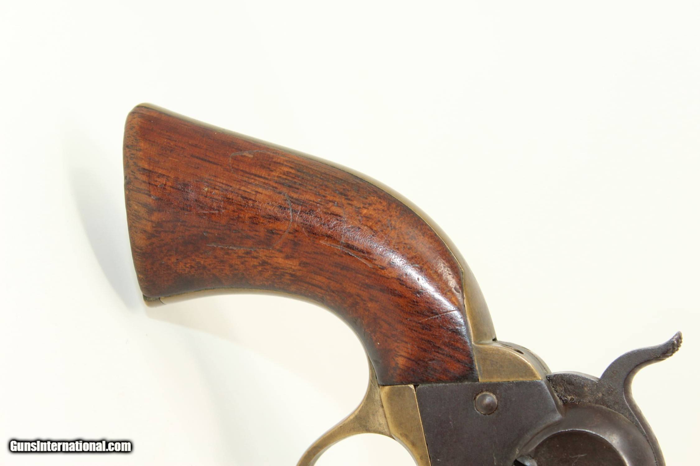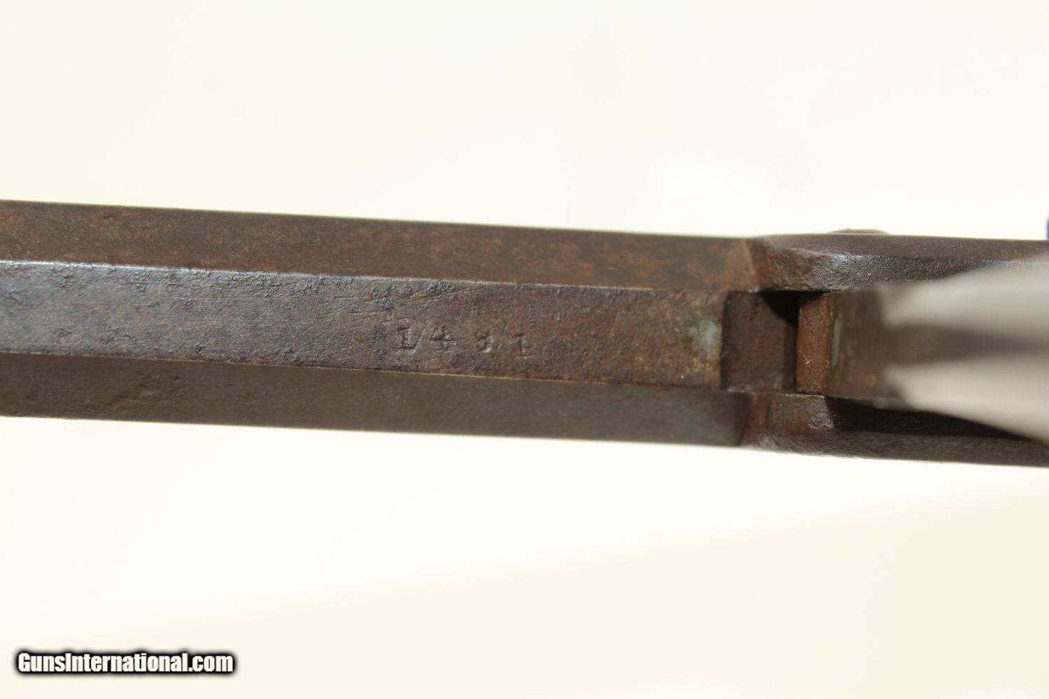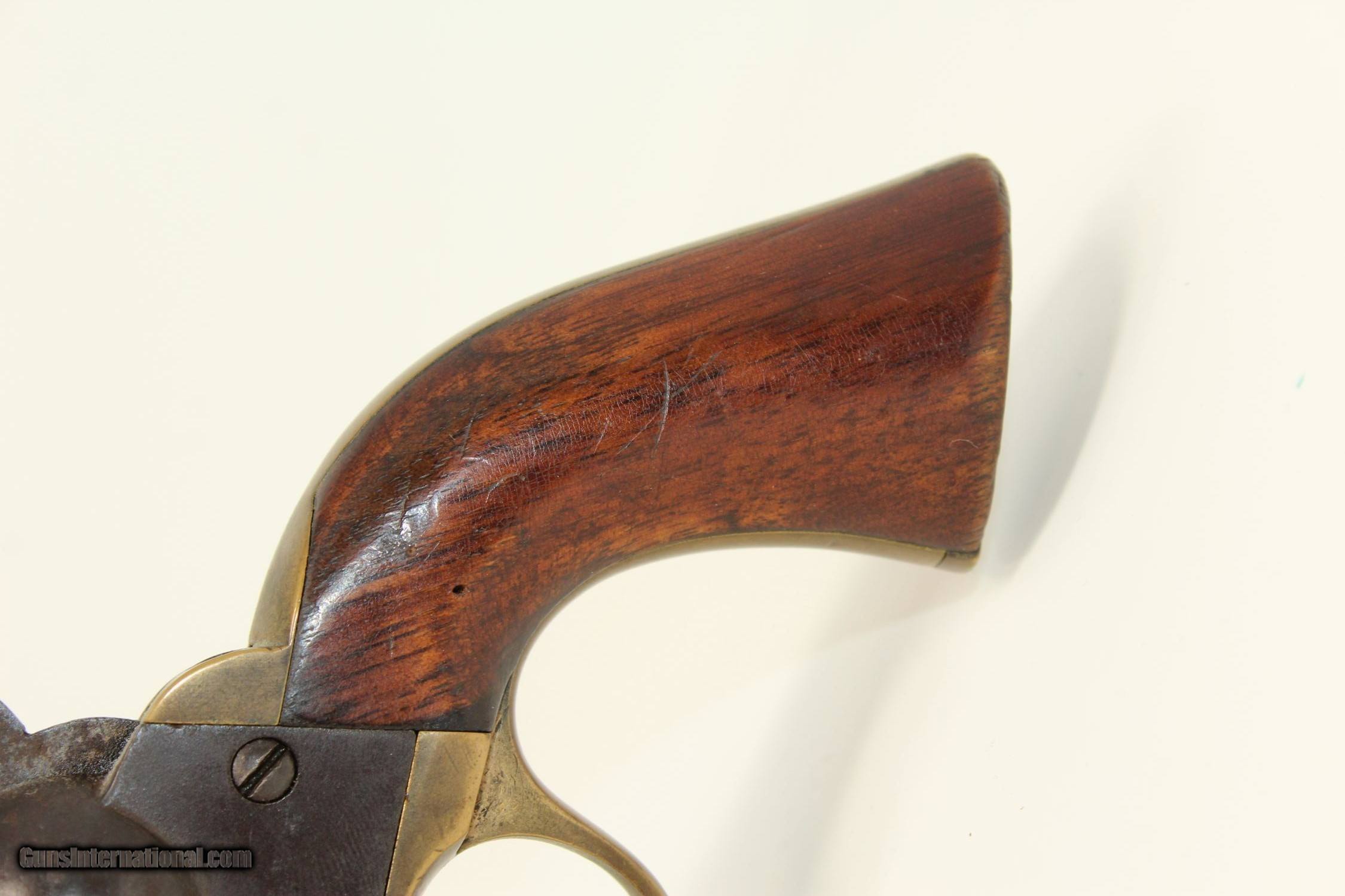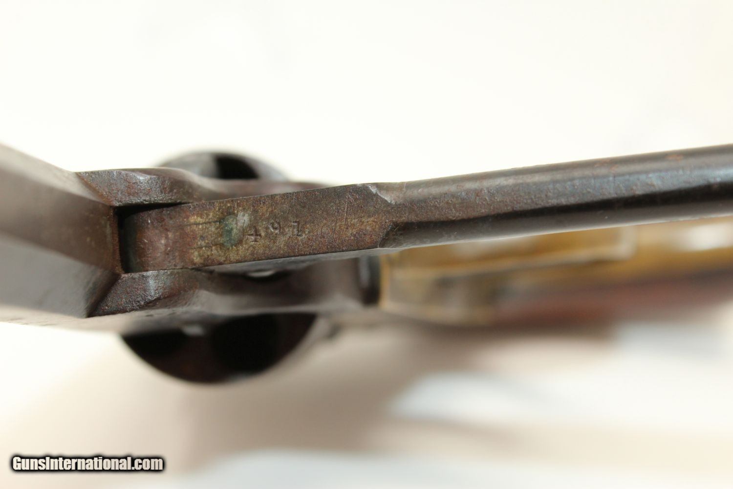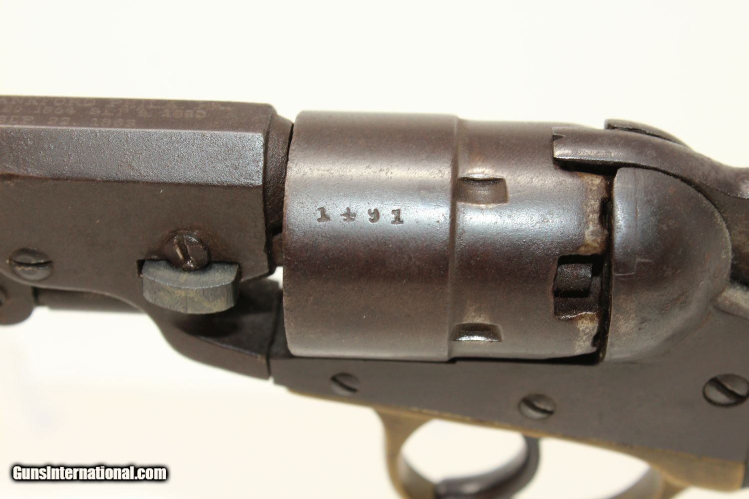 Description: Antique J. M. COOPER Double Action NAVY Revolver Early Double Action Colt 1849-like Percussion Revolver Here we present an antique J.M. Cooper Double Action Navy Revolver, made circa 1864 in Philadelphia, Pennsylvania. During a time of rapid innovation in firearms technology and an insatiable market due to rapid expansion and the American Civil War, dozens of makers seized their opportunity to put their ideas on the market. The J.M. Cooper Double Action Revolver took the concept of the Colt 1849 Pocket Model and improved it by giving it a double action firing mechanism, resulting in their own “Pocket” model. This is an example of a slightly larger, .36 caliber revolver, probably inspired to try to obtain Naval contracts. Only about 15,000 of these Navy Models were made from 1864 to 1869. The overall condition is very good. The iron parts have a dark gray patina. The markings are clear. The numbers match with the exception of the barrel wedge. The walnut grips bear the original varnish and are in great shape. The bore is dark and dusty with strong rifling. The mechanism is only functional in double action. Here is a great example of a double action alternative to Colts and S&Ws of the period! Own the original! This is a legitimate antique and not a reproduction. Barrel is 6 inches. Caliber: .36 Percussion Overall condition as seen in photos. Very Fast. Very Safe. FREE SHIPPING WORLDWIDE. Delivered directly to your door by express mail! Guaranteed AUTHENTIC & Includes CERTIFICATE OF AUTHENTICITY. ancestryguns $1350 #190636 SOLD Antique: Yes |