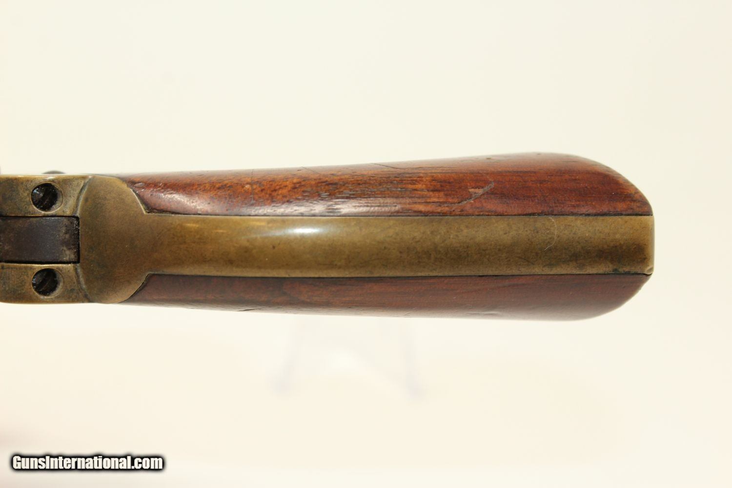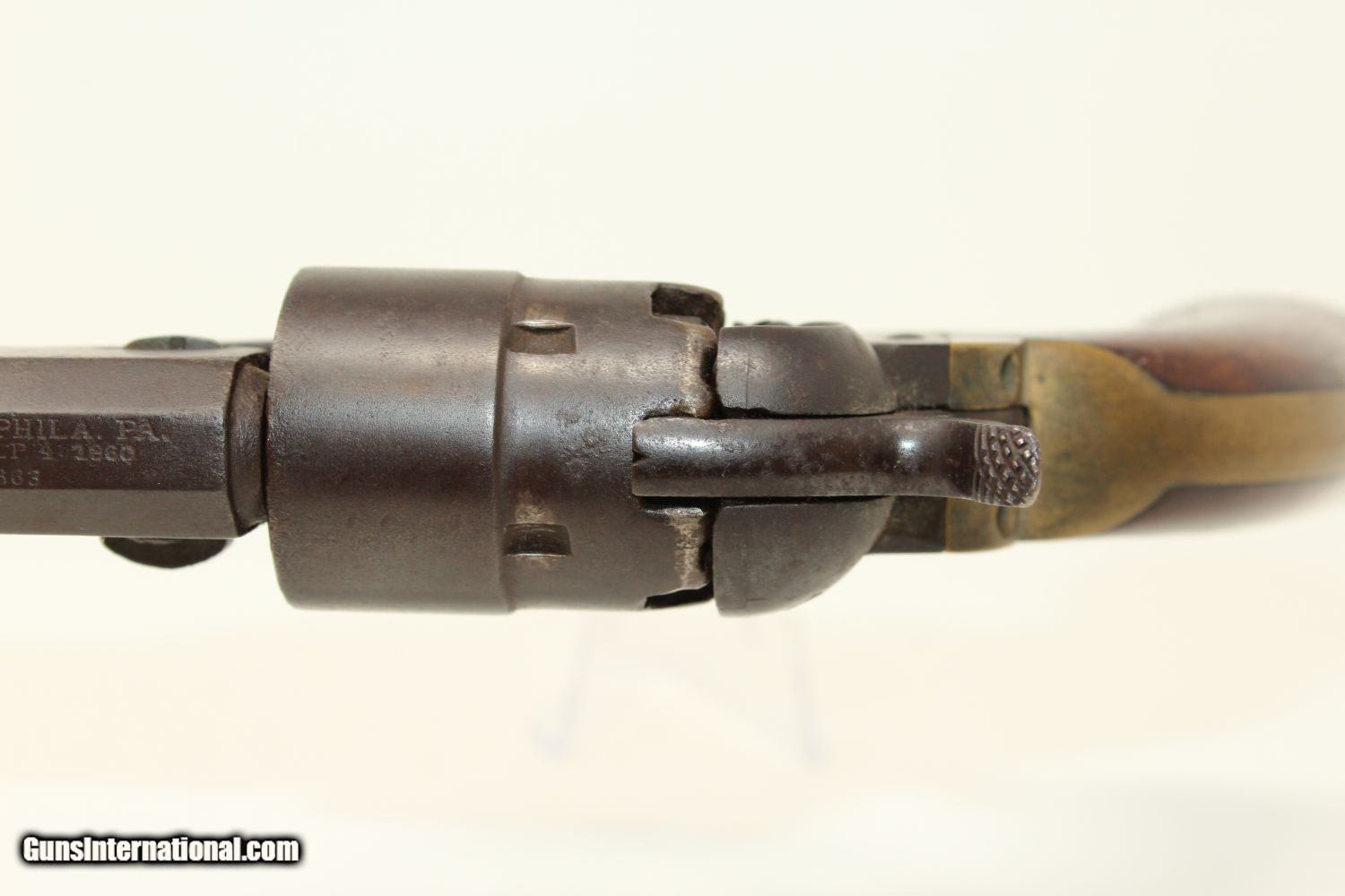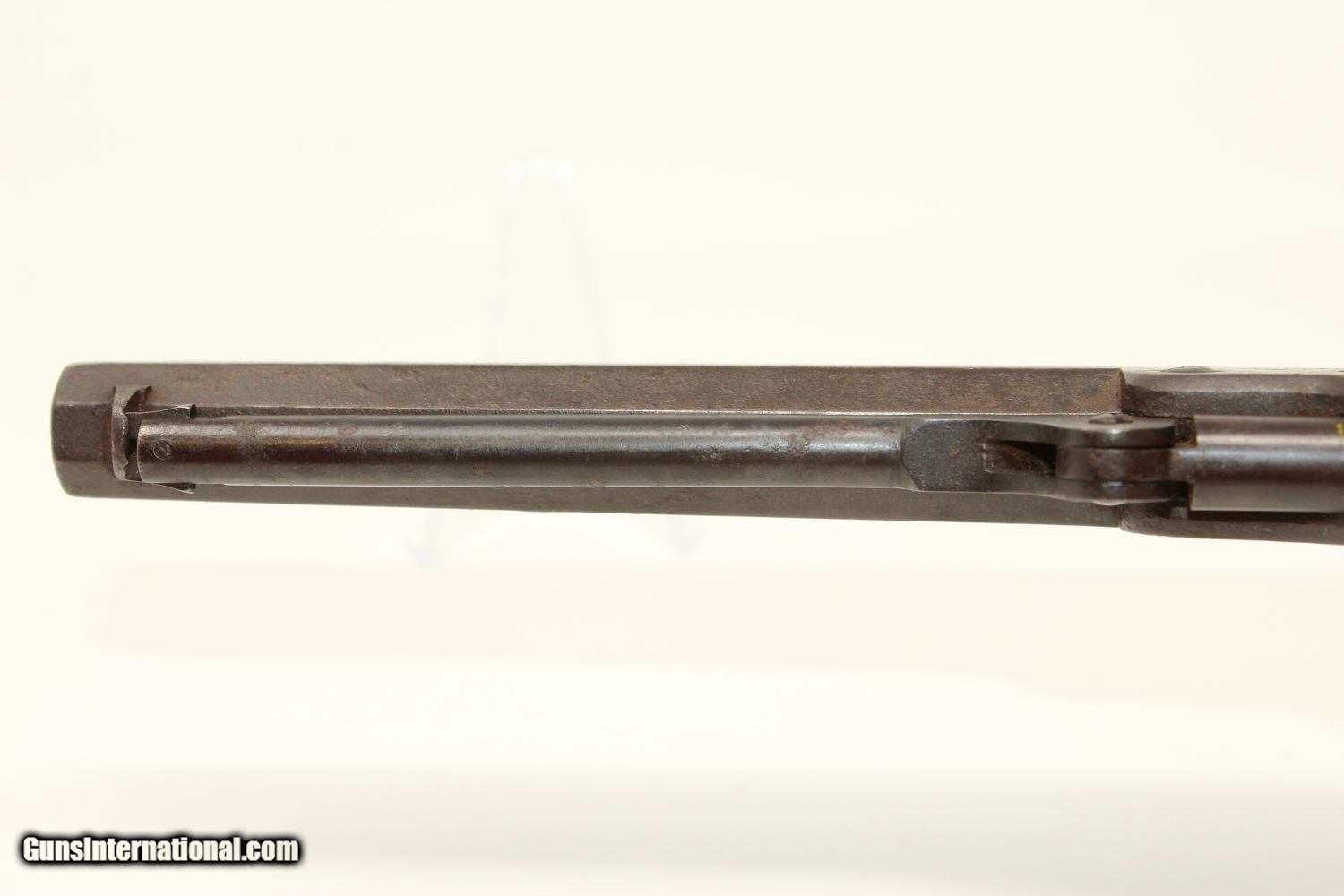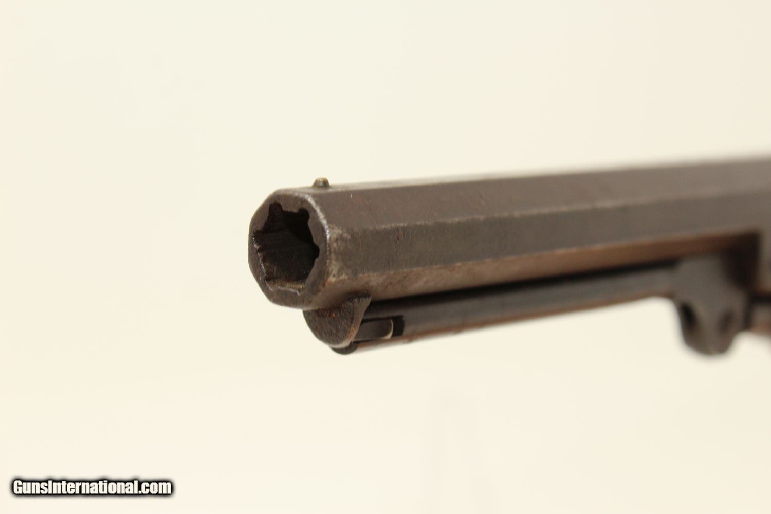 Description: Antique J. M. COOPER Double Action NAVY Revolver Early Double Action Colt 1849-like Percussion Revolver Here we present an antique J.M. Cooper Double Action Navy Revolver, made circa 1864 in Philadelphia, Pennsylvania. During a time of rapid innovation in firearms technology and an insatiable market due to rapid expansion and the American Civil War, dozens of makers seized their opportunity to put their ideas on the market. The J.M. Cooper Double Action Revolver took the concept of the Colt 1849 Pocket Model and improved it by giving it a double action firing mechanism, resulting in their own “Pocket” model. This is an example of a slightly larger, .36 caliber revolver, probably inspired to try to obtain Naval contracts. Only about 15,000 of these Navy Models were made from 1864 to 1869. The overall condition is very good. The iron parts have a dark gray patina. The markings are clear. The numbers match with the exception of the barrel wedge. The walnut grips bear the original varnish and are in great shape. The bore is dark and dusty with strong rifling. The mechanism is only functional in double action. Here is a great example of a double action alternative to Colts and S&Ws of the period! Own the original! This is a legitimate antique and not a reproduction. Barrel is 6 inches. Caliber: .36 Percussion Overall condition as seen in photos. Very Fast. Very Safe. FREE SHIPPING WORLDWIDE. Delivered directly to your door by express mail! Guaranteed AUTHENTIC & Includes CERTIFICATE OF AUTHENTICITY. ancestryguns $1350 #190636 SOLD Antique: Yes |