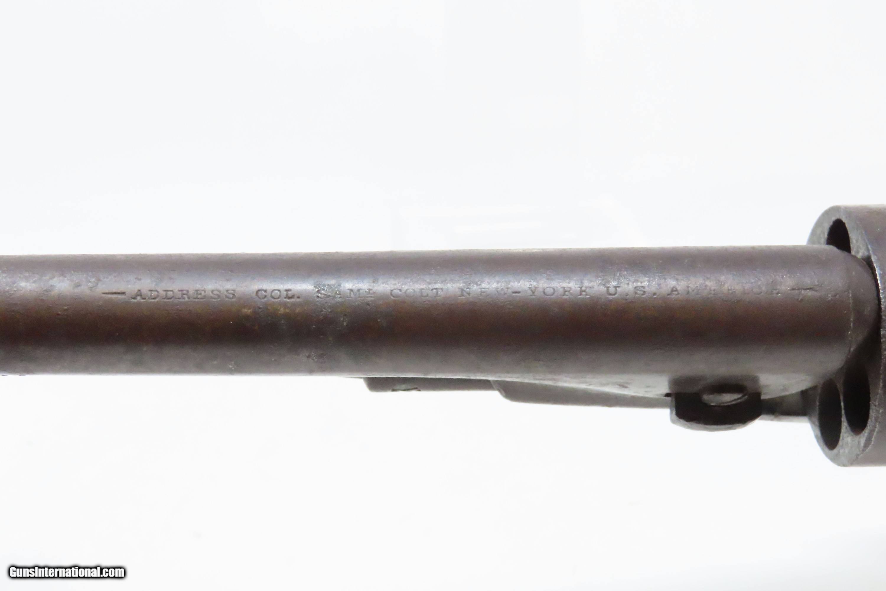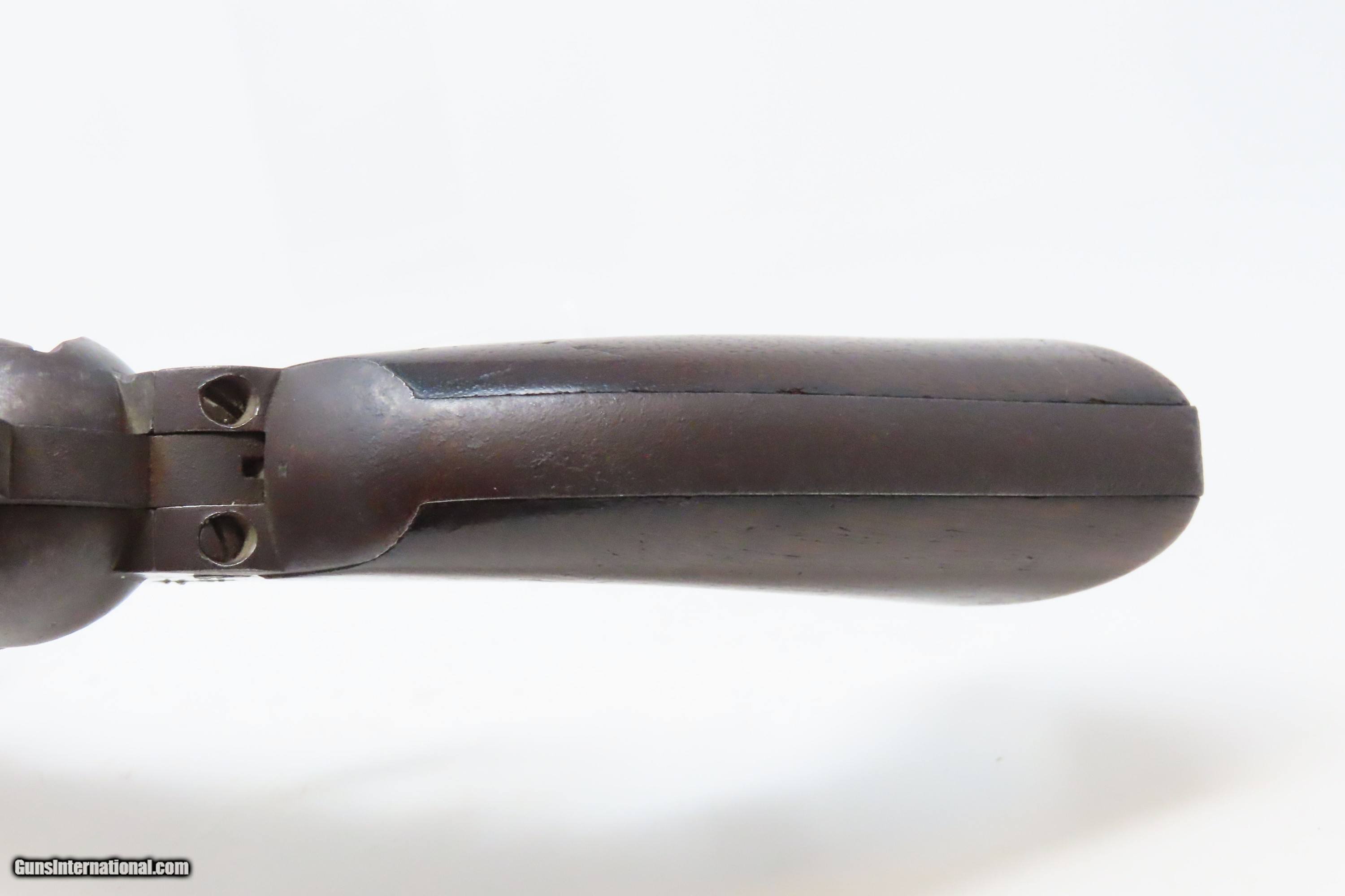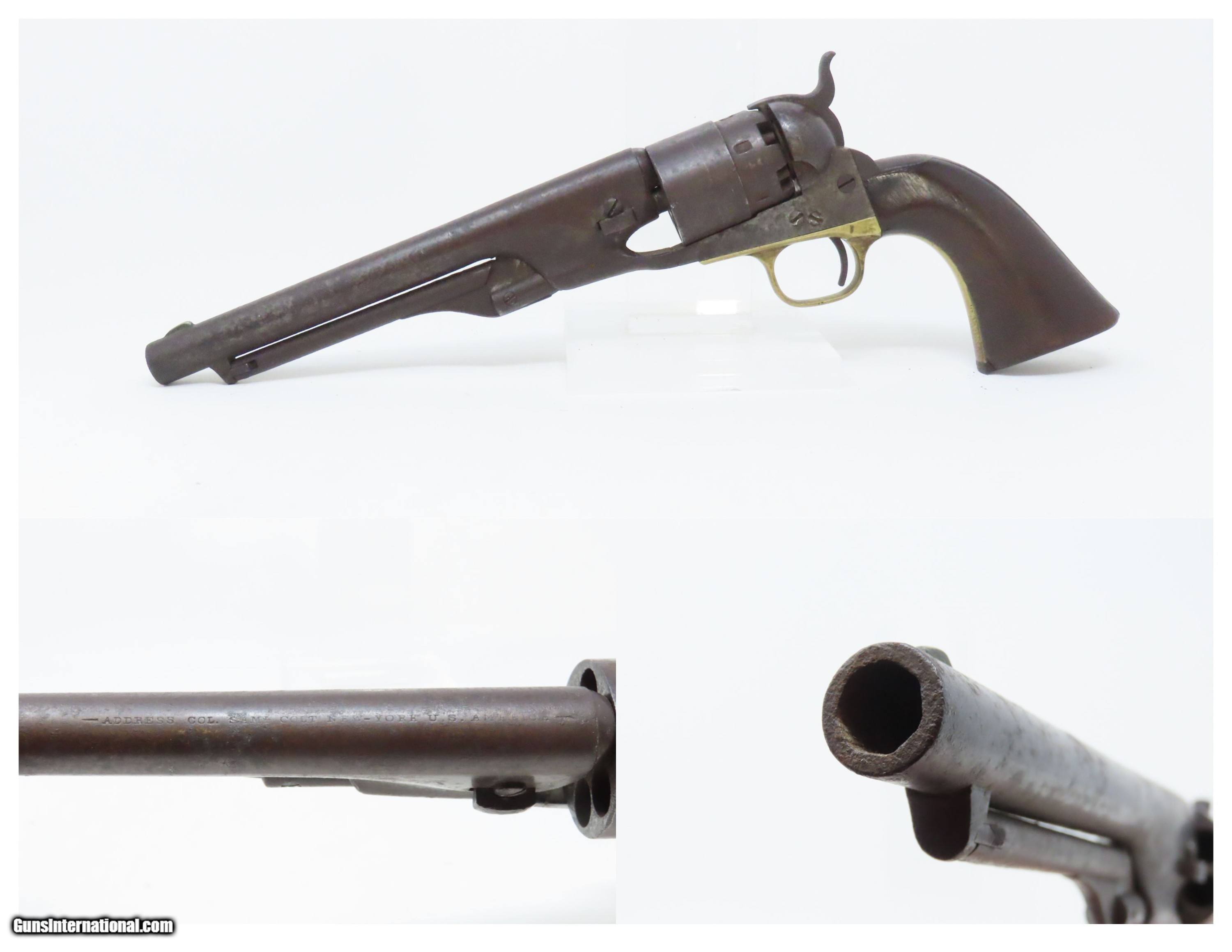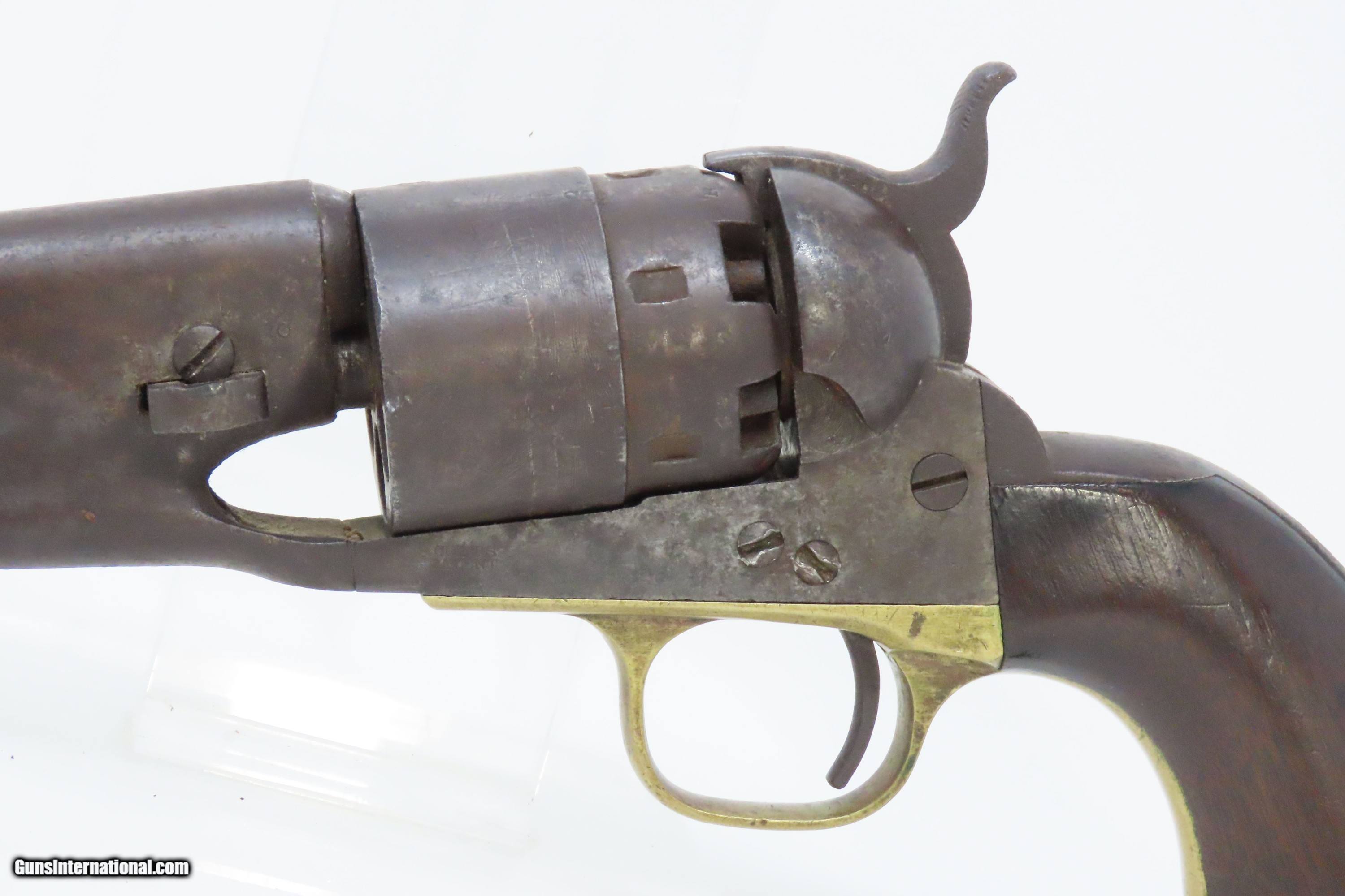 Description: Antique Mid-CIVIL WAR COLT U.S. Model 1860 ARMY .44 Cal Percussion REVOLVER U.S. INSPECTED Revolver used into the WILD WEST Here we present an antique Colt U.S. Model 1860 Army Percussion Revolver, made in 1862 in Hartford, Connecticut. The 1860 Army was the single most used pistol of the American Civil War. Over 200,000 were made from 1860 to 1873, and 156,000 of those were made by the end of the war in 1865. These were excellent sidearms for officers, cavalry, infantry, and artillery troops. The 1860 Army was Samuel Colt’s finest achievement to that point, having finally developed a large caliber revolver that weighed about 2 lbs. 10 oz. to the famous Dragoon’s 4 lbs. 4 oz., and was adopted en masse by the U.S. government with huge contracts. The revolver was well balanced in hand and had a long enough barrel to be effective when utilized as a carbine with the attachable shoulder stock. This revolver represented unprecedented firepower from a handgun in the field at the time and was especially suited to Cavalry. The Confederacy, lacking in manufacturing capabilities though they were, managed to produce limited numbers of copies, and battlefield pickups of the 1860 Army were highly coveted. The 1860 Army went on to serve the U.S. military even after the Civil War and into the Indian Wars, until production of Colt’s 1873 Single Action Army created new waves in the revolver market, and again achieved great success in the military and commercial markets. The overall condition is good+. Dark, untouched patina throughout. The action is excellent with solid lockup. The cylinder scene is still visible. The bore is in good shape and untouched like the exterior with very strong rifling. The grip is solid and shows a faint cartouche on the left and a stronger cartouche on the right. Numbers match throughout. A nice original piece! Own the original! This is a legitimate antique and not a reproduction. Barrel is 8 inches. Caliber: .44 Percussion Overall condition as seen in photos. Very Fast. Very Safe. FREE SHIPPING WORLDWIDE. Delivered directly to your door by express mail! Guaranteed AUTHENTIC & Includes CERTIFICATE OF AUTHENTICITY. ancestryguns $2900 #227843 SOLD Antique: Yes |