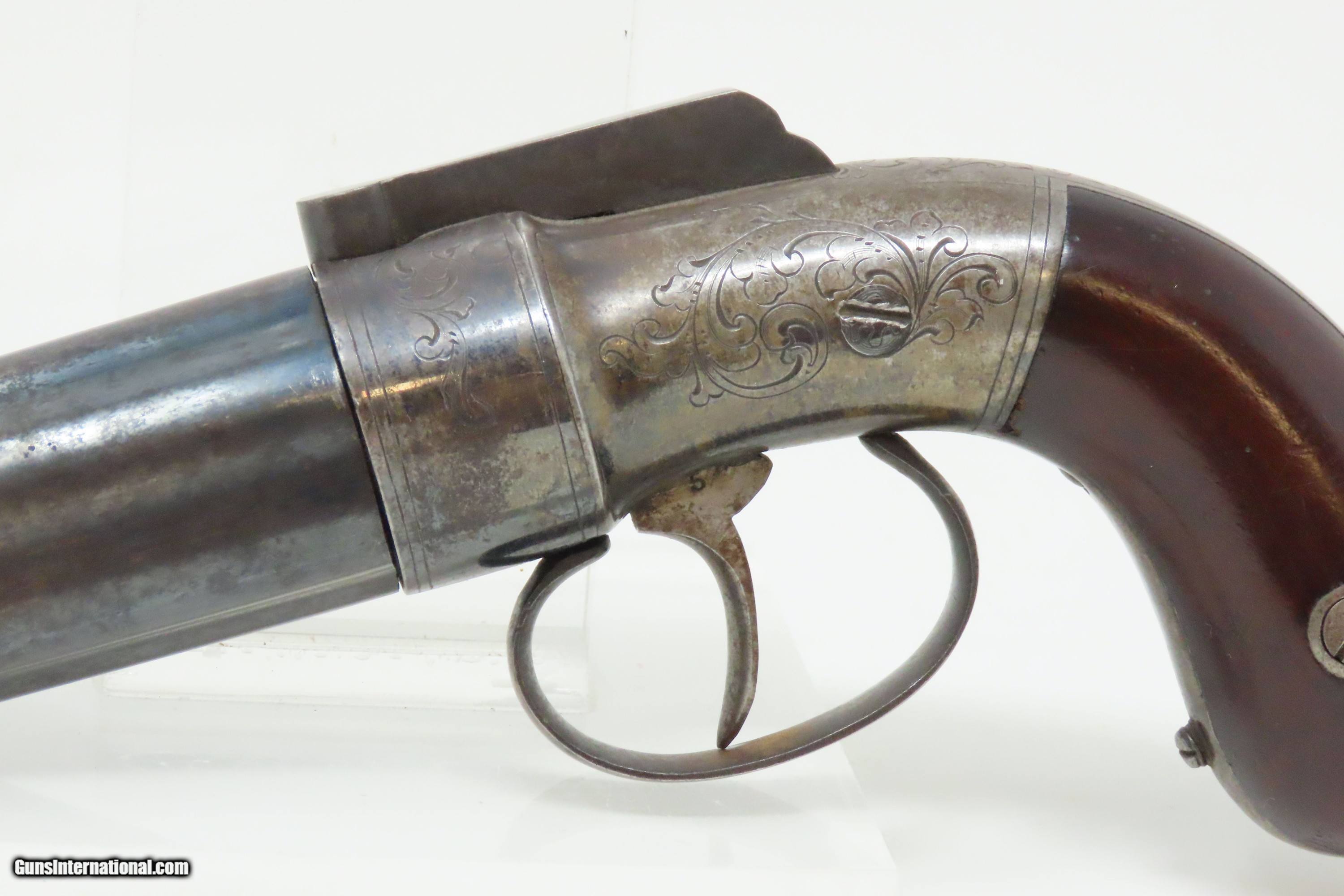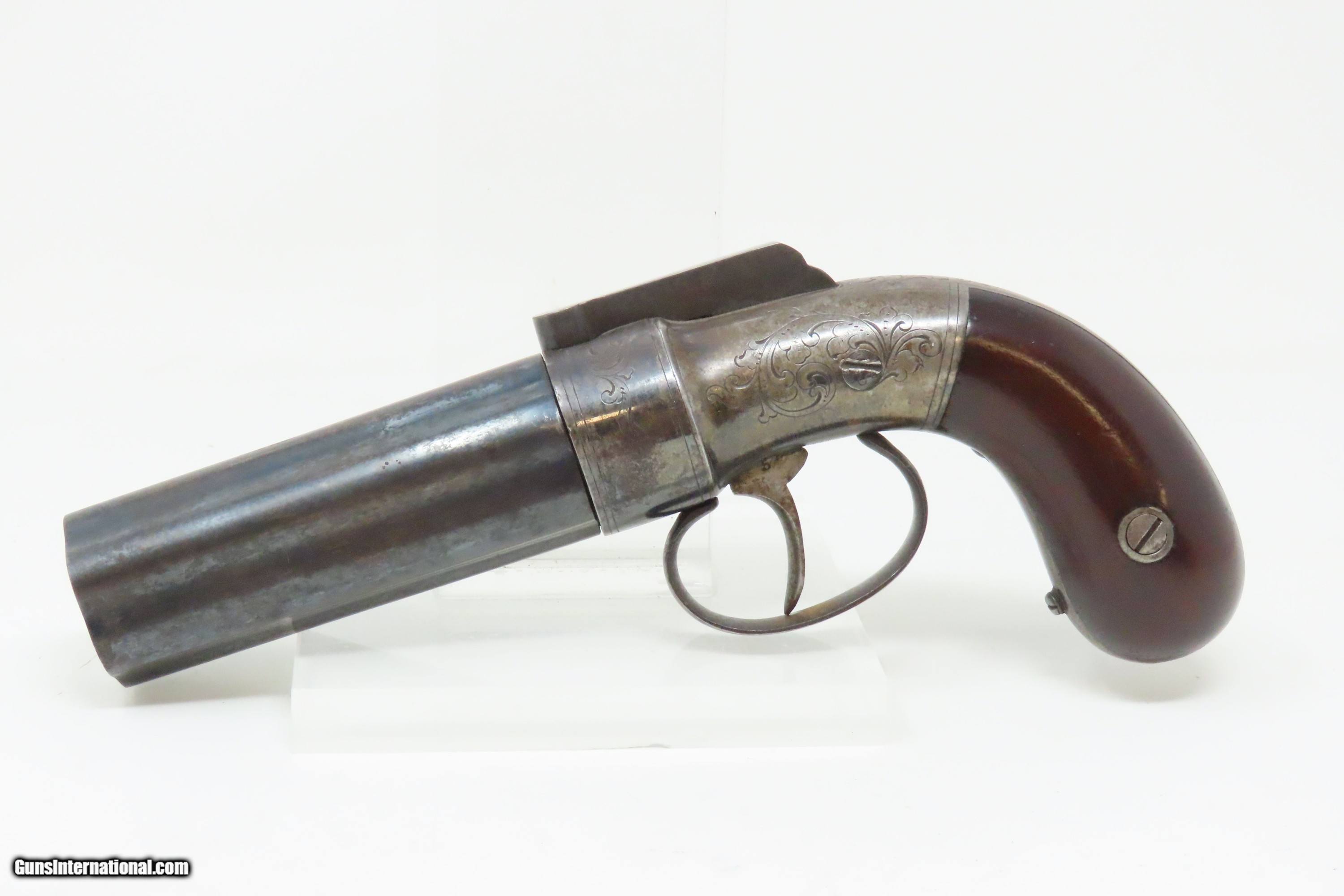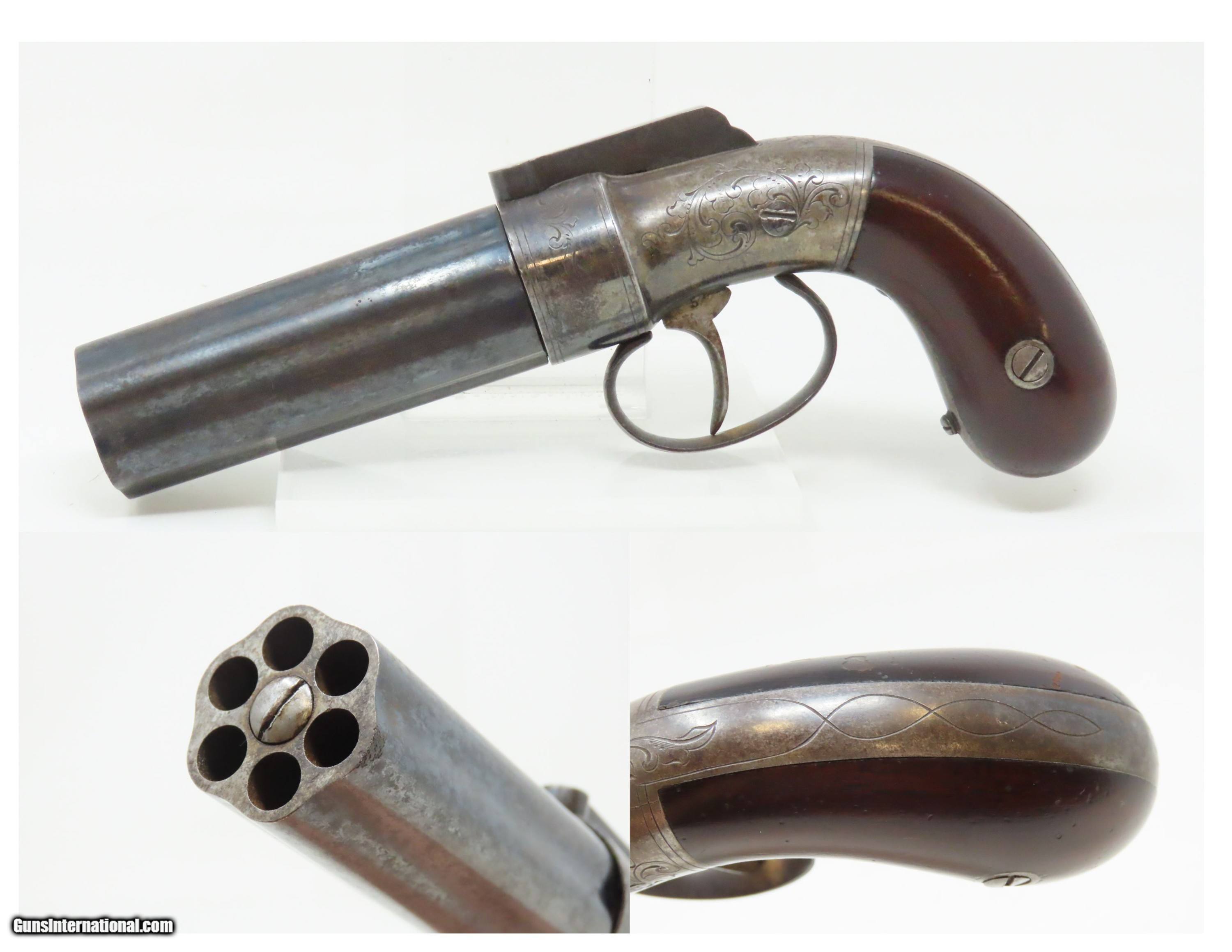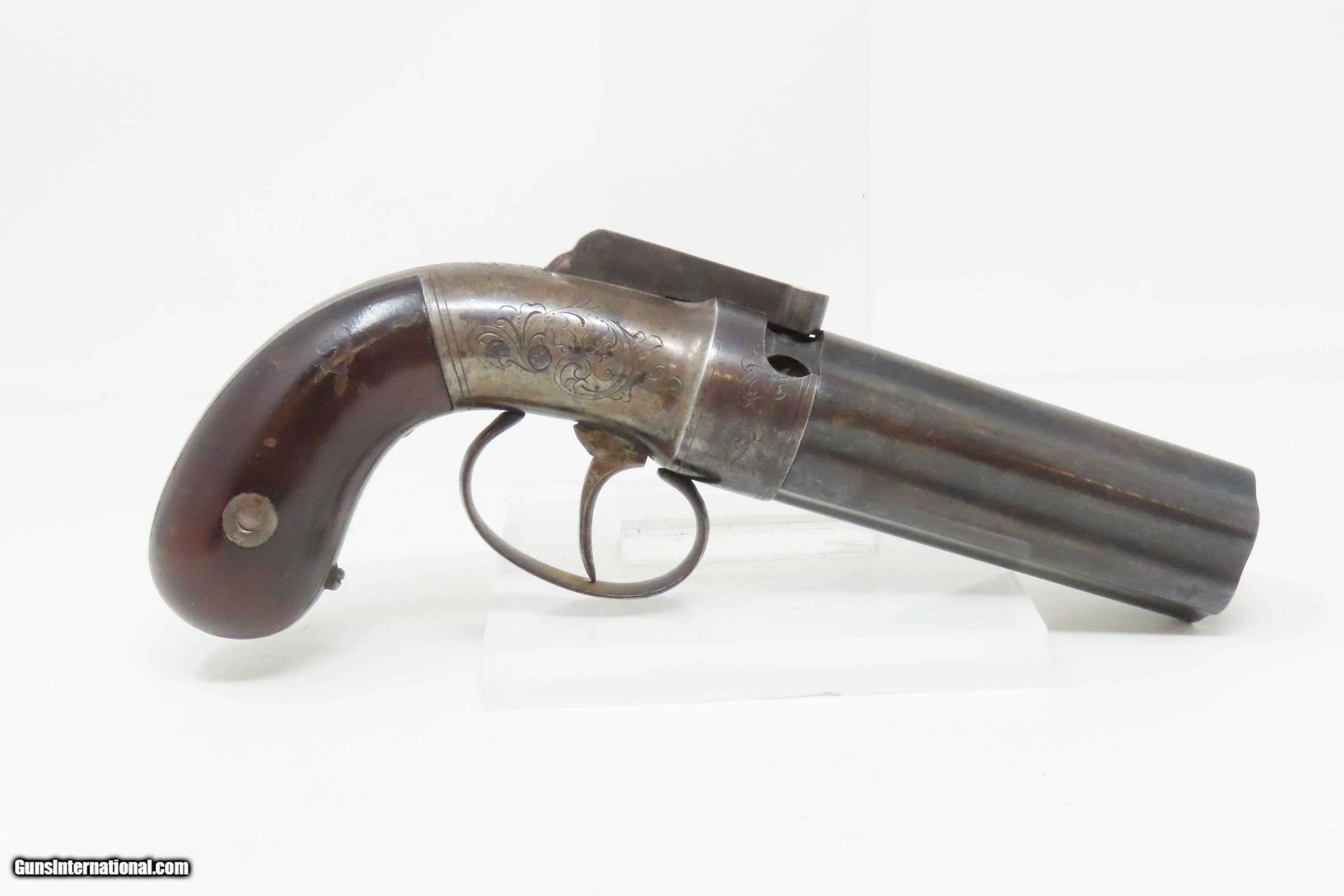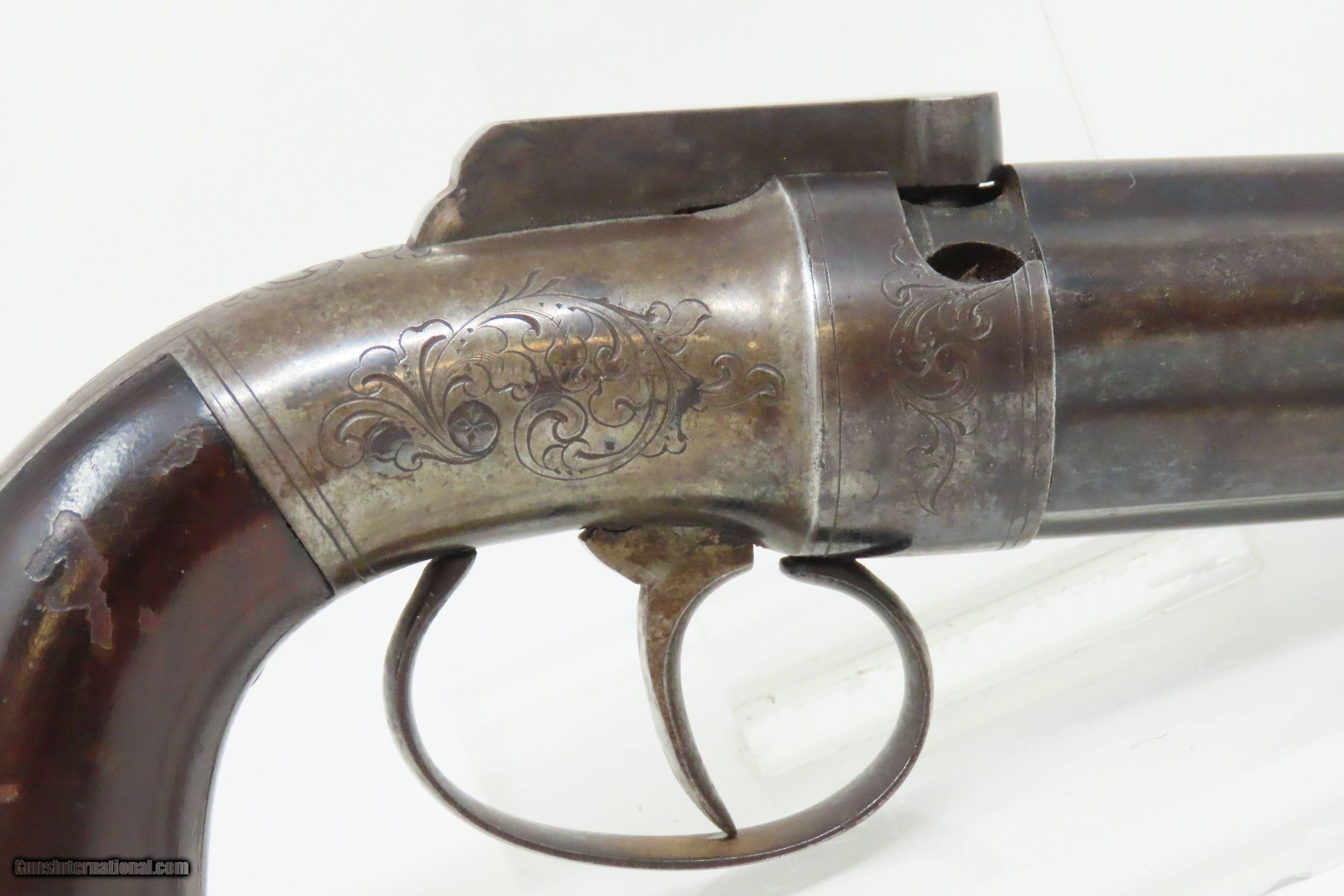 c1850s Antique MANHATTAN PEPPERBOX Revolver Engraved 6-Shot .32 Caliber