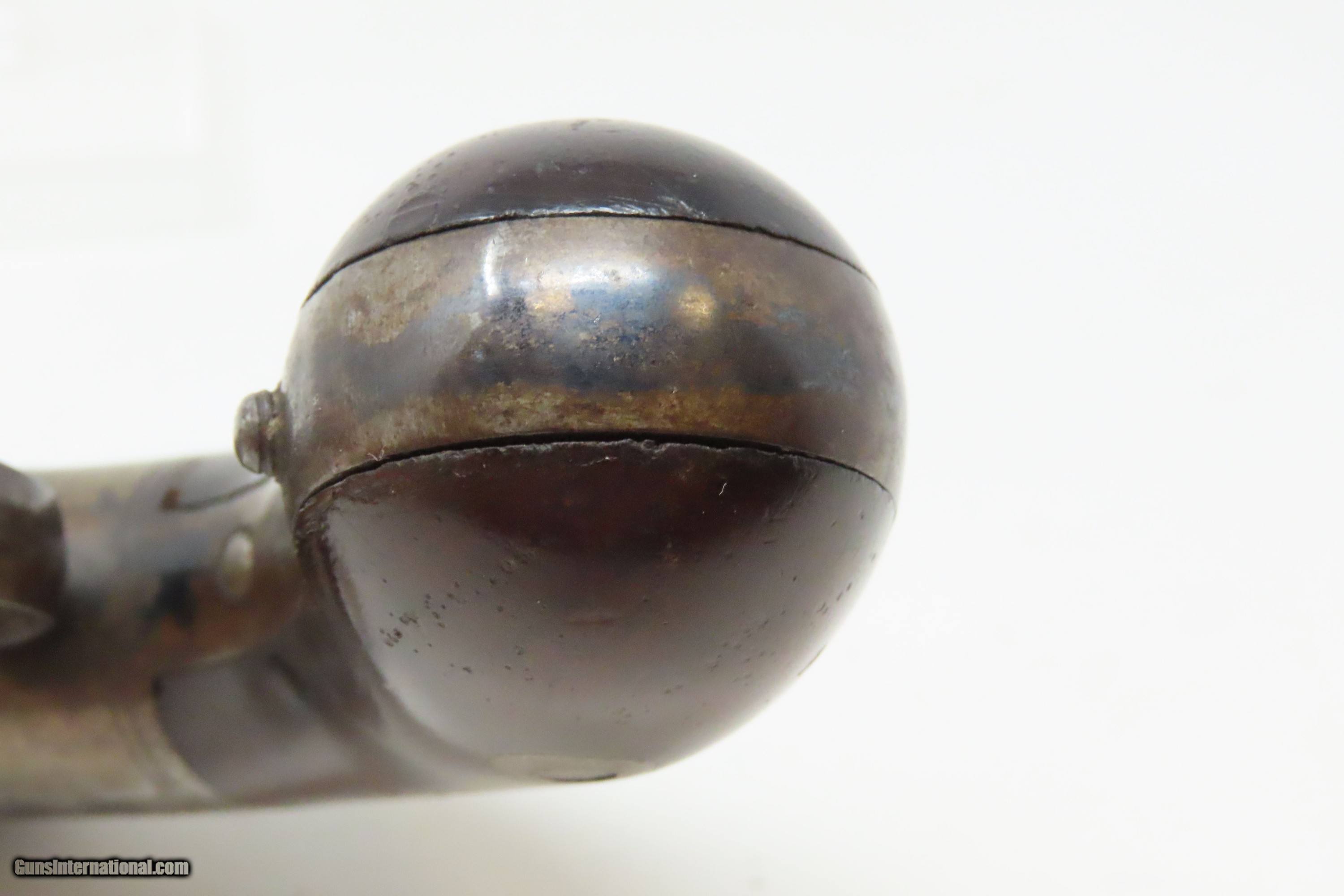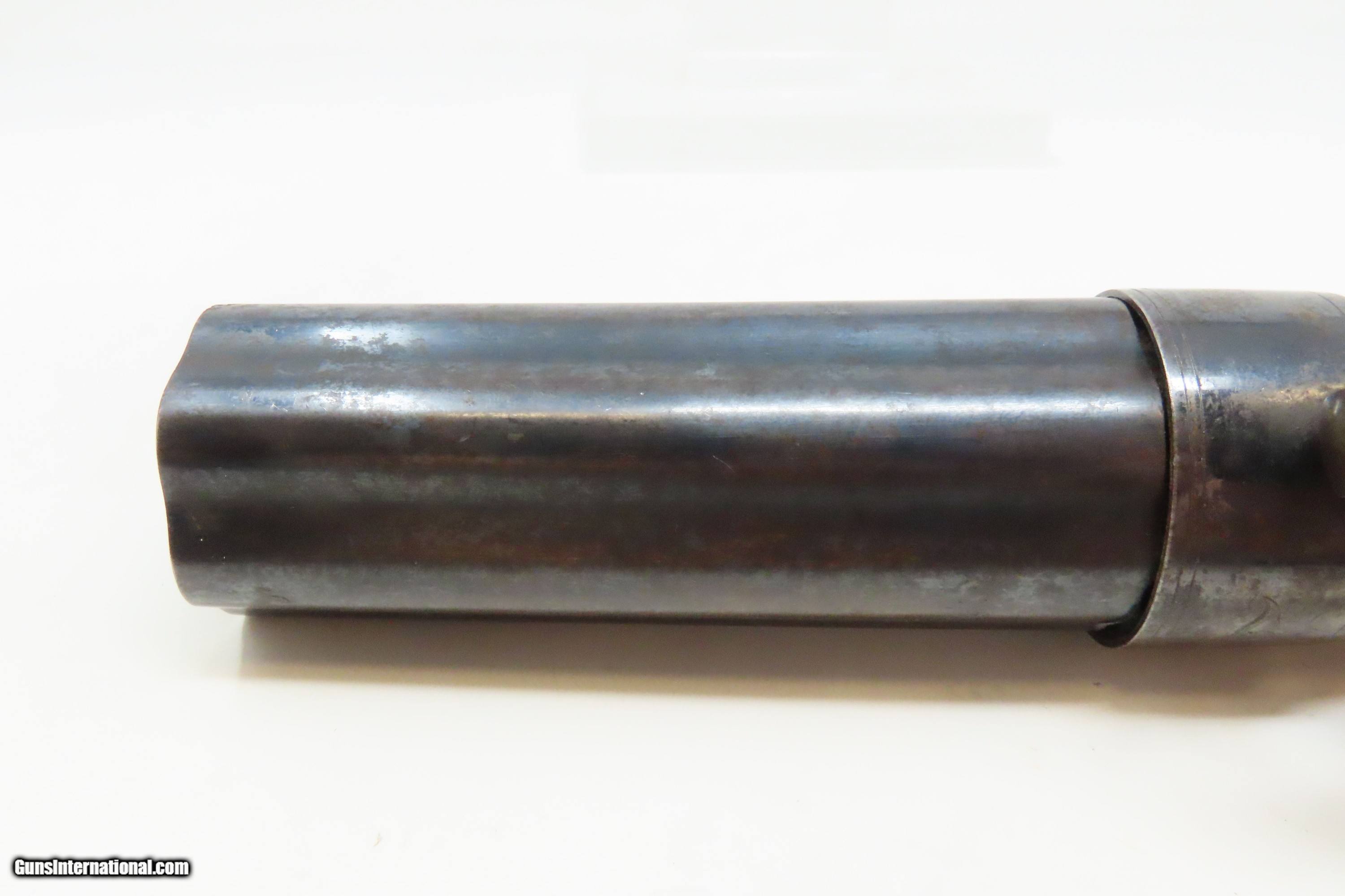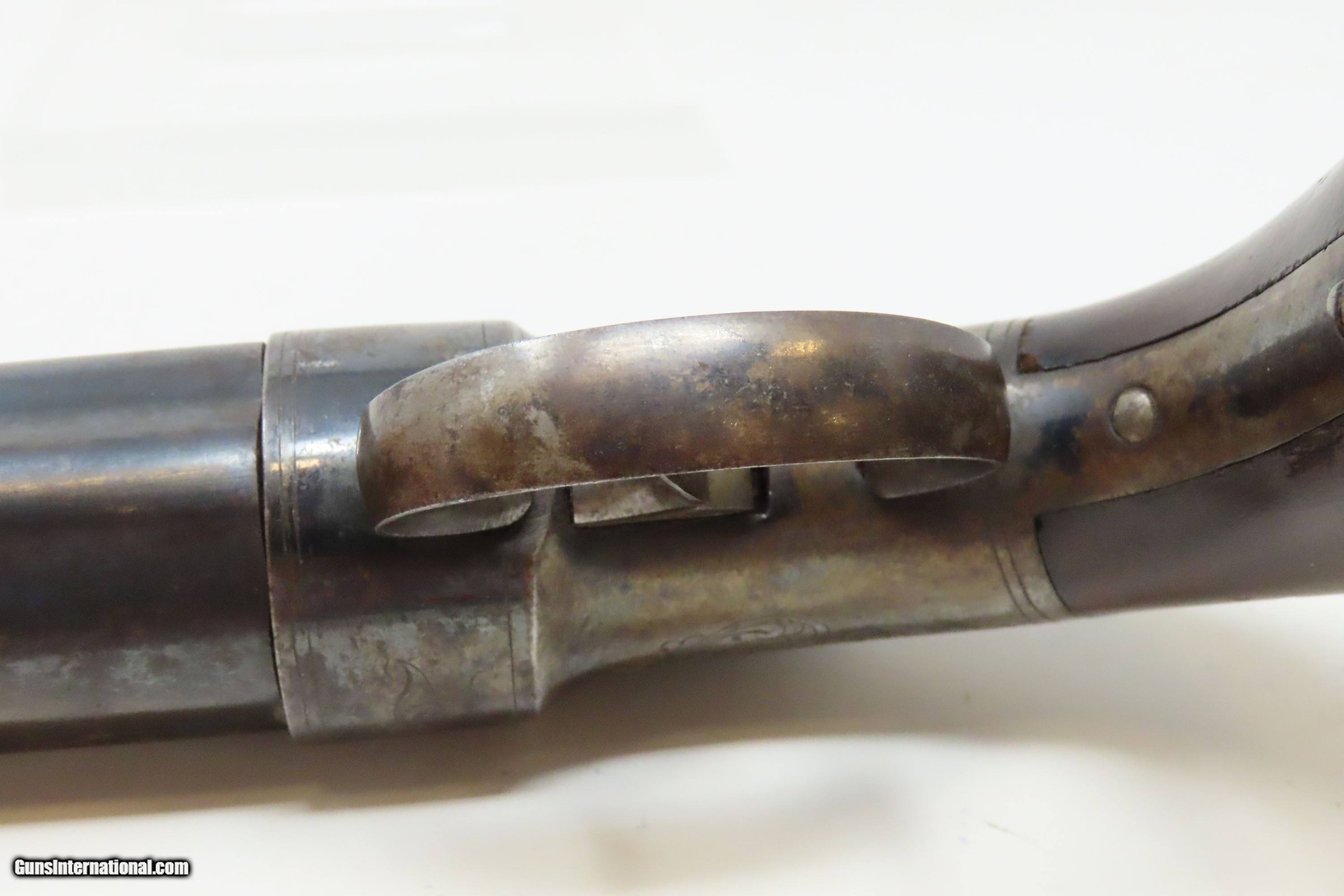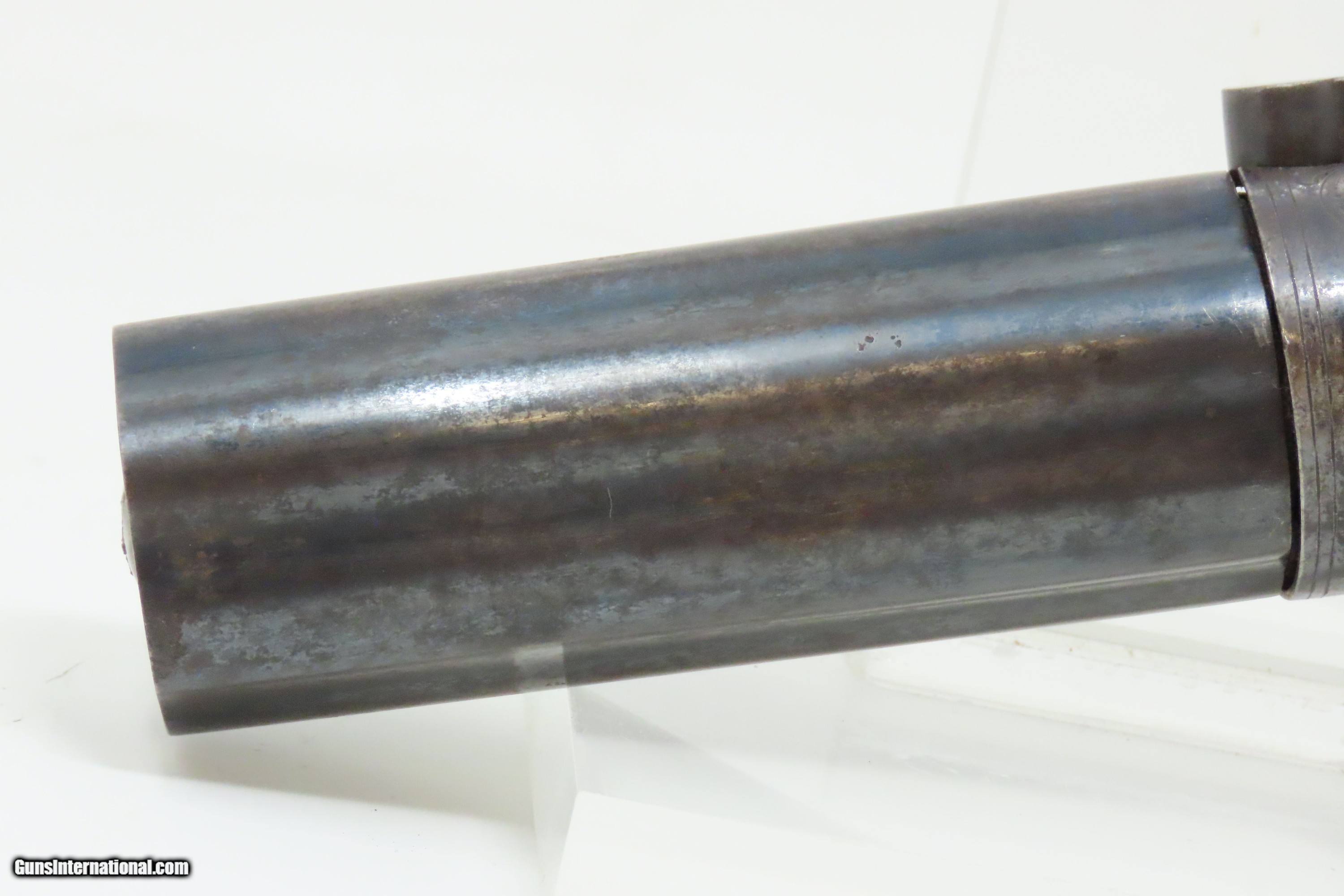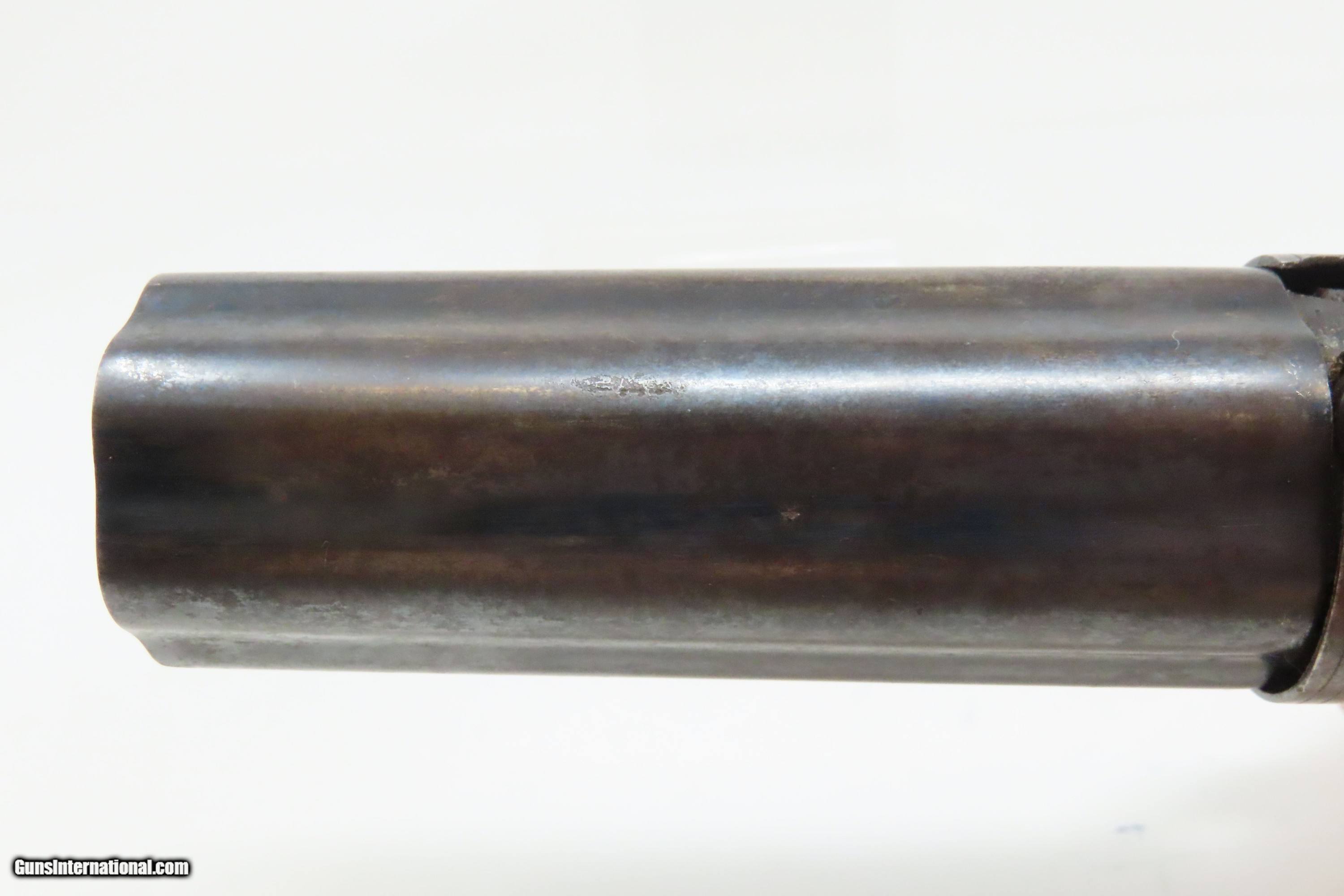 Description: c1850s Antique MANHATTAN PEPPERBOX Revolver Engraved 6-Shot .32 Caliber Civil War, Gold Rush, Wild West Here we present an antique Manhattan Pepperbox Revolver, made circa the late-1850s. Very similar to the Ethan Allen pepperboxes that came earlier. In fact, Manhattan would become famous for imitating Samuel Colt’s designs once his patents expired and it is likely the firm did so with Allen’s. The history that these pistols enjoyed over the years is astounding: the Seminole Wars, Gold Rush, Mexican War and American Civil War. These guns are true relics of American history. This revolving pistol had percussion nipples integrated to the barrels. Made with a bar hammer and standard trigger, models have been encountered with or without an integral nipple shield. While simplifying shooting (no manual cocking of the hammer), the bar hammer did preclude the inclusion of usable sights. However, this early example of a double-action pistol must have been quite a selling point. As these were considered “point and shoot” short range defensive weapons or “belly guns”, the market did not seem to object to the limitation of not having sights. The overall condition is near fine. Original blue finish. The action is excellent. Bores are smooth and dim. Grips show some use and remain solid. Own the original! This is a legitimate antique and not a reproduction. Barrel is 3-1/2 inches. Caliber: .32 Percussion Overall condition as seen in photos. Very Fast. Very Safe. FREE SHIPPING WORLDWIDE. Delivered directly to your door by express mail! Guaranteed AUTHENTIC & Includes CERTIFICATE OF AUTHENTICITY. ancestryguns $1700 #244061 SOLD Antique: Yes |