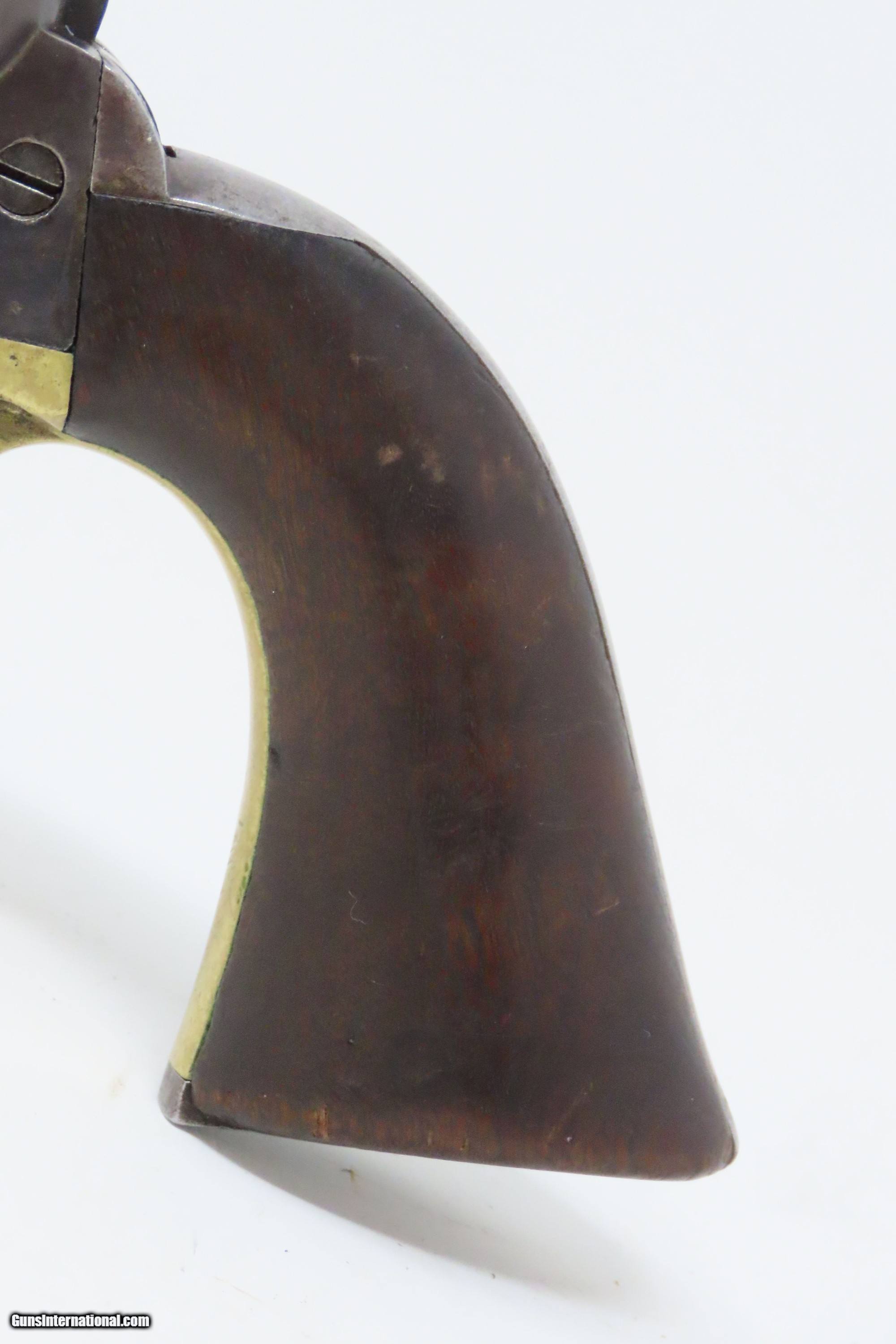 Description: c1862 Antique CIVIL WAR COLT U.S. Model 1860 ARMY .44 Caliber Percussion REVOLVER Most Used Sidearm of the American Civil War Here we present an antique Colt U.S. Contract Model 1860 Army Percussion Revolver, made in 1862 in Hartford, Connecticut. The 1860 Army was the single most used pistol of the American Civil War. Over 200,000 were made from 1860 to 1873, and 156,000 of those were made by the end of the war in 1865. These were excellent sidearms for officers, cavalry, infantry, and artillery troops. The 1860 Army was Samuel Colt’s finest achievement to that point, having finally developed a large caliber revolver that weighed about 2 lbs. 10 oz. to the famous Dragoon’s 4 lbs. 4 oz., and was adopted en masse by the U.S. government with huge contracts. The revolver was well balanced in hand and had a long enough barrel to be effective when utilized as a carbine with the attachable shoulder stock. This revolver represented unprecedented firepower from a handgun in the field at the time and was especially suited to Cavalry. The Confederacy, lacking in manufacturing capabilities though they were, managed to produce limited numbers of copies, and battlefield pickups of the 1860 Army were highly coveted. The 1860 Army went on to serve the U.S. military even after the Civil War and into the Indian Wars, until production of Colt’s 1873 Single Action Army created new waves in the revolver market, and again achieved great success in the military and commercial markets. The overall condition is very good. Original finish/patina. Some cylinder scene remains of the Battle of Campeche. The action is excellent. The bore is in good condition; patinated with strong rifling. The grip is solid with a visible cartouche on each side. Numbers match (wedge number cannot be read but it matches the wear and color of the rest of the gun). This is a nice example of the Civil War’s most prolific sidearm. Own the original! This is a legitimate antique and not a reproduction. Barrel is 8 inches. Caliber: .44 Percussion Overall condition as seen in photos. Very Fast. Very Safe. FREE SHIPPING WORLDWIDE. Delivered directly to your door by express mail! Guaranteed AUTHENTIC & Includes CERTIFICATE OF AUTHENTICITY. ancestryguns $2995 #228494 SOLD Antique: Yes |
