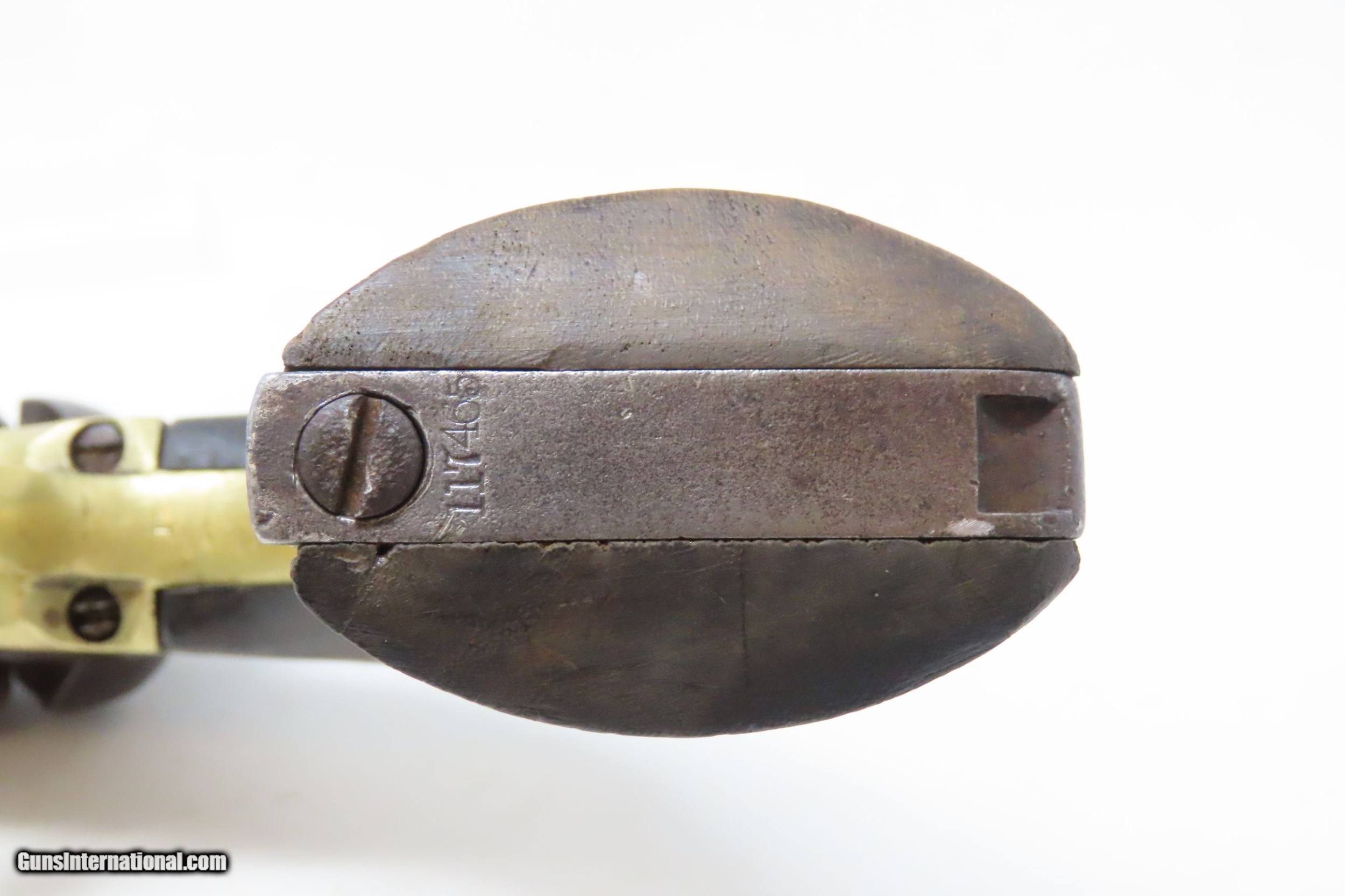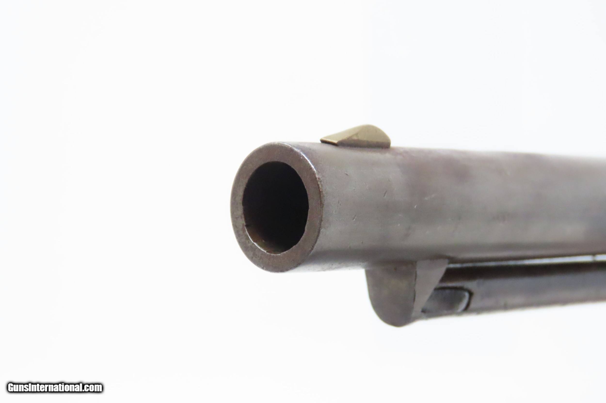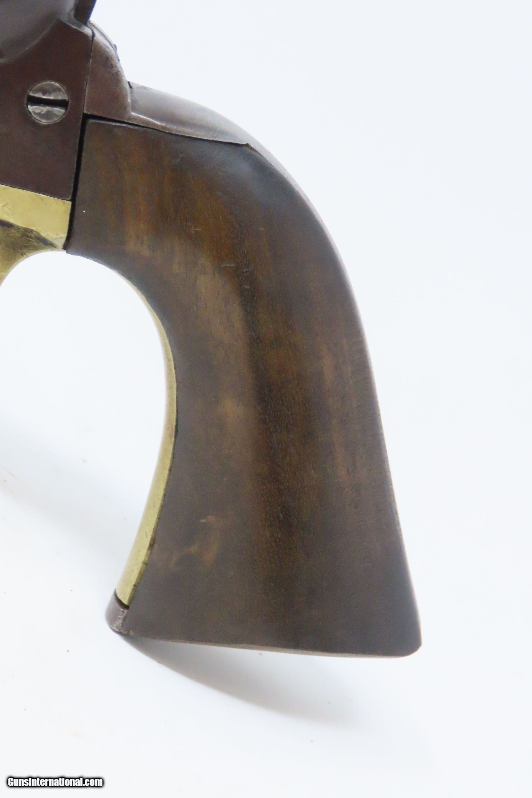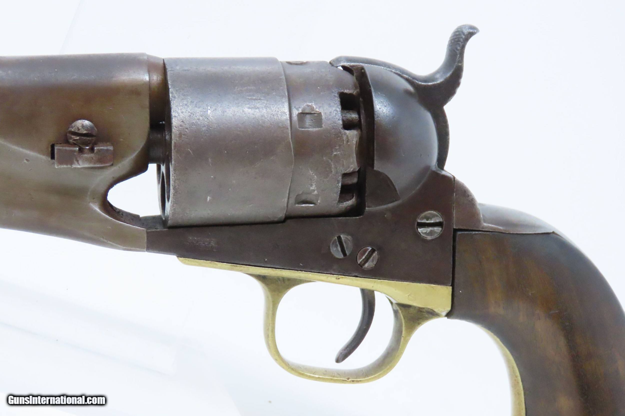 Description: c1863 CIVIL WAR COLT U.S. Model 1860 ARMY .44 Caliber Percussion REVOLVER Iconic Sidearm of the Union Cavalry Here we present an antique Colt U.S. Model 1860 Army Percussion Revolver, made in 1863 in Hartford, Connecticut. The 1860 Army was the single most used pistol of the American Civil War. Over 200,000 were made from 1860 to 1873, and 156,000 of those were made by the end of the war in 1865. These were excellent sidearms for officers, cavalry, infantry, and artillery troops. The 1860 Army was Samuel Colt’s finest achievement to that point, having finally developed a large caliber revolver that weighed about 2 lbs. 10 oz. to the famous Dragoon’s 4 lbs. 4 oz., and was adopted en masse by the U.S. government with huge contracts. The revolver was well balanced in hand and had a long enough barrel to be effective when utilized as a carbine with the attachable shoulder stock. This revolver represented unprecedented firepower from a handgun in the field at the time and was especially suited to Cavalry. The Confederacy, lacking in manufacturing capabilities though they were, managed to produce limited numbers of copies, and battlefield pickups of the 1860 Army were highly coveted. The 1860 Army went on to serve the U.S. military even after the Civil War and into the Indian Wars, until production of Colt’s 1873 Single Action Army created new waves in the revolver market, and again achieved great success in the military and commercial markets. Strong action. The barrel is a reproduction replacement. Bore is reflective with nice rifling. The rammer has very little range of motion. The numbers have been force-matched on the barrel and attempted on the cylinder (although the last two numbers were inverted). Grip is a solid replacement. Barrel is 8 inches. Caliber: .44 Percussion Overall condition as seen in photos. Very Fast. Very Safe. FREE SHIPPING WORLDWIDE. Delivered directly to your door by express mail! ancestryguns $1800 #217786 SOLD Antique: Yes |
