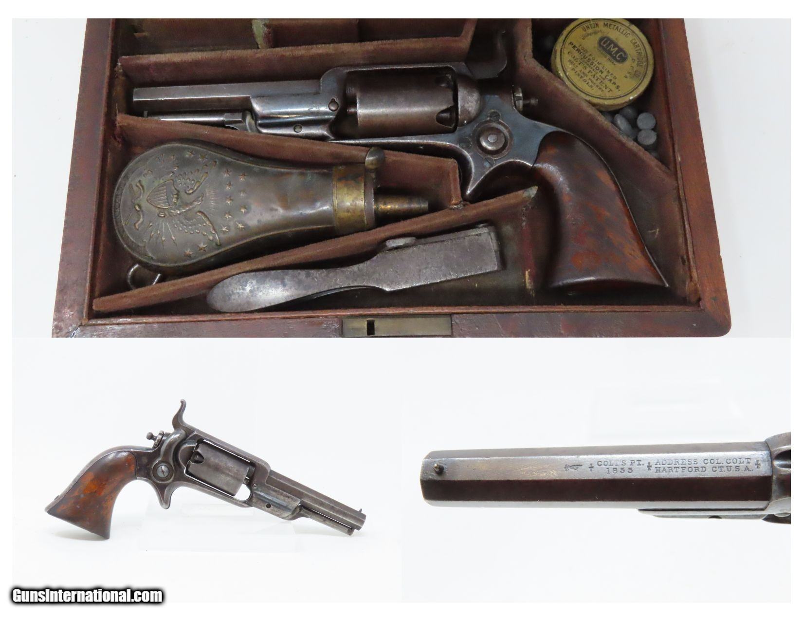 CASED Antique CIVIL WAR Era COLT Model 1855 ROOT Side-Hammer Perc. Revolver Side-hammer Revolver Made in 1856 with ACCESSORIES
