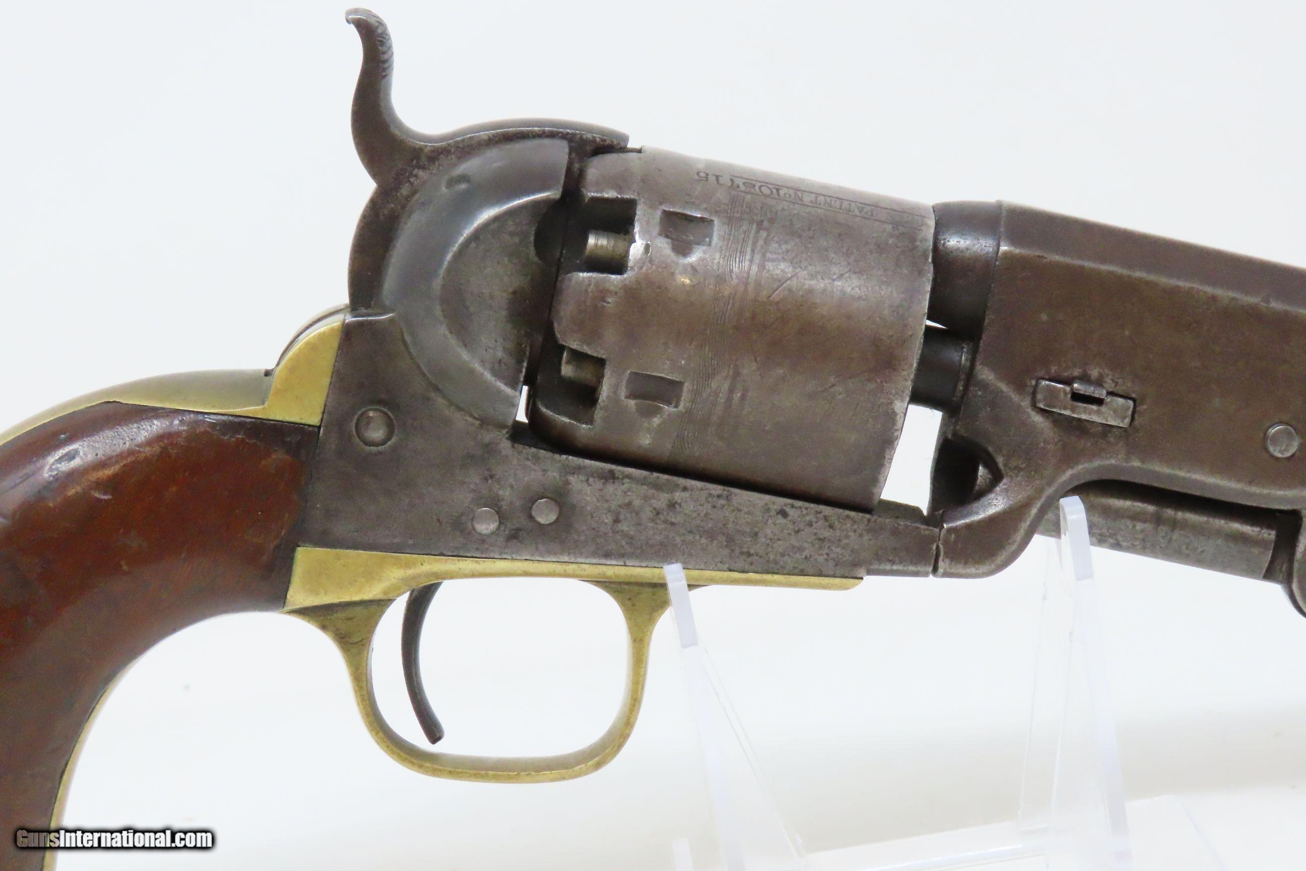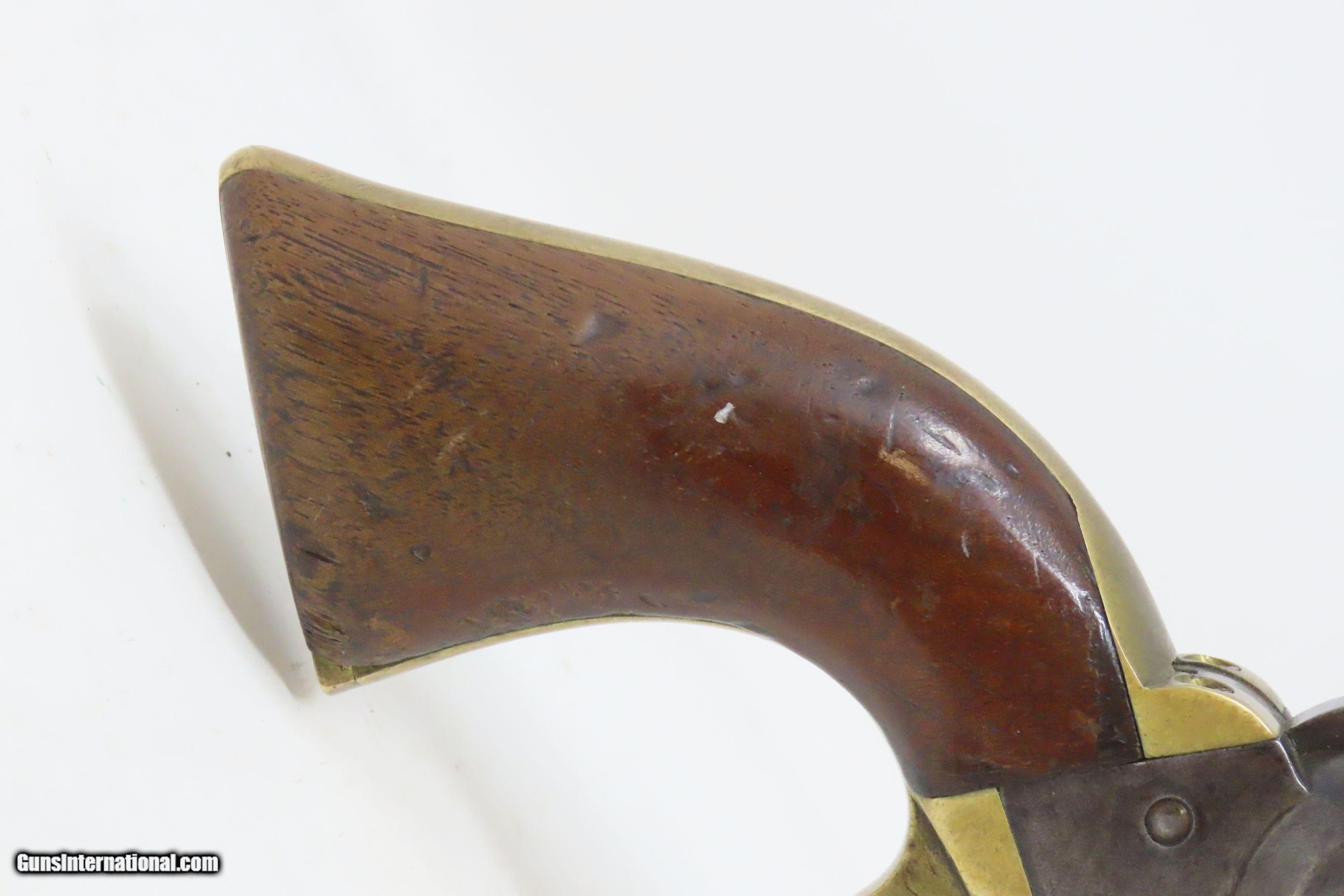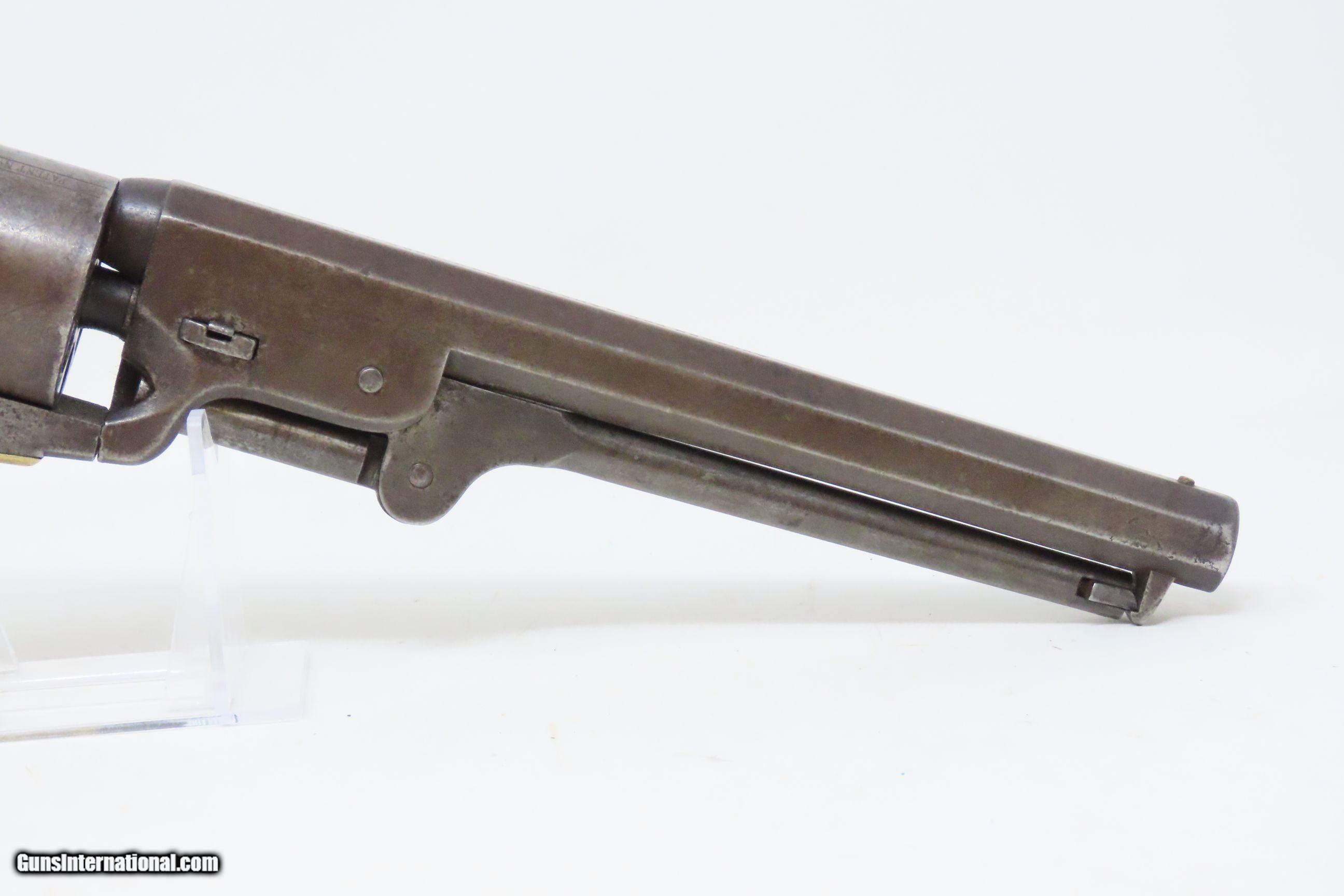 Description: Cased CIVIL WAR WILD WEST Antique COLT M1851 NAVY .36 Revolver GUNFIGHTER PERCUSSION REVOLVER Manufactured in 1861 Here we present an antique Cased Colt Model 1851 Navy Percussion Revolver, made at the start of the American Civil War in 1861 in Hartford, Connecticut. The 1851 Navy was one of Colt’s most famous and successful lines, reaching a production total of 257,348 from 1850 to 1873 (right up to the time of SAA production) from both Hartford and London factories. From Hartford alone, 185,000 were made by the end of the American Civil War. Many of these saw service during the conflict on both sides. There were some military purchases and lots of private purchases by soldiers going off to war. In addition, the Model 1851 was carried by Confederate General Robert E. Lee and was a favorite of “Doc” Holliday and “Wild Bill” Hickok, who carried two of these most famously in his red sash. The Colt Model 1851 Navy, first known as the "Ranger Model" and also known as the "Revolving Belt Pistol of Naval Caliber," was designed between 1847 and 1850, manufactured from 1850 until 1873, and was the second most popular Colt percussion revolver after only the Model 1849 Pocket. Though its name implies maritime use, most Navy revolvers primarily saw use on dry land, including in the Old West, which truly, the Colt 1851 Navy revolver ushered in the era of the gunfighter. Among the many guns that were used on the western frontier, none was more popular in its day than the Colt percussion revolver designated the 1851 Navy. This single action revolver weighed in at roughly 42 ounces. Prior to the Navy's introduction, hand gunners had to make do with the Colt Walker and Dragoon revolvers, both of which weighed over four pounds. These big guns were best suited for carry in pommel holsters on the saddle. The Colt Navy was the first popular single-action revolver that could be worn comfortably on the belt. Prior to the beginning of the Civil War, the state of Missouri was a hotbed of trouble that often broke out in shooting fights. Bill Anderson, Jesse and Frank James, and the Youngers all cut their teeth on this border trouble and were ready to go when leaders like William Quantrill enlisted them in his guerilla band during the war. The boys from Missouri became quite proficient with their six-guns and generally carried a brace of Dragoons on their saddle pommels and a brace of Navy revolvers on their hip. The overall condition is good+. Nice patina throughout. The Battle of Campeche cylinder scene remains visible. The action is excellent. The bore is in good condition with strong rifling. The grip shows use and remains solid. Numbers match. The modern case is in very good condition and comes with a key. Own the original! This is a legitimate antique and not a reproduction. Barrel is 7-1/2 inches. Caliber: .36 Percussion Overall condition as seen in photos. Very Fast. Very Safe. FREE SHIPPING WORLDWIDE. Delivered directly to your door by express mail! Guaranteed AUTHENTIC & Includes CERTIFICATE OF AUTHENTICITY. ancestryguns $2500 #230906 SOLD Antique: Yes |
