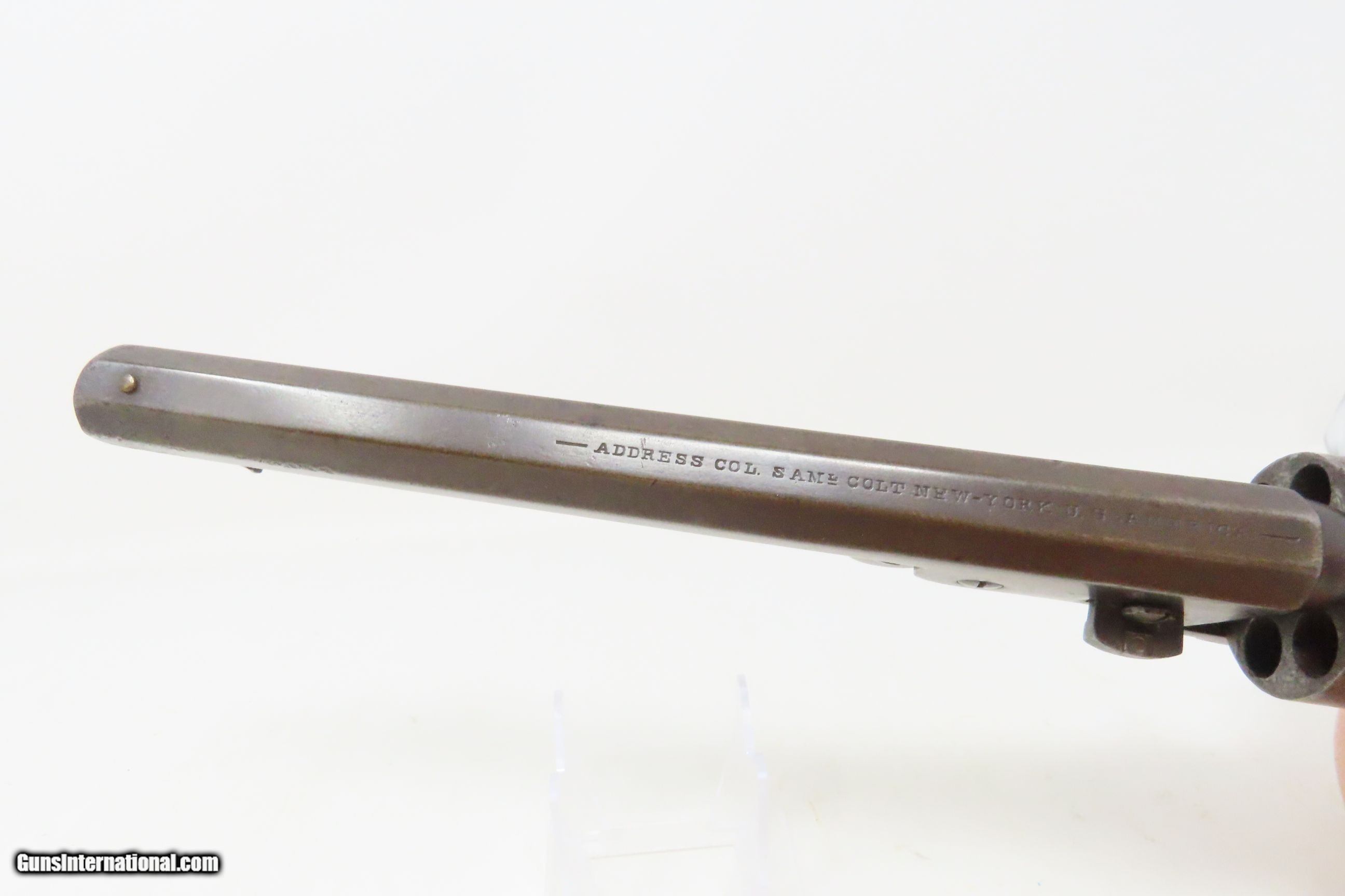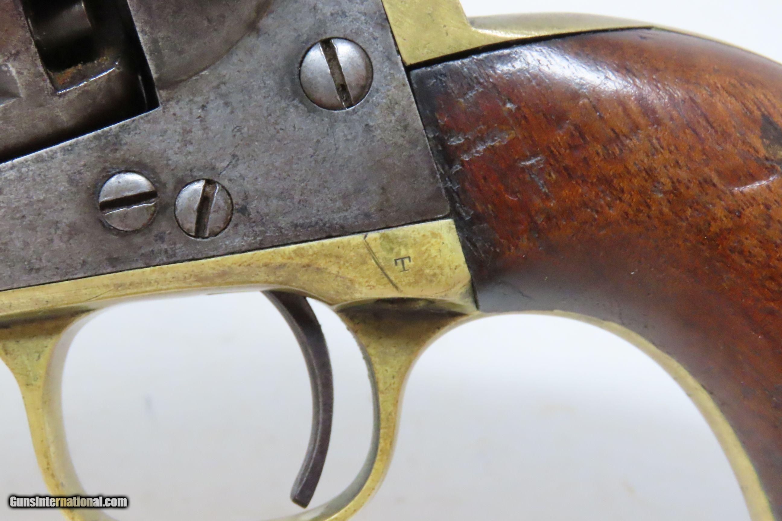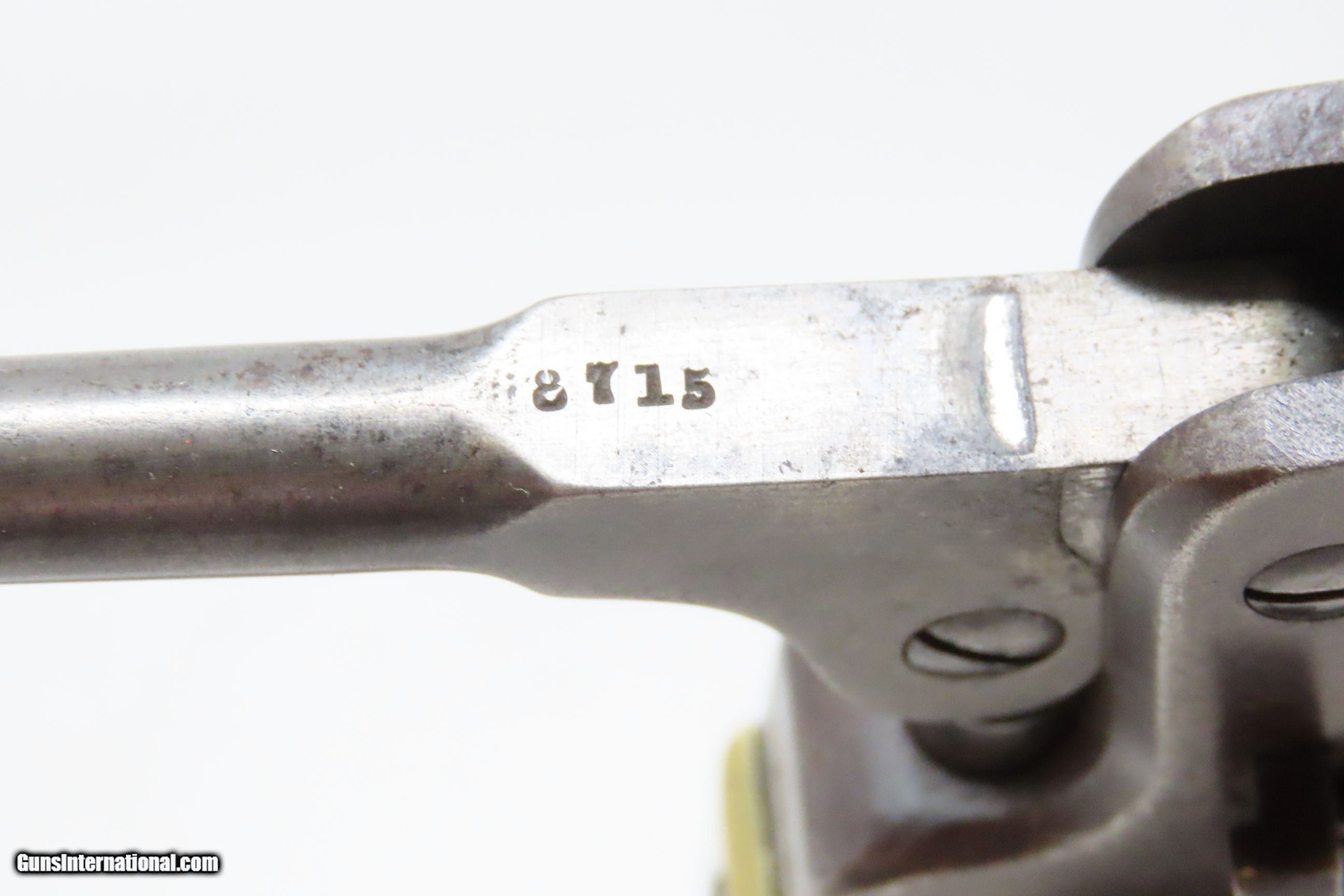 Description: Cased CIVIL WAR WILD WEST Antique COLT M1851 NAVY .36 Revolver GUNFIGHTER PERCUSSION REVOLVER Manufactured in 1861 Here we present an antique Cased Colt Model 1851 Navy Percussion Revolver, made at the start of the American Civil War in 1861 in Hartford, Connecticut. The 1851 Navy was one of Colt’s most famous and successful lines, reaching a production total of 257,348 from 1850 to 1873 (right up to the time of SAA production) from both Hartford and London factories. From Hartford alone, 185,000 were made by the end of the American Civil War. Many of these saw service during the conflict on both sides. There were some military purchases and lots of private purchases by soldiers going off to war. In addition, the Model 1851 was carried by Confederate General Robert E. Lee and was a favorite of “Doc” Holliday and “Wild Bill” Hickok, who carried two of these most famously in his red sash. The Colt Model 1851 Navy, first known as the "Ranger Model" and also known as the "Revolving Belt Pistol of Naval Caliber," was designed between 1847 and 1850, manufactured from 1850 until 1873, and was the second most popular Colt percussion revolver after only the Model 1849 Pocket. Though its name implies maritime use, most Navy revolvers primarily saw use on dry land, including in the Old West, which truly, the Colt 1851 Navy revolver ushered in the era of the gunfighter. Among the many guns that were used on the western frontier, none was more popular in its day than the Colt percussion revolver designated the 1851 Navy. This single action revolver weighed in at roughly 42 ounces. Prior to the Navy's introduction, hand gunners had to make do with the Colt Walker and Dragoon revolvers, both of which weighed over four pounds. These big guns were best suited for carry in pommel holsters on the saddle. The Colt Navy was the first popular single-action revolver that could be worn comfortably on the belt. Prior to the beginning of the Civil War, the state of Missouri was a hotbed of trouble that often broke out in shooting fights. Bill Anderson, Jesse and Frank James, and the Youngers all cut their teeth on this border trouble and were ready to go when leaders like William Quantrill enlisted them in his guerilla band during the war. The boys from Missouri became quite proficient with their six-guns and generally carried a brace of Dragoons on their saddle pommels and a brace of Navy revolvers on their hip. The overall condition is good+. Nice patina throughout. The Battle of Campeche cylinder scene remains visible. The action is excellent. The bore is in good condition with strong rifling. The grip shows use and remains solid. Numbers match. The modern case is in very good condition and comes with a key. Own the original! This is a legitimate antique and not a reproduction. Barrel is 7-1/2 inches. Caliber: .36 Percussion Overall condition as seen in photos. Very Fast. Very Safe. FREE SHIPPING WORLDWIDE. Delivered directly to your door by express mail! Guaranteed AUTHENTIC & Includes CERTIFICATE OF AUTHENTICITY. ancestryguns $2500 #230906 SOLD Antique: Yes |