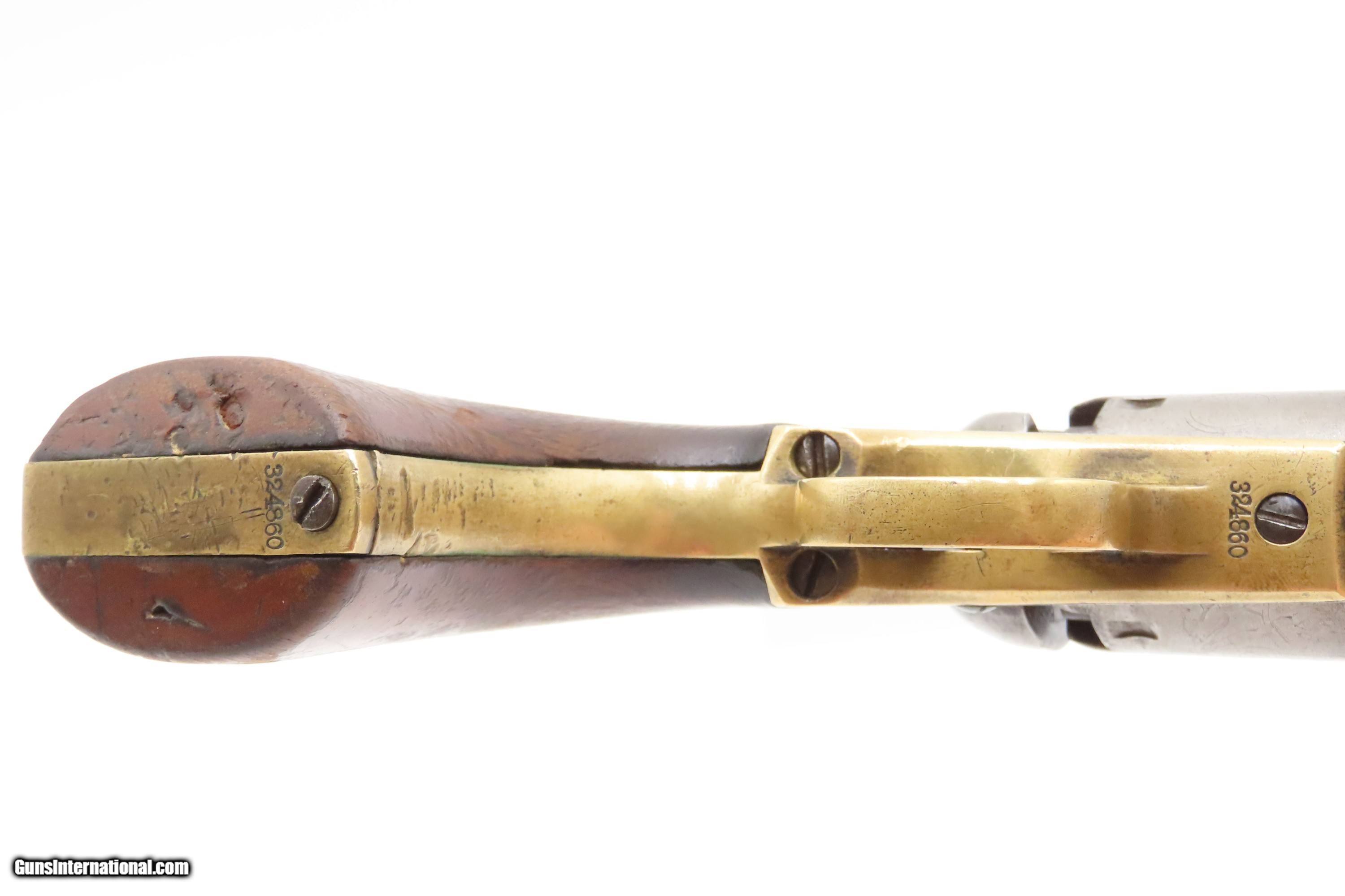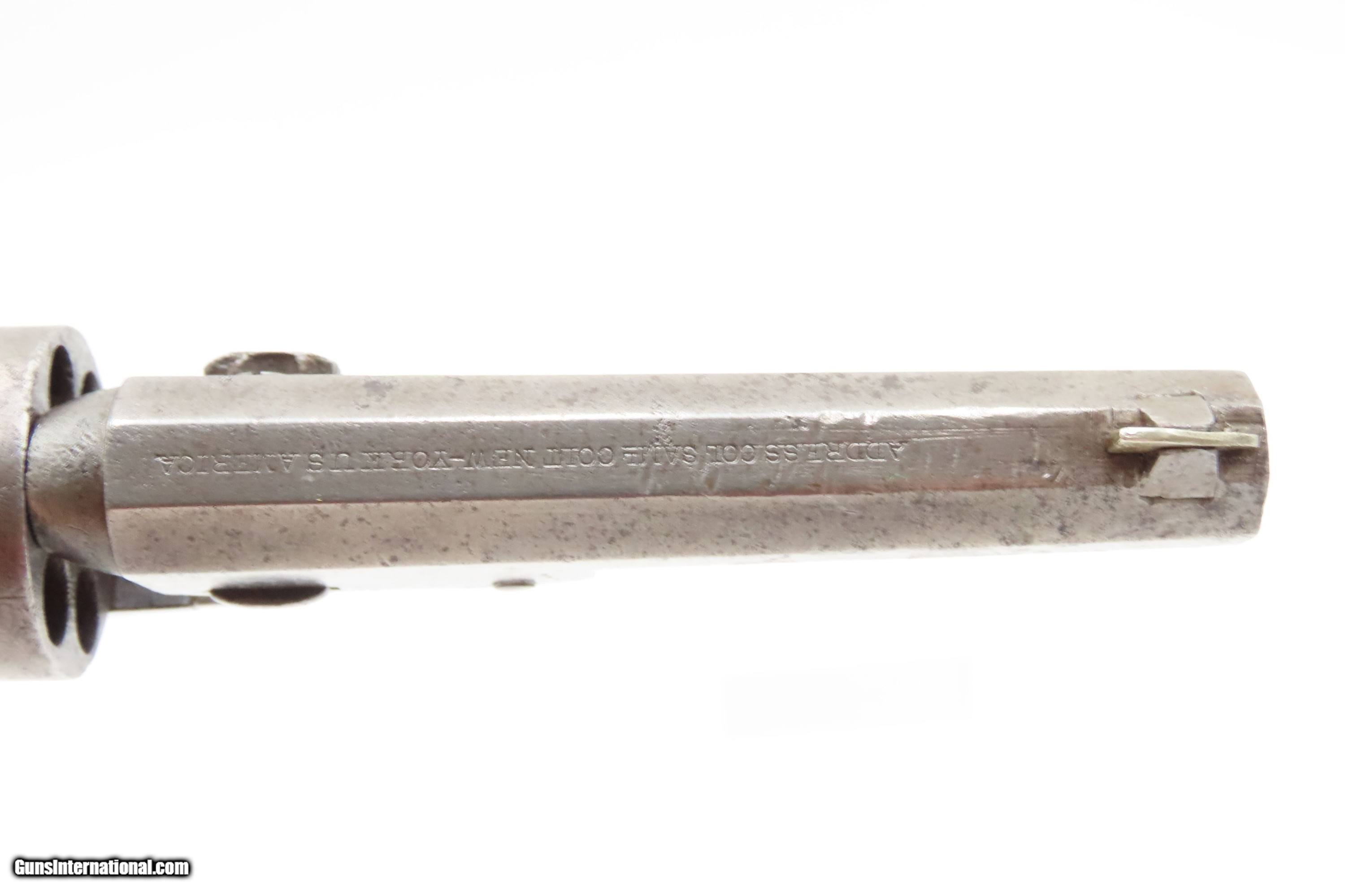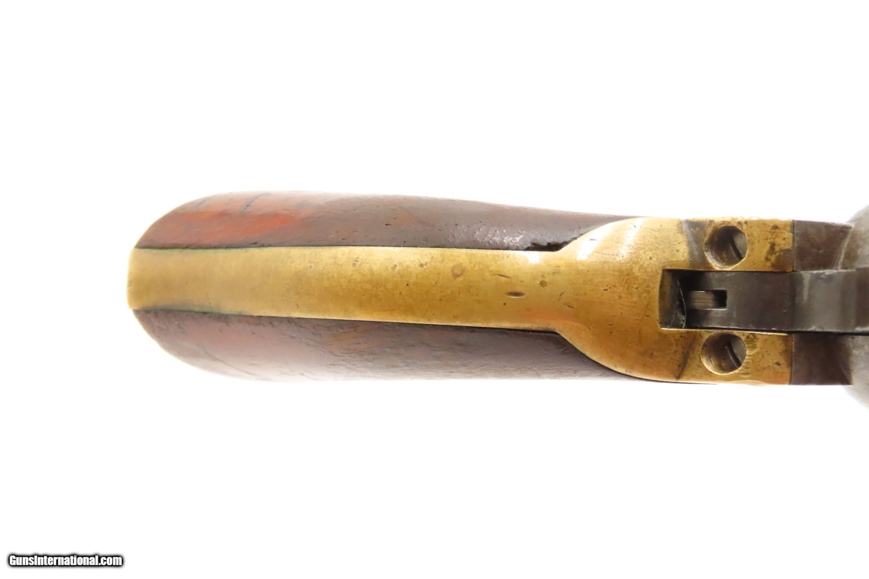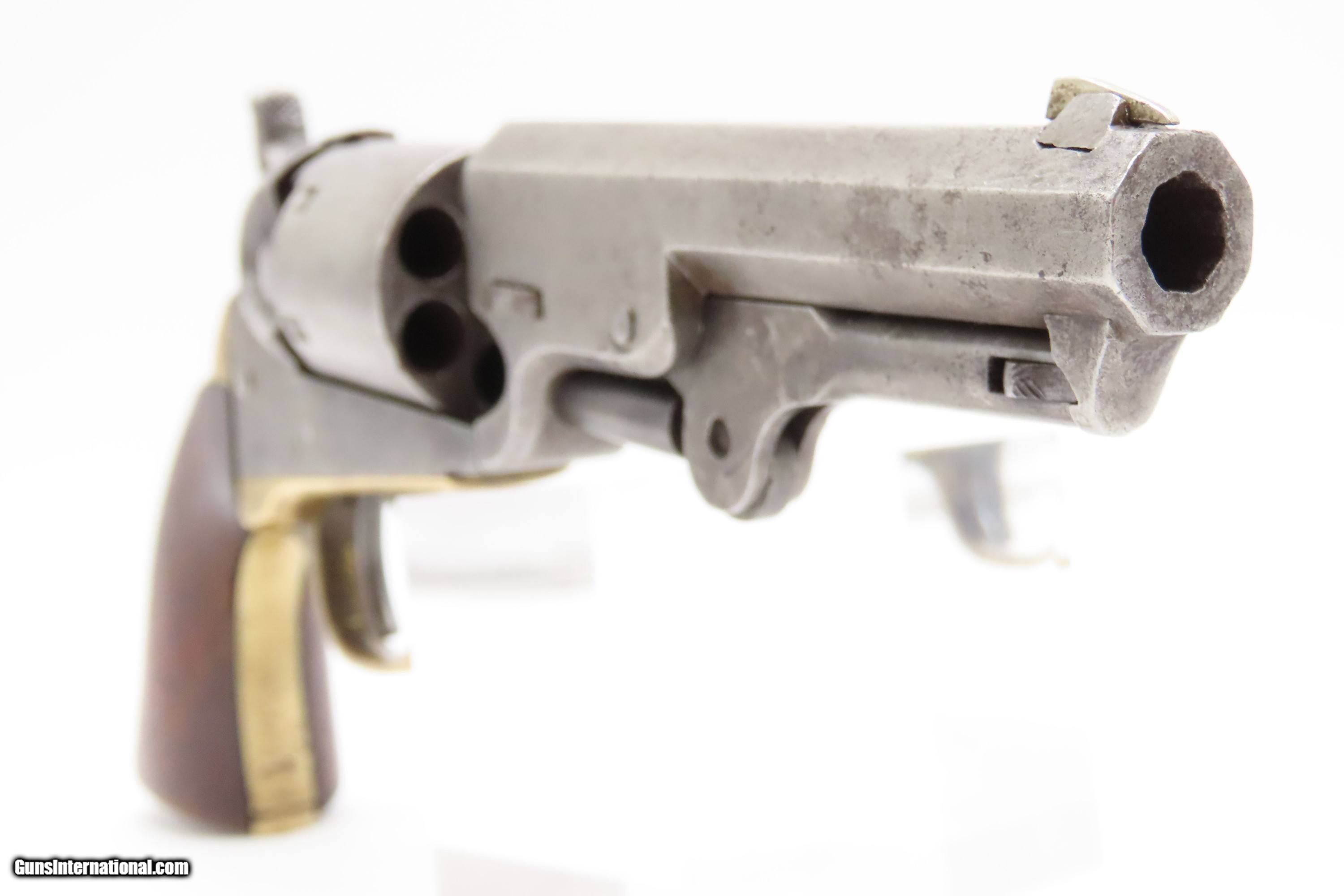 Description: CASED Post-CIVIL WAR / WILD WEST Antique COLT M1849 Percussion .31 POCKET 1871 mfg FRONTIER SIX-SHOOTER Revolver ACCESSORIES Here we present an antique Colt Model 1849 Percussion Pocket Revolver, made in 1871 in Hartford, Connecticut, just six years after the close of the Civil War. The Model 1849 Pocket, the replacement for the Baby Dragoon, was the most widely produced of any Colt percussion pistol. Nearly 340,000 were manufactured during its 23-year production run that ended in 1873. Over 280,000 of these were produced by Colt’s factory at Hartford by the end of the American Civil War in 1865. These were very popular and saw a lot of use on the battlefield, on the home front and in the West. These were some of the smallest, handiest pocket revolvers of the time. One of the most aesthetically pleasing aspects of this pistol is its cylinder scene. Cylinder scenes during this period were common, especially for Colt, not only for their visual appeal, but because it made a revolver more difficult to forge. The scene on the 1849 Pocket is that of a stagecoach robbery. The focal point is the stagecoach drawn by four horses. A woman in a dress is seen framed in the doorway of the side of the coach. The driver is standing alongside wielding his pistol against multiple assailants as the horses rear and struggle against their harnesses. Several of the bandits lay dying on the ground, one tries to control the horses, two are running away and one is in the process of falling dead after being shot. Not a bad way to show interested buyers what a pistol like this would be good for. It did a fine job as a self-defense handgun for the average citizen in 19th Century America. Though not a primary military arm during the American Civil War, these handguns were commonly privately purchased by soldiers for use on the battlefield. Whether legend or fact, it is interesting to note something commonly read about pocket revolvers of the day, that while they could be used for self-defense against the enemy, many soldiers kept them on their person to defend themselves against an unwanted amputation in the primitive field hospitals that were notorious, even in their day. Also included is a wooden case with a reproduction label inside the lid, two cap tins, bullet mold, balls/bullets, key, and a powder flask. The overall condition is good. Gray patina. The action fully functions, although intermittently index due to a worn cylinder hand. Good grip. Numbers match. Markings are legible. A good amount of the cylinder scene is intact. The rifling has thinned but remains in good shape for its age. The case and accessories are good. Own the original! This is a legitimate antique and not a reproduction. Barrel is 4 inches. Caliber: .31 Percussion Overall condition as seen in photos. Very Fast. Very Safe. FREE SHIPPING WORLDWIDE. Delivered directly to your door by express mail! Guaranteed AUTHENTIC & Includes CERTIFICATE OF AUTHENTICITY. ancestryguns $2700 #250519 Curio/Relic: Yes Price: $2,700.00 Buy Now Pay with