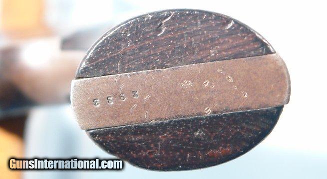 Description: CIVIL WAR 1ST OHIO INFANTRY FACTORY INSCRIBED SMITH & WESSON OLD MODEL #2 ARMY REVOLVER CA. 1862-3. .32 RF caliber 5” very early Old Model #2 Army serial numbered in the 2xxx range and all original and matching. Factory engraved script on the side plate “CAPT. N. TRAPP/CO. G. 1ST O.V./INF”. Blued finish and factory rosewood grips. Excellent condition with 80% plus blue and grips with most of the original finish. Working order and good bore. Two pin early style top strap. Hinge excellent with no cracks. Minor loosening of the barrel hinge-easily fixed. Captain Nicholas Trapp served the Company Commander from 1861 when the 1st Ohio was formed thru 1864 when it was incorporated into another regiment. He was wounded in battle in 1863 at Mission Ridge, Tenn. 100% original in every respect and never on the market before. SOLD Antique: Yes |