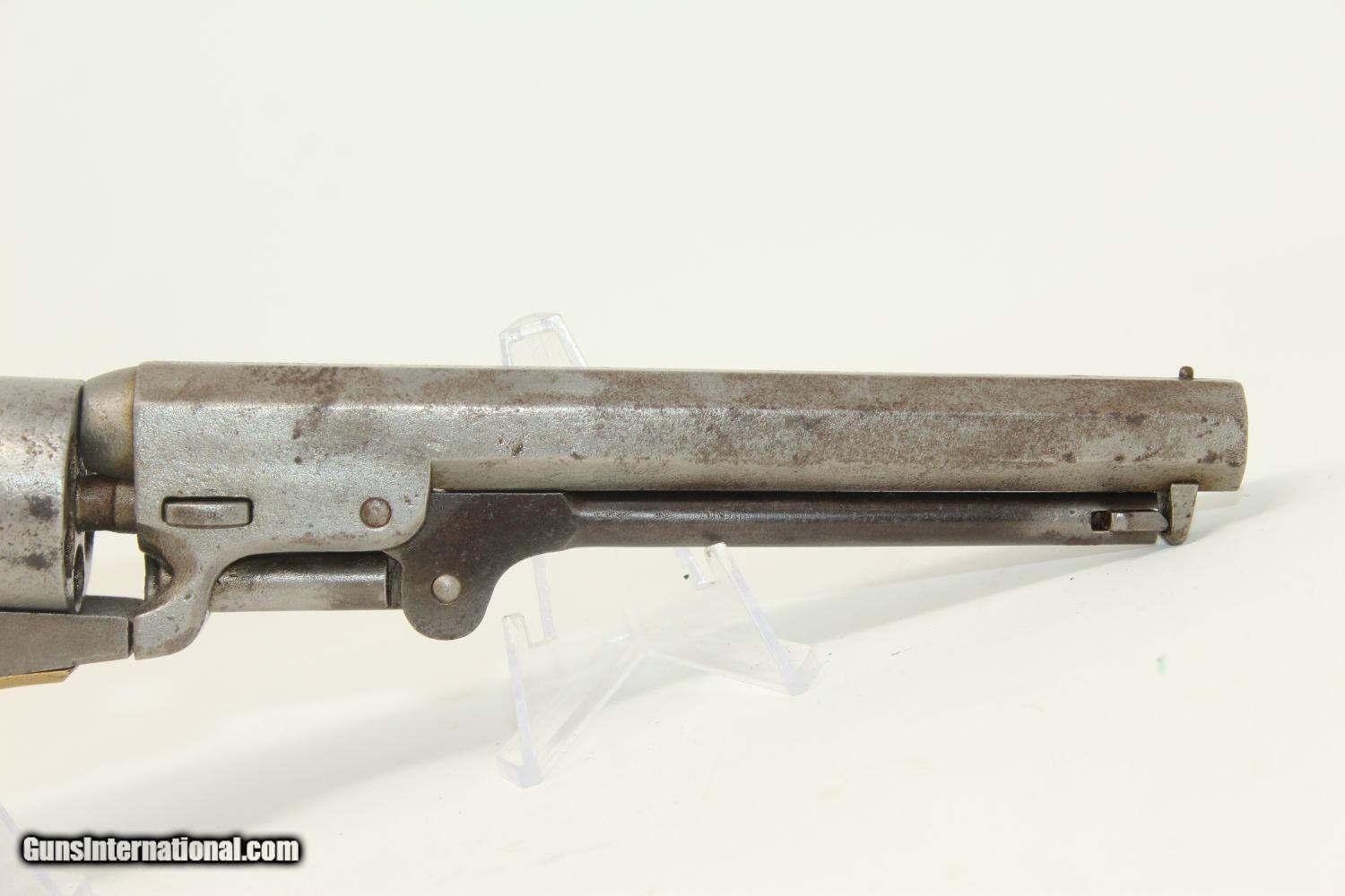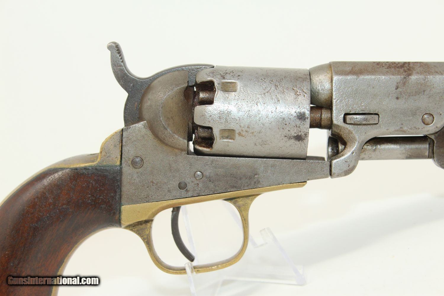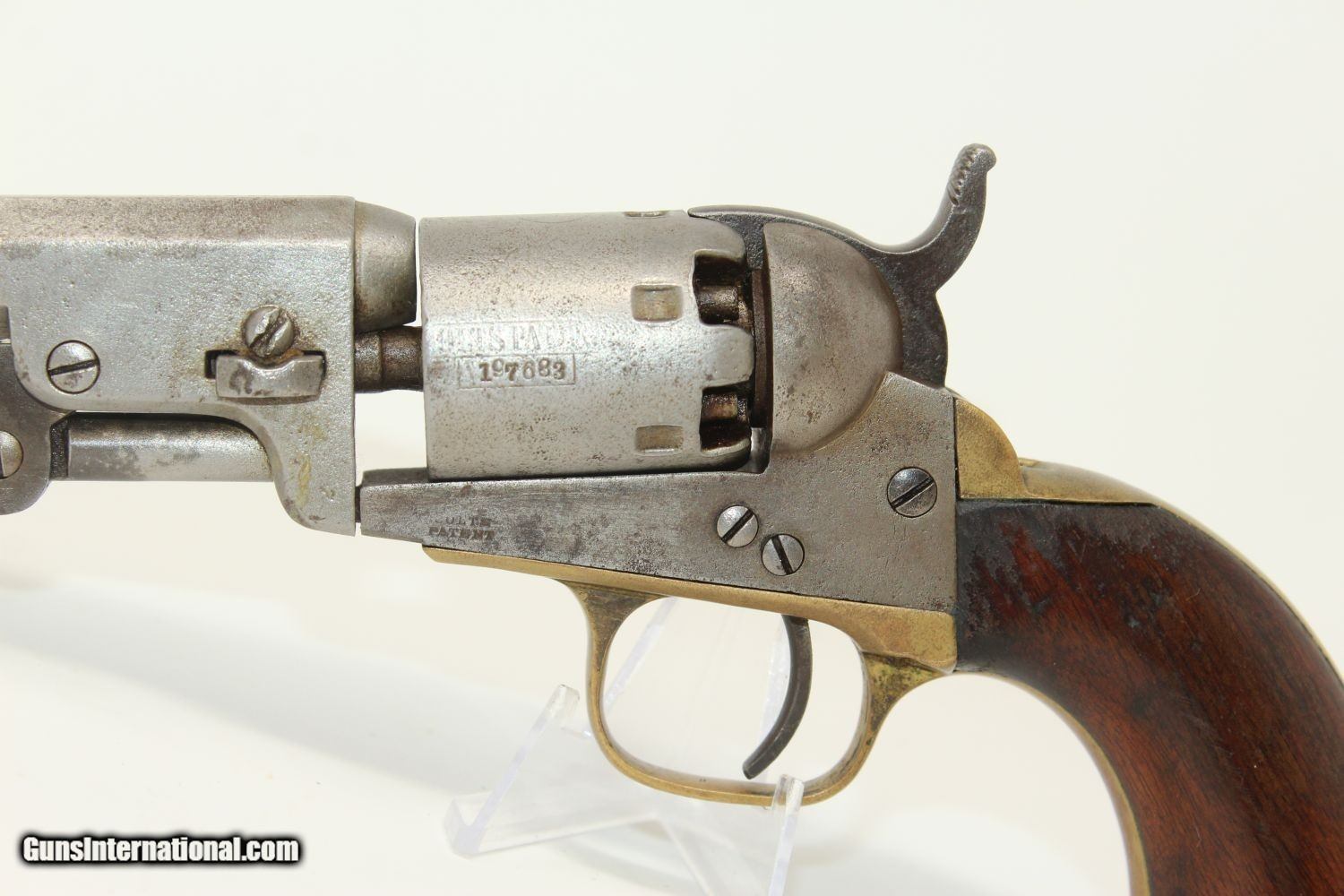 Description: CIVIL WAR Antique COLT 1849 POCKET .31 Revolver Made In 1863 in Hartford, Connecticut! Here we present an antique percussion Colt 1849 Pocket Revolver, made in the middle of the American Civil War in 1863 in Hartford, Connecticut. Over 280,000 of these were produced by Colt’s factory at Hartford by the end of the American Civil War in 1865 and 325,000 total made by the end of production. These were very popular and saw a lot of use on the battlefield, on the home front and in the West. These were some of the smallest, handiest pocket revolvers of the time. The overall condition is good. The iron parts are gray. The markings are clear. The numbers match. The walnut grips are in good shape. The bore is dark with good rifling. There is a bit of wobble between the barrel and frame. The action is excellent. Own the original! This is a legitimate antique and not a reproduction. Barrel is 6 inches. Caliber: .31 percussion Overall condition as seen in photos. Very Fast. Very Safe. FREE SHIPPING WORLDWIDE. Delivered directly to your door by express mail! Guaranteed AUTHENTIC & Includes CERTIFICATE OF AUTHENTICITY. ancestryguns $1200 #190627 SOLD Antique: Yes |