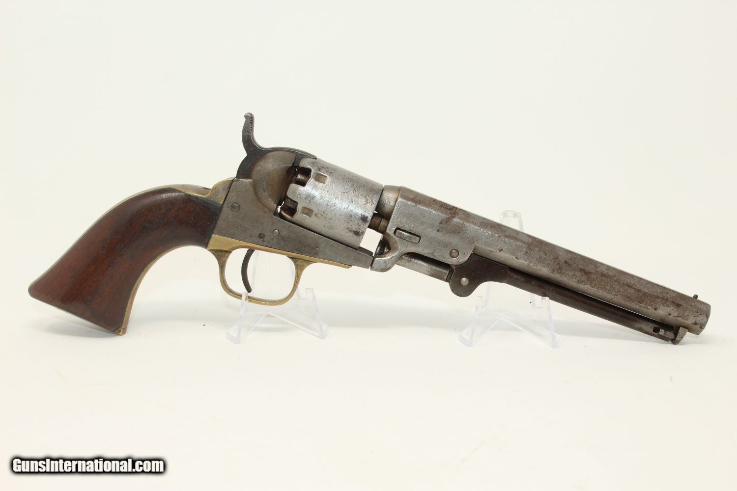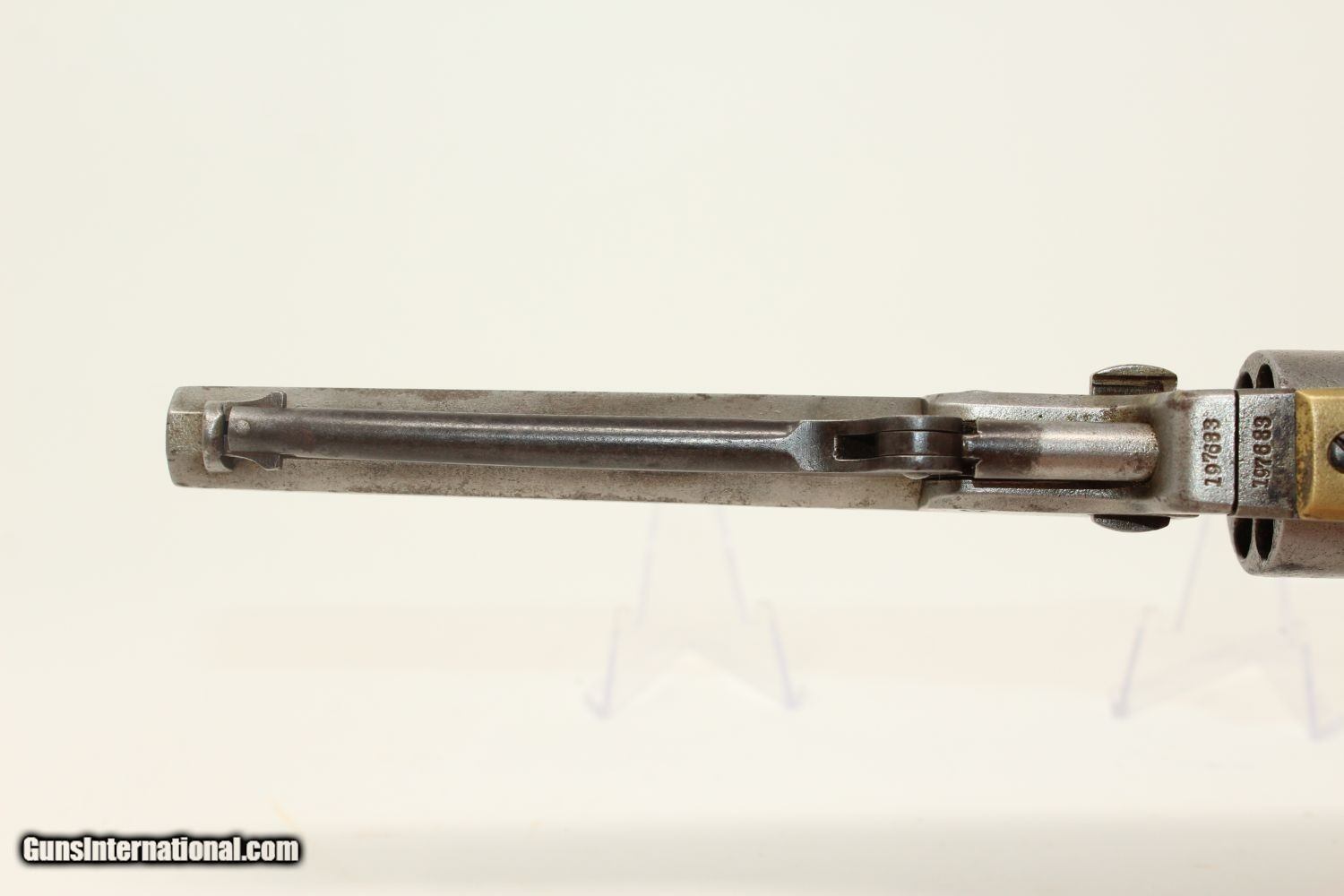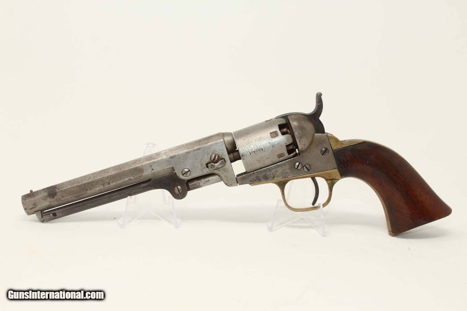 Description: CIVIL WAR Antique COLT 1849 POCKET .31 Revolver Made In 1863 in Hartford, Connecticut! Here we present an antique percussion Colt 1849 Pocket Revolver, made in the middle of the American Civil War in 1863 in Hartford, Connecticut. Over 280,000 of these were produced by Colt’s factory at Hartford by the end of the American Civil War in 1865 and 325,000 total made by the end of production. These were very popular and saw a lot of use on the battlefield, on the home front and in the West. These were some of the smallest, handiest pocket revolvers of the time. The overall condition is good. The iron parts are gray. The markings are clear. The numbers match. The walnut grips are in good shape. The bore is dark with good rifling. There is a bit of wobble between the barrel and frame. The action is excellent. Own the original! This is a legitimate antique and not a reproduction. Barrel is 6 inches. Caliber: .31 percussion Overall condition as seen in photos. Very Fast. Very Safe. FREE SHIPPING WORLDWIDE. Delivered directly to your door by express mail! Guaranteed AUTHENTIC & Includes CERTIFICATE OF AUTHENTICITY. ancestryguns $1200 #190627 SOLD Antique: Yes |