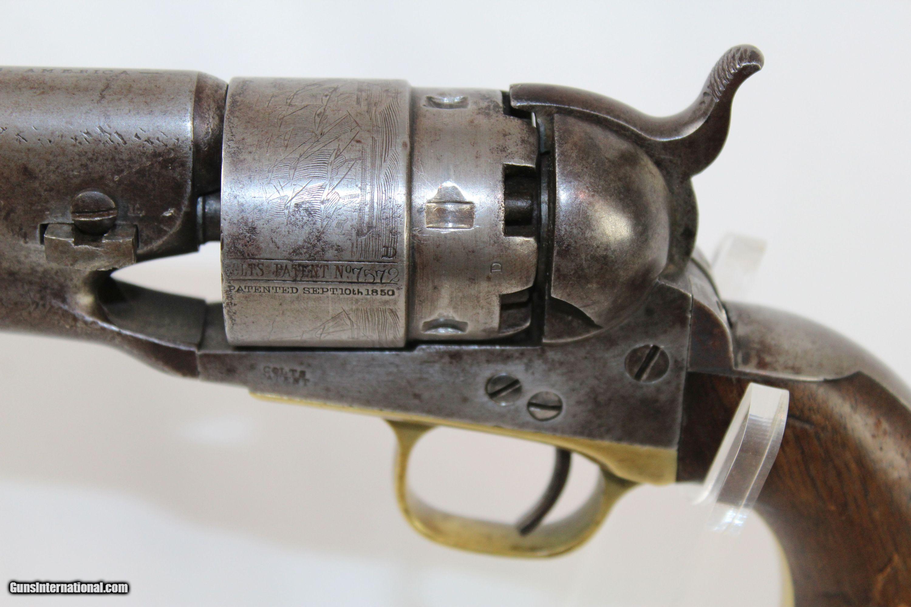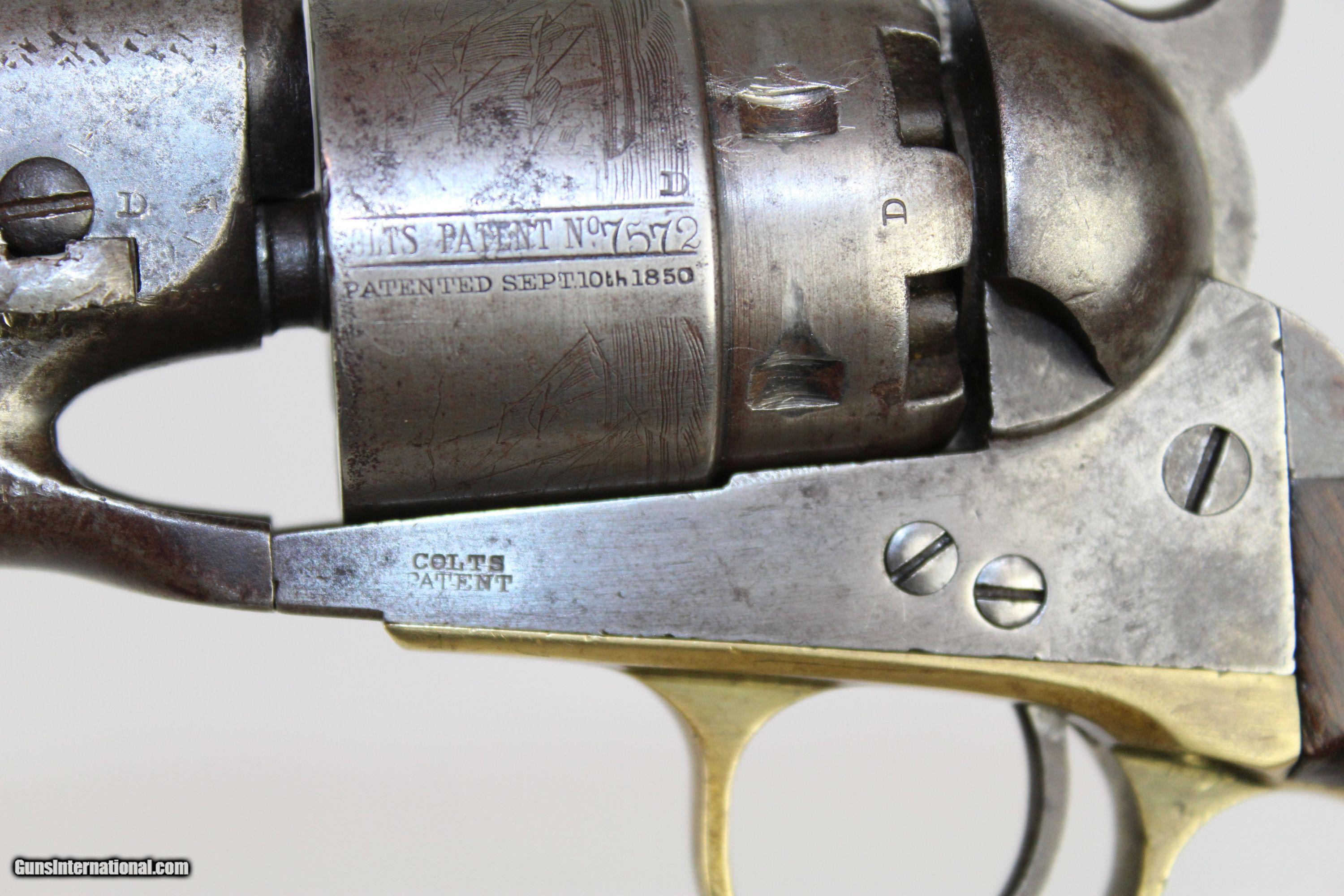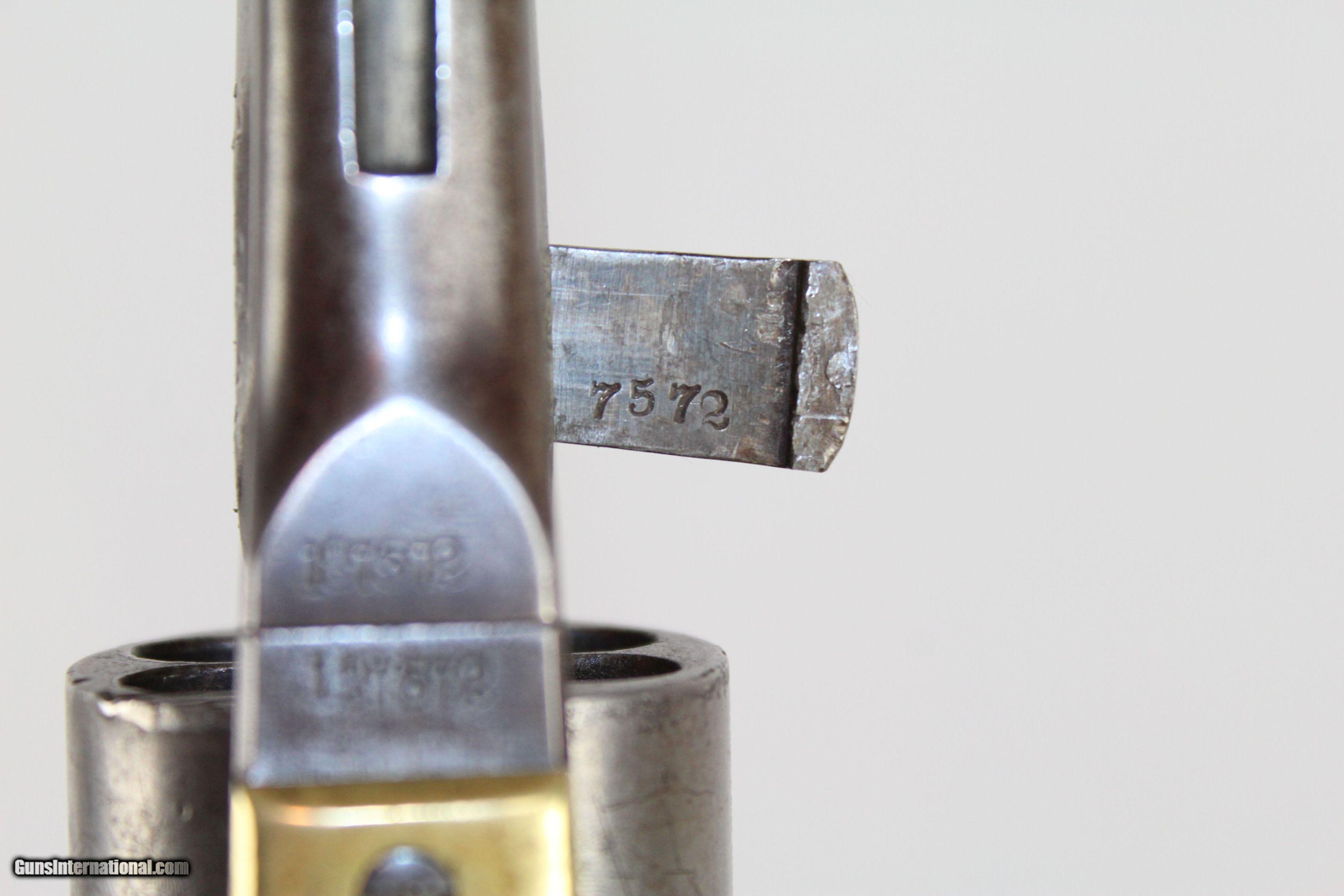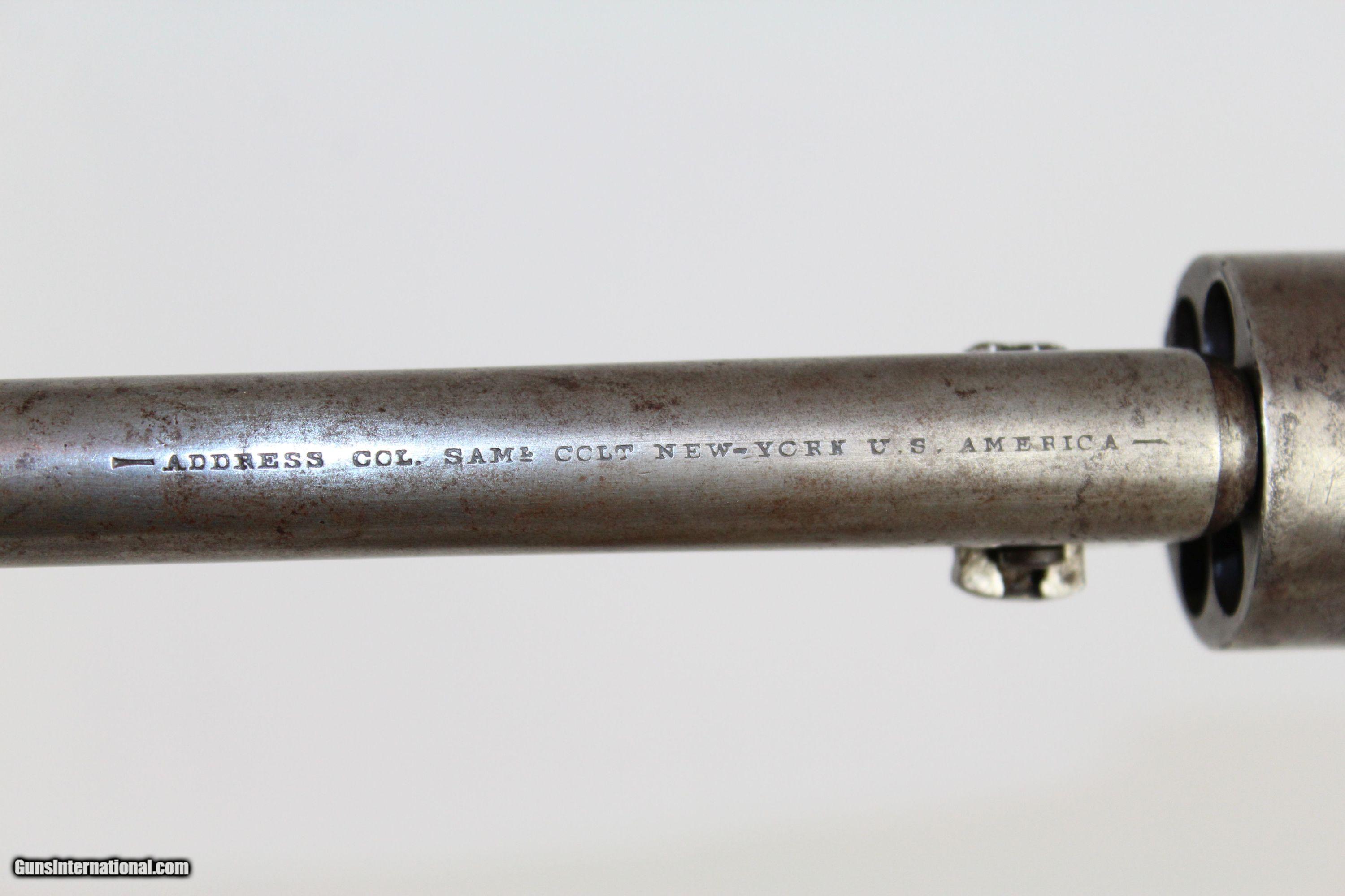 Description: CIVIL WAR Antique Colt 1860 ARMY Revolver Made in 1863 for U.S. Military Contract Here we present an antique Colt Model 1860 Army Revolver, made in 1863 in Hartford, Connecticut. The Model 1860 was the single most used pistol of the American Civil War. Over 200,000 were made from 1860 to 1873, and 156,000 were made by the end of the war in 1865. The 1860 Army was Samuel Colt’s finest achievement to that point, having finally developed a large caliber revolver that weighed about 2 lbs. 10 oz. to the famous Dragoon’s 4 lbs. 4 oz., and was adopted en masse by the U.S. government with huge contracts. The revolver was well balanced in hand, and had a long enough barrel to be effective when utilized as a carbine with the attachable shoulder stock. This revolver represented unprecedented firepower from a handgun in the field at the time and was especially suited to Cavalry. The Confederacy, lacking in manufacturing capabilities though they were, managed to produce limited numbers of copies, and battlefield pickups of the 1860 Army were highly coveted. The 1860 Army went on to serve the U.S. military even after the Civil War and into the Indian Wars, until production of Colt’s 1873 Single Action Army created new waves in the revolver market, and again achieved great success in the military and commercial markets. The cylinder roll engraving on the 1860 Army features a scene from the Battle of Campeche executed by American engraver Waterman Ormsby. The engraving pays homage to Texas in their fight with the Mexican government for independence. During this particular battle, the Mexican Navy wielded two ironclad steamers, while the Texans were armed with a variety of wooden ships, led by Commodore Edwin Moore. The scene also appears on the cylinders of the Colt 1851 and 1861 Navy Revolvers. The overall condition is very good. The iron bears an even gray patina. The markings are clear. The walnut grip is in very good condition with still visible government inspector cartouches on each side. The bore is clean with good rifling. The action is excellent. Own a piece of Civil War history! Own the original! This is a legitimate antique and not a reproduction. Barrel is 8 inches. Caliber: .44 Percussion Overall condition as seen in photos. Very Fast. Very Safe. FREE SHIPPING WORLDWIDE. Delivered directly to your door by express mail! Guaranteed AUTHENTIC & Includes CERTIFICATE OF AUTHENTICITY. ancestryguns $2600 #5184 SOLD Antique: Yes |
