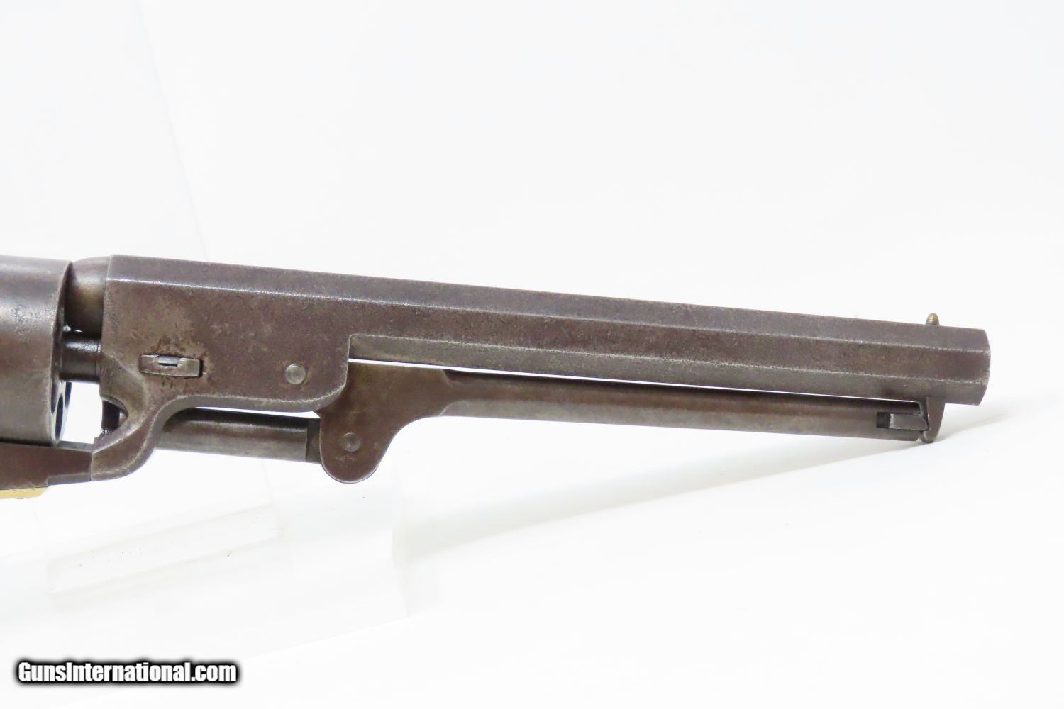 Description: CIVIL WAR Antique COLT U.S. Model 1851 NAVY .36 Caliber PERCUSSION Revolver Manufactured in 1856 in Hartford, Connecticut! Here we present an antique Colt U.S. Model 1851 Navy Percussion Revolver, made in 1856 in Hartford, Connecticut. The 1851 Navy was one of Colt’s most famous and successful lines, reaching a production total of 257,348 from 1850 to 1873 (right up to the time of SAA production) from both Hartford and London factories. From Hartford alone, 185,000 were made by the end of the American Civil War. Many of these saw service during the conflict on both sides. There were some military purchases and lots of private purchases by soldiers going off to war. In addition, the Model 1851 was carried by Confederate General Robert E. Lee and was a favorite of “Doc” Holliday and “Wild Bill” Hickok, who carried two of these most famously in his red sash. Truly, the Colt 1851 Navy revolver ushered in the era of the gunfighter. Among the many guns that were used on the western frontier, none was more popular in its day than the Colt percussion revolver designated the 1851 Navy. This single action revolver weighed in at roughly 42 ounces. Prior to the Navy's introduction, hand gunners had to make do with the Colt Walker and Dragoon revolvers, both of which weighed over four pounds. These big guns were best suited for carry in pommel holsters on the saddle. The Colt Navy was the first popular single-action revolver that could be worn comfortably on the belt. Prior to the beginning of the Civil War, the state of Missouri was a hotbed of trouble that often broke out in shooting fights. Bill Anderson, Jesse and Frank James, and the Youngers all cut their teeth on this border trouble and were ready to go when leaders like William Quantrill enlisted them in his guerilla band during the war. The boys from Missouri became quite proficient with their six-guns and generally carried a brace of Dragoons on their saddle pommels and a brace of Navy revolvers on their hip. The overall condition is very good. It is “untouched” with its original patina and includes matching serial numbers, the cylinder scene, and clear markings. The action is strong and tight. The bore is in good shape. Grips are firm and remain in good shape. A great, early example of a Colt Model 1851 Navy! Own the original! This is a legitimate antique and not a reproduction. Barrel is 7-1/2 inches. Caliber: .36 Overall condition as seen in photos. Very Fast. Very Safe. FREE SHIPPING WORLDWIDE. Delivered directly to your door by express mail! Guaranteed AUTHENTIC & Includes CERTIFICATE OF AUTHENTICITY. ancestryguns $4325 #210310 SOLD Antique: Yes |