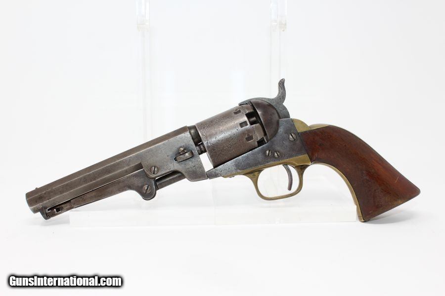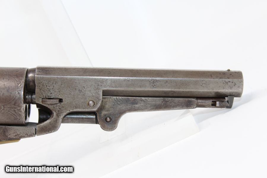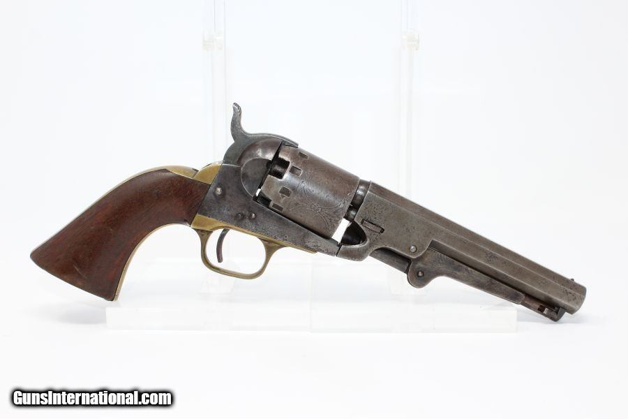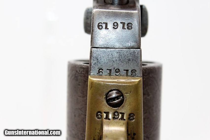 Description: CIVIL WAR Antique MANHATTAN NAVY .36 Cal Revolver Successful Colt Clone & Contemporary! Here we present an antique Manhattan Navy Series IV Revolver, made circa 1864 in Newark, New Jersey. Manhattan Fire Arms Co. was founded in 1856 specifically to capitalize on the soon to be expiring Colt patents in 1857. This strategy worked very well for the company and they began by making high quality and very close copies of both Colts and other popular pistols with expired patents. In fact, Manhattan’s copies of Colts were so close that Colt tried to kill their production with a lawsuit, even though their patent had expired. Quite obviously, this pistol is a direct and quality copy of the Colt 1851 Navy. Manhattan’s revolvers were very well received by the public. The company never received U.S. military contracts, except for a small delivery, most likely on the regimental level. Nevertheless, many Manhattan revolvers found themselves on smoky Civil War battlefields, purchased privately by officers and soldiers, and they were certainly in use at home. The war created a vast and unquenchable market for firearms of all types. The overall condition is very good. Traces of the original blue and faint case colors remain. The cylinder scene frames are still very good while the interiors are faint. The markings are clear and legible. Numbers match. The walnut grips are in good shape. The bore is clean with good rifling. The action on this revolver is excellent. Own the original! This is a legitimate antique and not a reproduction. Barrel is 5 inches. Caliber: .36 Percussion Overall condition as seen in photos. Very Fast. Very Safe. FREE SHIPPING WORLDWIDE. Delivered directly to your door by express mail! Guaranteed AUTHENTIC & Includes CERTIFICATE OF AUTHENTICITY. ancestryguns $1525 #8360 SOLD Antique: Yes |