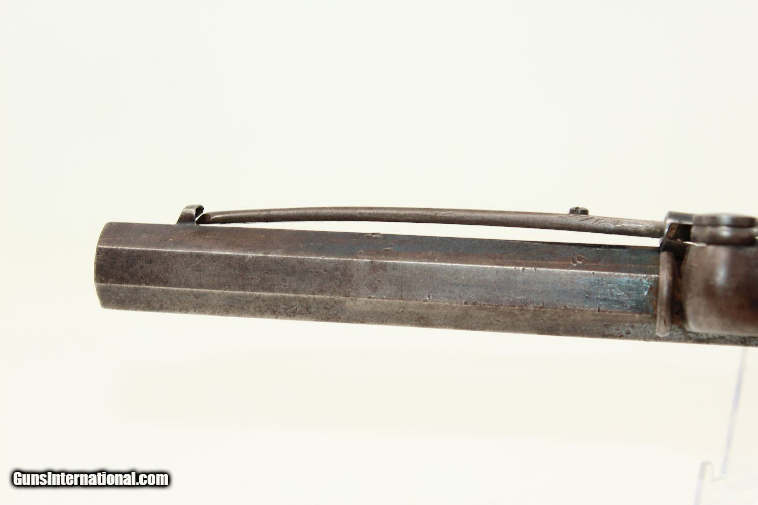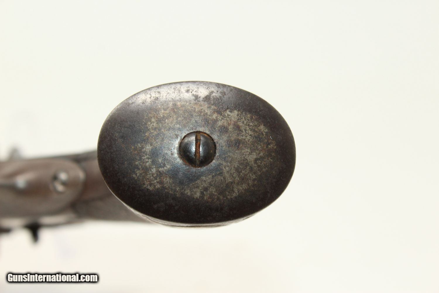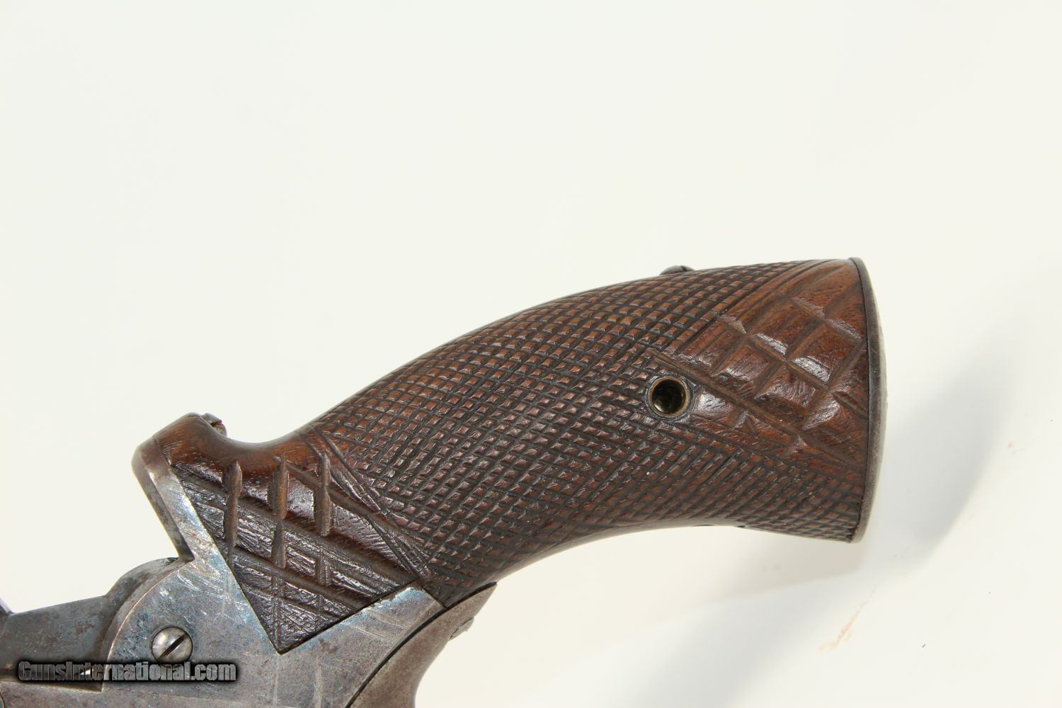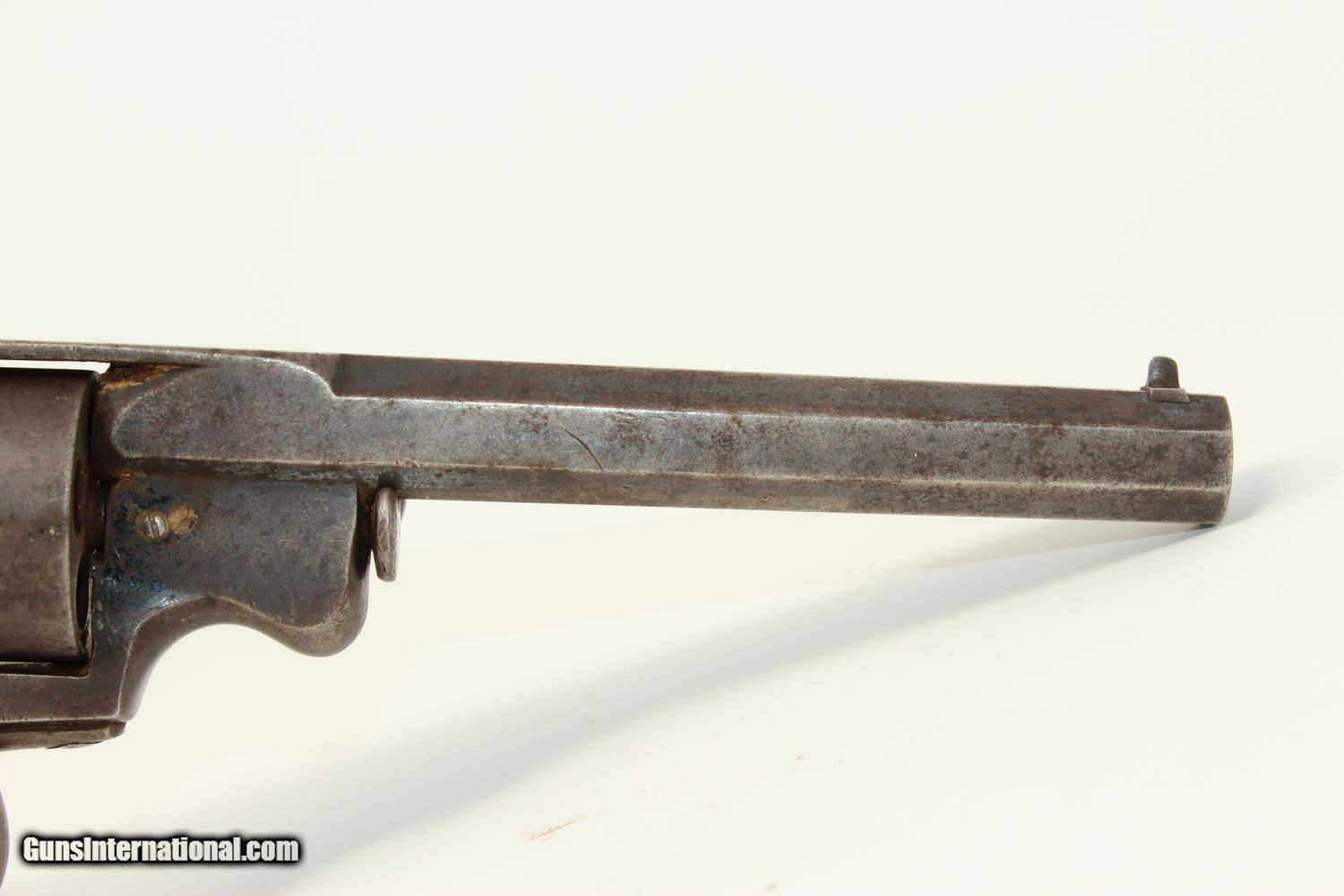 Description: CIVIL WAR Antique MASSACHUSETTS ARMS Adams & Kerr Patent NAVY Revolver 1861 RARE; 1 of Only 1,000 Manufactured Here we present an antique Massachusetts Arms Co. Adams & Kerr Patent Navy Double Action Revolver, manufactured circa 1861. Only about 1,000 of these were produced, this one being in the 800 range. Brit Robert Adams is credited with patenting the first successful double action revolver in 1851. The Adams revolvers were initially double action only. They were well-received among professionals in the 1850s and served with the British East India Company, with British military officers, and were eventually popular among officers in the South during the American Civil War in the early 1860s, imported from Europe. The US government purchased about 600 of that number when the Civil War began. This revolver was made by Mass. Arms, an American company with patents licensed from Adams and another Brit inventor by the name of Kerr (the rammer). This one has an interesting sliding safety on the right side that blocks the cylinder. The front screw of the trigger guard features a field expedient repair, a rather interesting solution to a lost screw, a piece has been hammered home and peened. The top of the frame is marked “MANUFACTURED BY/MASS. ARMS CO./CHICOPEE FALLS”. The left side of the frame is marked “ADAMS PATENT/MAY 3, 1858”. The ejector is marked “KERR’S PATENT/APRIL 14, 1857”. The right side of the frame is marked “PATENT/JUNE 3, 1856”. The overall condition is Near Fine. 30-40% of the original blue remains. The action is strong and smooth. The bore is in very good condition with sharp rifling. All the markings are clear. The grips are in great conditions and feel solid and feature a personal touch of large hand-checkering at the top and bottom. A unique piece that can be shown off in any collection and a great example of transitional technology as well as a piece of Civil War history! Own the original! This is a legitimate antique and not a reproduction. Barrel is 6 inches. Caliber: .38 Percussion Overall condition as seen in photos. Very Fast. Very Safe. FREE SHIPPING WORLDWIDE. Delivered directly to your door by express mail! Guaranteed AUTHENTIC & Includes CERTIFICATE OF AUTHENTICITY. ancestryguns $3300 #190706 SOLD Antique: Yes |