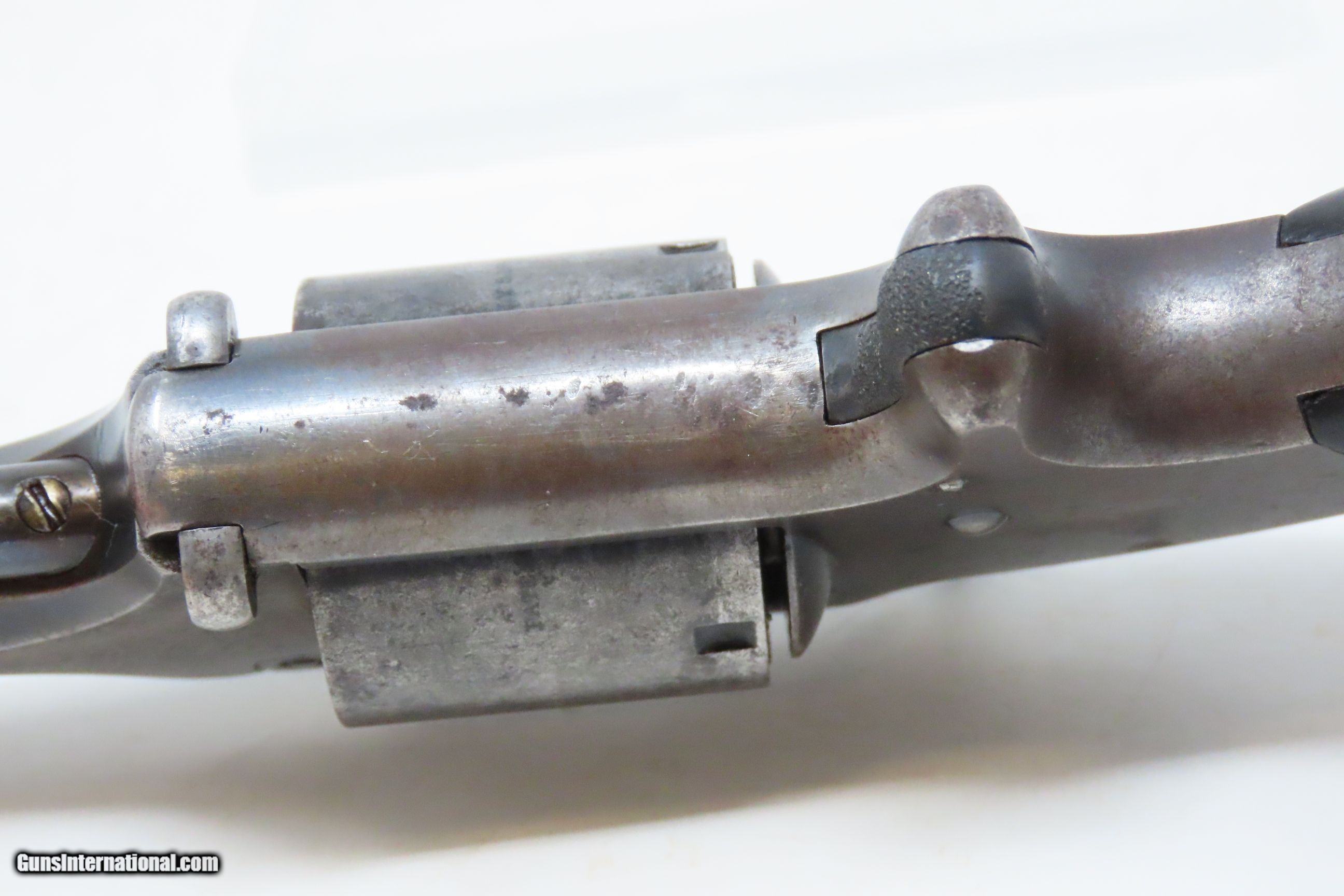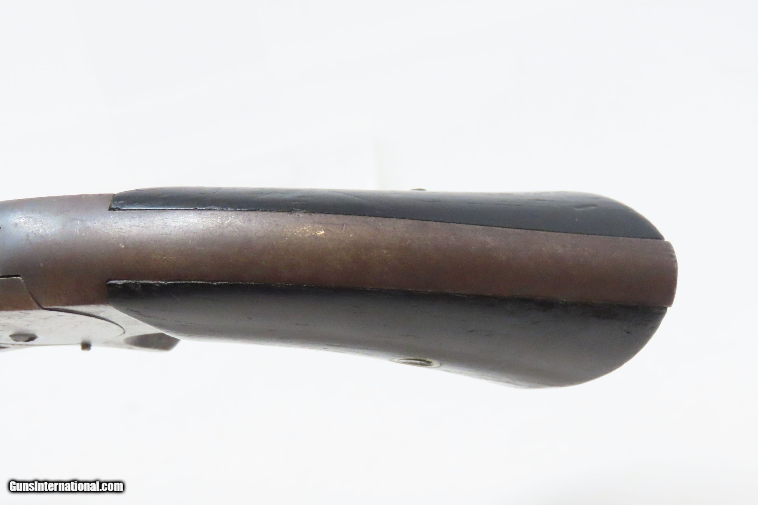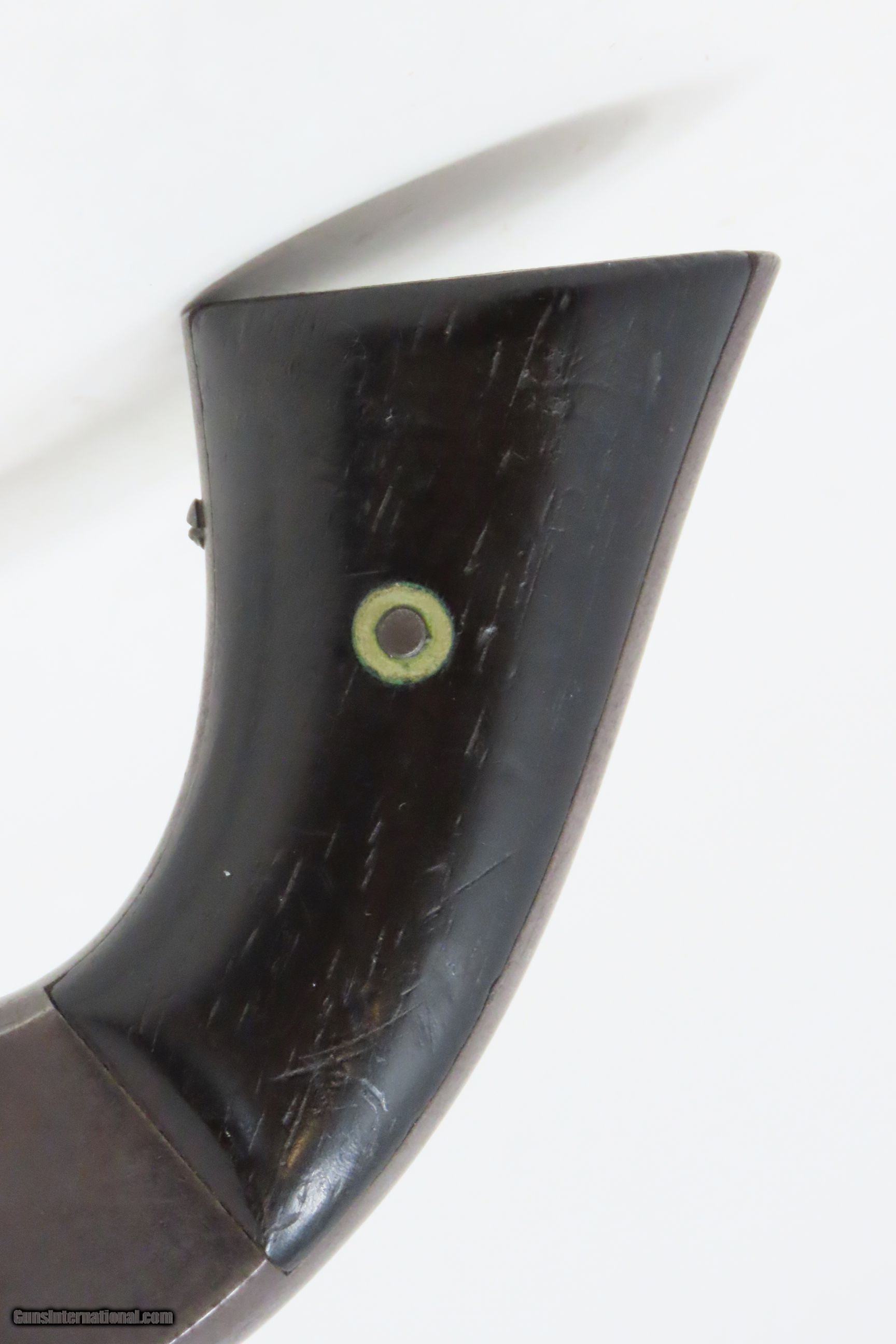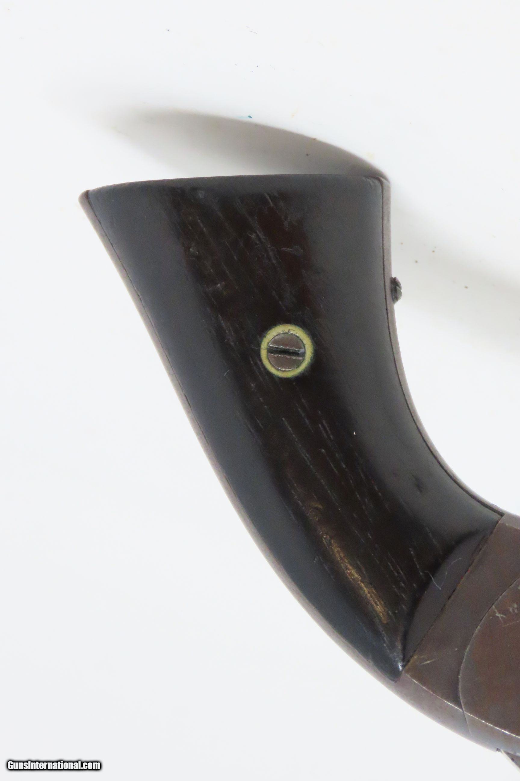 Description: CIVIL WAR Antique SMITH & WESSON No. 2 “Old Army” .22 RF WILD BILL HICKOCK Made During the Civil War Era Circa 1861 Here we present an antique Smith & Wesson Model No. 2 “Old Army” Revolver, made circa 1861 in Springfield, Massachusetts. Smith & Wesson purchased the rights to the Rollin White patent for the bored through cylinder, which would forever change the development of revolving firearms. Beginning in 1857 they produced the Number 1, a 7-shot .22 rimfire pocket pistol, which was quite successful. This was fine for the commercial market, but S&W knew they could scale up their design for a pistol that could be worn on the belt in a holster. They began shipping their Number 2 “Army” Revolver, a 6-shot .32 caliber, just 2 months after the beginning of the American Civil War. Smith & Wesson continued to leverage their patent well beyond the war and they remained very popular with the public and on the frontiers. There was a total of 77,200 of these revolvers made during their production run from 1861 through 1874. Revolvers with serial numbers under 35,731 are considered to be civil war guns since they were manufactured before May 1, 1865. Though it never received any large federal contracts, it was adopted at the state, unit and individual levels. Per Charles Pate, Kentucky ordered 731 Number 2 “Armies” from Kittredge & Co. late in 1862, and even more in 1863. He says that “Most, if not all, of the revolvers used to fill the Kentucky order were almost certainly under 10,000 in serial number.” He also lists individuals and units that used these revolvers, per records and personal correspondence. The 7th Kentucky Cavalry appears to be the only unit officially issued this handgun during the war. Among the most famous of users was future U.S. President Rutherford B. Hayes, who began his part in the war as Lieutenant Colonel and ended it with Brevet Brigadier General. Ulysses S. Grant wrote about him “his conduct on the field was marked by conspicuous gallantry as well as the display of qualities of a higher order than that of mere personal daring." Another name and legend from the Civil War who used the Number 2 was General George Armstrong Custer, who owned a pair of them. “Wild Bill” Hickok wore this gun the night he was assassinated while playing cards, his last hand now called the “Dead Man’s Hand” of Black Aces and 8s. This example was originally chambered in .32 Rimfire, and at some point, the barrel and cylinder were sleeved and chambered in .22 Rimfire. The overall condition is good. Light gray patina. Strong action. The hinge is solid. The bore is bright with sharp rifling. Legible markings. Both grips contain only an average amount of wear. One of the first Smith & Wesson revolvers ever made, and just in time for the American Civil War! Own the original! This is a legitimate antique and not a reproduction. Barrel is 5 inches. Caliber: .22 Rimfire Overall condition as seen in photos. Very Fast. Very Safe. FREE SHIPPING WORLDWIDE. Delivered directly to your door by express mail! Guaranteed AUTHENTIC & Includes CERTIFICATE OF AUTHENTICITY. ancestryguns $1800 #231006 SOLD Antique: Yes |