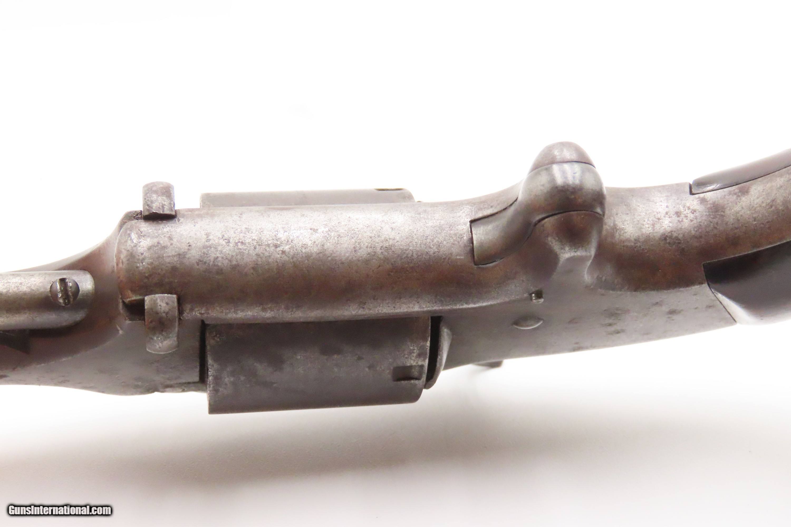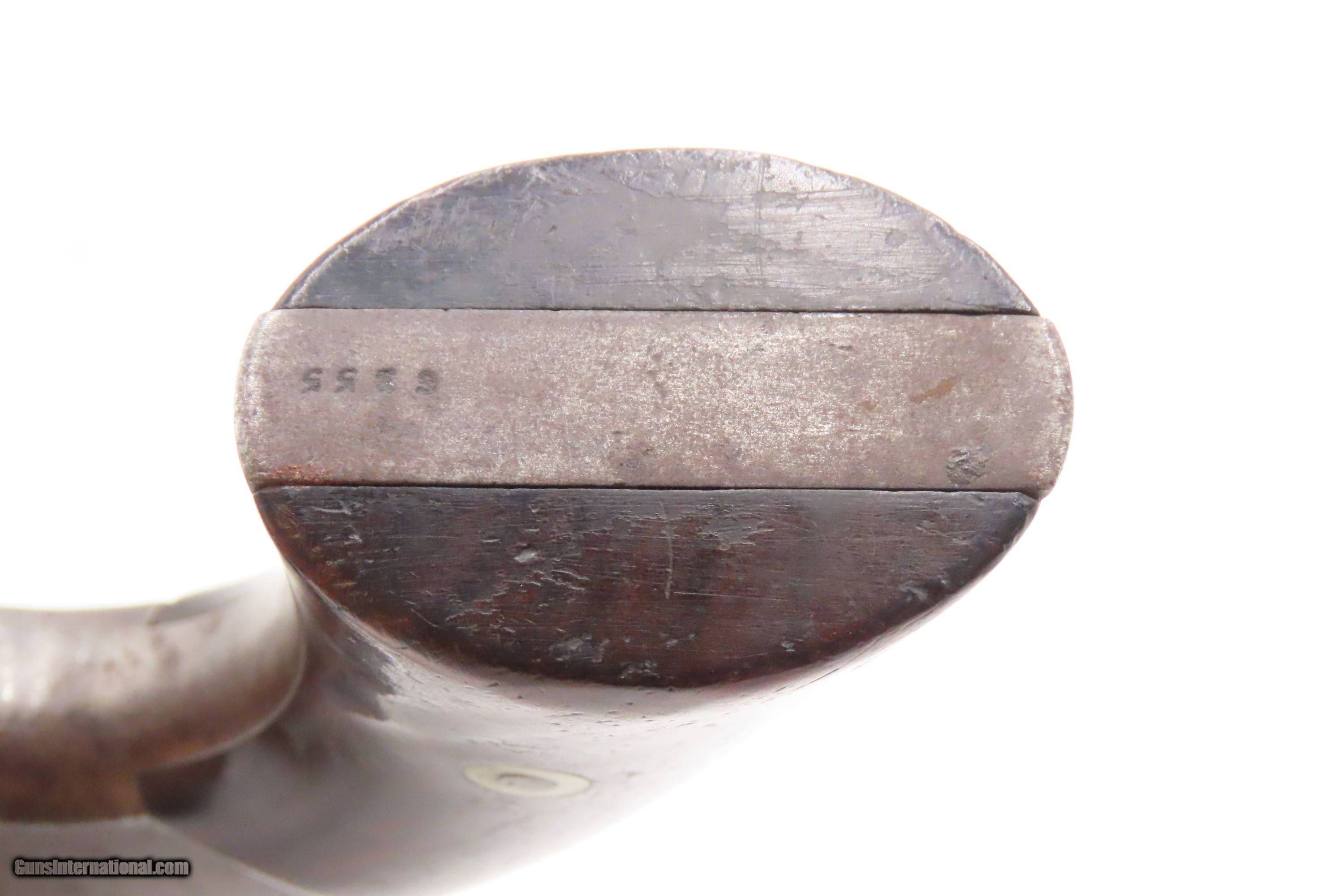 Description: CIVIL WAR Antique SMITH & WESSON No. 2 “Old Army” .32 RF WILD BILL HICKOCK “DEAD MAN’S HAND” Revolver Made Circa 1862 Here we present an antique Smith & Wesson Model No. 2 “Old Army” Revolver, made circa 1862 in Springfield, Massachusetts. Smith & Wesson purchased the rights to the Rollin White patent for the bored through cylinder, which would forever change the development of revolving firearms. Beginning in 1857 they produced the Number 1, a 7-shot .22 rimfire pocket pistol, which was quite successful. This was fine for the commercial market, but S&W knew they could scale up their design for a pistol that could be worn on the belt in a holster. They began shipping their Number 2 “Army” Revolver, a 6-shot .32 caliber, just 2 months after the beginning of the American Civil War. Smith & Wesson continued to leverage their patent well beyond the war and they remained very popular with the public and on the frontiers. There was a total of 77,200 of these revolvers made during their production run from 1861 through 1874. Revolvers with serial numbers under 35,731 are considered to be civil war guns since they were manufactured before May 1, 1865. Though it never received any large federal contracts, it was adopted at the state, unit and individual levels. Per Charles Pate, Kentucky ordered 731 Number 2 “Armies” from Kittredge & Co. late in 1862, and even more in 1863. He says that “Most, if not all, of the revolvers used to fill the Kentucky order were almost certainly under 10,000 in serial number.” He also lists individuals and units that used these revolvers, per records and personal correspondence. The 7th Kentucky Cavalry appears to be the only unit officially issued this handgun during the war. Among the most famous of users was future U.S. President Rutherford B. Hayes, who began his part in the war as Lieutenant Colonel and ended it with Brevet Brigadier General. Ulysses S. Grant wrote about him “his conduct on the field was marked by conspicuous gallantry as well as the display of qualities of a higher order than that of mere personal daring." Another name and legend from the Civil War who used the Number 2 was General George Armstrong Custer, who owned a pair of them. “Wild Bill” Hickok wore this gun the night he was assassinated while playing cards, his last hand now called the “Dead Man’s Hand” of Black Aces and 8s. The overall condition is good. The action is strong. This example has a mixed brown and gray patina. Good bore for its age. Both grips are solid. Slight wiggle is present in the hinge. Markings are legible. One of the first Smith & Wesson revolvers ever made, and just in time for the American Civil War! Own the original! This is a legitimate antique and not a reproduction. Barrel is 6 inches. Caliber: .32 Rimfire Overall condition as seen in photos. Very Fast. Very Safe. FREE SHIPPING WORLDWIDE. Delivered directly to your door by express mail! Guaranteed AUTHENTIC & Includes CERTIFICATE OF AUTHENTICITY. ancestryguns $1800 #247296 SOLD Antique: Yes |