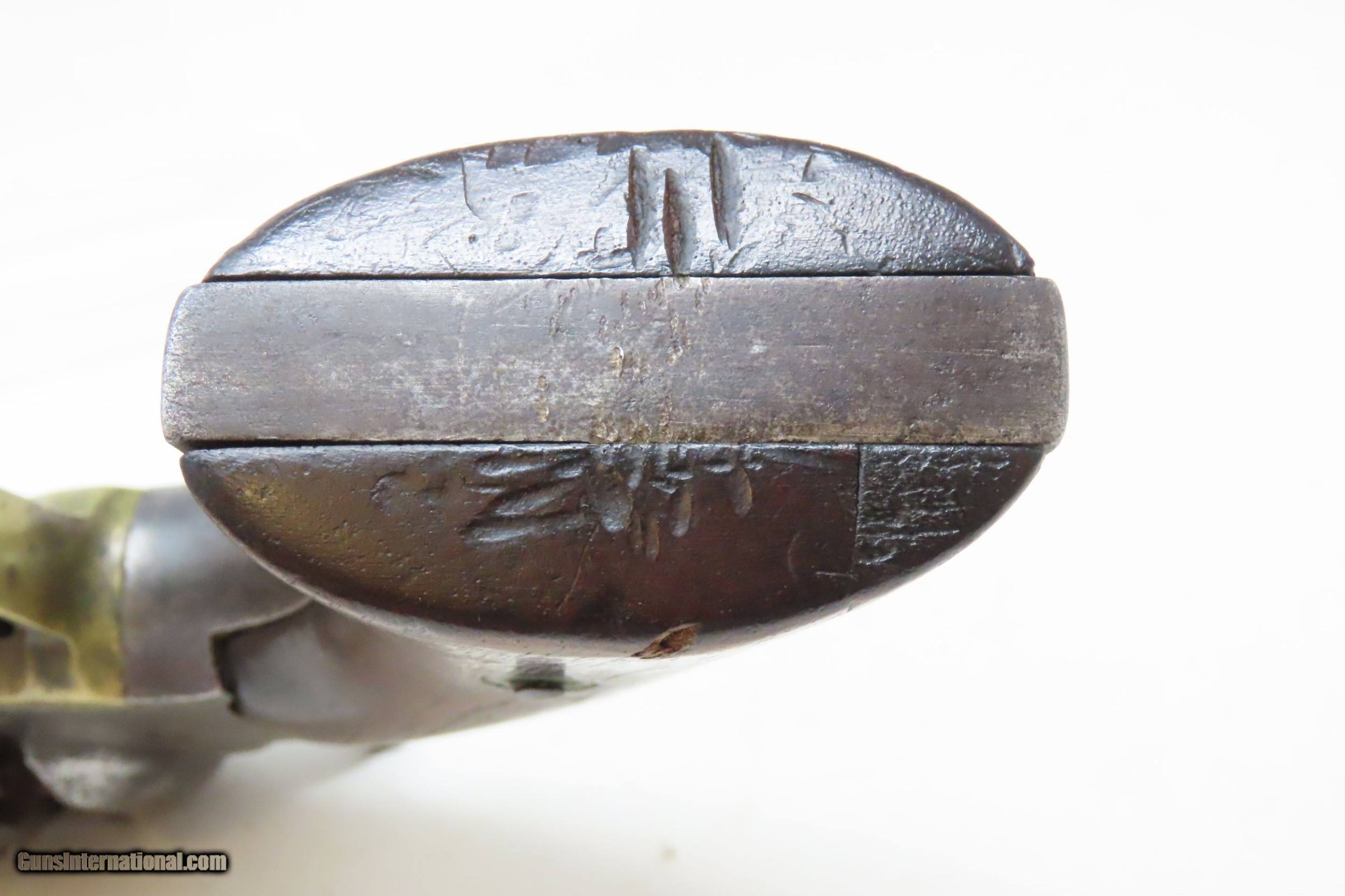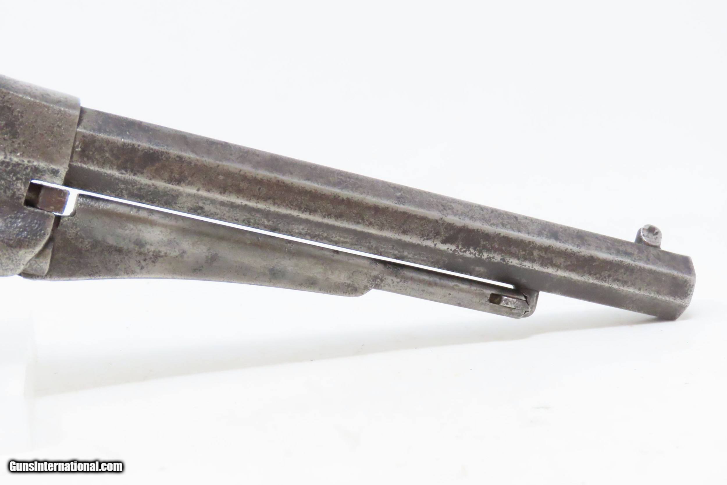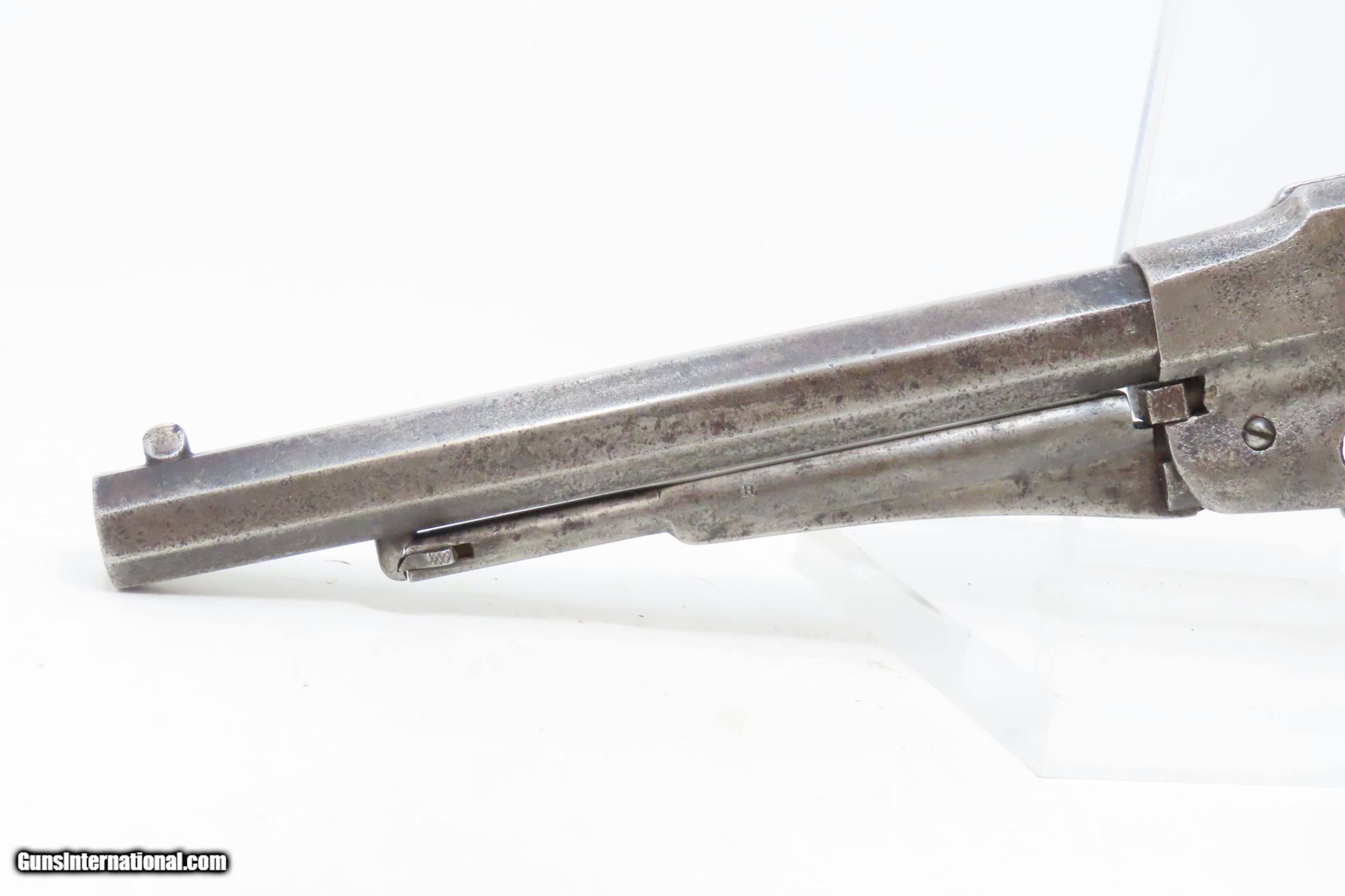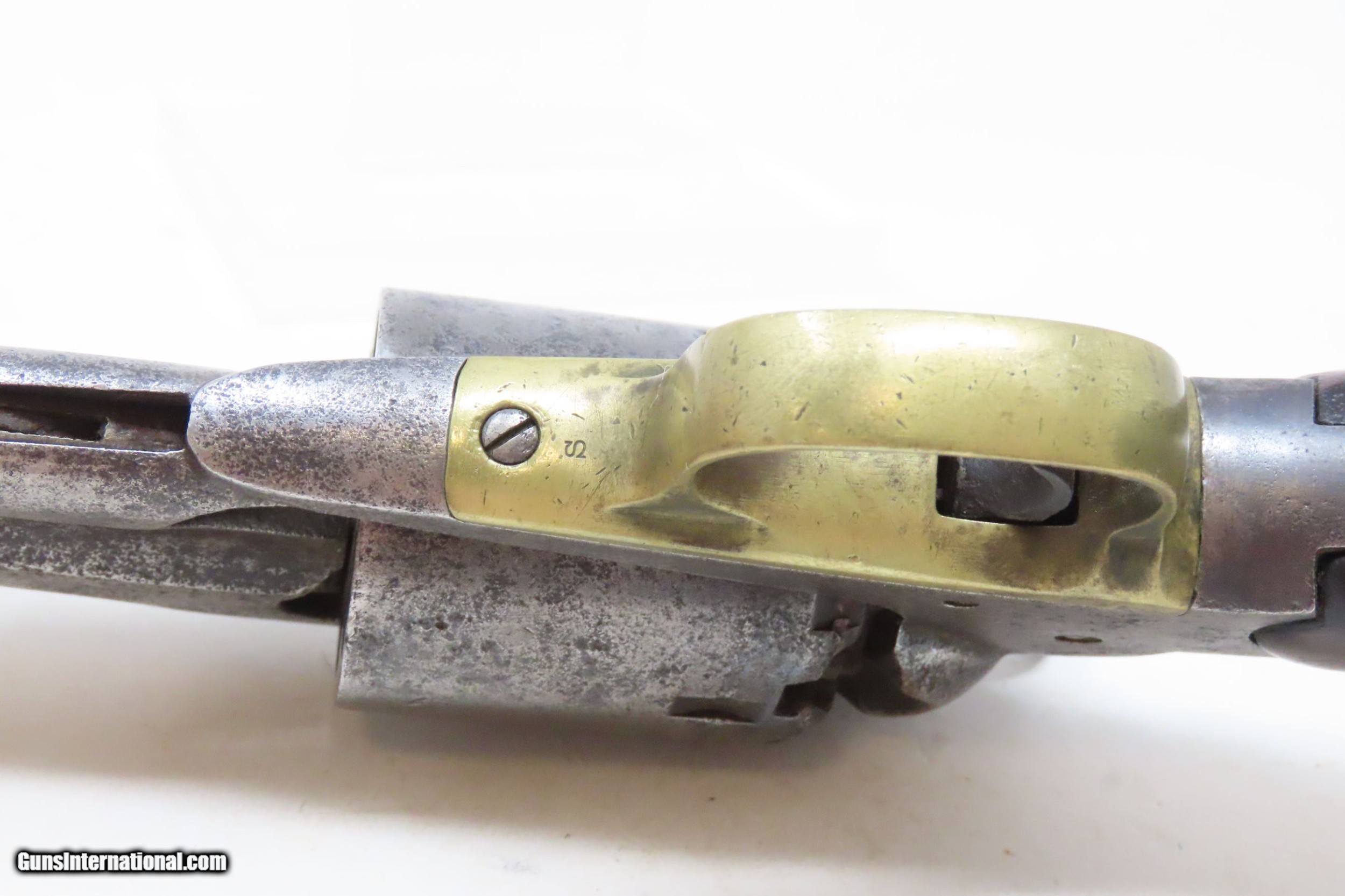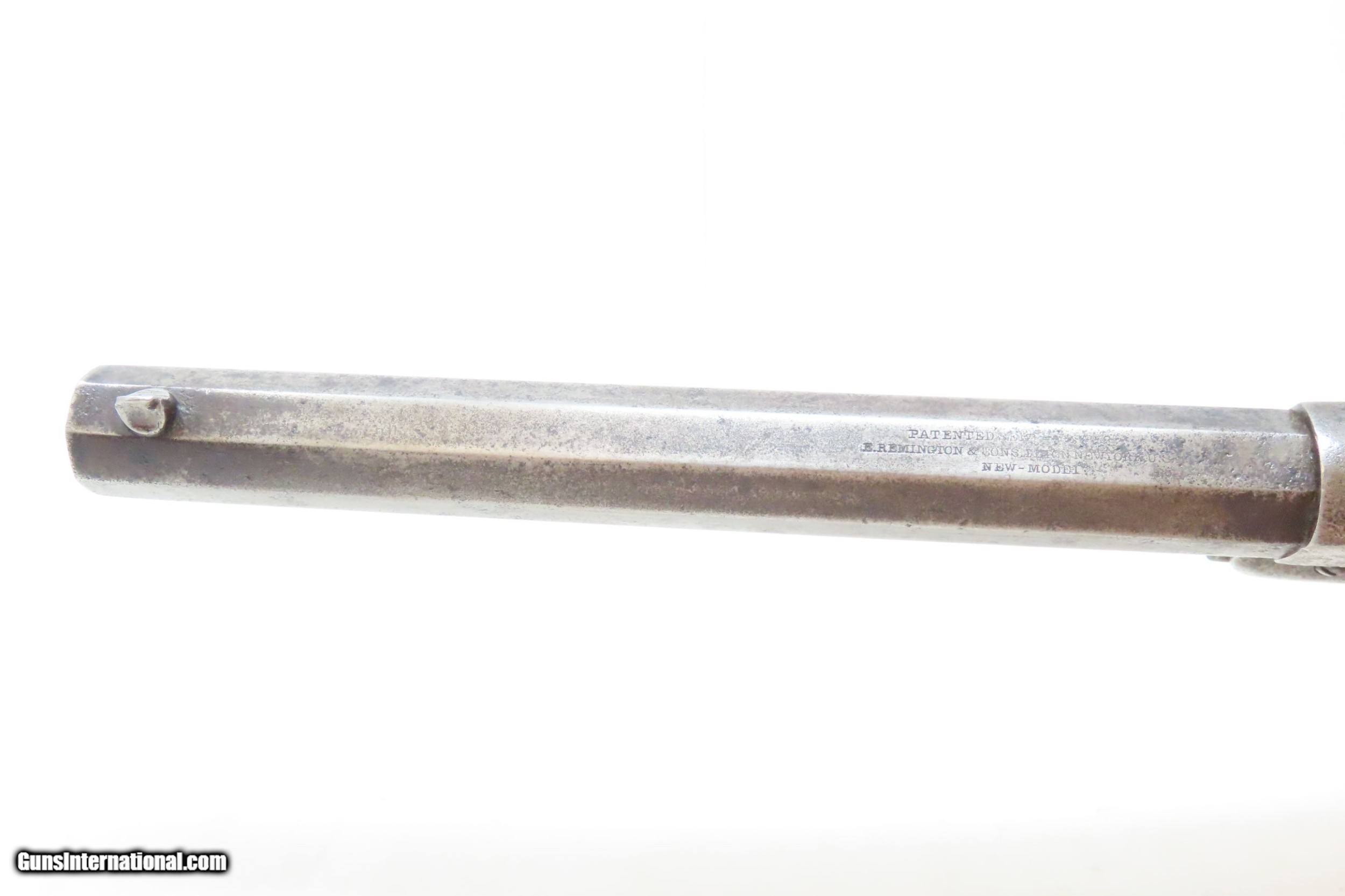 Description: CIVIL WAR Antique US MILITARY Contract Percussion REMINGTON New Model ARMY Made and Shipped Circa 1863-65 Here we present an antique U.S. Contract Remington New Model Army Percussion Revolver, likely issued to a Union soldier circa 1863-65, during the American Civil War. The New Model Army was manufactured from 1863 to 1875 with a total production of approximately 132,000 and represented the last of Remington's .44 caliber percussion revolvers. The Remington New Model Army represents the second-greatest number of issued handguns found on Civil War battlefields, second only to the Colt 1860 Army. The New Model Army was the primary revolver issued to Union cavalry after the fire at the Colt's factory in 1863. The Union government acquired a total of some 122,000 of these New Model revolvers for military use, with nearly 110,000 New Models purchased by the U.S. government during the Civil War, at a cost of around $11 each. The State of New Jersey also purchased several thousand for Civil War issue. The New Model 1863 Army represents Remington’s highest production martial pistol. It featured a strong, solid-frame design with the groove in the top for a rear sight, as opposed to Colt’s open-top design. Though Colt got the lion’s share of the government contracts, many consider the Remington New Model Army the superior firearm. William F. "Buffalo Bill" Cody used an ivory-handled New Model Army .44, serial number 73,293, from 1863 until 1906, when he gave it to his ranch foreman with a handwritten note which said that, "It never failed me”. This U.S. Contract revolver has a good U.S. Ordnance Inspector cartouche on the left grip. There are inspection marks throughout with standard markings and features. The overall condition is good. Worn and weathered exterior. Strong action. Dim bore with good rifling. The grips are solid and the cartouche on the left is still legible. Matching numbers. Own the original! This is a legitimate antique and not a reproduction. Barrel is 8 inches. Caliber: .44 Percussion Overall condition as seen in photos. Very Fast. Very Safe. FREE SHIPPING WORLDWIDE. Delivered directly to your door by express mail! Guaranteed AUTHENTIC & Includes CERTIFICATE OF AUTHENTICITY. ancestryguns $2325 #226444 SOLD Curio/Relic: Yes |