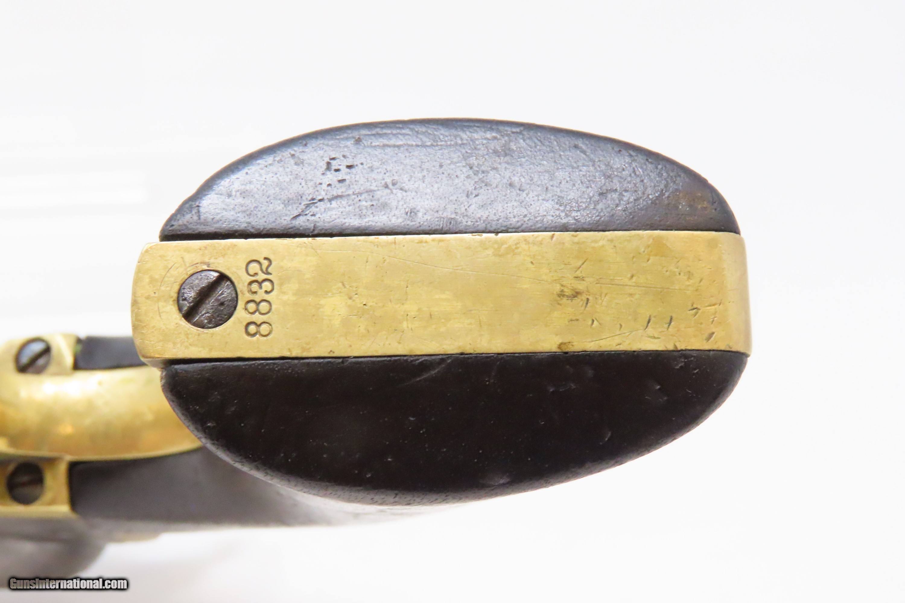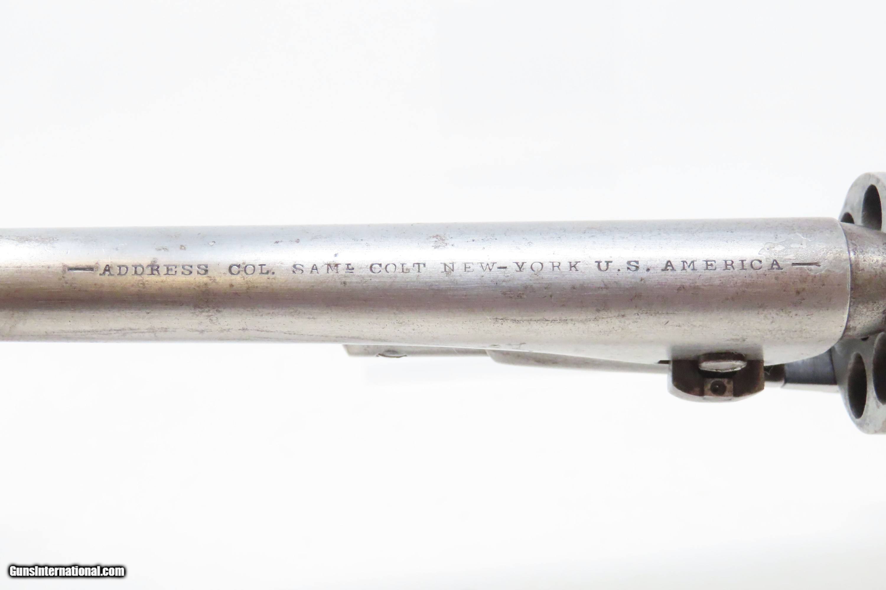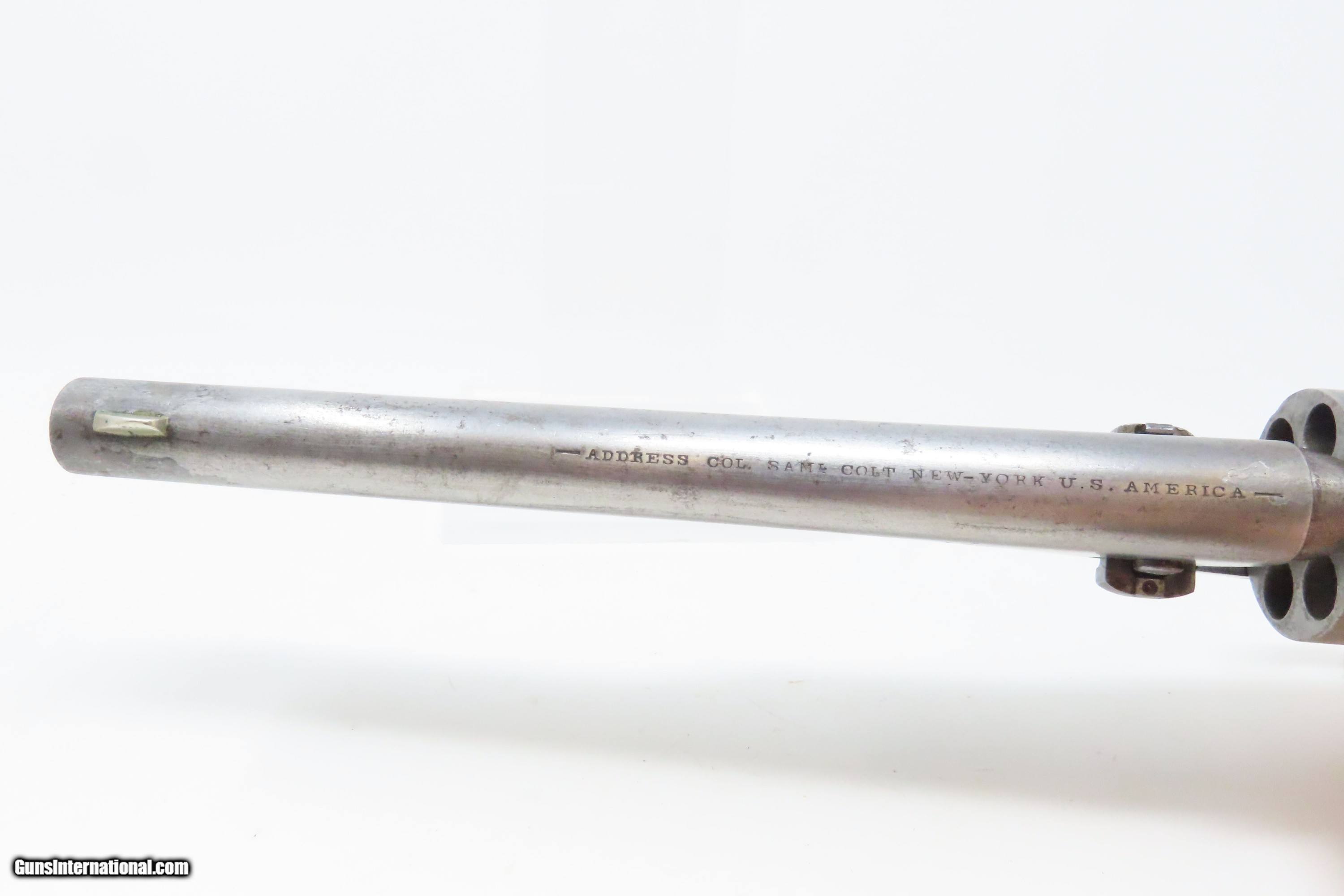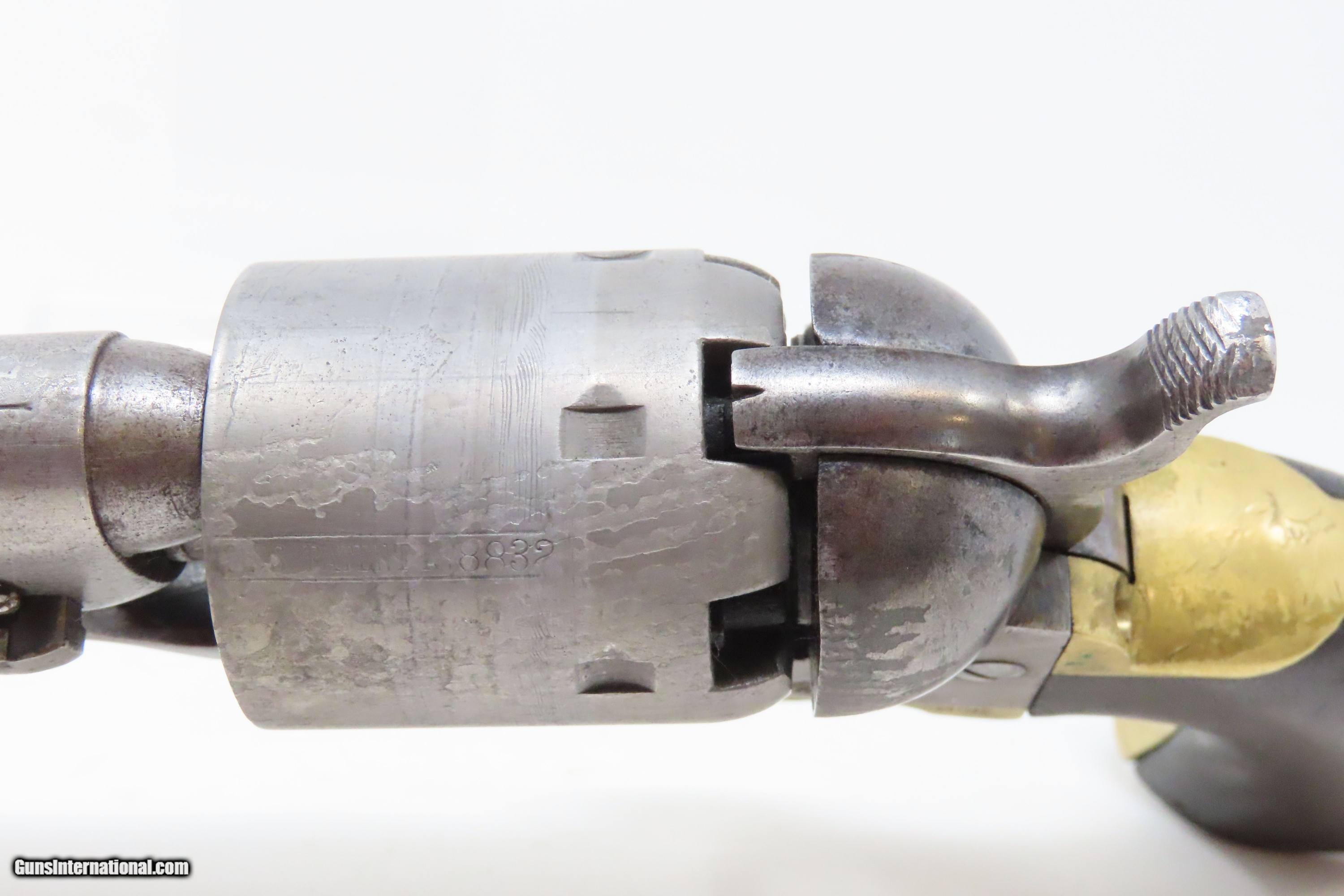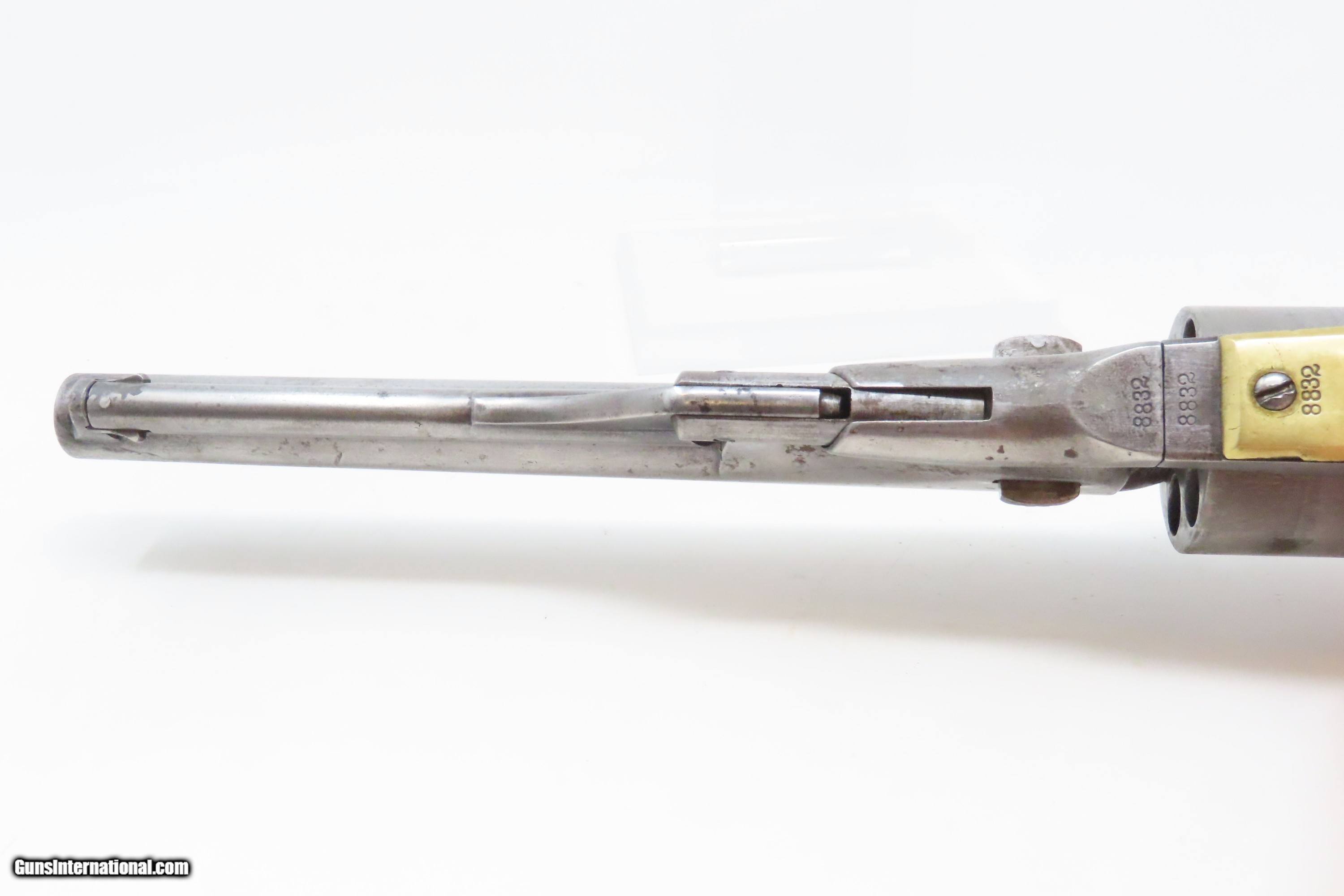 Description: CIVIL WAR Era Antique COLT Model 1861 NAVY .36 Caliber PERCUSSION Revolver Produced in 1862 During the AMERICAN CIVIL WAR Here we present an antique Colt Model 1861 Navy Percussion Revolver, made in 1862 early in the American Civil War. The introduction of the 1861 Navy was simply an update to the very successful 1851 Navy, with the primary differences being the round barrel instead of octagonal, and the addition of the creeping style of loading lever. These updates made for a sleek package that very much resembled Colt’s crowning achievement, the 1860 Army. The 1861 Navy still retained its .36 caliber, making this the preferred firearm for many not wanting to step up to a .44 like the Army, while still sharing most of its dimensions. The Colt Model 1861 Navy was formally adopted by the Union government and was used by both the Army and the Navy. Many of those sold to the military were never martially inspected or marked. Of course, there was a healthy commercial market for these during the war, and many soldiers privately purchased these revolvers as well. In a slightly smaller and lighter package than its 1860 Army big brother, many soldiers and cavalry preferred the Navy in .36 caliber. Of course, these weapons continued to be used well after the Civil War, especially during Westward Expansion. The overall condition is very good. Cleaned. The cylinder scene is still quite visible. The numbers match. The action is excellent. The bore is in very good condition with bright lands and strong rifling throughout. The grip is solid. A nice piece! Own the original! This is a legitimate antique and not a reproduction. Barrel is 7-1/2 inches. Caliber: .36 Percussion Overall condition as seen in photos. Very Fast. Very Safe. FREE SHIPPING WORLDWIDE. Delivered directly to your door by express mail! Guaranteed AUTHENTIC & Includes CERTIFICATE OF AUTHENTICITY. ancestryguns $2700 #227837 SOLD Antique: Yes |