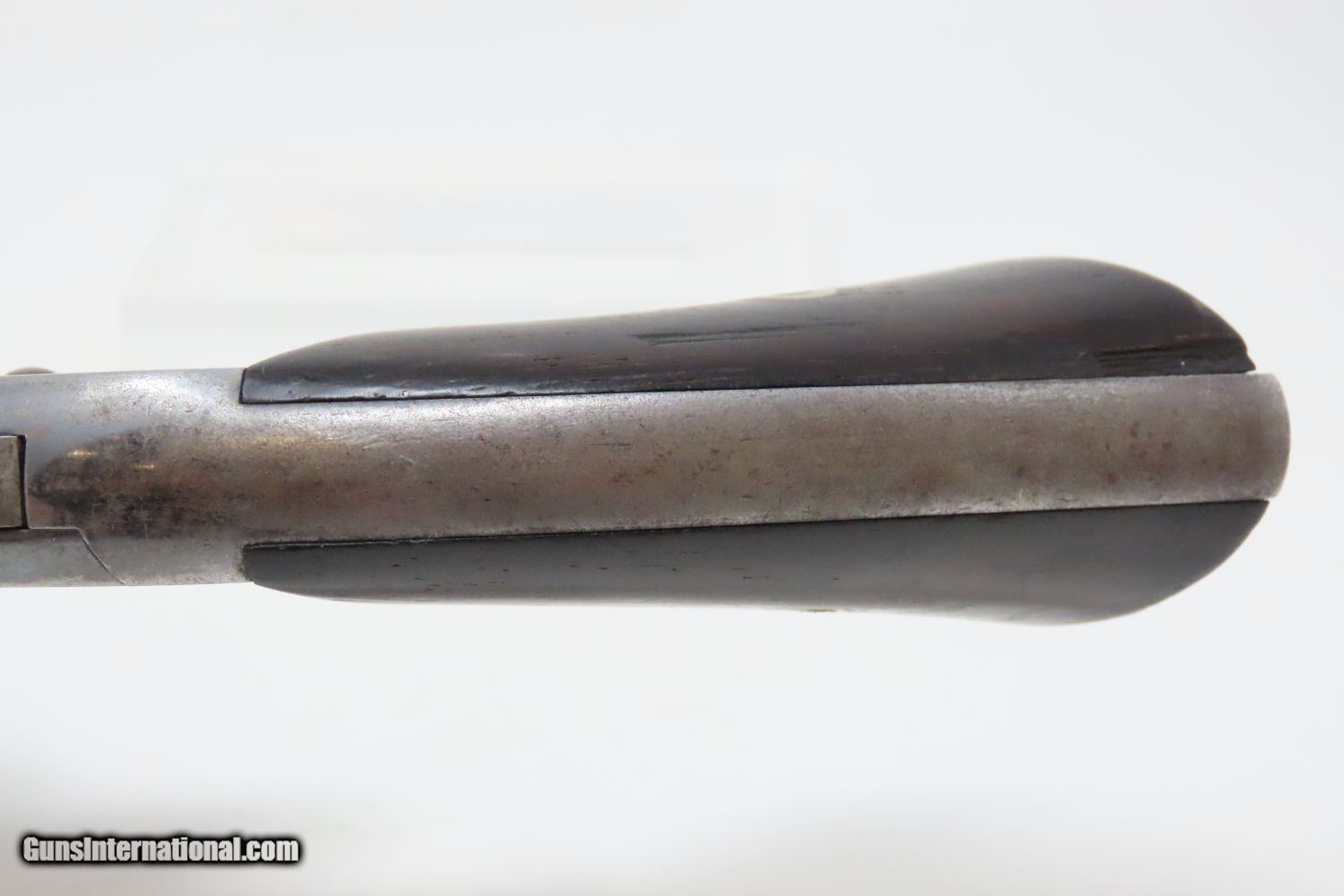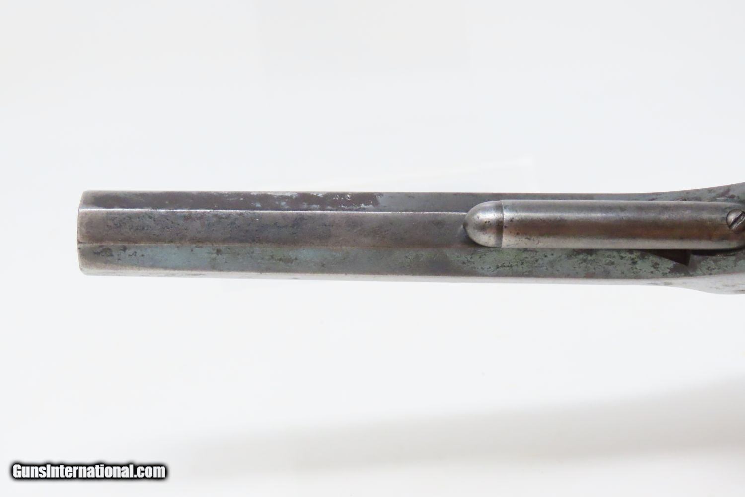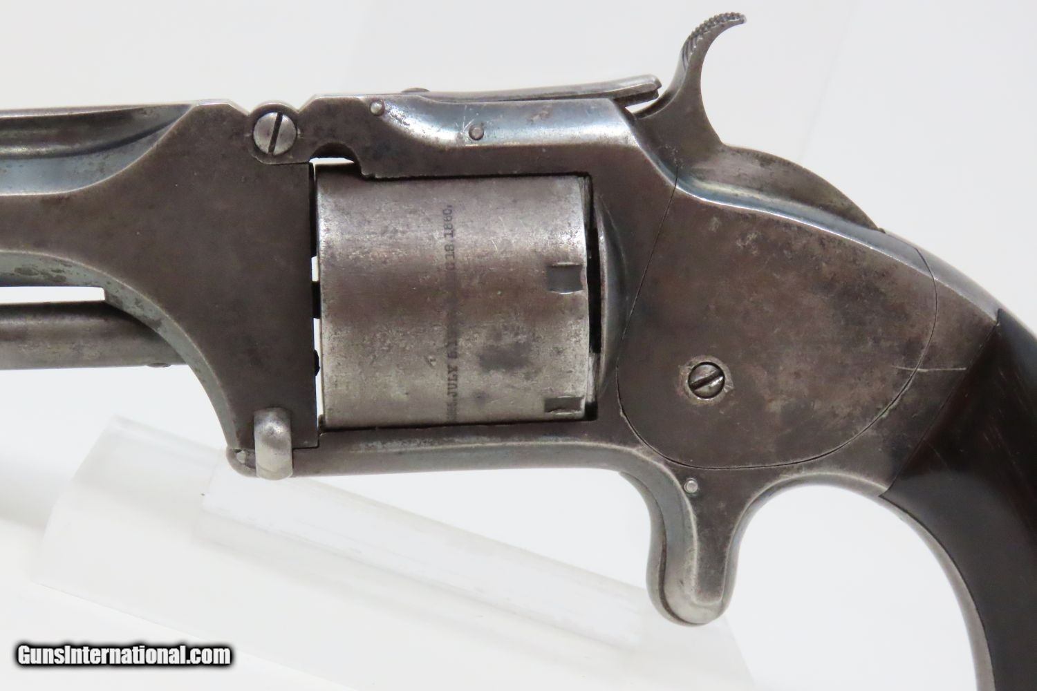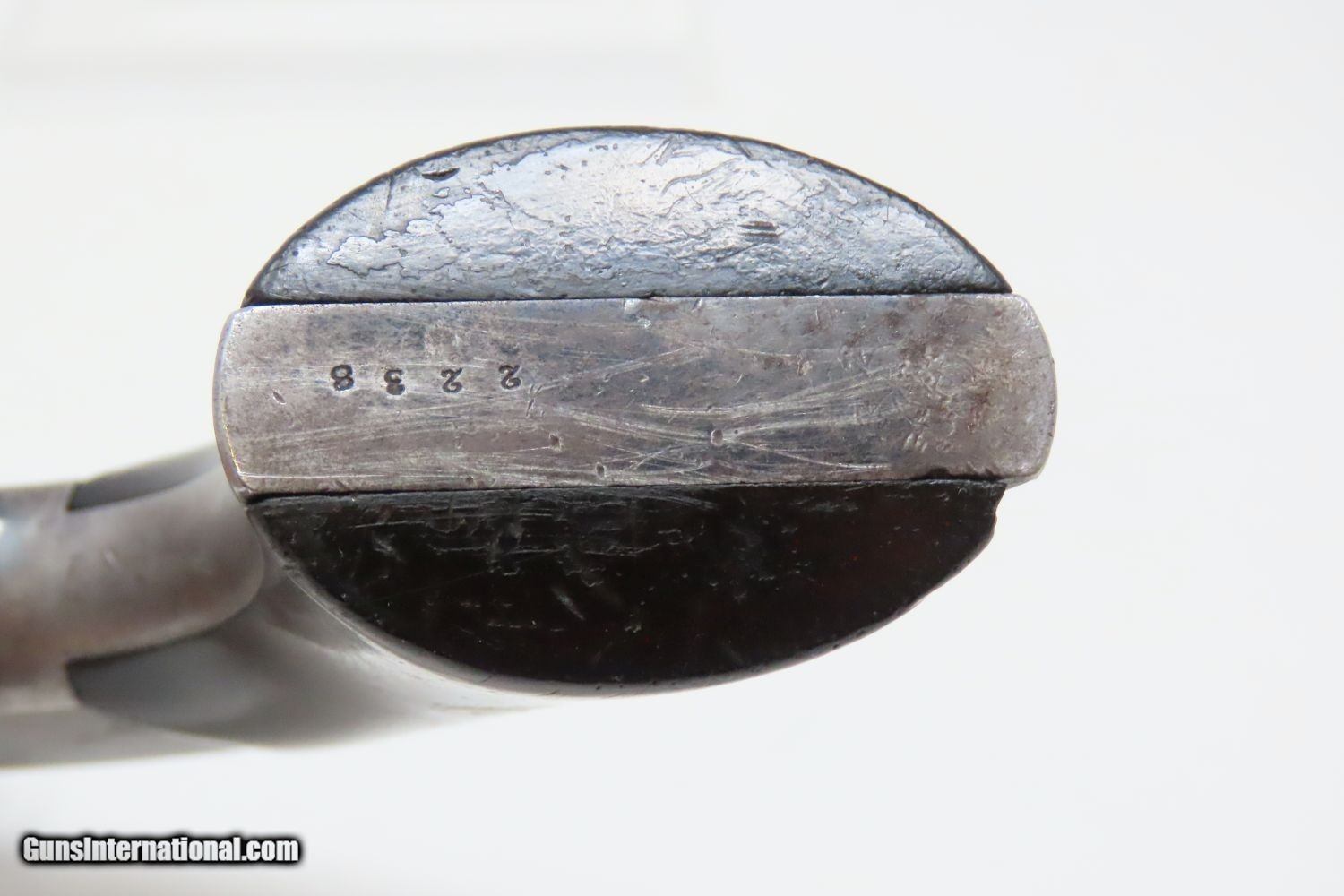Description: CIVIL WAR Era Antique SMITH & WESSON No. 2 “OLD ARMY” .32 Caliber Revolver Made During the Civil War Era Circa 1861 Here we present an antique Smith & Wesson Model No. 2 Old Army Revolver, made circa 1861 in Springfield, Massachusetts. Smith & Wesson purchased the rights to the Rollin White patent for the bored through cylinder, which would forever change the development of revolving firearms. Beginning in 1857 they produced the Number 1, a 7-shot .22 rimfire pocket pistol, which was quite successful. This was fine for the commercial market, but S&W knew they could scale up their design for a pistol that could be worn on the belt in a holster. They began shipping their Number 2 “Army” Revolver, a 6-shot .32 caliber, just 2 months after the beginning of the American Civil War. Smith & Wesson continued to leverage their patent well beyond the war and they remained very popular with the public and on the frontiers. There was a total of 77,200 of these revolvers made during their production run from 1861 through 1874. Though it never received any large federal contracts, it was adopted at the state, unit and individual levels. Per Charles Pate, Kentucky ordered 731 Number 2 “Armies” from Kittredge & Co. late in 1862, and even more in 1863. He says that “Most, if not all, of the revolvers used to fill the Kentucky order were almost certainly under 10,000 in serial number.” He also lists individuals and units that used these revolvers, per records and personal correspondence. The 7th Kentucky Cavalry appears to be the only unit officially issued this handgun during the war. Among the most famous of users was future U.S. President Rutherford B. Hayes, who began his part in the war as Lieutenant Colonel and ended it with Brevet Brigadier General. Ulysses S. Grant wrote about him “his conduct on the field was marked by conspicuous gallantry as well as the display of qualities of a higher order than that of mere personal daring." Another name and legend from the Civil War who used the Number 2 was General George Armstrong Custer, who owned a pair of them. “Wild Bill” Hickok wore this gun the night he was assassinated while playing cards, his last hand now called the “Dead Man’s Hand” of Black Aces and 8s. The overall condition is very good. Great blue and silver finish. The action (hammer/trigger) is strong, although the cylinder does not index and lock up. The bore is bright in great shape. The grips are seated firmly with a sliver out of the back of the right panel. One of the first Smith & Wesson revolvers ever made, and just in time for the American Civil War! Own the original! This is a legitimate antique and not a reproduction. Barrel is 5 inches. Caliber: .32 Long Rimfire Overall condition as seen in photos. Very Fast. Very Safe. FREE SHIPPING WORLDWIDE. Delivered directly to your door by express mail! Guaranteed AUTHENTIC & Includes CERTIFICATE OF AUTHENTICITY. ancestryguns $1795 #201005 SOLD Antique: Yes |