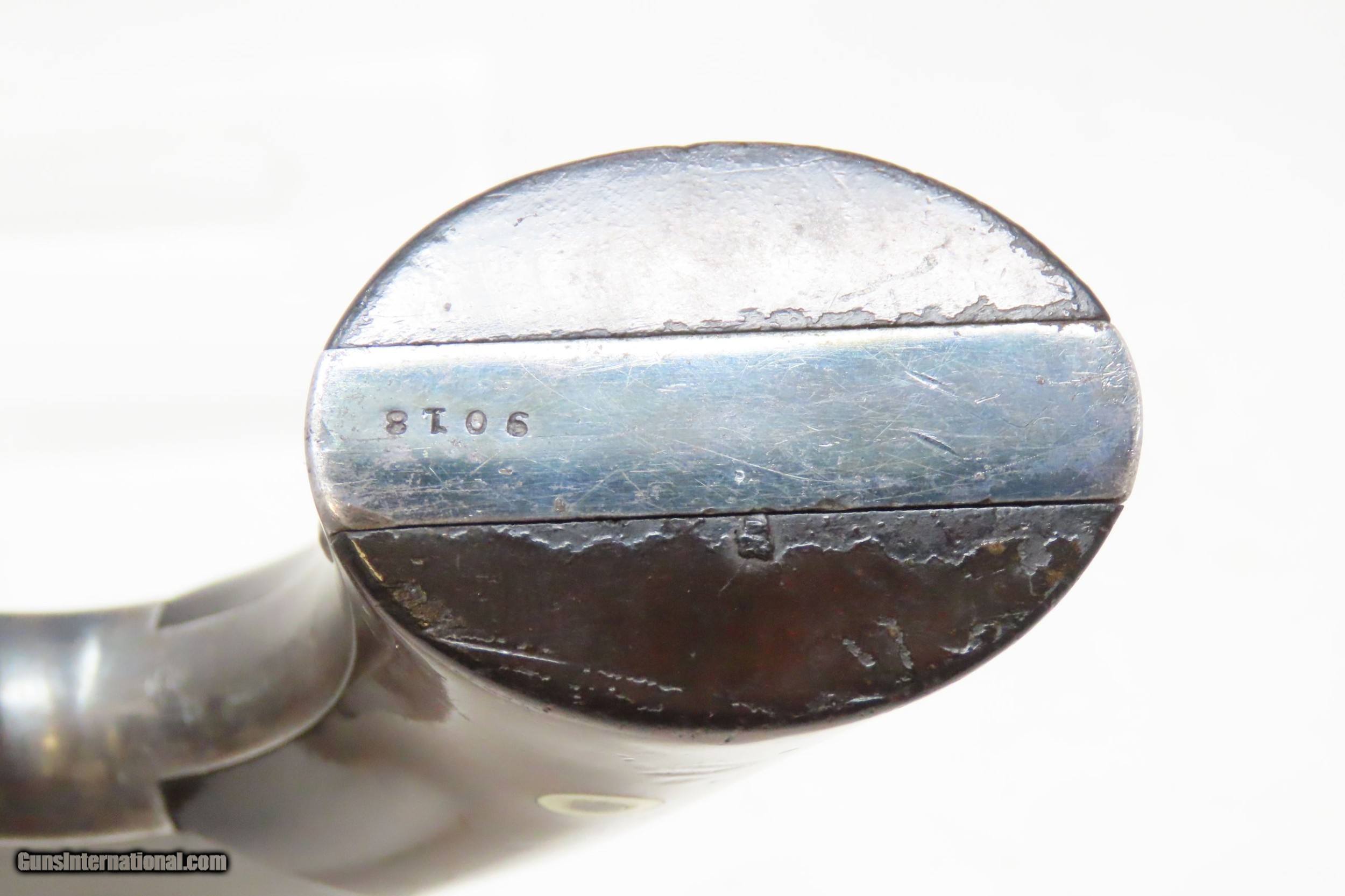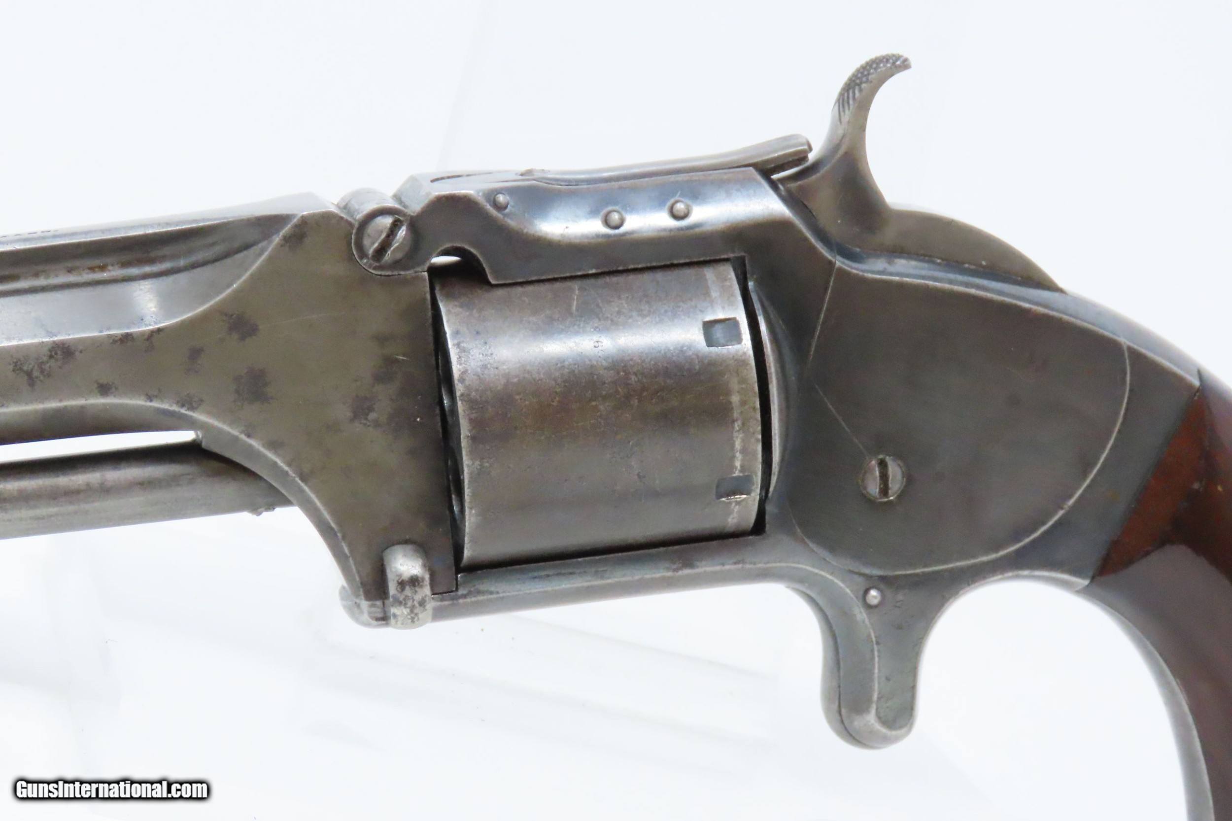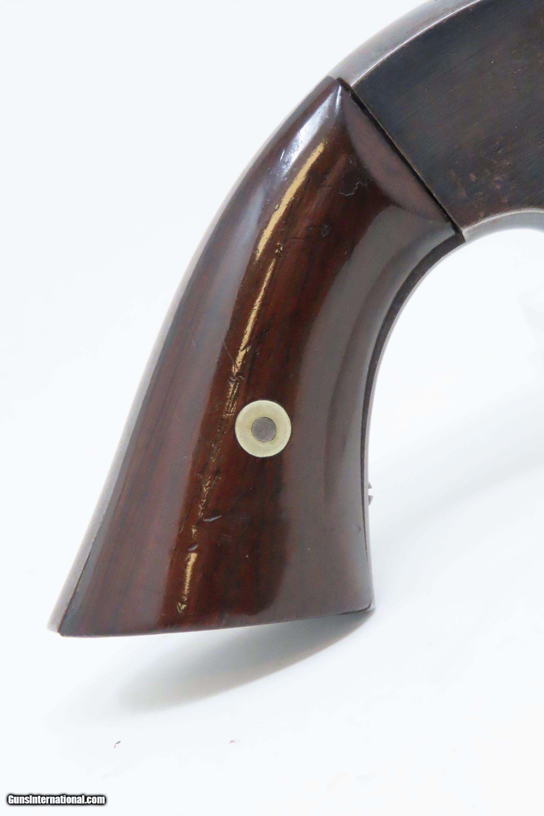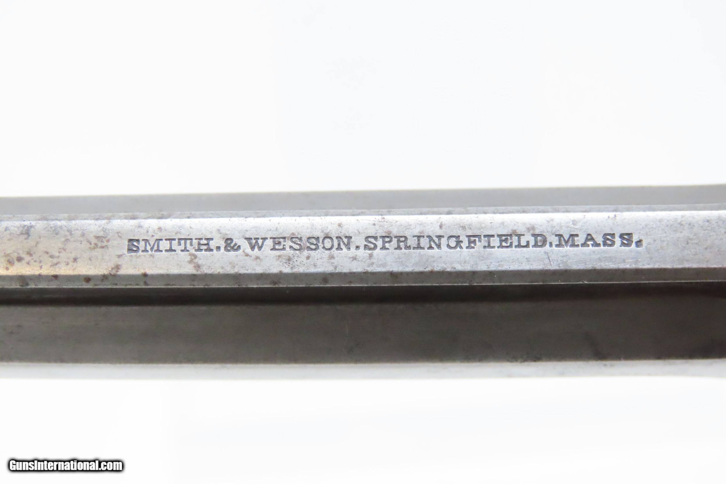 Description: CIVIL WAR Era Antique SMITH & WESSON No. 2 “OLD ARMY” .32 Caliber Revolver Made During the Civil War Era Circa 1862 Here we present an antique Smith & Wesson Model No. 2 Old Army Revolver, made circa 1862 in Springfield, Massachusetts. Smith & Wesson purchased the rights to the Rollin White patent for the bored through cylinder, which would forever change the development of revolving firearms. Beginning in 1857 they produced the Number 1, a 7-shot .22 rimfire pocket pistol, which was quite successful. This was fine for the commercial market, but S&W knew they could scale up their design for a pistol that could be worn on the belt in a holster. They began shipping their Number 2 “Army” Revolver, a 6-shot .32 caliber, just 2 months after the beginning of the American Civil War. Smith & Wesson continued to leverage their patent well beyond the war and they remained very popular with the public and on the frontiers. There was a total of 77,200 of these revolvers made during their production run from 1861 through 1874. Though it never received any large federal contracts, it was adopted at the state, unit and individual levels. Per Charles Pate, Kentucky ordered 731 Number 2 “Armies” from Kittredge & Co. late in 1862, and even more in 1863. He says that “Most, if not all, of the revolvers used to fill the Kentucky order were almost certainly under 10,000 in serial number.” He also lists individuals and units that used these revolvers, per records and personal correspondence. The 7th Kentucky Cavalry appears to be the only unit officially issued this handgun during the war. Among the most famous of users was future U.S. President Rutherford B. Hayes, who began his part in the war as Lieutenant Colonel and ended it with Brevet Brigadier General. Ulysses S. Grant wrote about him “his conduct on the field was marked by conspicuous gallantry as well as the display of qualities of a higher order than that of mere personal daring." Another name and legend from the Civil War who used the Number 2 was General George Armstrong Custer, who owned a pair of them. “Wild Bill” Hickok wore this gun the night he was assassinated while playing cards, his last hand now called the “Dead Man’s Hand” of Black Aces and 8s. The overall condition is very good. Original finish/patina. The action is excellent. Minimal play at the barrel hinge. The bore is good for age and black powder use; good rifling. The rosewood grips are smooth and solid. Own the original! This is a legitimate antique and not a reproduction. Barrel is 5 inches. Caliber: .32 Rimfire Overall condition as seen in photos. Very Fast. Very Safe. FREE SHIPPING WORLDWIDE. Delivered directly to your door by express mail! Guaranteed AUTHENTIC & Includes CERTIFICATE OF AUTHENTICITY. ancestryguns $1500 #217831 SOLD Antique: Yes |