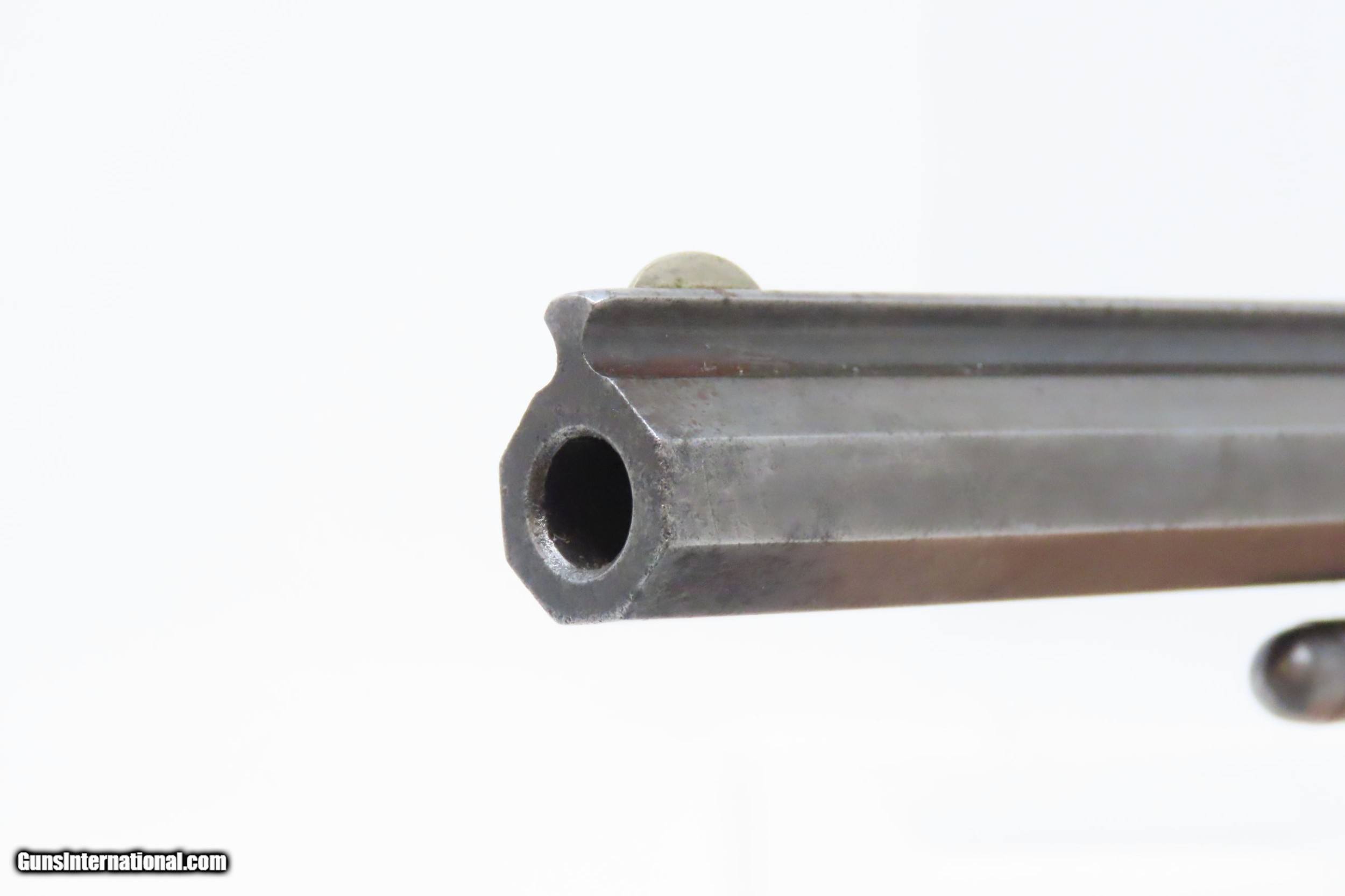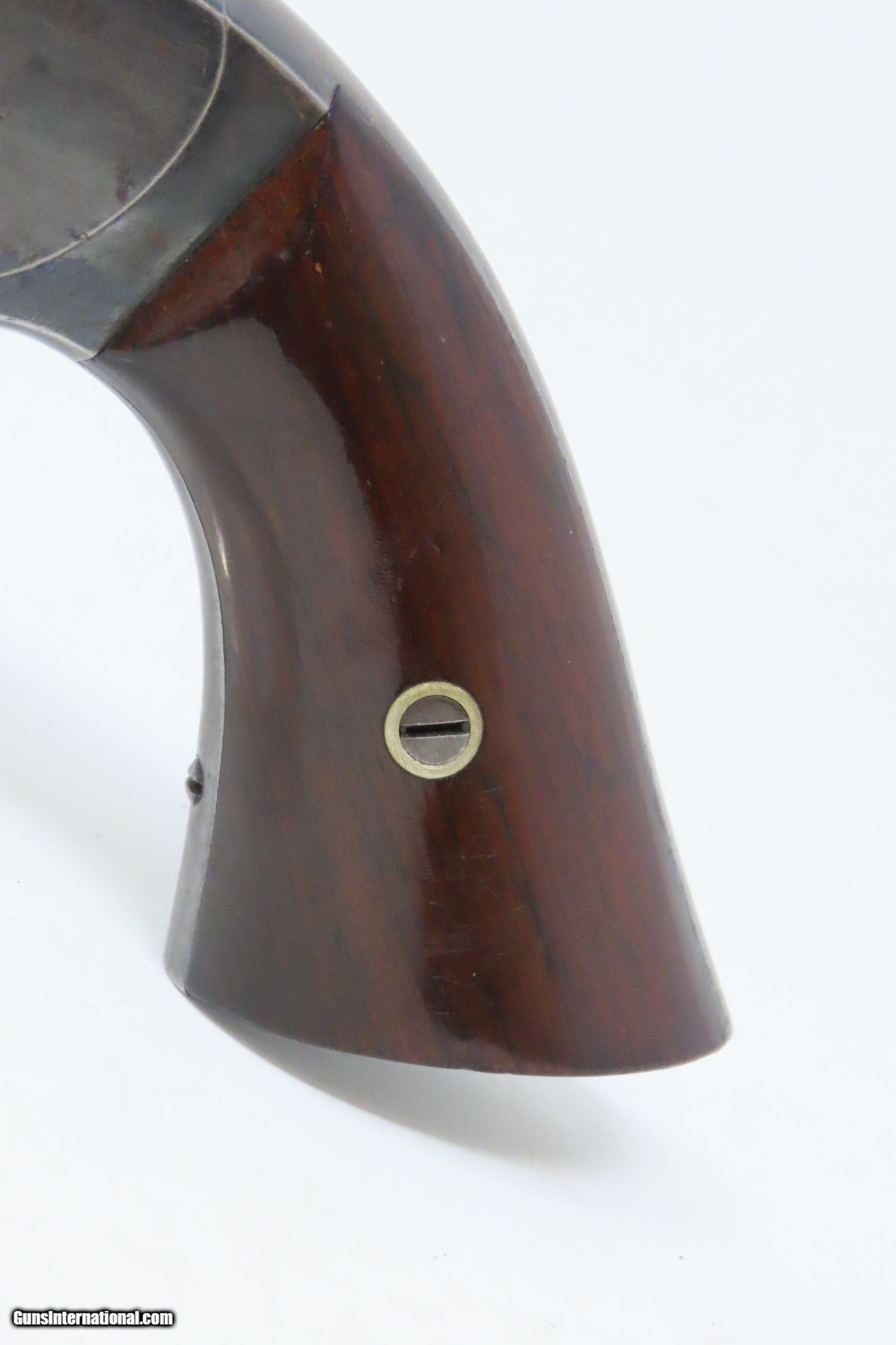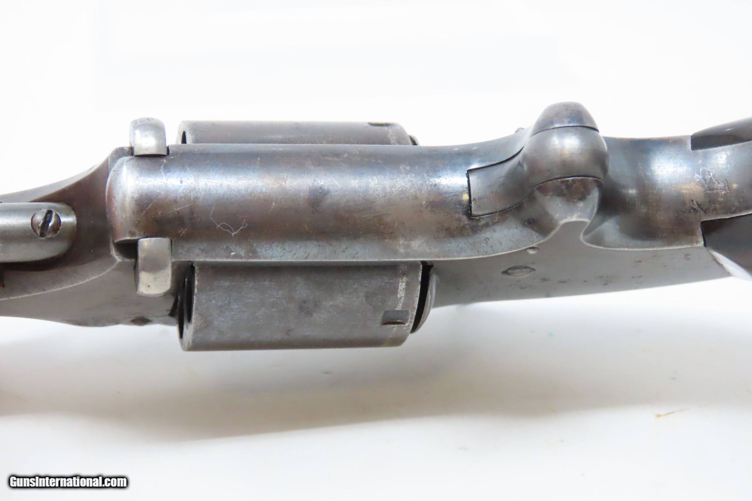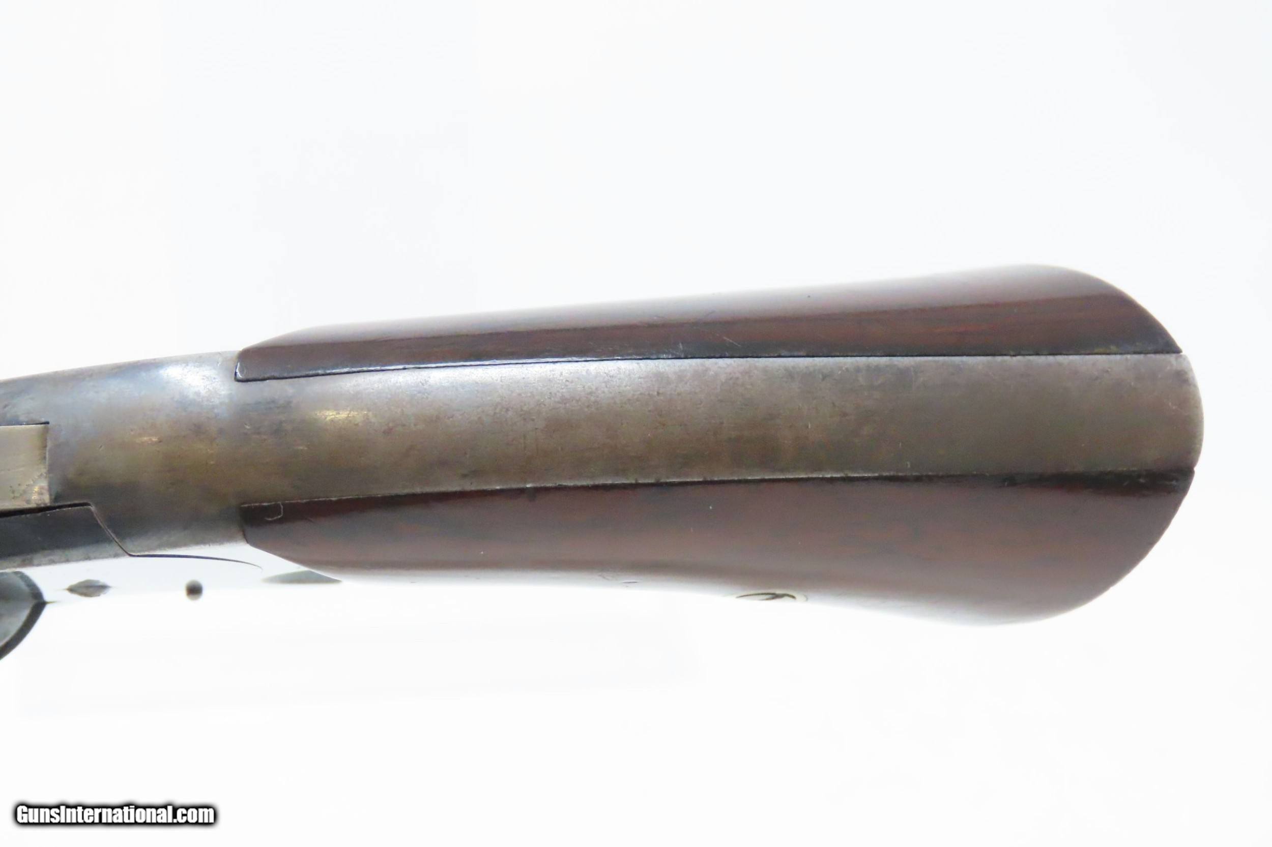 Description: CIVIL WAR Era Antique SMITH & WESSON No. 2 “OLD ARMY” .32 Caliber Revolver Made During the Civil War Era Circa 1862 Here we present an antique Smith & Wesson Model No. 2 Old Army Revolver, made circa 1862 in Springfield, Massachusetts. Smith & Wesson purchased the rights to the Rollin White patent for the bored through cylinder, which would forever change the development of revolving firearms. Beginning in 1857 they produced the Number 1, a 7-shot .22 rimfire pocket pistol, which was quite successful. This was fine for the commercial market, but S&W knew they could scale up their design for a pistol that could be worn on the belt in a holster. They began shipping their Number 2 “Army” Revolver, a 6-shot .32 caliber, just 2 months after the beginning of the American Civil War. Smith & Wesson continued to leverage their patent well beyond the war and they remained very popular with the public and on the frontiers. There was a total of 77,200 of these revolvers made during their production run from 1861 through 1874. Though it never received any large federal contracts, it was adopted at the state, unit and individual levels. Per Charles Pate, Kentucky ordered 731 Number 2 “Armies” from Kittredge & Co. late in 1862, and even more in 1863. He says that “Most, if not all, of the revolvers used to fill the Kentucky order were almost certainly under 10,000 in serial number.” He also lists individuals and units that used these revolvers, per records and personal correspondence. The 7th Kentucky Cavalry appears to be the only unit officially issued this handgun during the war. Among the most famous of users was future U.S. President Rutherford B. Hayes, who began his part in the war as Lieutenant Colonel and ended it with Brevet Brigadier General. Ulysses S. Grant wrote about him “his conduct on the field was marked by conspicuous gallantry as well as the display of qualities of a higher order than that of mere personal daring." Another name and legend from the Civil War who used the Number 2 was General George Armstrong Custer, who owned a pair of them. “Wild Bill” Hickok wore this gun the night he was assassinated while playing cards, his last hand now called the “Dead Man’s Hand” of Black Aces and 8s. The overall condition is very good. Original finish/patina. The action is excellent. Minimal play at the barrel hinge. The bore is good for age and black powder use; good rifling. The rosewood grips are smooth and solid. Own the original! This is a legitimate antique and not a reproduction. Barrel is 5 inches. Caliber: .32 Rimfire Overall condition as seen in photos. Very Fast. Very Safe. FREE SHIPPING WORLDWIDE. Delivered directly to your door by express mail! Guaranteed AUTHENTIC & Includes CERTIFICATE OF AUTHENTICITY. ancestryguns $1500 #217831 SOLD Antique: Yes |