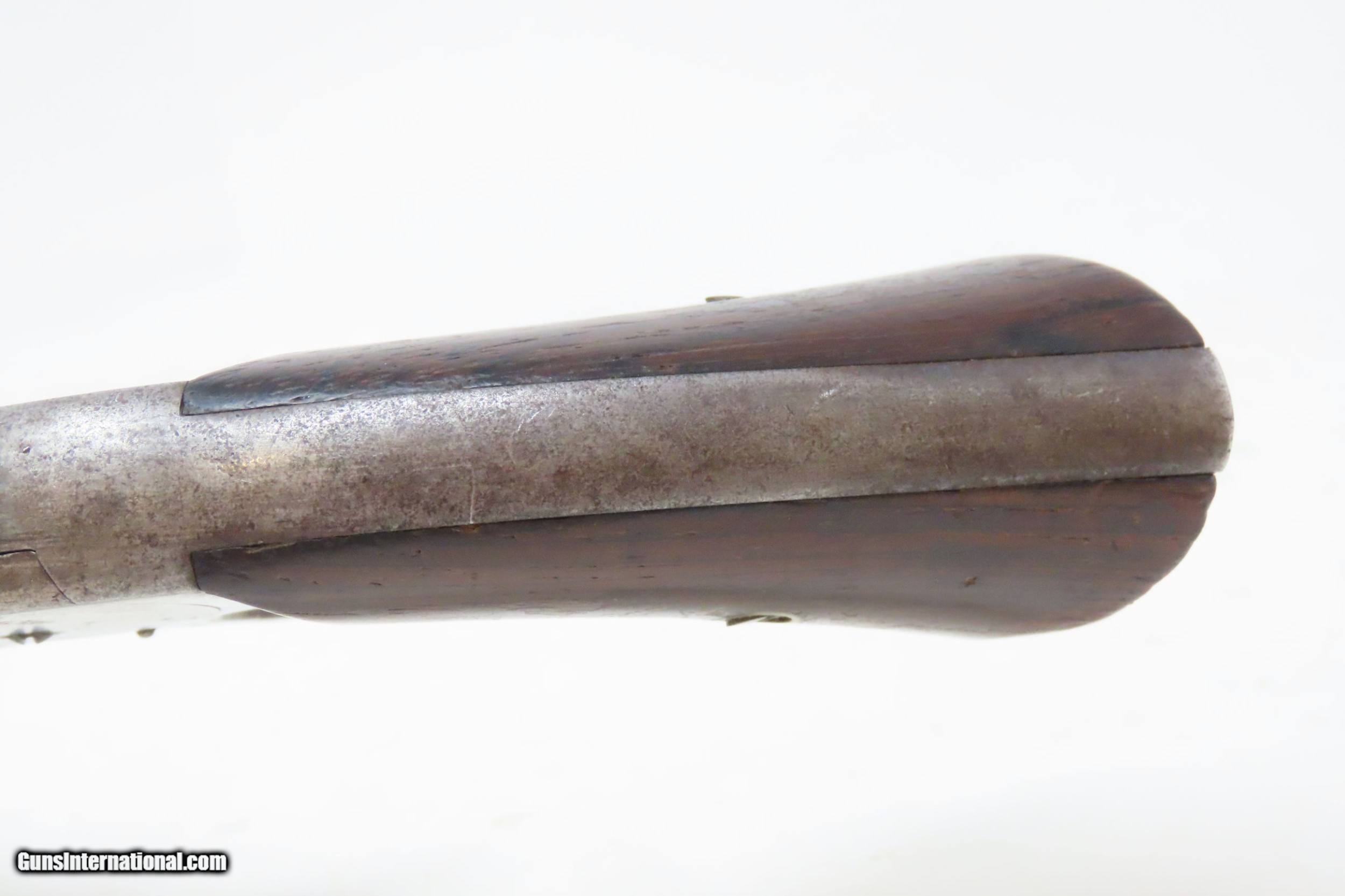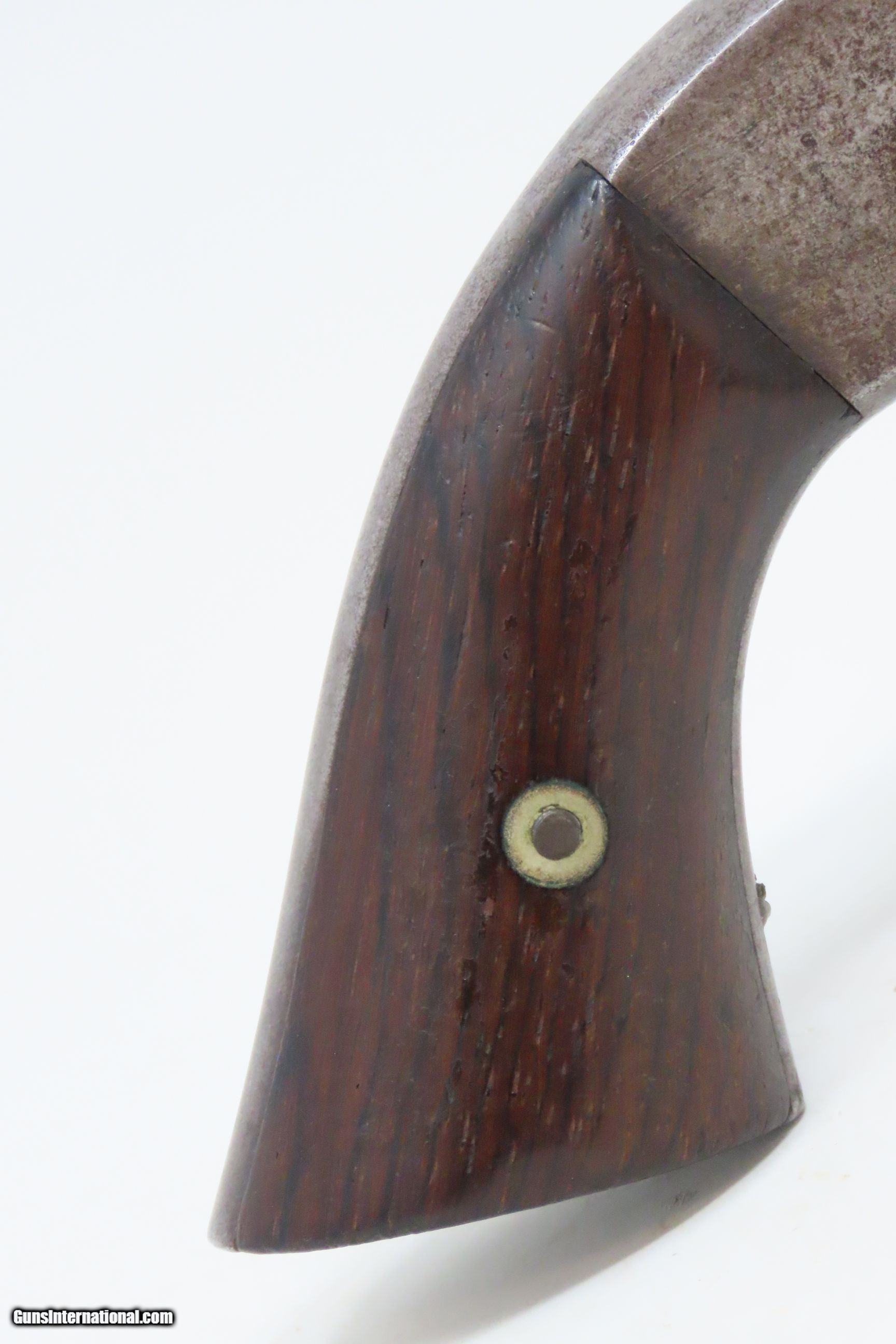 Description: CIVIL WAR Era Antique SMITH & WESSON No. 2 “OLD ARMY” .32 Caliber Revolver Made During the Civil War Era Circa 1862 Here we present an antique Smith & Wesson Model No. 2 Old Army Revolver, made circa 1862 in Springfield, Massachusetts. Smith & Wesson purchased the rights to the Rollin White patent for the bored through cylinder, which would forever change the development of revolving firearms. Beginning in 1857 they produced the Number 1, a 7-shot .22 rimfire pocket pistol, which was quite successful. This was fine for the commercial market, but S&W knew they could scale up their design for a pistol that could be worn on the belt in a holster. They began shipping their Number 2 “Army” Revolver, a 6-shot .32 caliber, just 2 months after the beginning of the American Civil War. Smith & Wesson continued to leverage their patent well beyond the war and they remained very popular with the public and on the frontiers. There was a total of 77,200 of these revolvers made during their production run from 1861 through 1874. Though it never received any large federal contracts, it was adopted at the state, unit and individual levels. Per Charles Pate, Kentucky ordered 731 Number 2 “Armies” from Kittredge & Co. late in 1862, and even more in 1863. He says that “Most, if not all, of the revolvers used to fill the Kentucky order were almost certainly under 10,000 in serial number.” He also lists individuals and units that used these revolvers, per records and personal correspondence. The 7th Kentucky Cavalry appears to be the only unit officially issued this handgun during the war. Among the most famous of users was future U.S. President Rutherford B. Hayes, who began his part in the war as Lieutenant Colonel and ended it with Brevet Brigadier General. Ulysses S. Grant wrote about him “his conduct on the field was marked by conspicuous gallantry as well as the display of qualities of a higher order than that of mere personal daring." Another name and legend from the Civil War who used the Number 2 was General George Armstrong Custer, who owned a pair of them. “Wild Bill” Hickok wore this gun the night he was assassinated while playing cards, his last hand now called the “Dead Man’s Hand” of Black Aces and 8s. The overall condition is good. Gray patina. The action is excellent. There is slight side to side play in the barrel hinge, which is typical of this design. The bore is bright with strong rifling. The rosewood grips are solid. The bottom of the grip has some little graffiti. Own the original! This is a legitimate antique and not a reproduction. Barrel is 6 inches. Caliber: .32 Long Rimfire Overall condition as seen in photos. Very Fast. Very Safe. FREE SHIPPING WORLDWIDE. Delivered directly to your door by express mail! Guaranteed AUTHENTIC & Includes CERTIFICATE OF AUTHENTICITY. ancestryguns $1400 #226075 SOLD Antique: Yes |