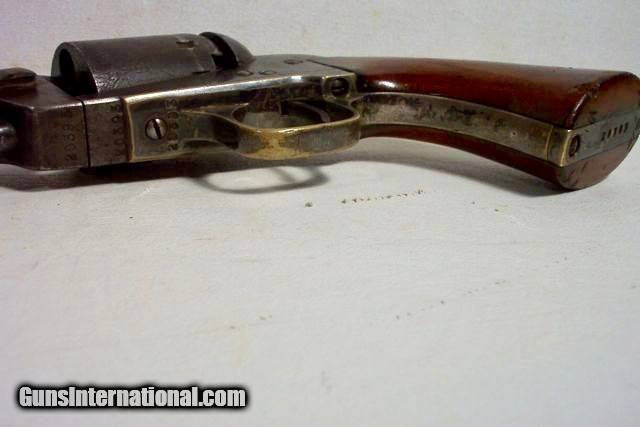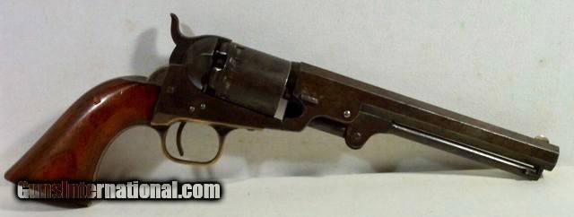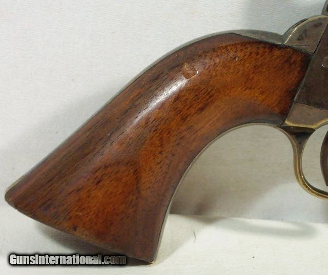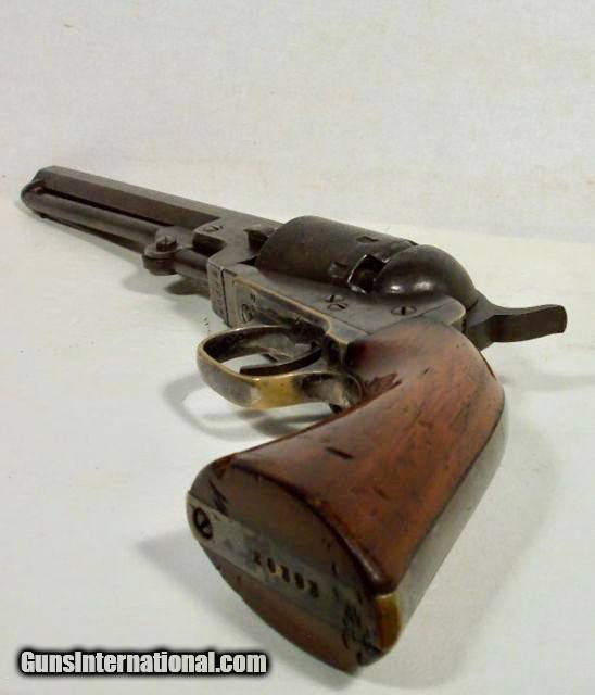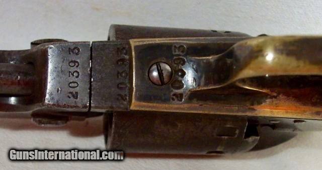 Description: Really Nice Civil War Manhattan Navy Type 5 Shot 36 cal. Percussion Revolver; Serial No. 20393; Circa 1863-1864; Scarce 6½” Octagon Barrel; Good Bit of Original Metal and Wood Finish Remains; Lots of Original Unpolished Silver on trigger guard and back strap; Perfect Action and Nice Shiny Bore with light frosting; 100% Correct, Original and Matching; Great Civil War Era Revolver; antique, no FFL/C&R required for shipping;antique, no FFL/C&R required for shipping; Price includes insured shipping; Attention Texas Buyers: We Must Collect 6.75% Sales Tax;return policy: three days inspection from the date the item is received; full refund of shipping both ways ONLY IF THE ITEM IS MISREPRESENTED. Note: International sales only as laws permit. Antiques shipped without license to anyone EXCEPT New Jersey and City of New York, where a FFL is required; (Scroll to view 20 photos of this item). SOLD Antique: Yes Manufacturer: Manhattan Model: Navy 5 Serial Number: 20393 |
