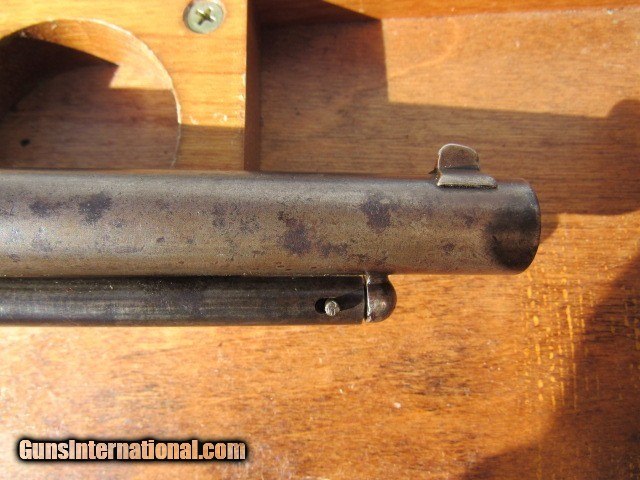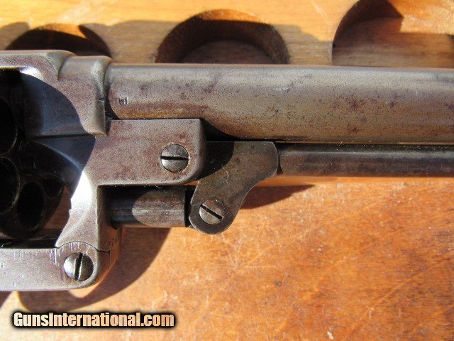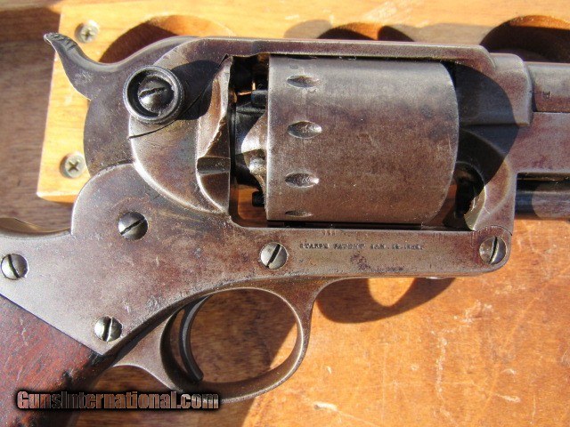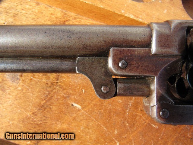 Description: DESCRIPTION: Starr Arms single action percussion revolver with standard 8" round barrel, 6-shot cylinder, walnut grips, blued and case hardened finish. The two Starr variations were the 3rd-most used Civil War revolver after the Colt and the Remington. This revolver has the matching serial number 27646, which falls into a range of numerous Starr revolvers that were issue to the 7th Michigan Cavalry. The 7th was one of the 4 regiments in George Armstrong Custer's Wolverine Brigade. This revolver would have been made and procured/issued about June 1864, in time to be used in such battles as Fort Stevens and along Northern Defences of Washington July 11-12 (Detachment). Demonstration North of the James River July 27-29. Deep Bottom July 27-29. Ordered to Washington, D. C., August. Sheridan's Shenandoah Valley Campaign August 7-November 28. Toll Gate, near White Post, and near Winchester August 11. Cedarville, or Front Royal, August 16. Kearneysville August 23. Kearneysville and Shephardstown August 25. Leetown and Smithfield August 28. Smithfield Crossing of the Opequan September 29. Locke's Ford, Opequan Creek, September 13. Sevier's Ford, Opequan, September 15. Battle of Opequan, Winchester, September 19. Fisher's Hill September 21. Milford September 22. Luray September 24. Port Republic September 26-28. Mt. Crawford October 2. Salem Church October 6. Luray Valley October 8. Tom's Brook("Woodstock Races") October 8-9. Battle of Cedar Creek October 19. Edenburg November 7. Near Kernstown November 11. Expedition into Loudoun and Faquier Counties November 28-December 3. Raid to Gordonsville December 19-28. Madison Court House December 21. Liberty Mills December 22. Near Gordonsville December 23. Expedition to Little Fort Valley February 18-17, 1865. Sheridan's Raid from Winchester to James River February 28-March 25. Occupation of Staunton and action at Waynesboro March 2. Duguidsville March 8. Appomattox Campaign March 28-April 9. Dinwiddie Court House March 30-31. Five Forks April 1. Scott's Cross Roads April 2. Tabernacle Church, or Beaver Bend Creek, April 4. Sailor's Creek April 6. Appomattox Station April 8. Appomattox Court House April 9. The single action Starr was a sturdy gun and much more reliable than its double action predecessor and thus more desirable to the collector, reenactor and shooter alike. CONDITION: Most of the blue has faded to a mix of patina and gray with some traces of strong blue in the protected areas behind the receiver shield and the forward portion of the frame under the breech. Original loading lever retains traces of case colors. Original walnut grips are sound with no splits or cracks, never sanded or refinished, and bear the inspector cartouches although faint and worn. Numerous sub-inspector initials appear on the cylinder, barrel, receiver and trigger guard. Action is tight and crisp with solid lock up / no wobble and perfect timing. All 6 original nipples are intact and undamaged. Bore is excellent with extremely sharp rifling and super bright, a 9 of 10. All in all a good example of a desirable Civil War revolver that would grade NRA Antique Very Good and will make a fine addition to your collection. TERMS: No international sales. Antique so it can ship directly to you assuming your local laws allow it. Please be aware of what is legal in your state. 3 day non-firing inspection and sold as a collector item only. Not warranted safe to fire until checked out by a competent gunsmith. Buyer pays return shipping. Payment by bank check, personal check or money order. All major credit cards accepted with 4% convenience fee added. FREE Shipping will be USPS Priority Mail with tracking and insurance included. Always interested in used long guns and used antique handguns so please contact me if you have anything for sale or trade. 315.251.4799 with questions or concerns. SOLD Antique: Yes Manufacturer: Starr Model: 1863 Army Serial Number: 27646 Barrel Length: 8" round Condition: Very good Metal Condition: Very good Wood Condition: Very good Bore Condition: Excellent Action: Single Action Revolver Triggers: Standard/plain Stock: Walnut Sights: Standard Manufacture Date: 1864 Item Location: New York |