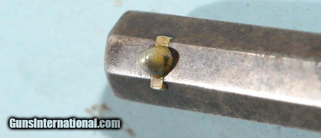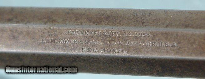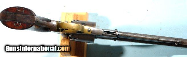 Description: CIVIL WAR REMINGTON NEW MODEL .44 CAL. PERCUSSION ARMY REVOLVER CIRCA 1863. Fine example of the early type with the nickel cone front sight. *” barrel with extra crisp “PATENT SEPT. 14, 1858/E. REMINGTON & SONS, ILION, N.Y., USA/ NEW MODEL” address. All original with minor amounts of blue on the cylinder and barrel. Very crisp patina and excellent working order and fine bore and chambers. Lock up perfectly when cocked. Fine original grips with the original finish. No cartouche and probable State contract. Very nice example. SOLD Antique: Yes |