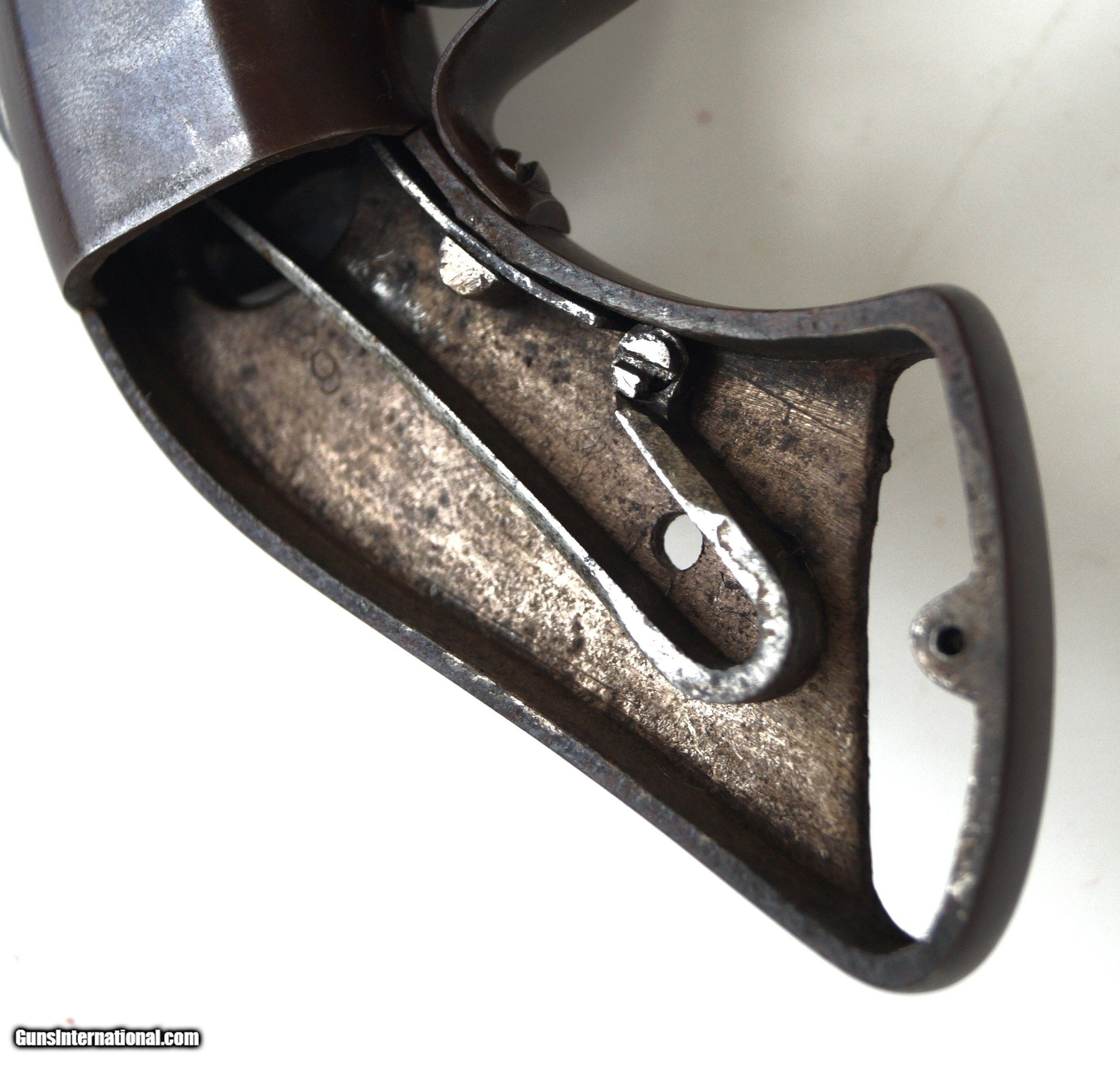 Description: THIS IS A RARE SPRINGFIELD ARMS CO NAVY MODEL DOUBLE TRIGGER REVOLVER, .36 CAL. PERCUSSION. THE REVOLVER IS IN VERY GOOD CONDITION. ALL ORIGINAL, NUMBER MATCHING, VERY GOOD BORE AND GRIPS, MECHANICALLY CORRECT. THE CYCLES TOUGHTLY WITH NO PLAY. The Springfield Arms Co. was short lived thanks to swift legal action by Samuel Colt and only operated c.1850-51. They manufactured a total of approximately 125 Navy model revolvers with the dual trigger mechanism and roughly an equal amount with a single trigger. The revolver is based on designs by James Warner. SOLD Antique: Yes |