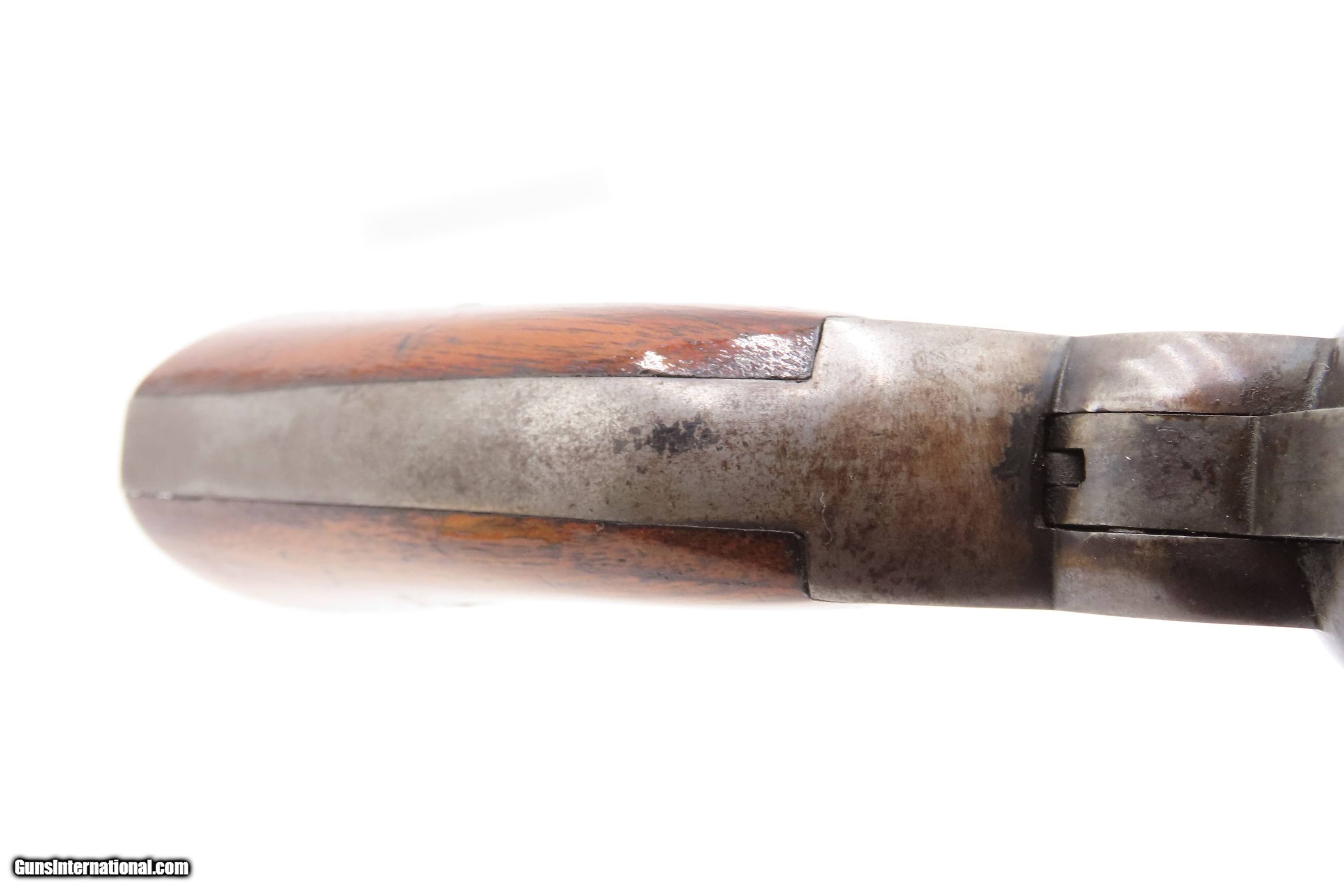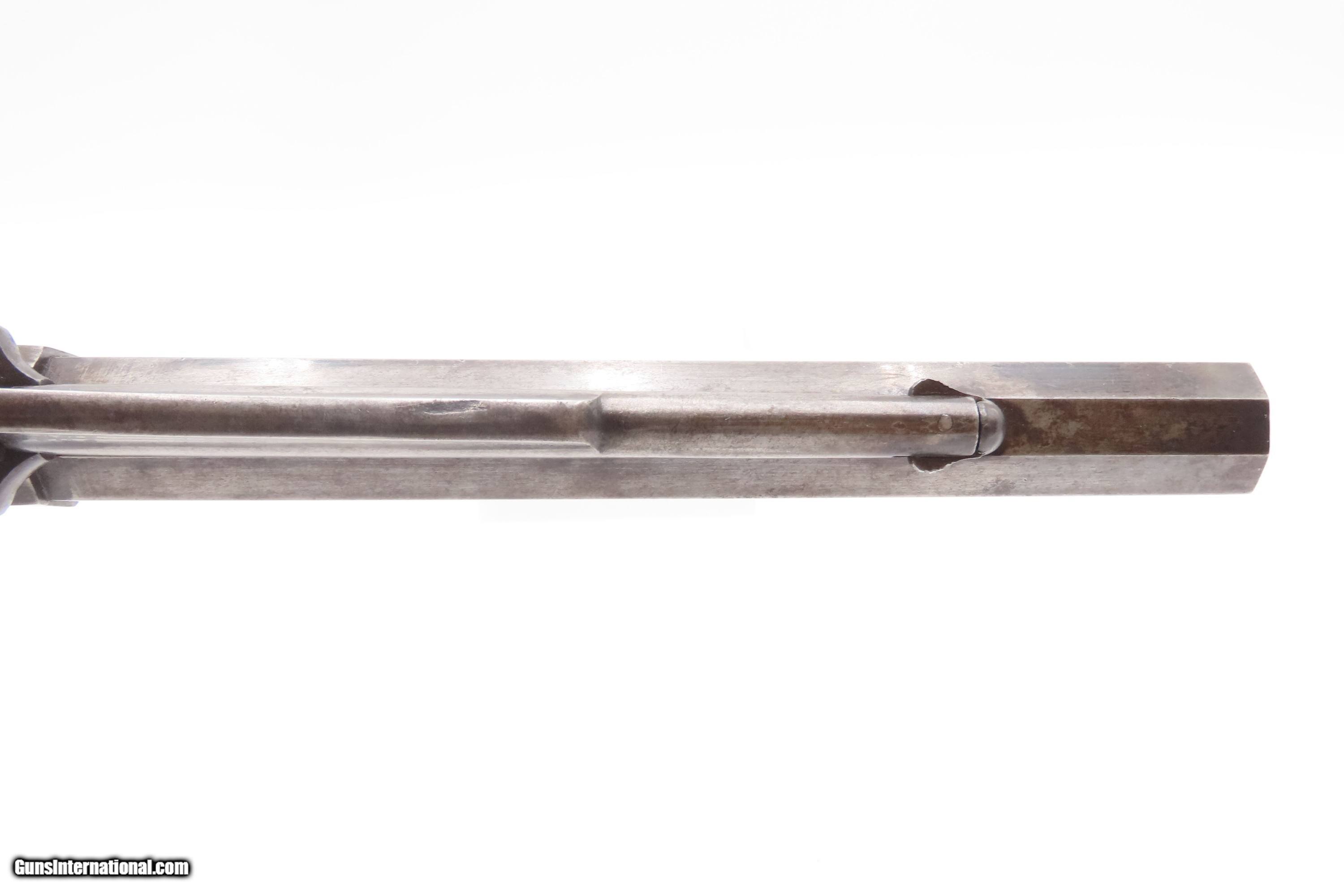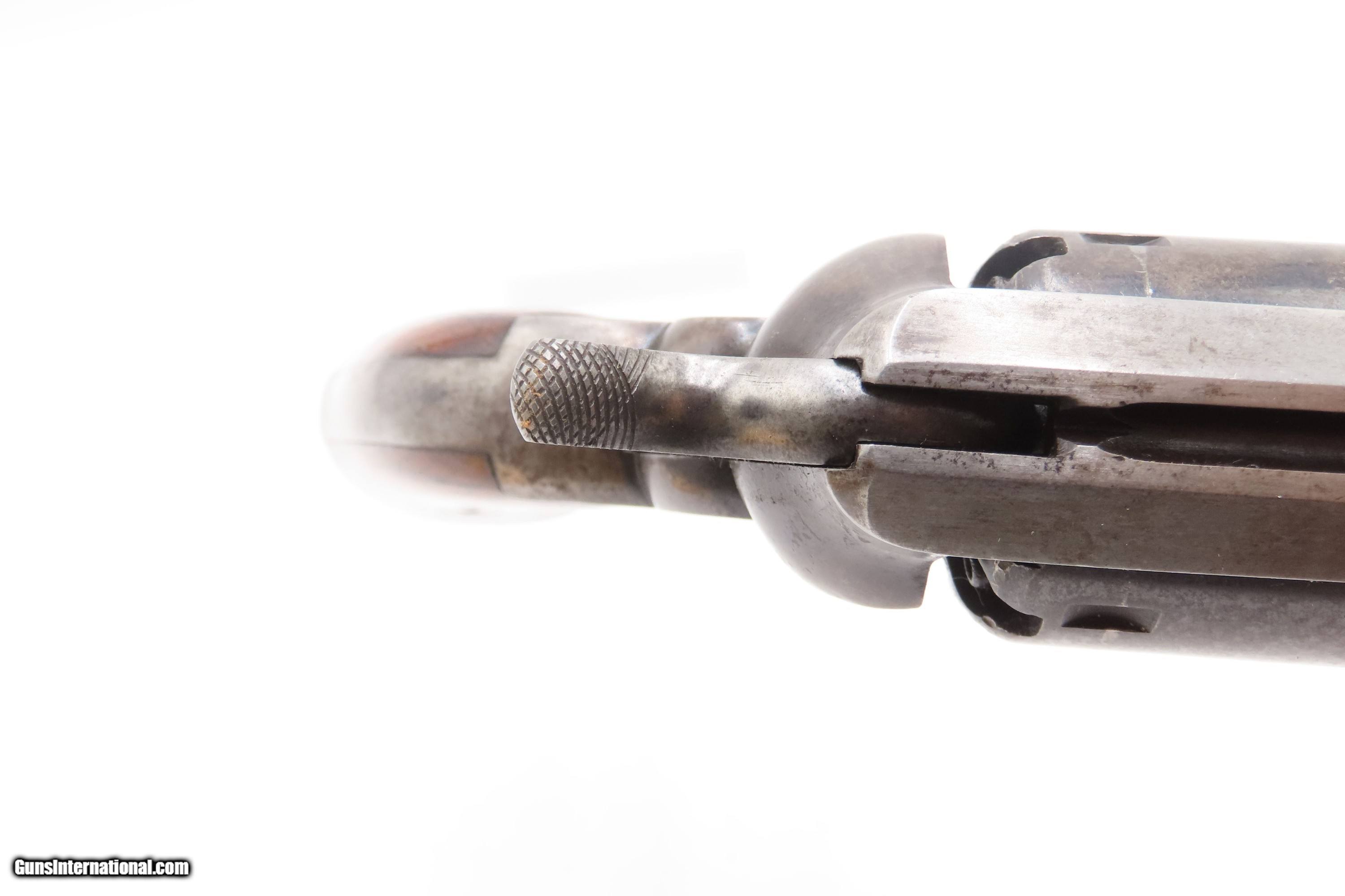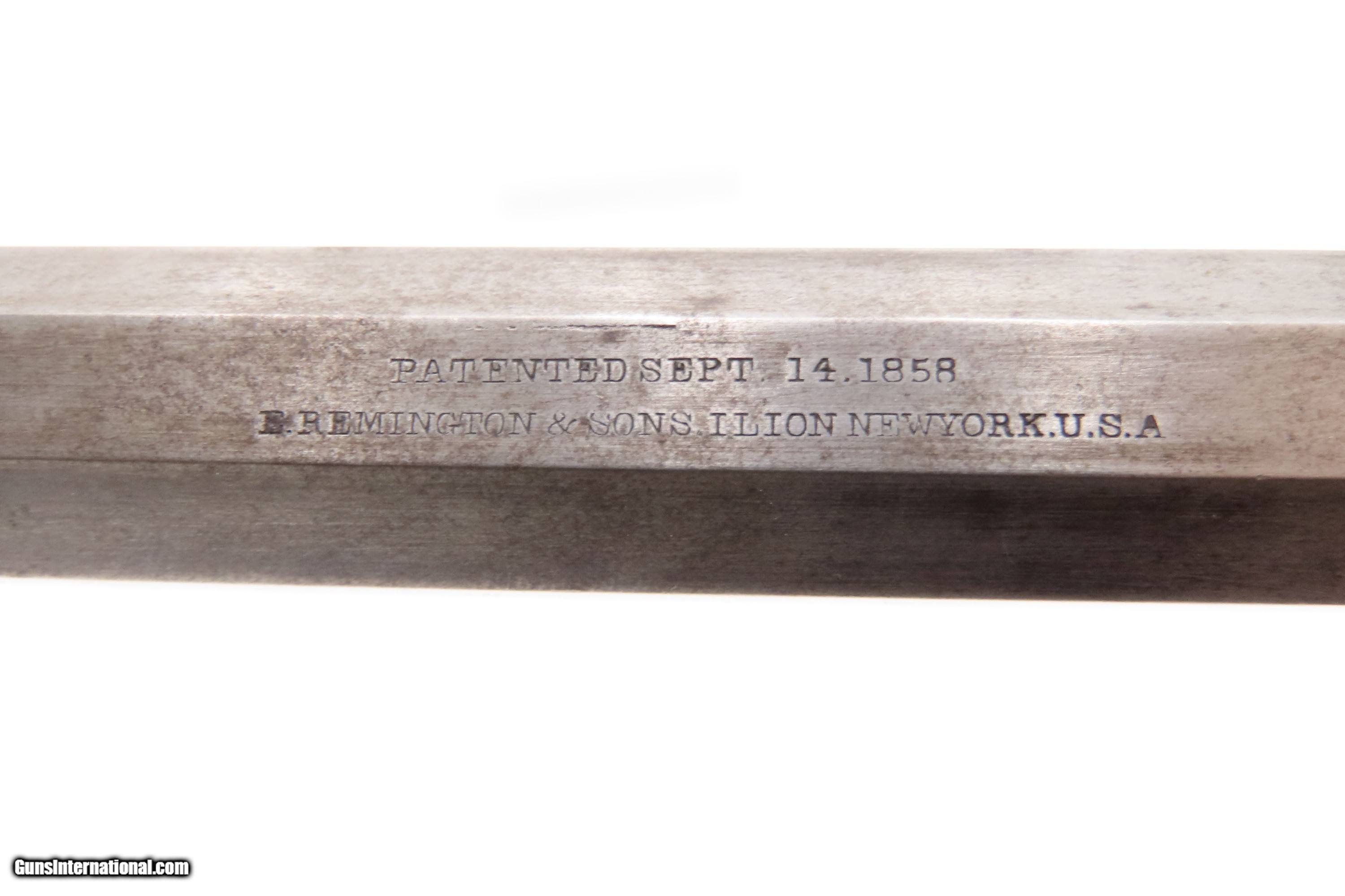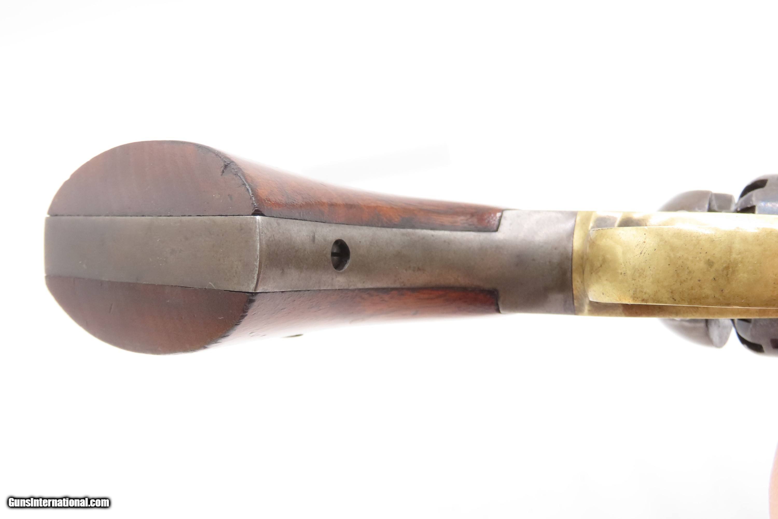Description: CIVIL WAR/WILD WEST Antique REMINGTON “New Model” NAVY Percussion Revolver VERY EARLY; One of the first “NEW MODELS” Produced Here Ancestry Guns presents an antique Extremely Early Production Remington New Model Navy Single Action Percussion Revolver manufactured in the middle of the Civil war in 1863 in Ilion, New York. According to Flayderman, the serial numbers were a continuation from the “Old Model Navy”, who’s serial numbering ended somewhere around 23,000. The “New Model” Navy serial numbers began around 23,001. This example being serial numbered “23053 is quite early and quite rare, with the “New Model” being left off of the roll stamping on the barrel. Remington manufactured approximately 28,000 of the .36 caliber New Model Navy revolvers between 1863 and 1875. About 4,300 of these revolvers were purchased by the U.S. Navy. This revolver lacks the anchor stamp found on some U.S. Navy Remington revolvers. There were three progressive models made by Remington. They were the Remington-Beals Army & Navy (1860–1862), the 1861 Army & Navy (1862–1863), and the New Model Army & Navy (1863–1875). The three models are nearly identical in size and appearance. Subtle but noticeable differences in hammers, loading levers, and cylinders help identify each model. The 1861 Remington actually transitioned into New Model appearance by late 1862, slowly transforming throughout 1862, due to continual improvement suggestions from the U. S. Ordnance Department. This solid frame revolver came with a high polish blue finish on the barrel, frame and cylinder. The hammer has a casehardened finish and the trigger is niter blue. The trigger guard is brass. The two-piece walnut grips are oil finished. The top of the octagon barrel is roll-stamped “PATENTED SEPT. 14, 1858/E. REMINGTON & SONS, ILLION, NEW YORK, U.S.A.” in two lines. Many of these were converted to a .38 caliber metallic cartridge before ever leaving the factory, as the Rollin-White patent was expiring. The overall condition is very good. Original finish is present on the cylinder with a gray patina on the frame and barrel. Excellent action. The bore is bright and shiny with crisp rifling. Both grips are seated firmly and remain fine. Markings are clear and legible. Visible numbers match. Own the original! This is a legitimate antique and not a reproduction. Barrel is 7-3/8 inches. Caliber: .36 Percussion Overall condition as seen in photos. Very Fast. Very Safe. FREE SHIPPING WORLDWIDE. Delivered directly to your door by express mail! Guaranteed AUTHENTIC & Includes CERTIFICATE OF AUTHENTICITY. $2900 #259363 Antique: Yes Price: $2,900.00 Buy Now Pay with