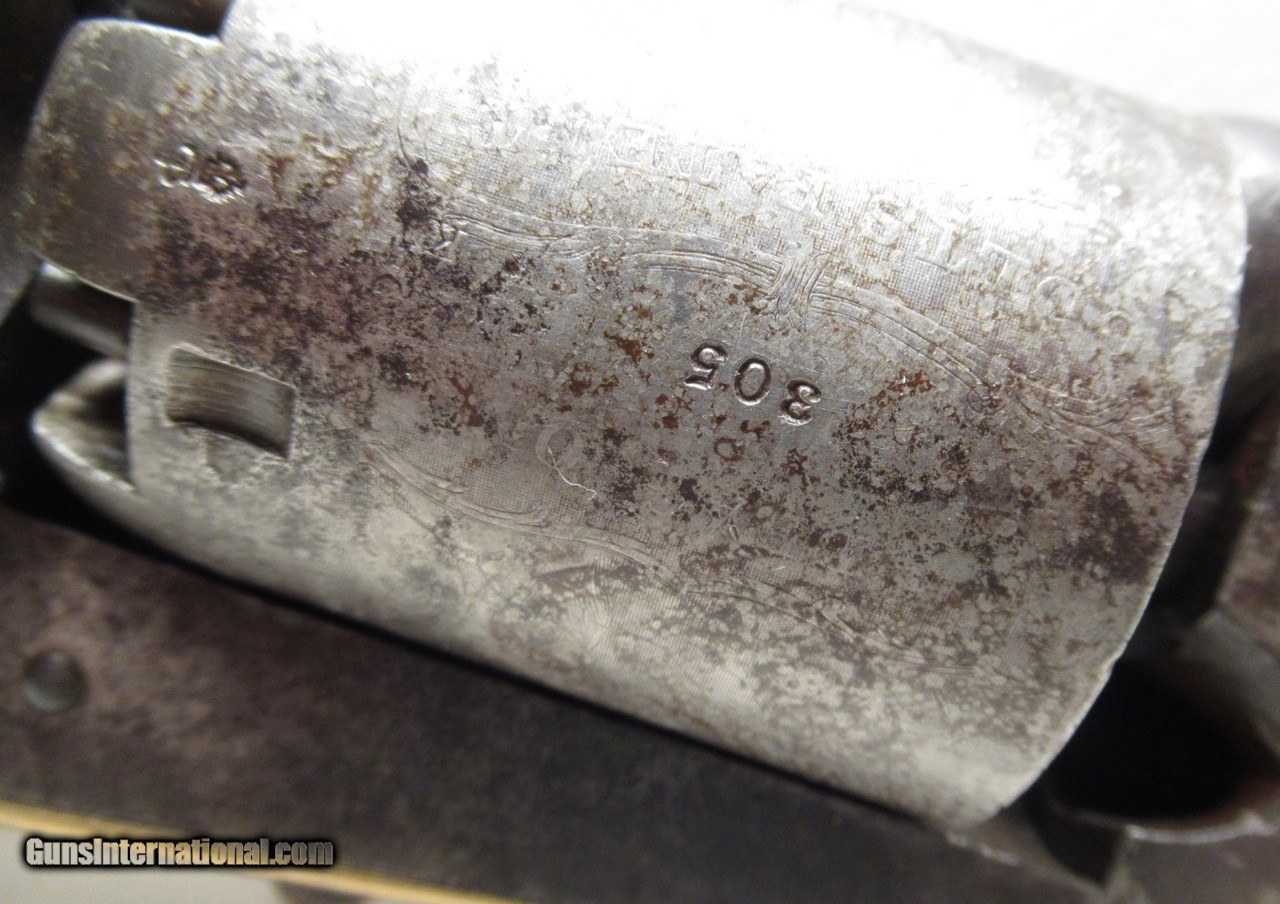 Description: Colt London Dragoon; Serial No. 305; Made 1853; .44 Caliber; British Proofed; Per Pages 97-101 of “The Book of Colt Firearms” by Sutherland and R.L. Wilson, These were Returned to the U.S. for Use in the Civil War; Condition is Matching; Some Cylinder Scene Present; Nice Grips with Nearly All Varnish Remaining; Butt of Gun Inscribed “ADAM MARTIN”; Possibly Belonged to Capt. Adam Benjamin Martin Whom was Mortally Wounded in the Civil War at the Battle of the Wilderness, Virgina in 1864; Excellent Strong Bore with minor even chattering; Perfect Action; Great 170 Year-Old Civil War Era London Dragoon; See All Photos for Condition; No Texts; Call (254)541-5765 or Email Only; PERSONAL PROPERTY of Harold Wieser; NOTICE: We Do Not Do Any Consignments - All Items Listed are Owned by Us - NO SALES to New Jersey or New York City - Antiques Only to Massachusetts and California; Price: $9,975 + $45 S&H Via USPS PRIORITY MAIL; Payment Address: Harold Wieser - 1466 U.S. Hwy 77 - Rosebud, TX 76570; SEND PAYMENTS VIA USPS PRIORITY MAIL; BEWARE of SCAMS!!! – DO NOT SEND MONEY or CORRESPONDENTS ELECTRONICALLY UNLESS YOU HAVE SPOKEN to HAROLD WIESER FIRST! 254-541-5765 SOLD Antique: Yes Manufacturer: Colt Model: London Dragoon Serial Number: 305 |