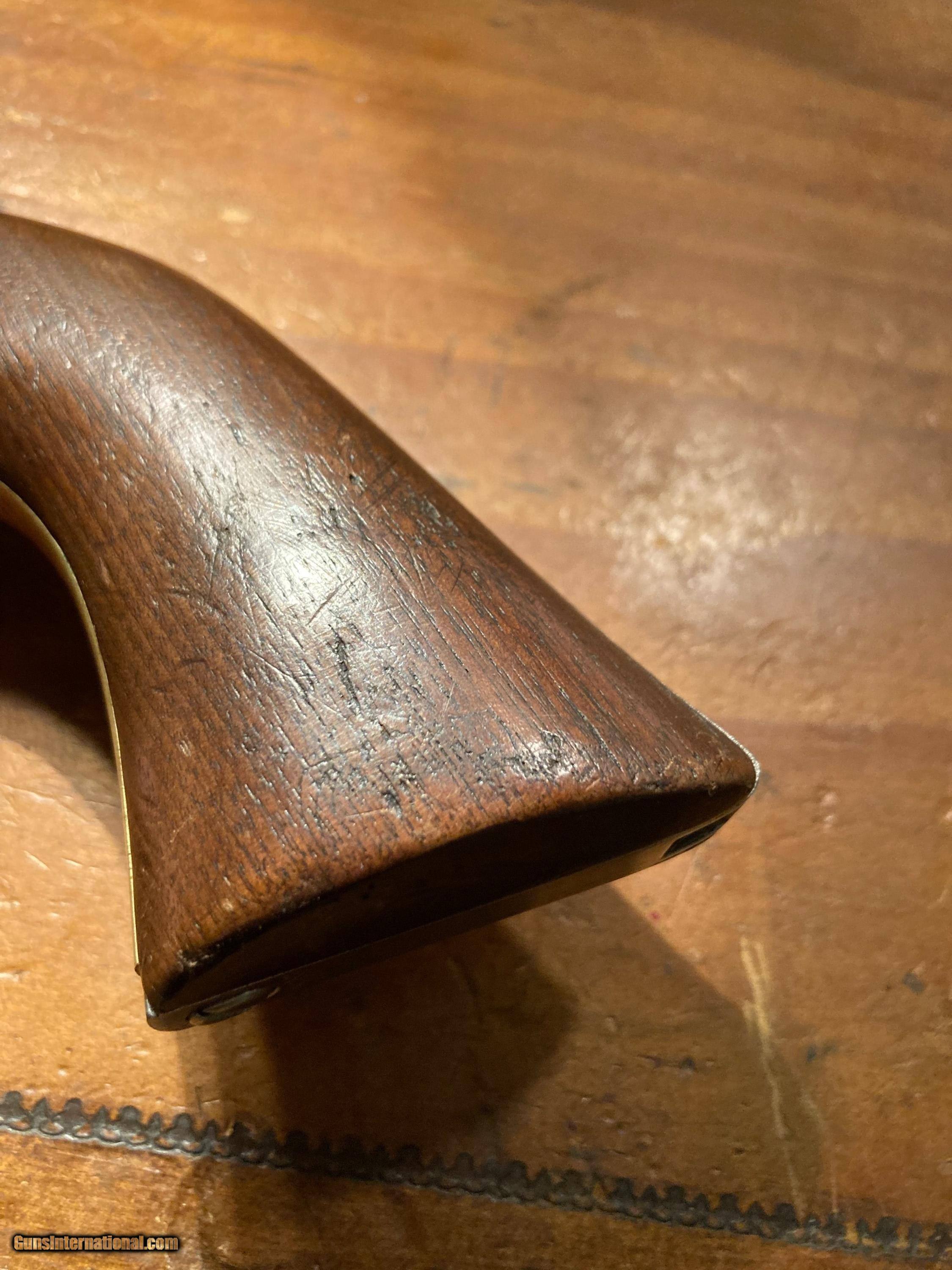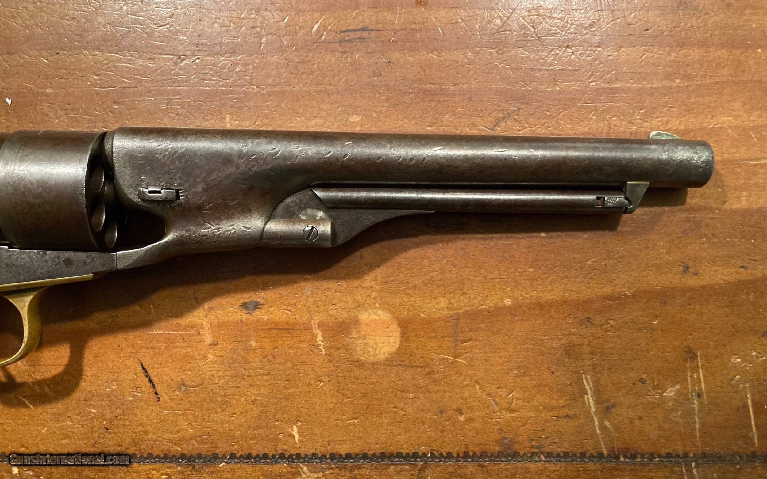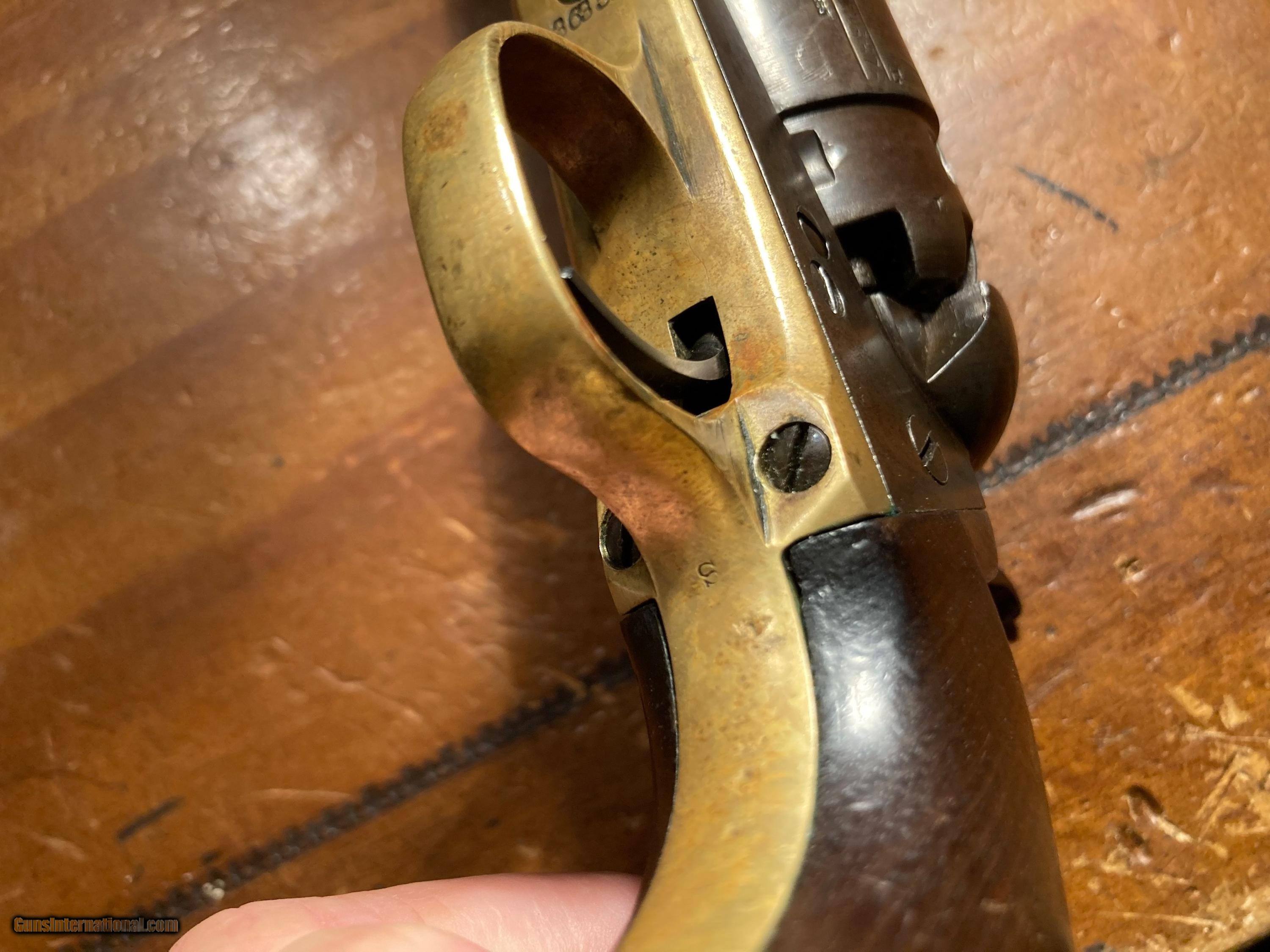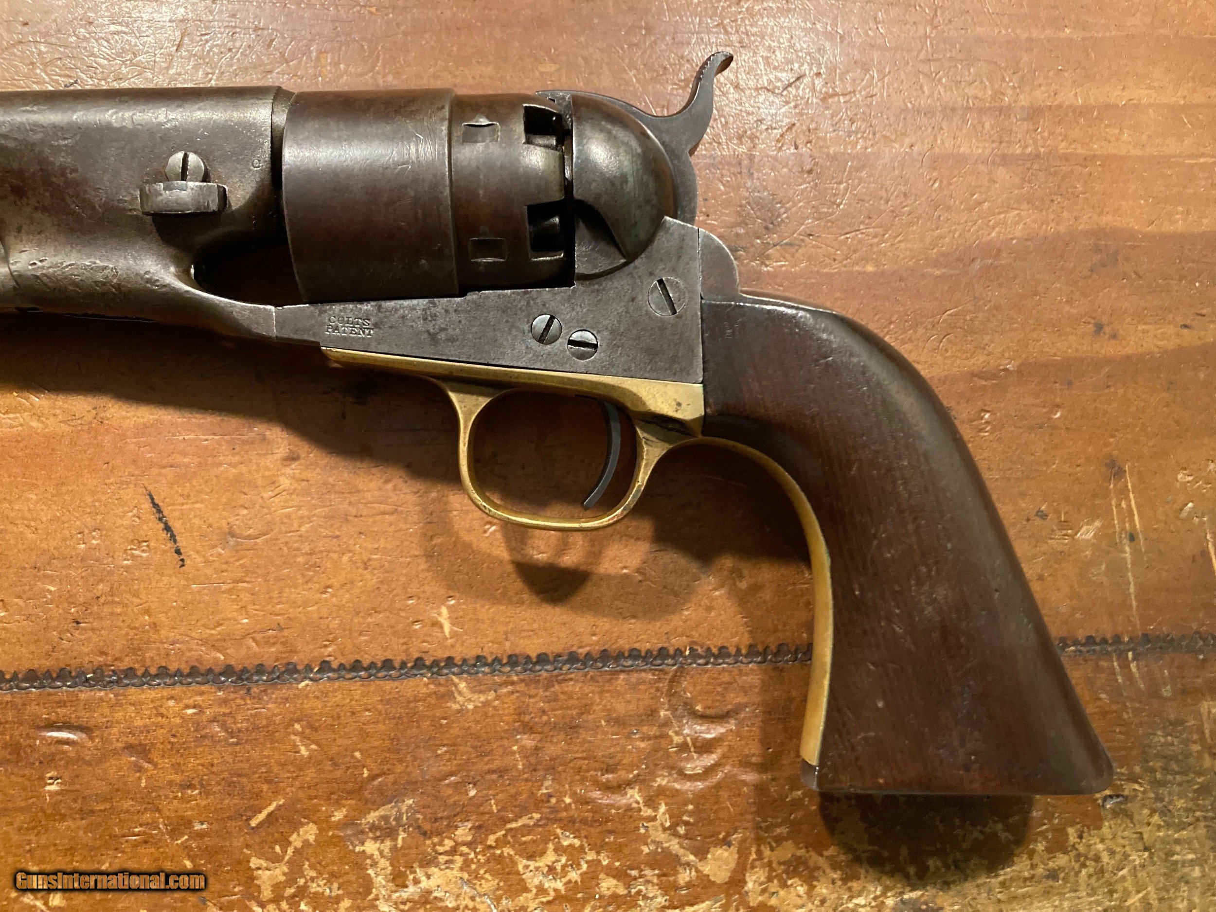 Description: Colt model 1860 army. This gun was put into service in 1862. Very nice military inspected .44 with 8" barrel. This has a unique story but as often happens with the death of the collector much dies with them. This gun came from a Florida based collector who indicated the gun had Southern history and specifically Florida provenance. In 30 plus years I've been saving history I see this often. The paperwork associated with the collection is misplaced by family or they just are not knowledgeable enough to understand the value to the paperwork. This gun still has all the inspector markings very clear along with the cartouche on the grips. Cylinder scene is visible. The interesting thing with this gun is when the southern soldier picked this up to use he couldn't stand the Northern maker address and carefully filed off the barrel address with Union ties. It was done well and very long ago. Just makes for a great piece of history with this gun. I was familiar with this gun and it's story, Its just unfortunate that the family lost the paperwork. It's a great old Civil War era gun that saw use well after that conflict ended. Action is tight. Gun is a fine historical piece worthy of the best collections! See photos as description. Antique gun ships direct for $38. Email or call with questions or to discuss. Matt 214-957-6574 SOLD Antique: Yes Manufacturer: Colt Model: 1860 Army |